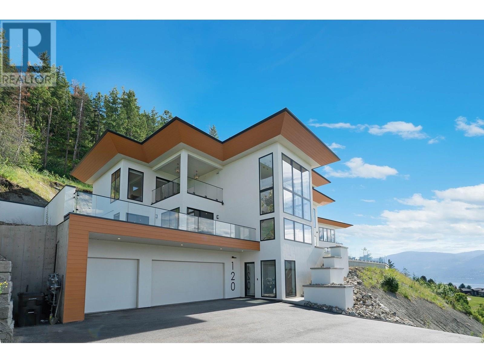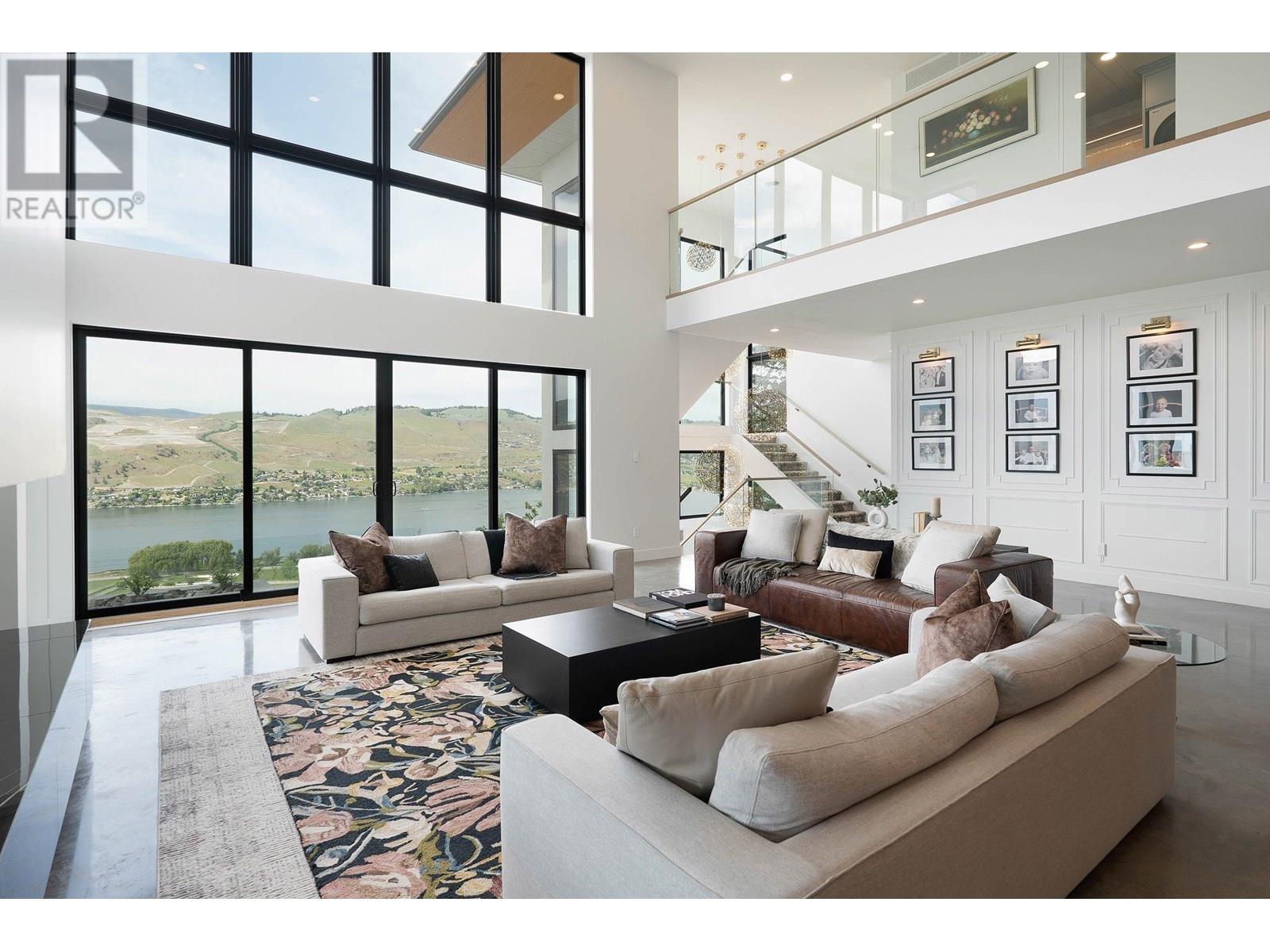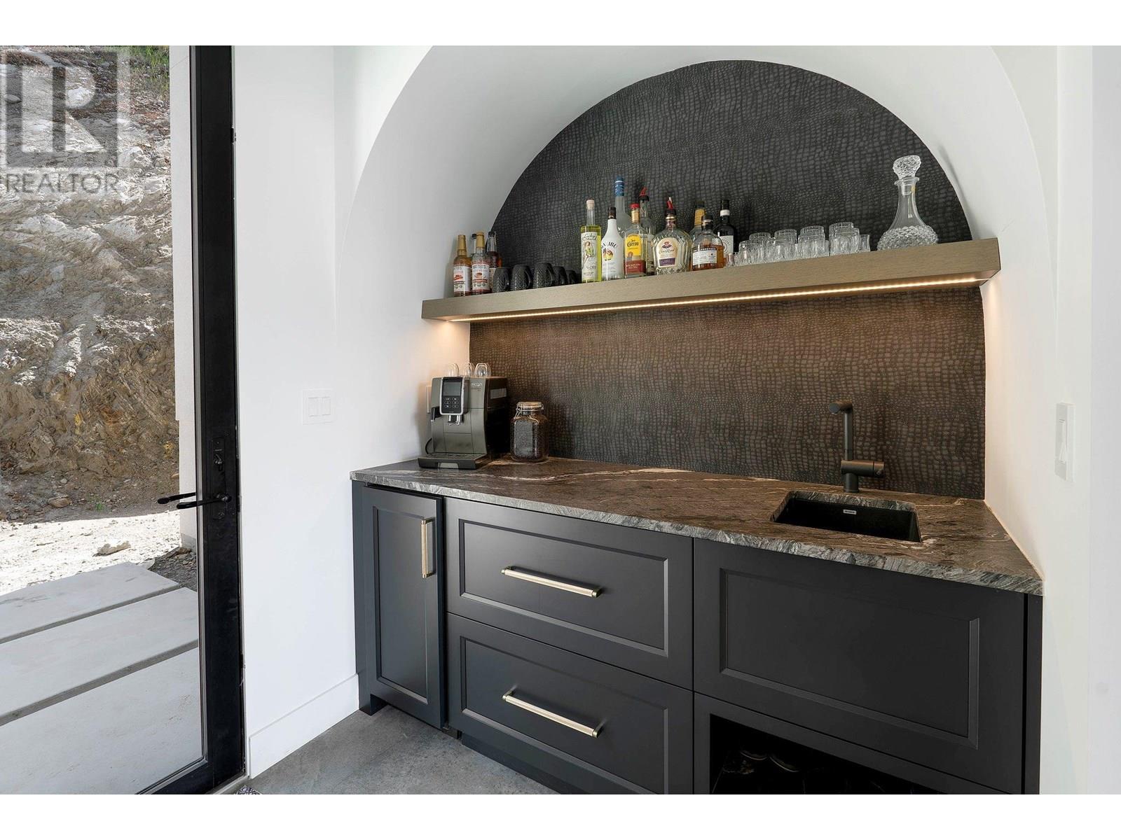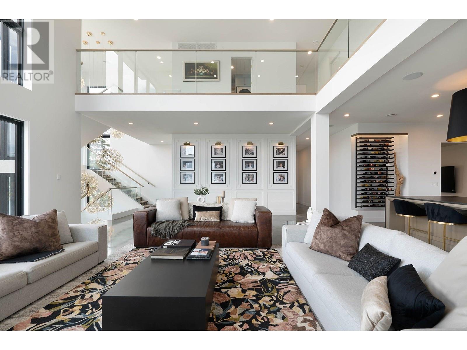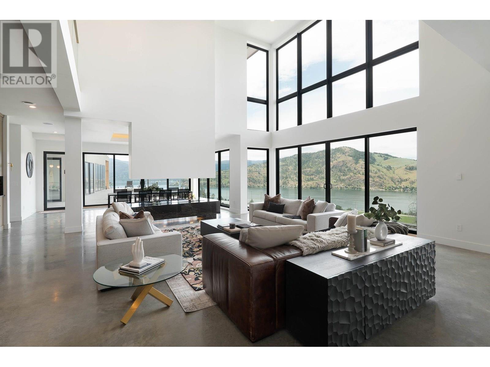 Welcome to Beverly Hills Estates! This modern luxury home sits on over 1 acre & spans over 9000 sq ft. The thoughtful design includes uninterrupted views of Okanagan lake & paradise ranch. The 3 car garage opens into a large mudroom. The Versace Elevator will take you up to the kitchen or bedrooms. If you take the stairs, you will see an incredible 3 story chandelier that cascades 20 ft! The kitchen features a 16 ft waterfall island with leathered granite, a 48” 8 burner range, 2 dishwashers, gorgeous hardware & built-ins. The pantry & wet bar offer ample storage, combi oven, fridge/freezer & ice makers. The great room features 22 ft ceilings with floor to ceiling windows & an 84” ethanol fireplace that connects to the dining room. A glass hall leads to the primary wing with sitting area, full bar, spa bath & dressing room with laundry. There is a second primary bedroom & 3 additional bedrooms, all with ensuites. All 5 bedrooms are on one level with a double laundry, open concept office & cigar lounge. The main floor offers a gym, theatre room and flex space. The designated pool house with in/out bath opens into the outdoor kitchen & offers a salt sauna & yoga/massage room. Heated floors, high end mechanical systems & desirable location make this home worth viewing! Located near the Vernon airport and on the perimeter of the SenseNet system installed by Predator Ridge. Fire response to this area has been trialed and is leading in forest fire response technology. (id:48970)