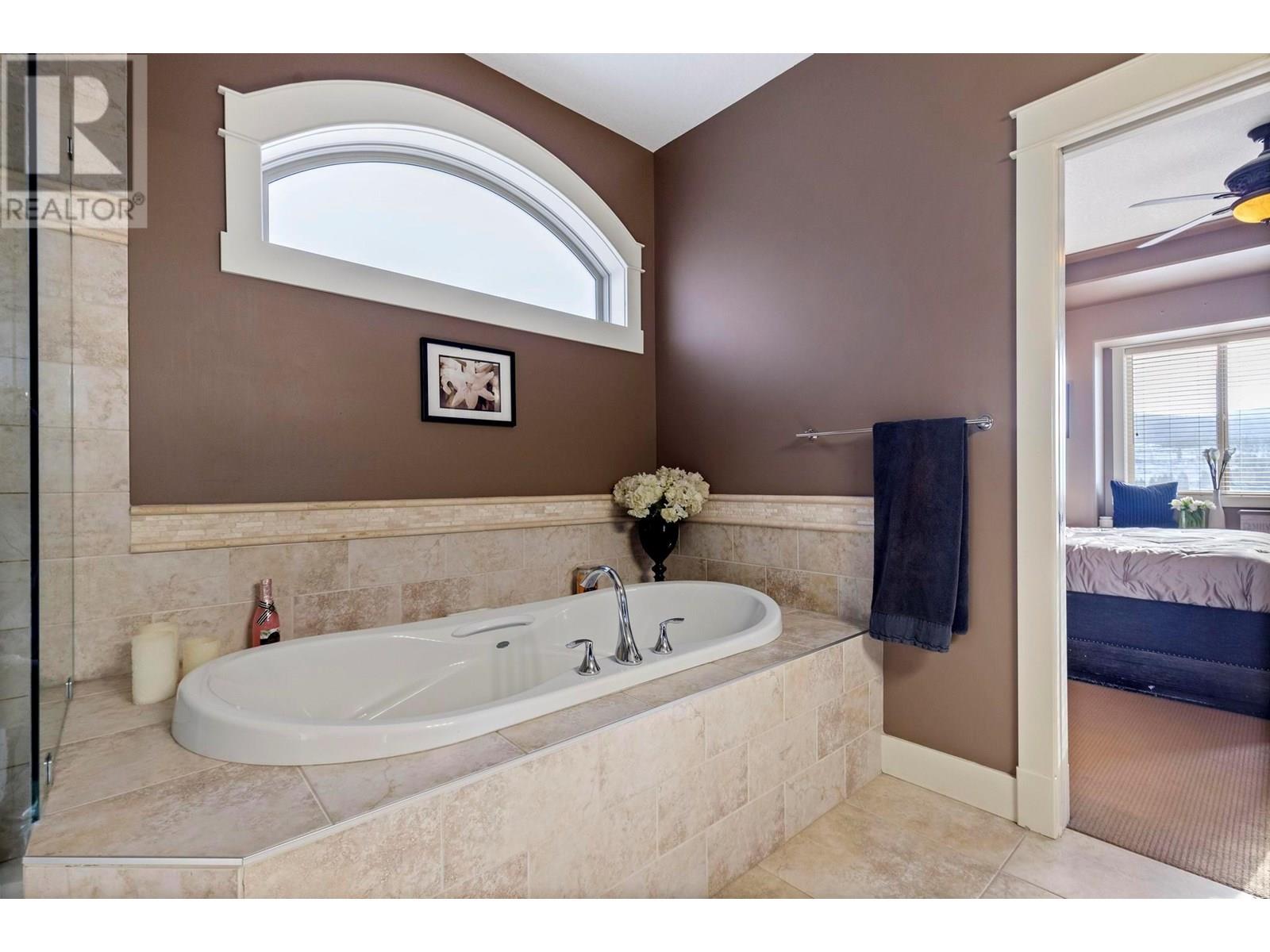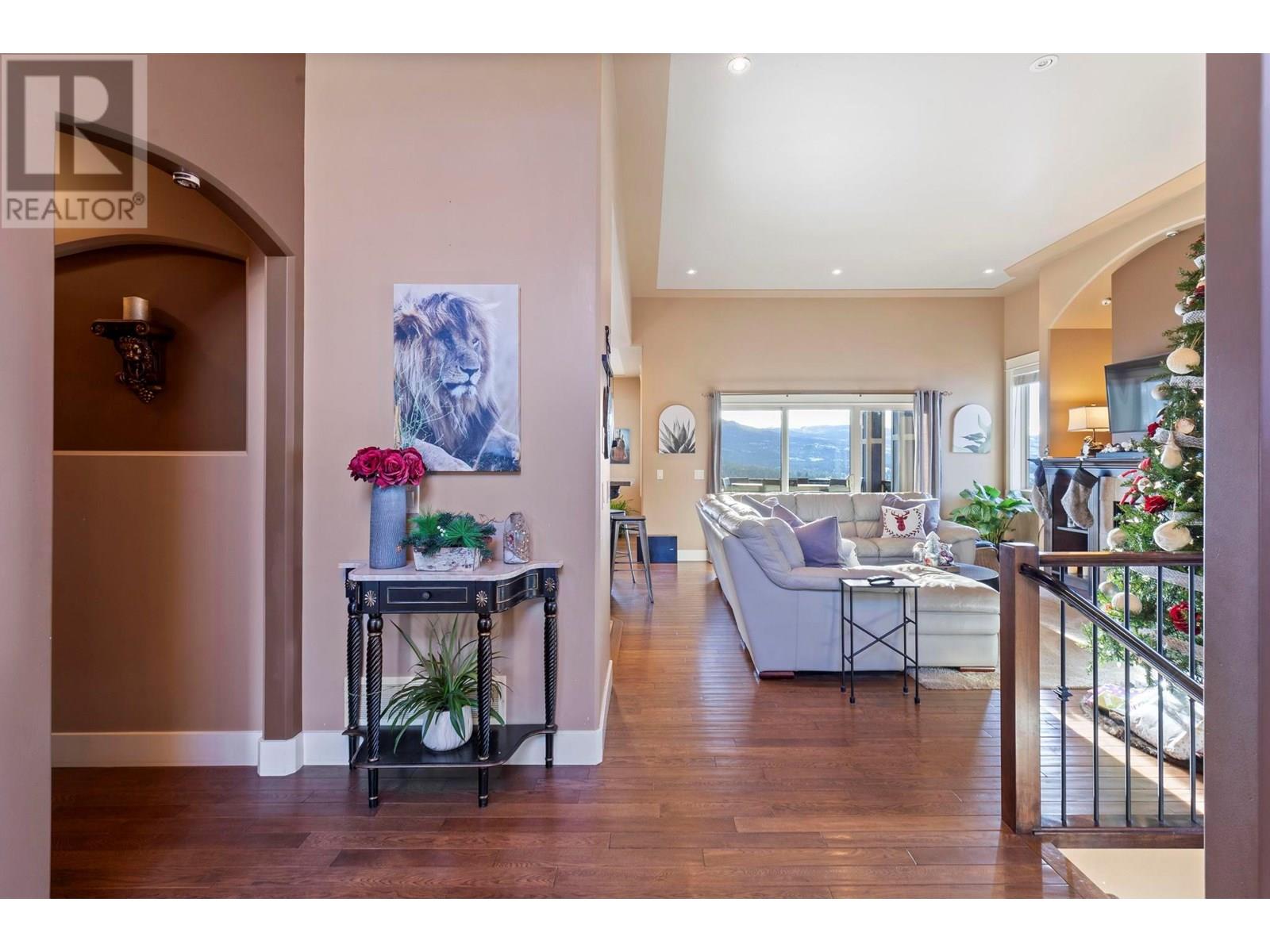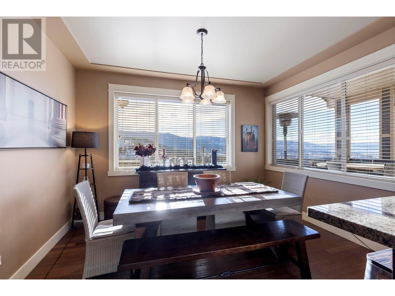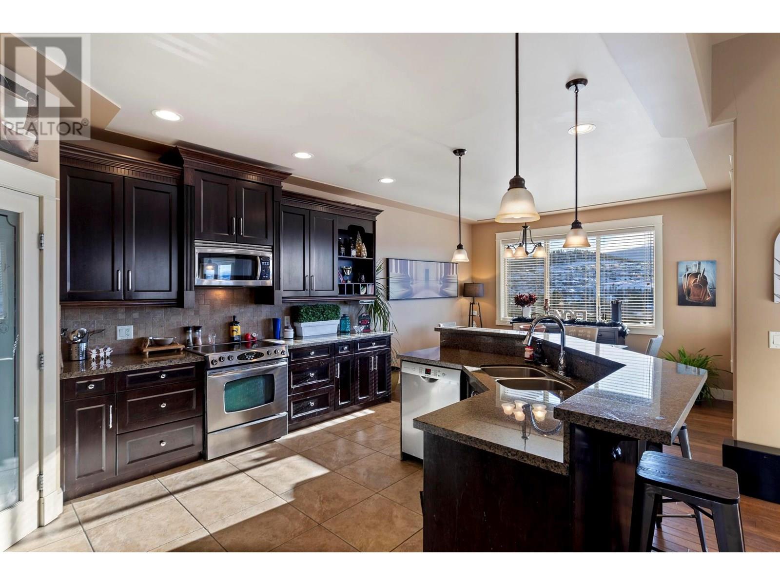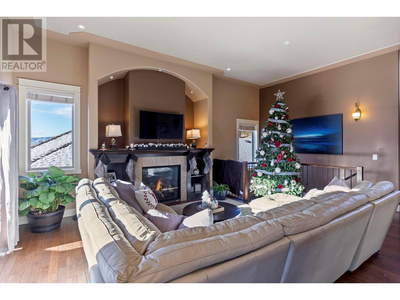 Enjoy amazing panoramic lake and city views from all 3 levels of this beautiful 4,300+ sqft 6 bedroom, 4 full bath custom walkout rancher including a 'sweet' additional fully finished lower 3rd floor walkout level with second kitchen, bedroom, large living area, bathroom, and second laundry. High quality finishes throughout include scraped oak hardwood floors on main, travertine tile, granite counter tops, extensive quality mill-work and trims with custom crafted built-ins accentuate the contemporary tones and bright open floor plan. Immediately you are greeted by tall ceilings and cascading light in the grand entry and great room featuring a majestic rock gas fireplace with wood built-ins. This opens to the gourmet maple kitchen with granite counters, walk in pantry, tons of cabinets, stainless steel appliances, eating area and covered deck showcasing the views. Enjoy a luxurious primary bedroom suite on main with tray ceiling, a spacious 5 piece ensuite bath, and large walk-in closet. Second bed & bath on main means guests can stay without using the stairs; or, could make a perfect Den / Office. The lower second level offers open family room area, 2/3 bedrooms, wet bar, and wired Media room (5th bedroom). A further 3rd lower floor is set up with a second kitchen, living areas, 1 bed, full bath, and second laundry. Oversized double garage and driveway for 4 or 5 cars! Low maintenance yard with no need for a lawn mower! This house is perfect for multi-generational living! (id:48970)