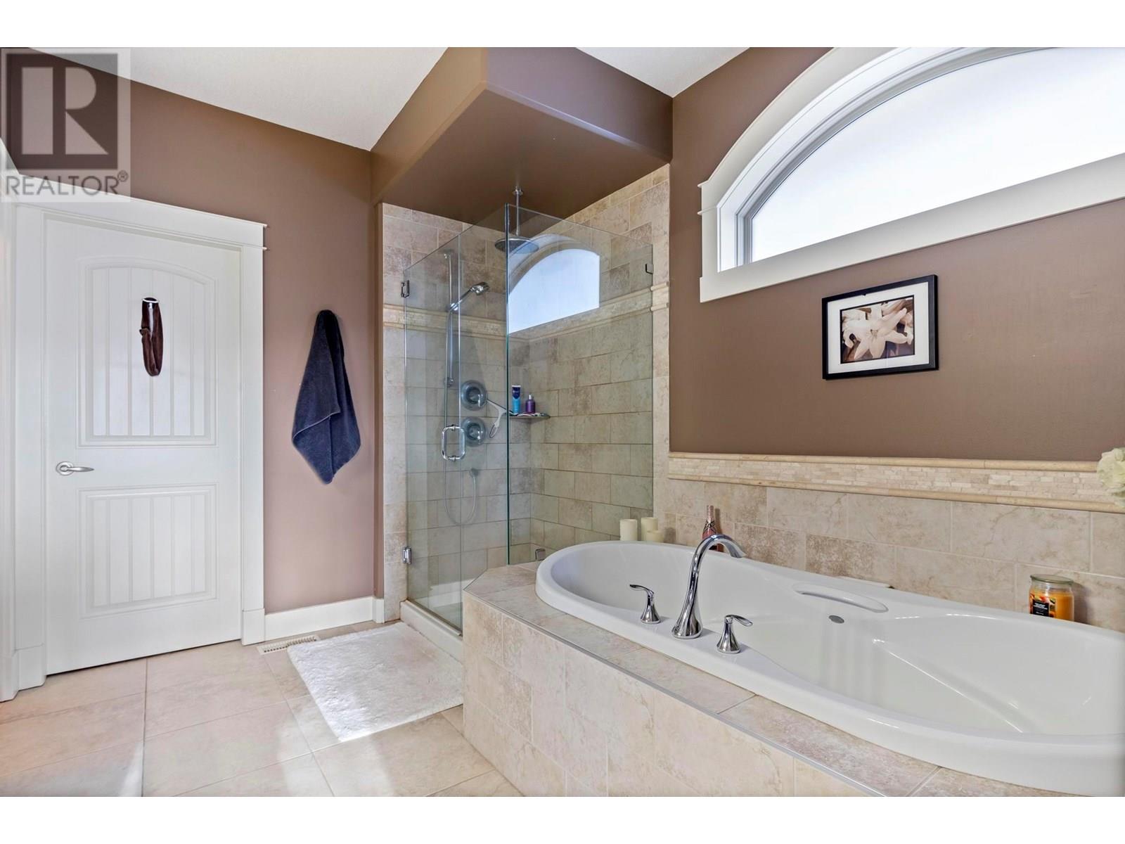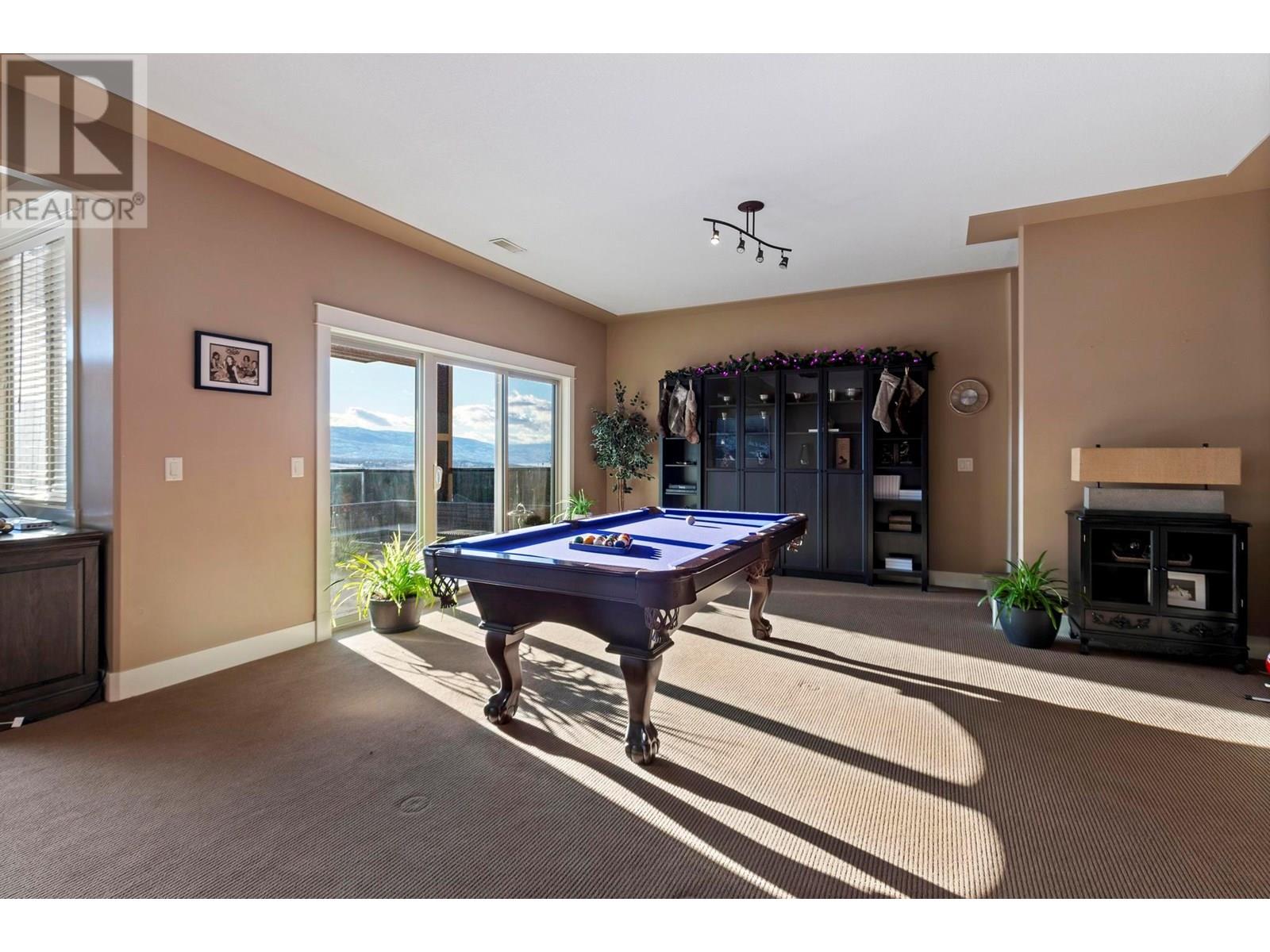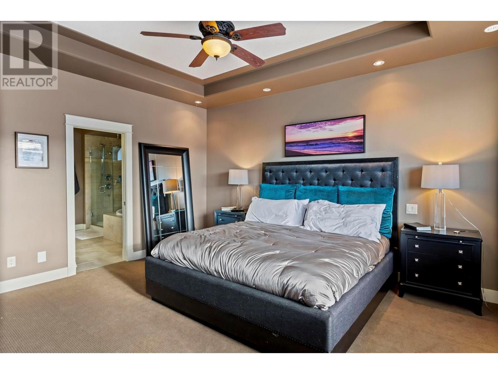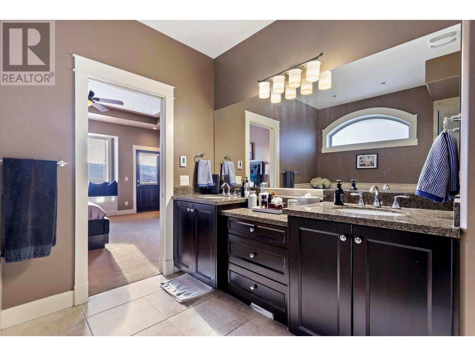 Enjoy amazing panoramic lake and city views from all 3 levels of this beautiful 4,300+ sqft 6 bedroom, 4 full bath custom walkout rancher including a 'sweet' additional fully finished lower 3rd floor walkout level with second kitchen, bedroom, large living area, bathroom, and second laundry. High quality finishes throughout include scraped oak hardwood floors on main, travertine tile, granite counter tops, extensive quality mill-work and trims with custom crafted built-ins accentuate the contemporary tones and bright open floor plan. Immediately you are greeted by tall ceilings and cascading light in the grand entry and great room featuring a majestic rock gas fireplace with wood built-ins. This opens to the gourmet maple kitchen with granite counters, walk in pantry, tons of cabinets, stainless steel appliances, eating area and covered deck showcasing the views. Enjoy a luxurious primary bedroom suite on main with tray ceiling, a spacious 5 piece ensuite bath, and large walk-in closet. Second bed & bath on main means guests can stay without using the stairs; or, could make a perfect Den / Office. The lower second level offers open family room area, 2/3 bedrooms, wet bar, and wired Media room (5th bedroom). A further 3rd lower floor is set up with a second kitchen, living areas, 1 bed, full bath, and second laundry. Oversized double garage and driveway for 4 or 5 cars! Low maintenance yard with no need for a lawn mower! This house is perfect for multi-generational living! (id:48970)