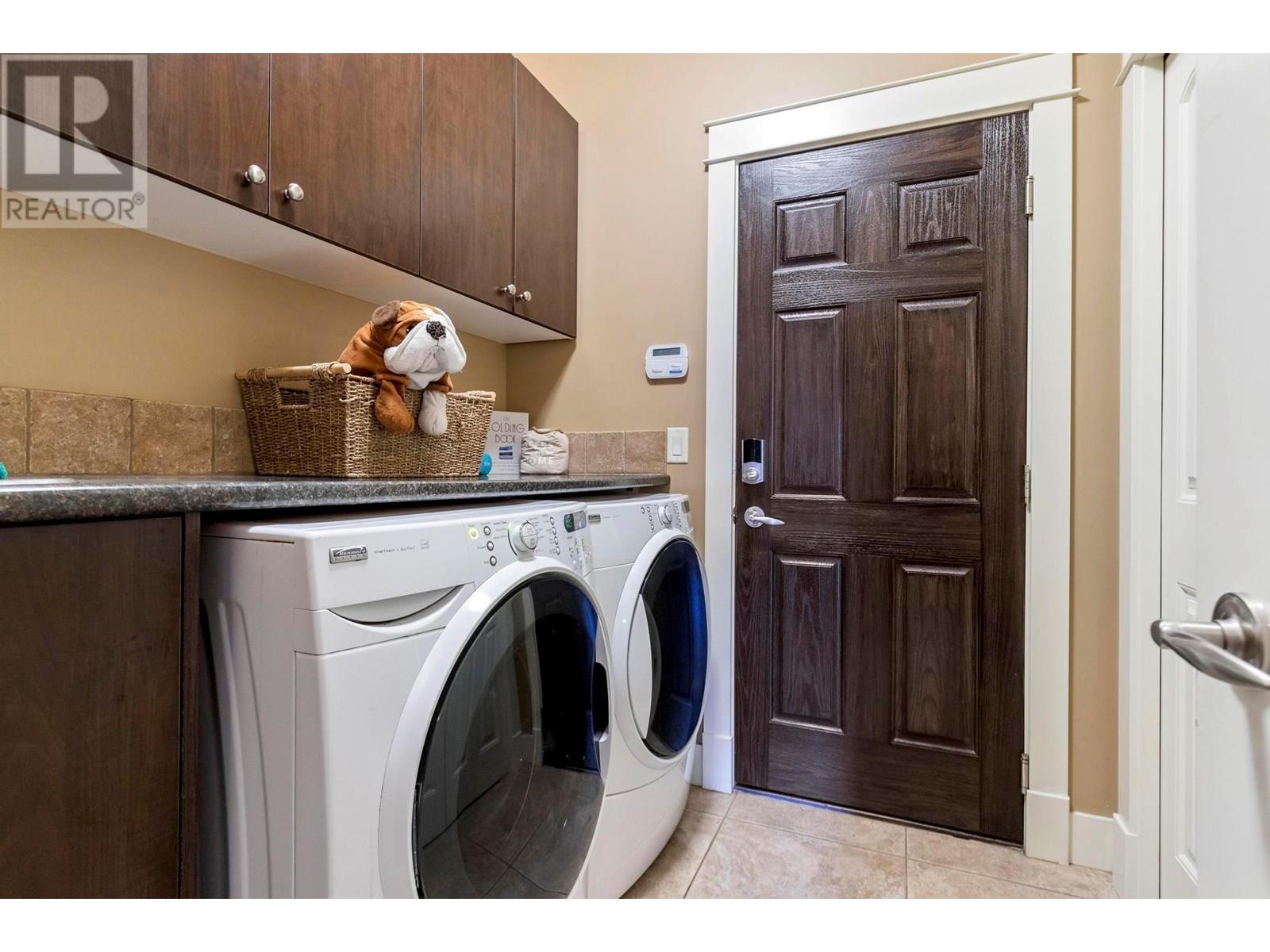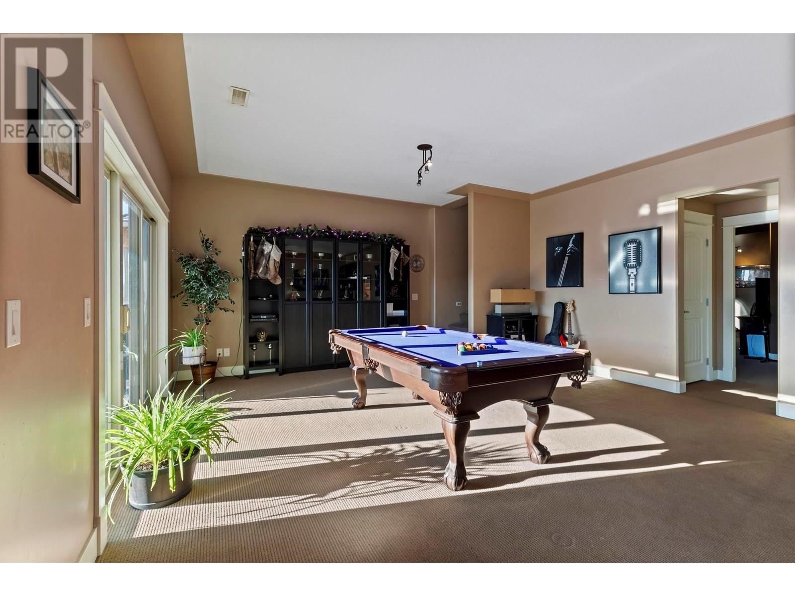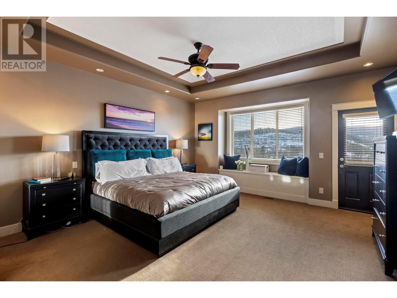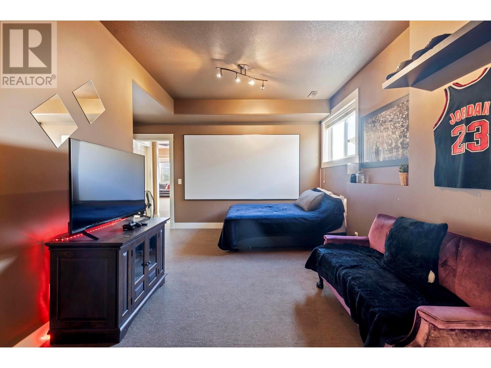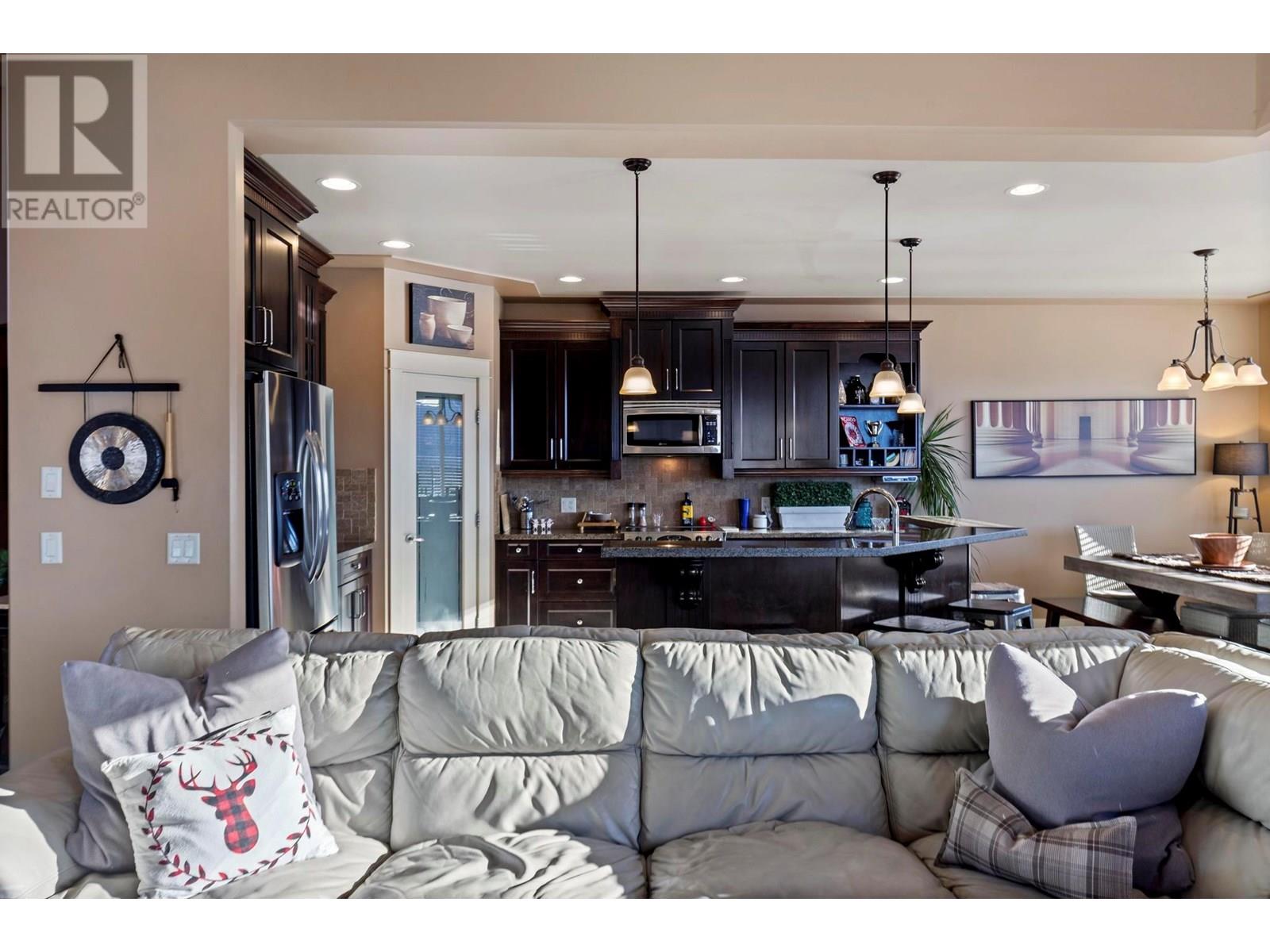 Enjoy amazing panoramic lake and city views from all 3 levels of this beautiful 4,300+ sqft 6 bedroom, 4 full bath custom walkout rancher including a 'sweet' additional fully finished lower 3rd floor walkout level with second kitchen, bedroom, large living area, bathroom, and second laundry. High quality finishes throughout include scraped oak hardwood floors on main, travertine tile, granite counter tops, extensive quality mill-work and trims with custom crafted built-ins accentuate the contemporary tones and bright open floor plan. Immediately you are greeted by tall ceilings and cascading light in the grand entry and great room featuring a majestic rock gas fireplace with wood built-ins. This opens to the gourmet maple kitchen with granite counters, walk in pantry, tons of cabinets, stainless steel appliances, eating area and covered deck showcasing the views. Enjoy a luxurious primary bedroom suite on main with tray ceiling, a spacious 5 piece ensuite bath, and large walk-in closet. Second bed & bath on main means guests can stay without using the stairs; or, could make a perfect Den / Office. The lower second level offers open family room area, 2/3 bedrooms, wet bar, and wired Media room (5th bedroom). A further 3rd lower floor is set up with a second kitchen, living areas, 1 bed, full bath, and second laundry. Oversized double garage and driveway for 4 or 5 cars! Low maintenance yard with no need for a lawn mower! This house is perfect for multi-generational living! (id:48970)