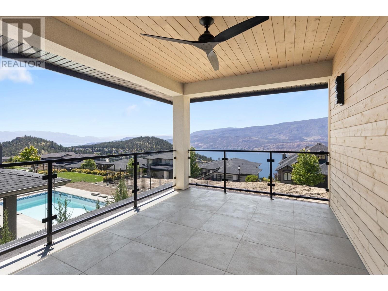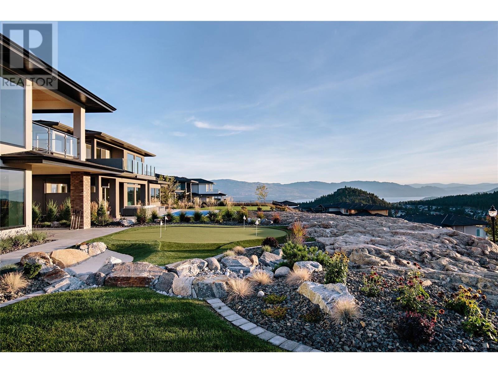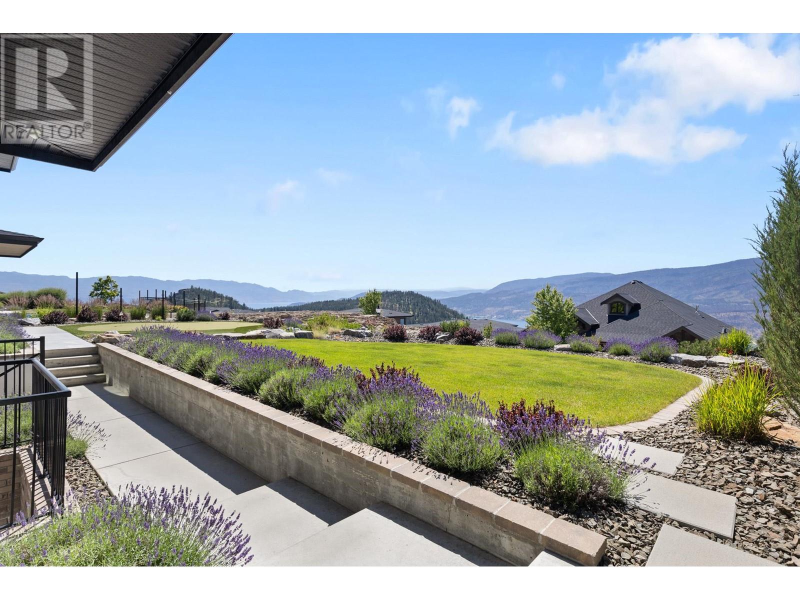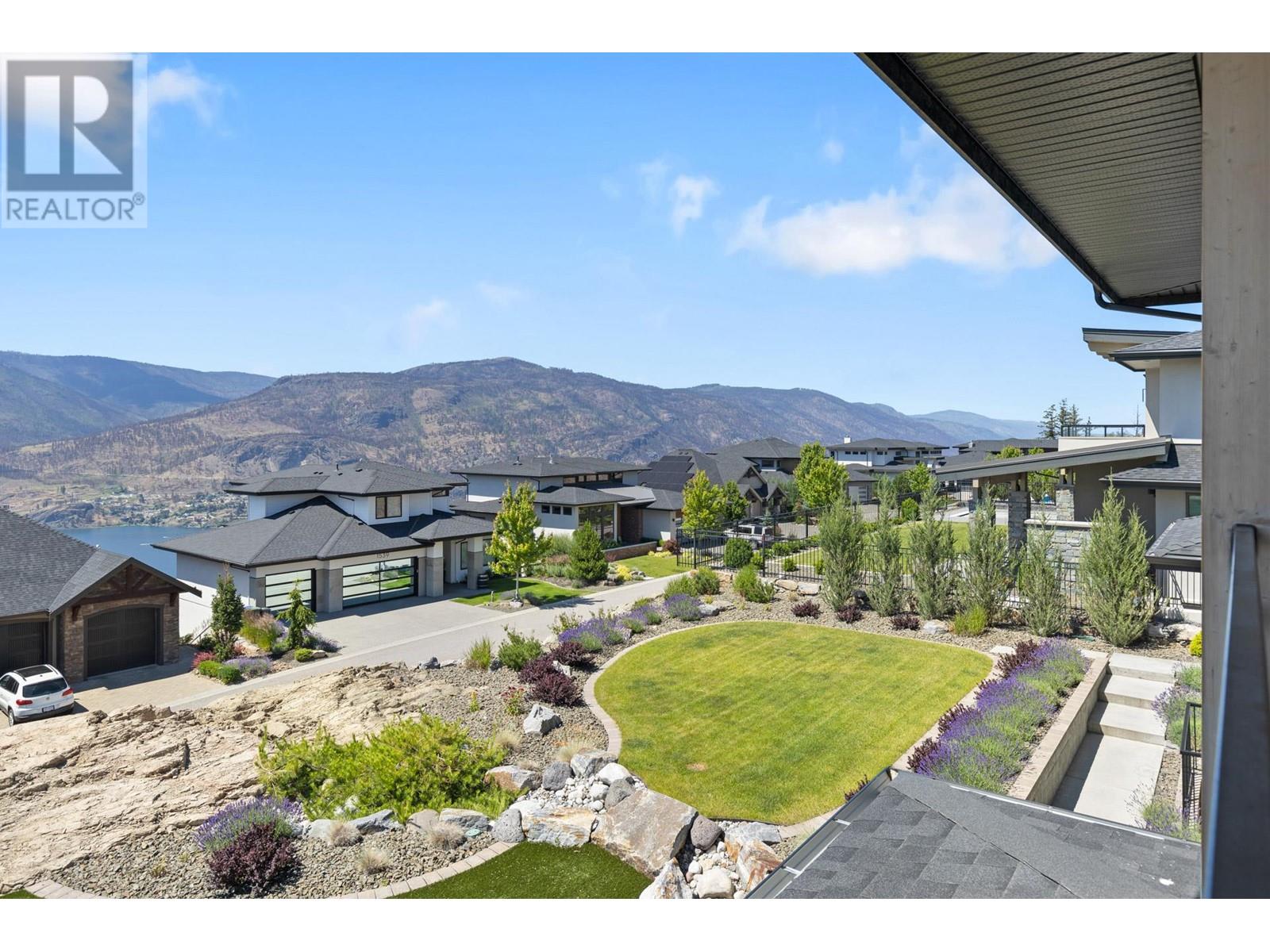 A unique opportunity in the prestigious Wilden neighbourhood, this custom built 2019 show home of the year from award winning builder Fawdry Homes will take your breath away w/sweeping 180 degree views of the Okanagan Lake + mountains.  Truly designed for entertaining, this 4 bedroom + den modern home offers an open main flr plan w/2 stories of great room windows framing the amazing views opening into the covered patio area merging into the meticulously maintained low maintenance rear yard.  Main flor features inc:  a large kitchen w/over-sized Wolf gas range, panel Sub-Zero fridge/freezer, pantry/mudroom w/tons of storage, wet bar w/beverage fridge, 2 storey linear gas fireplace, spacious great room, 3 piece bath + office/future bedroom. Upper flr offers a lg primary suite w/built-in custom bed, his/her walk-in closet, a spacious ensuite w/lg soaker tub + curbless tiled shower, left style TV area, wet bar, 1/2 bath + the lg covered deck to soak in the sweeping views.  Bsmt offers 2 full bedrooms, a 3 piece bathroom, wet bar/kitchen area however with the open design + lg windows, the potential for additional bedrooms.  Basement also offers a separate grade to basement level entrance which would all for a possible suite.  Other features include a 3 car garage, advanced heating/cooling system, underground sprinklers, solar panel system, full central vacuum w/hidden hose attachments + full security/camera system.  Full New Home Warranty inlcuded.  Potential for a pool. (id:48970)