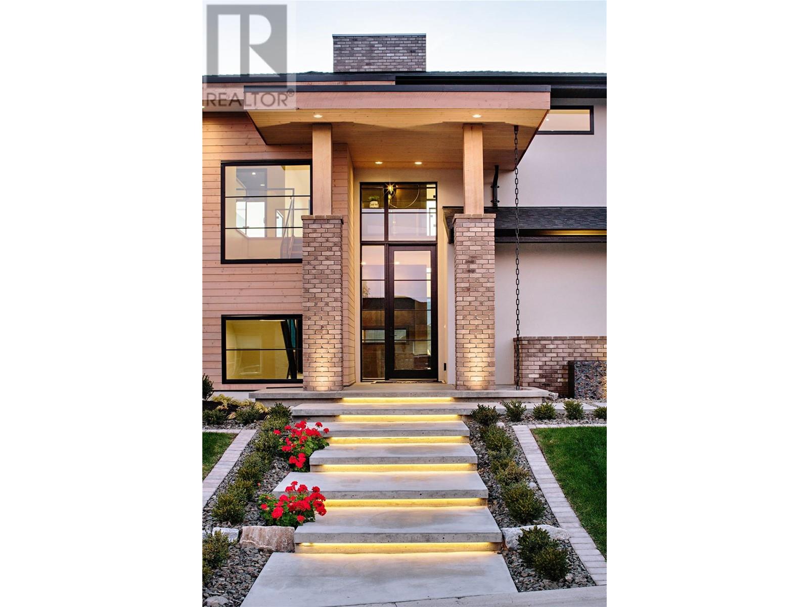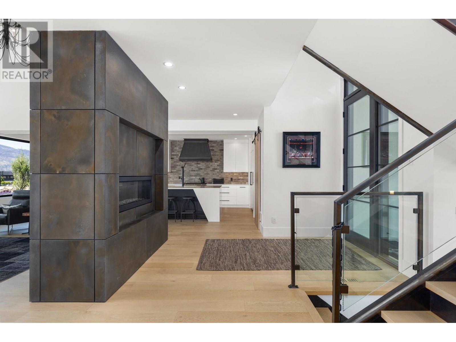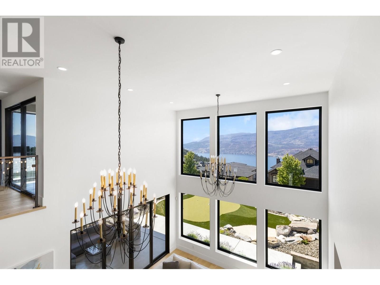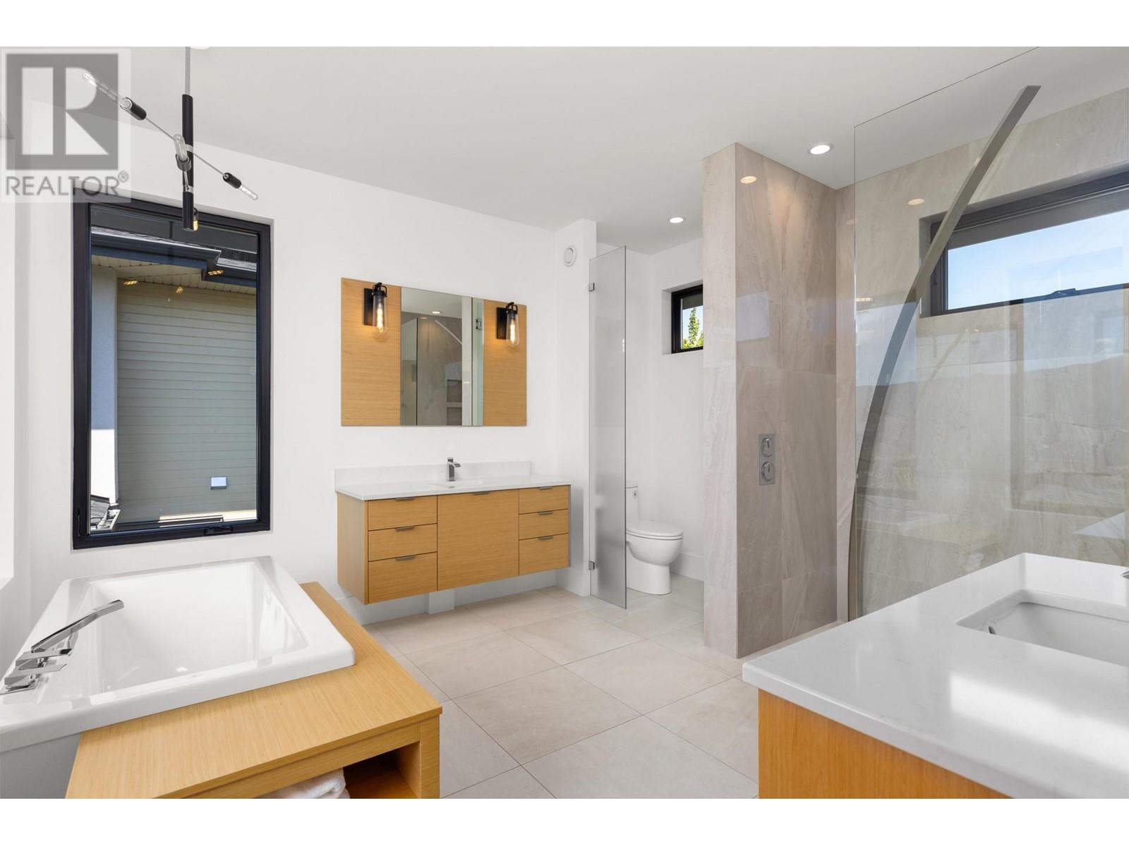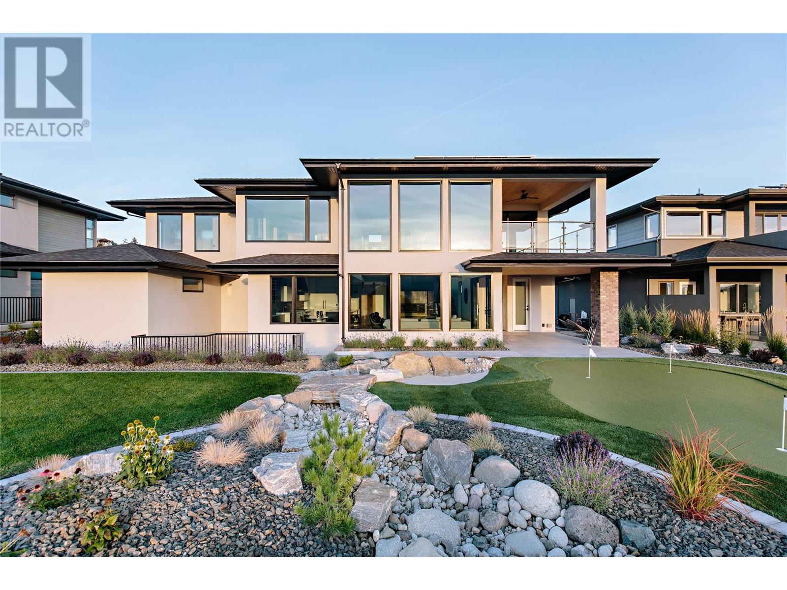 A unique opportunity in the prestigious Wilden neighbourhood, this custom built 2019 show home of the year from award winning builder Fawdry Homes will take your breath away w/sweeping 180 degree views of the Okanagan Lake + mountains.  Truly designed for entertaining, this 4 bedroom + den modern home offers an open main flr plan w/2 stories of great room windows framing the amazing views opening into the covered patio area merging into the meticulously maintained low maintenance rear yard.  Main flor features inc:  a large kitchen w/over-sized Wolf gas range, panel Sub-Zero fridge/freezer, pantry/mudroom w/tons of storage, wet bar w/beverage fridge, 2 storey linear gas fireplace, spacious great room, 3 piece bath + office/future bedroom. Upper flr offers a lg primary suite w/built-in custom bed, his/her walk-in closet, a spacious ensuite w/lg soaker tub + curbless tiled shower, left style TV area, wet bar, 1/2 bath + the lg covered deck to soak in the sweeping views.  Bsmt offers 2 full bedrooms, a 3 piece bathroom, wet bar/kitchen area however with the open design + lg windows, the potential for additional bedrooms.  Basement also offers a separate grade to basement level entrance which would all for a possible suite.  Other features include a 3 car garage, advanced heating/cooling system, underground sprinklers, solar panel system, full central vacuum w/hidden hose attachments + full security/camera system.  Full New Home Warranty inlcuded.  Potential for a pool. (id:48970)