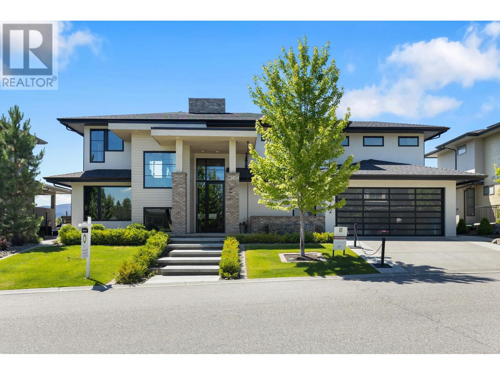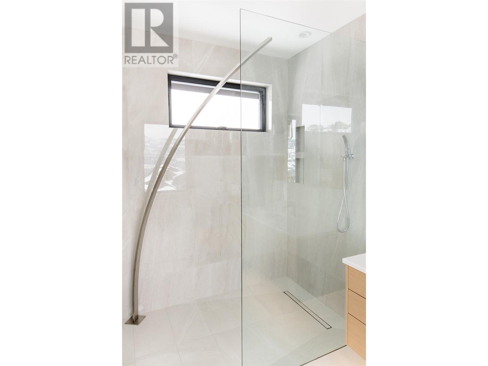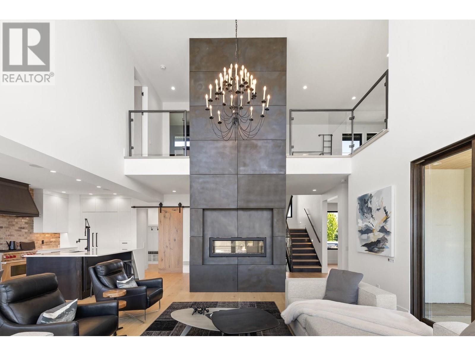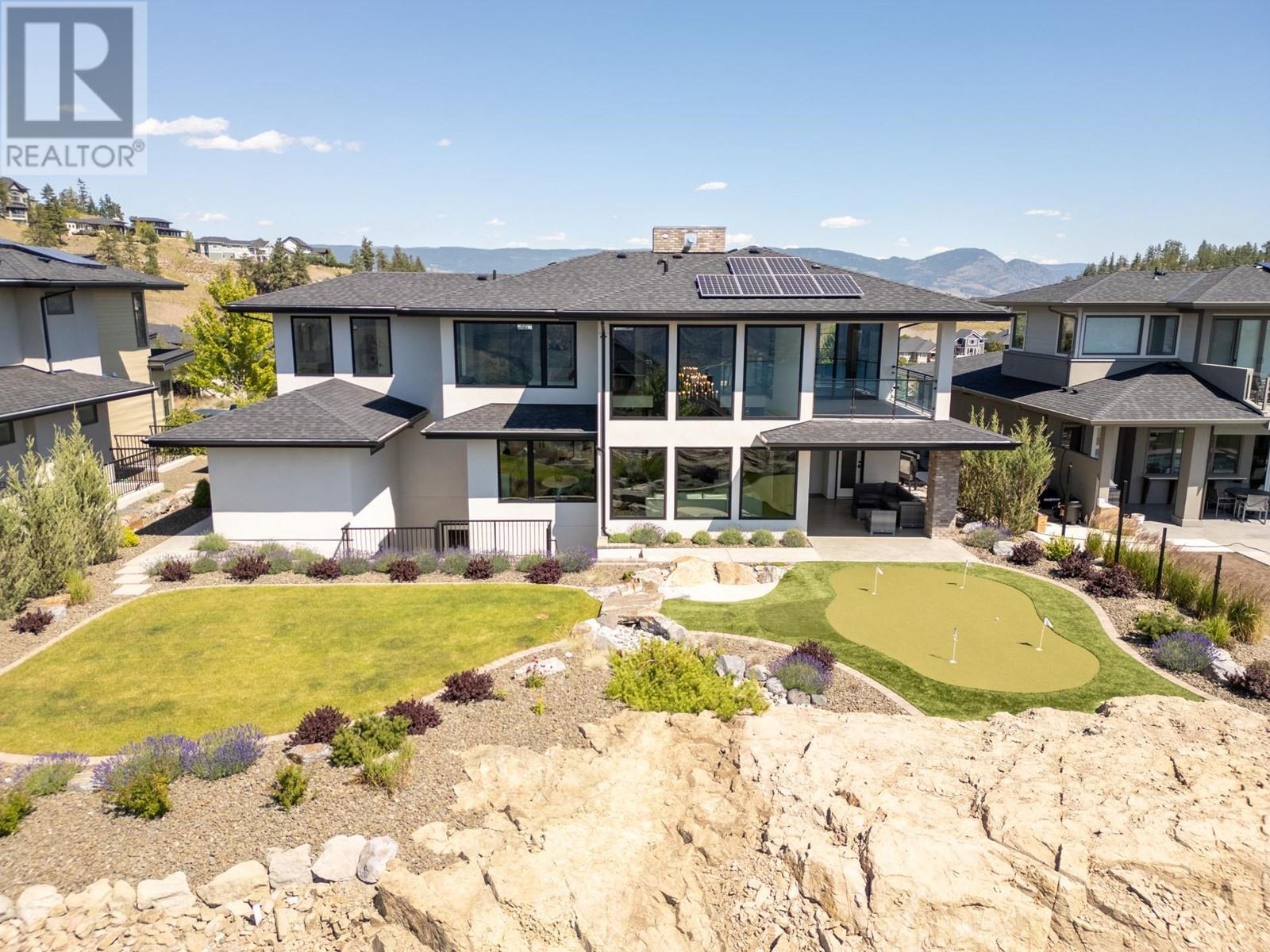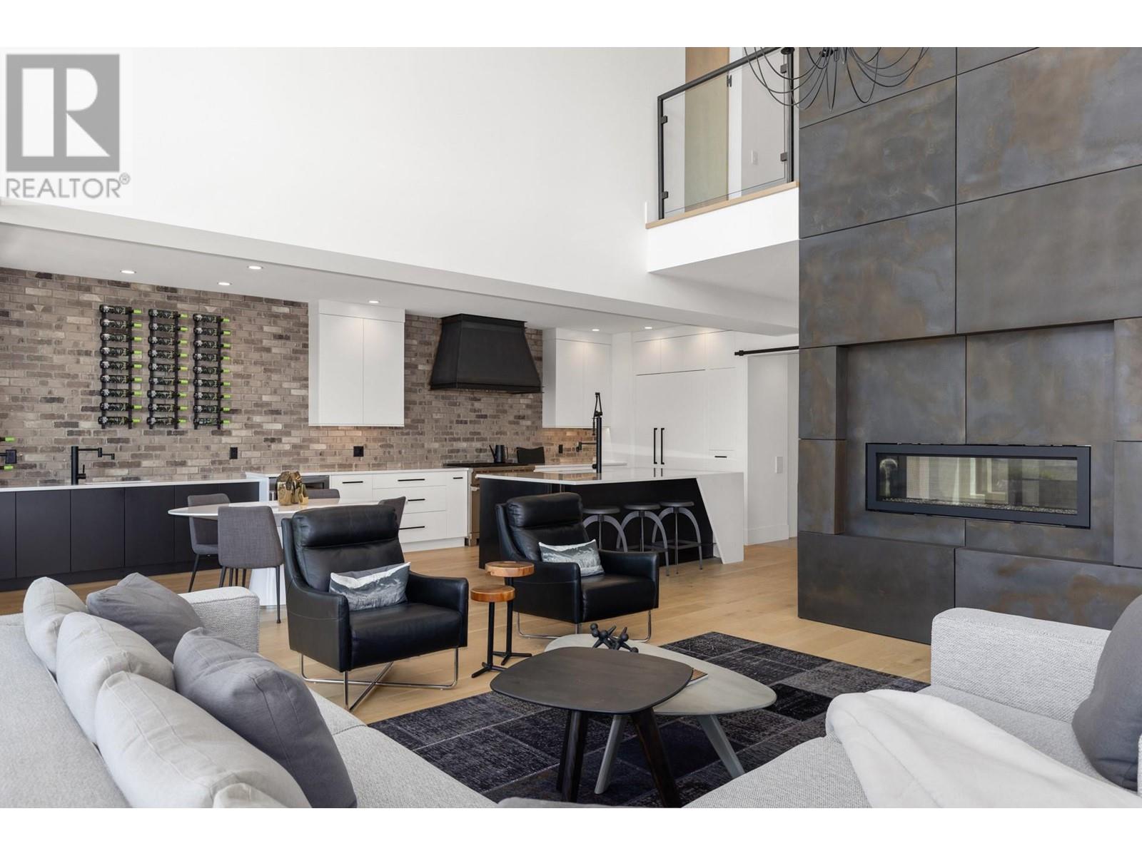A unique opportunity in the prestigious Wilden neighbourhood, this custom built 2019 show home of the year from award winning builder Fawdry Homes will take your breath away w/sweeping 180 degree views of the Okanagan Lake + mountains.  Truly designed for entertaining, this 4 bedroom + den modern home offers an open main flr plan w/2 stories of great room windows framing the amazing views opening into the covered patio area merging into the meticulously maintained low maintenance rear yard.  Main flor features inc:  a large kitchen w/over-sized Wolf gas range, panel Sub-Zero fridge/freezer, pantry/mudroom w/tons of storage, wet bar w/beverage fridge, 2 storey linear gas fireplace, spacious great room, 3 piece bath + office/future bedroom. Upper flr offers a lg primary suite w/built-in custom bed, his/her walk-in closet, a spacious ensuite w/lg soaker tub + curbless tiled shower, left style TV area, wet bar, 1/2 bath + the lg covered deck to soak in the sweeping views.  Bsmt offers 2 full bedrooms, a 3 piece bathroom, wet bar/kitchen area however with the open design + lg windows, the potential for additional bedrooms.  Basement also offers a separate grade to basement level entrance which would all for a possible suite.  Other features include a 3 car garage, advanced heating/cooling system, underground sprinklers, solar panel system, full central vacuum w/hidden hose attachments + full security/camera system.  Full New Home Warranty inlcuded.  Potential for a pool. (id:48970)