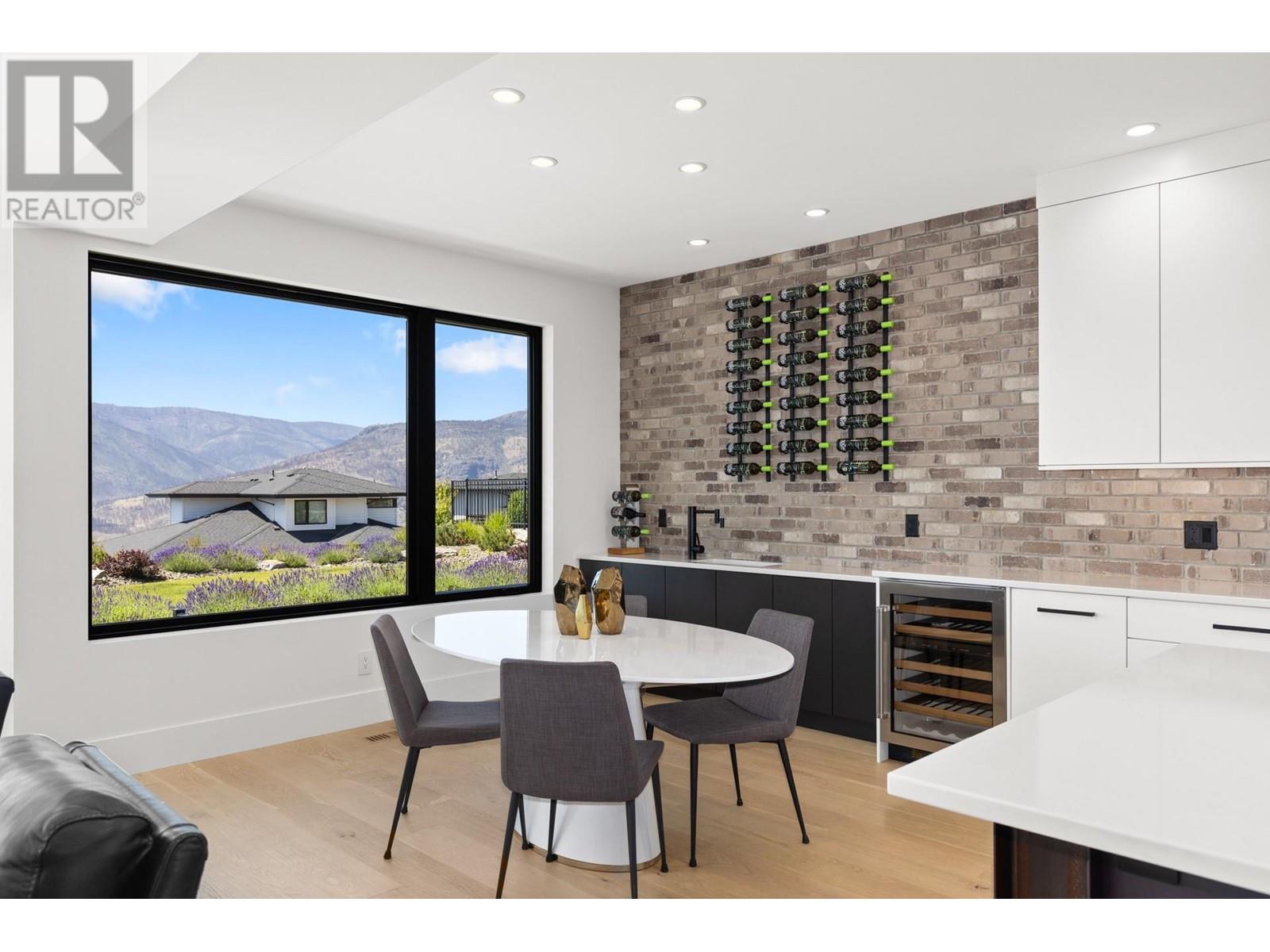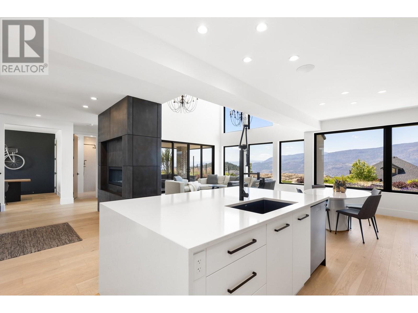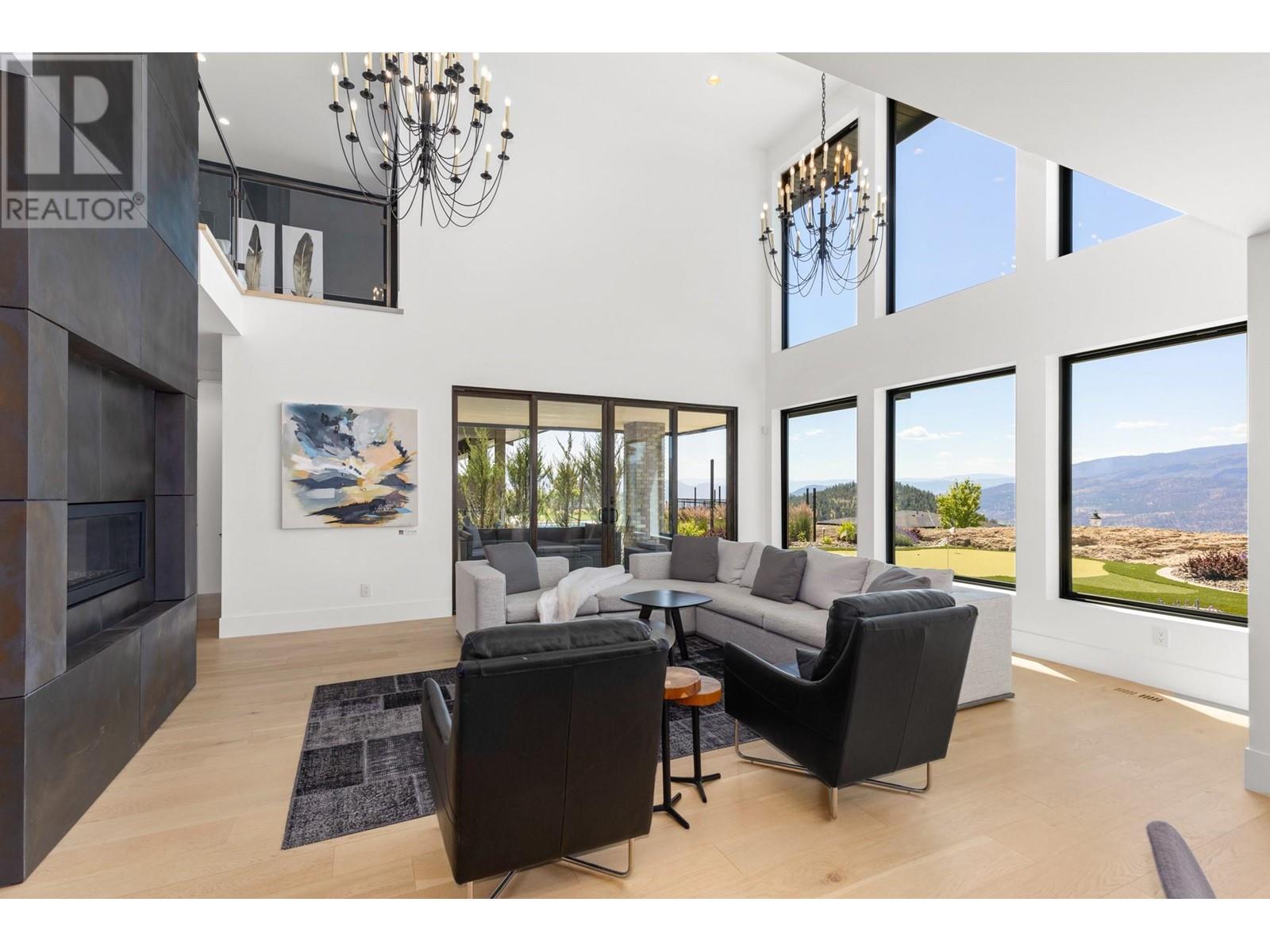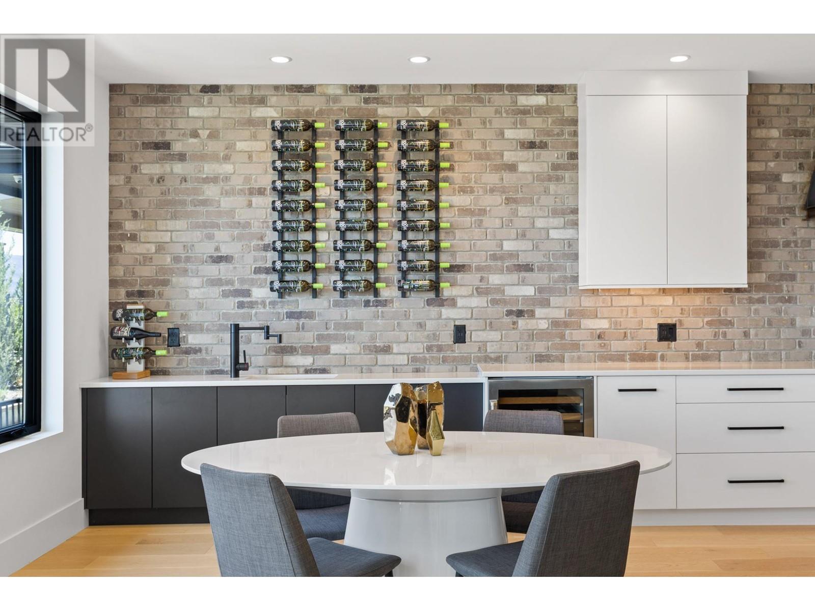 A unique opportunity in the prestigious Wilden neighbourhood, this custom built 2019 show home of the year from award winning builder Fawdry Homes will take your breath away w/sweeping 180 degree views of the Okanagan Lake + mountains.  Truly designed for entertaining, this 4 bedroom + den modern home offers an open main flr plan w/2 stories of great room windows framing the amazing views opening into the covered patio area merging into the meticulously maintained low maintenance rear yard.  Main flor features inc:  a large kitchen w/over-sized Wolf gas range, panel Sub-Zero fridge/freezer, pantry/mudroom w/tons of storage, wet bar w/beverage fridge, 2 storey linear gas fireplace, spacious great room, 3 piece bath + office/future bedroom. Upper flr offers a lg primary suite w/built-in custom bed, his/her walk-in closet, a spacious ensuite w/lg soaker tub + curbless tiled shower, left style TV area, wet bar, 1/2 bath + the lg covered deck to soak in the sweeping views.  Bsmt offers 2 full bedrooms, a 3 piece bathroom, wet bar/kitchen area however with the open design + lg windows, the potential for additional bedrooms.  Basement also offers a separate grade to basement level entrance which would all for a possible suite.  Other features include a 3 car garage, advanced heating/cooling system, underground sprinklers, solar panel system, full central vacuum w/hidden hose attachments + full security/camera system.  Full New Home Warranty inlcuded.  Potential for a pool. (id:48970)