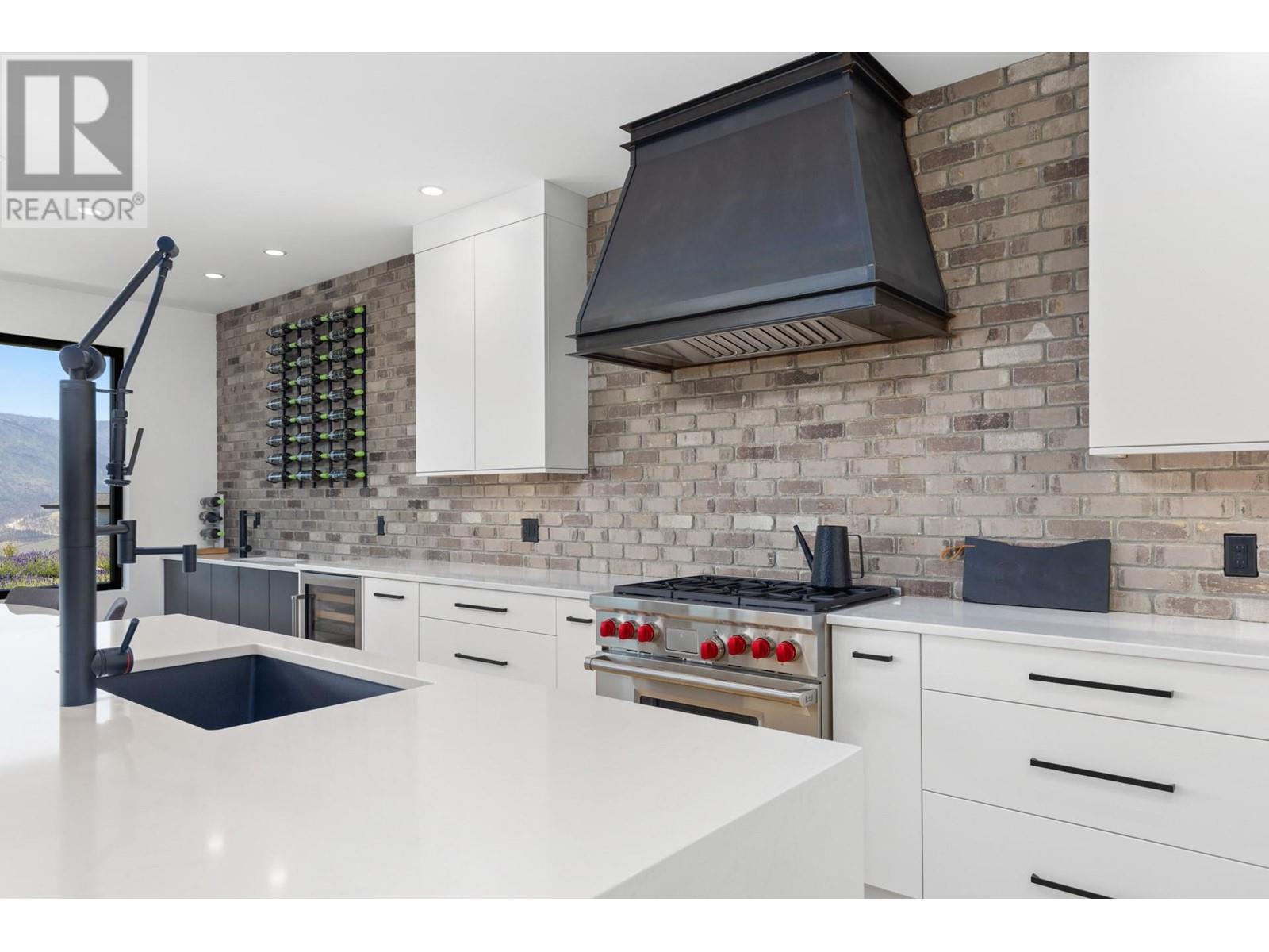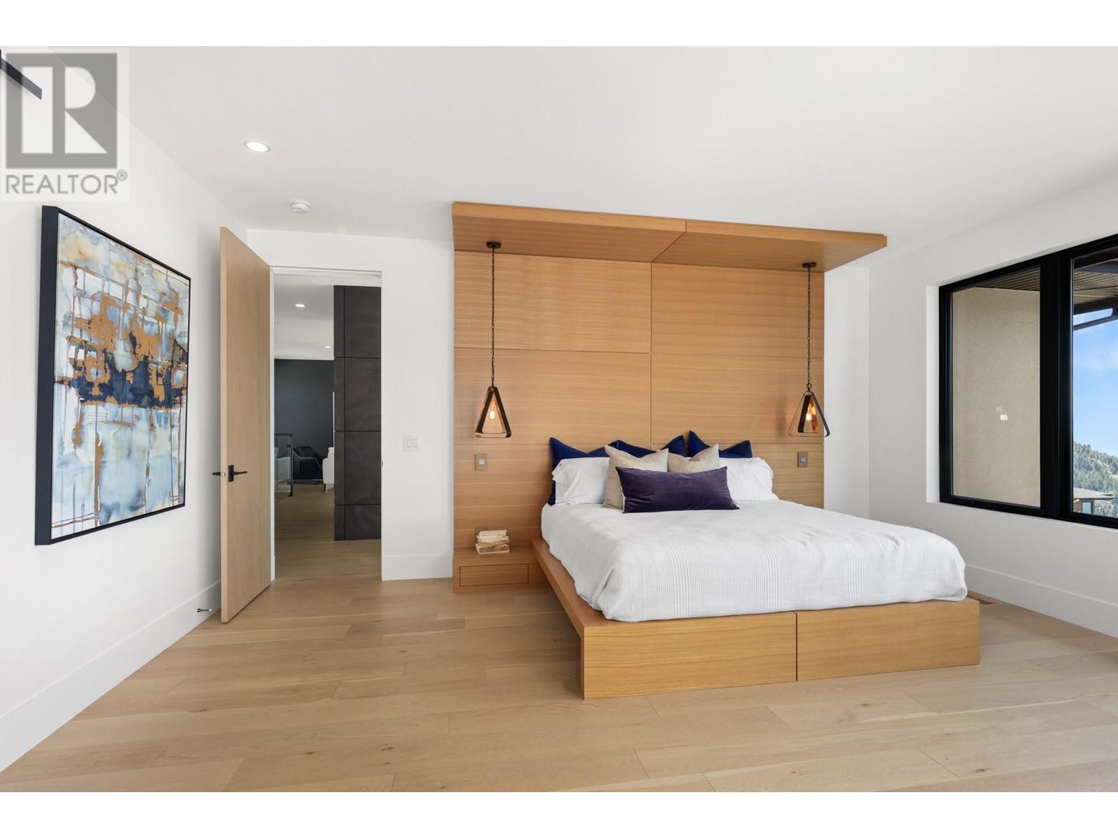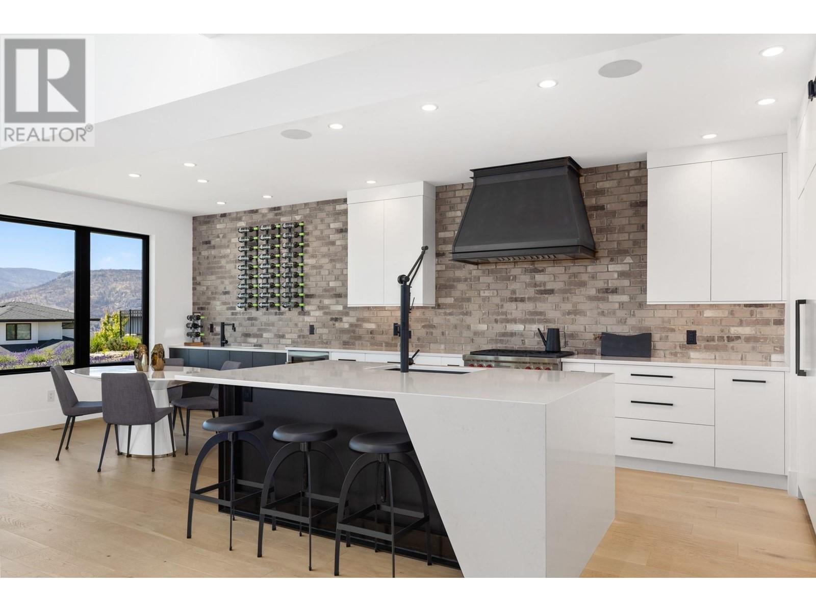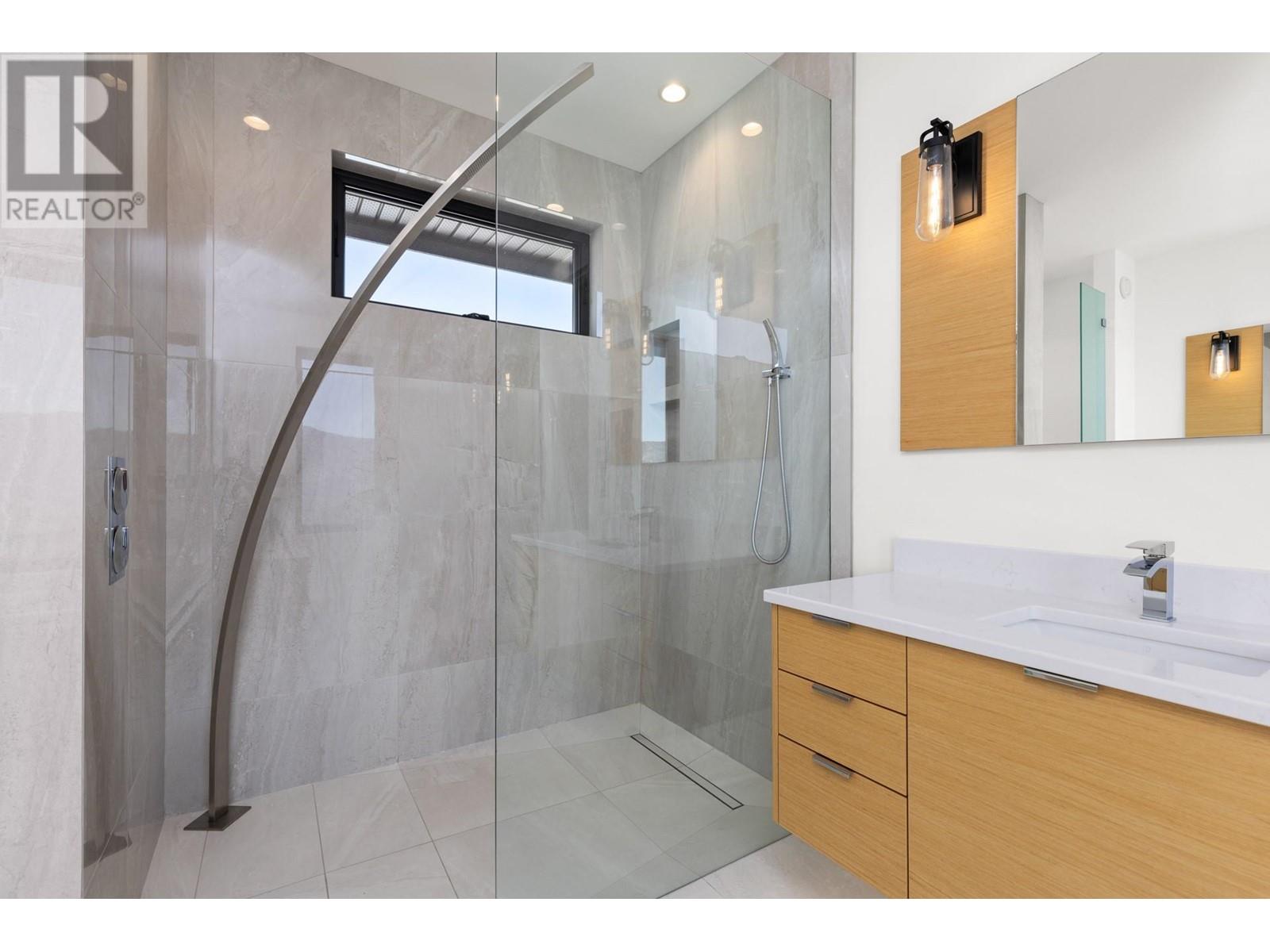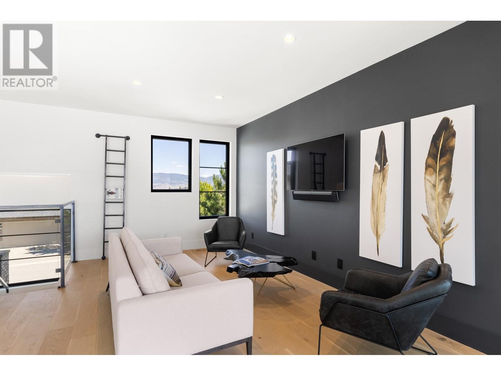 A unique opportunity in the prestigious Wilden neighbourhood, this custom built 2019 show home of the year from award winning builder Fawdry Homes will take your breath away w/sweeping 180 degree views of the Okanagan Lake + mountains.  Truly designed for entertaining, this 4 bedroom + den modern home offers an open main flr plan w/2 stories of great room windows framing the amazing views opening into the covered patio area merging into the meticulously maintained low maintenance rear yard.  Main flor features inc:  a large kitchen w/over-sized Wolf gas range, panel Sub-Zero fridge/freezer, pantry/mudroom w/tons of storage, wet bar w/beverage fridge, 2 storey linear gas fireplace, spacious great room, 3 piece bath + office/future bedroom. Upper flr offers a lg primary suite w/built-in custom bed, his/her walk-in closet, a spacious ensuite w/lg soaker tub + curbless tiled shower, left style TV area, wet bar, 1/2 bath + the lg covered deck to soak in the sweeping views.  Bsmt offers 2 full bedrooms, a 3 piece bathroom, wet bar/kitchen area however with the open design + lg windows, the potential for additional bedrooms.  Basement also offers a separate grade to basement level entrance which would all for a possible suite.  Other features include a 3 car garage, advanced heating/cooling system, underground sprinklers, solar panel system, full central vacuum w/hidden hose attachments + full security/camera system.  Full New Home Warranty inlcuded.  Potential for a pool. (id:48970)