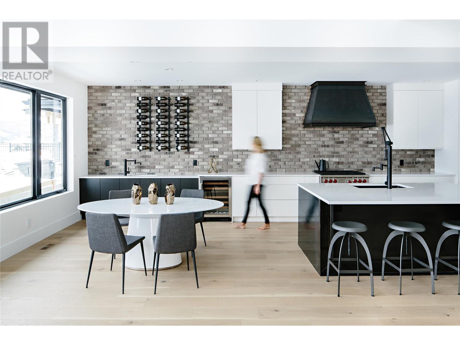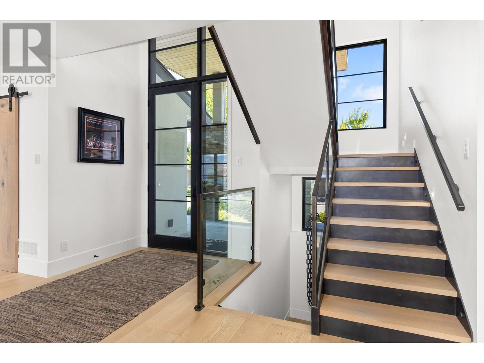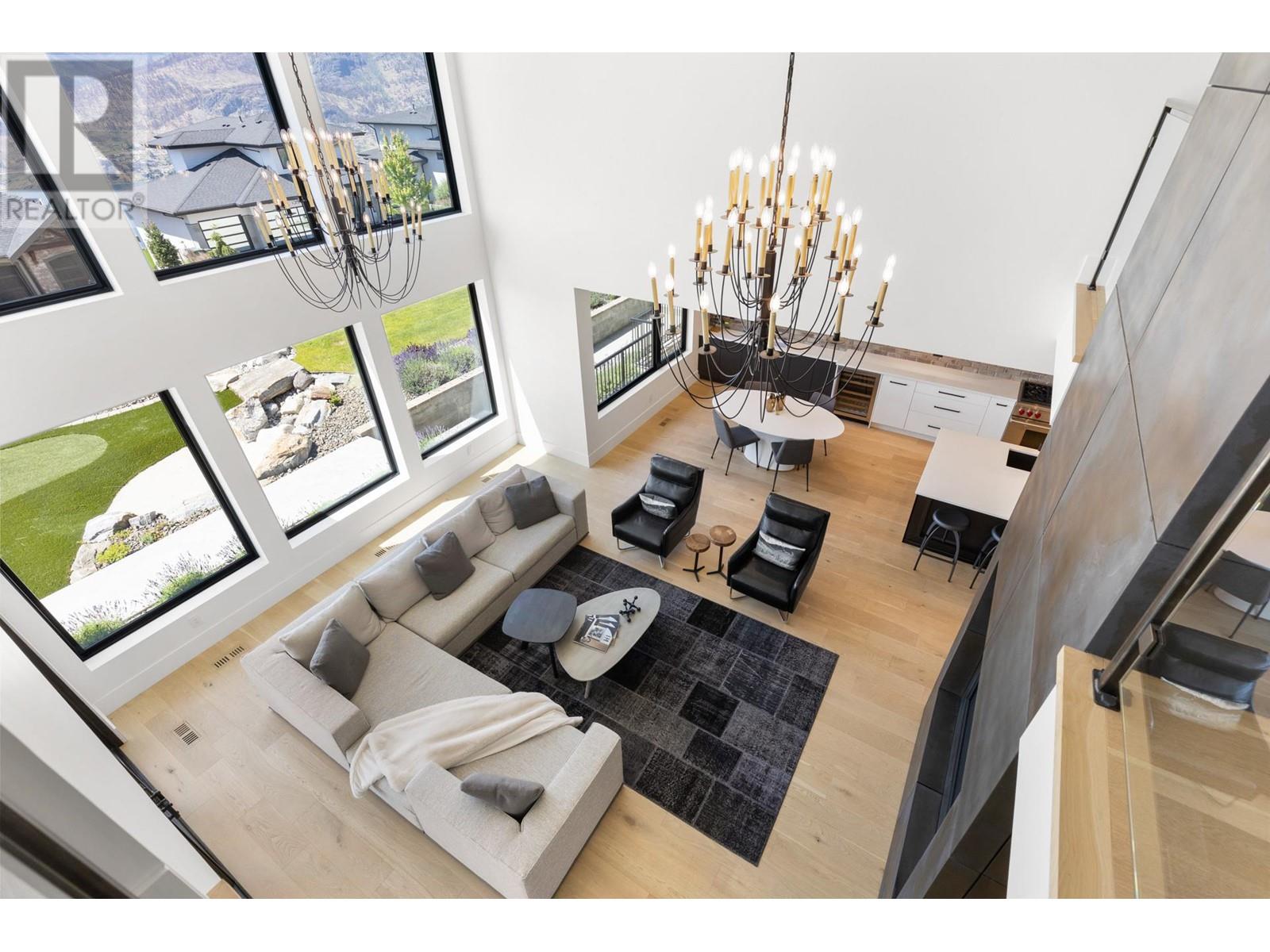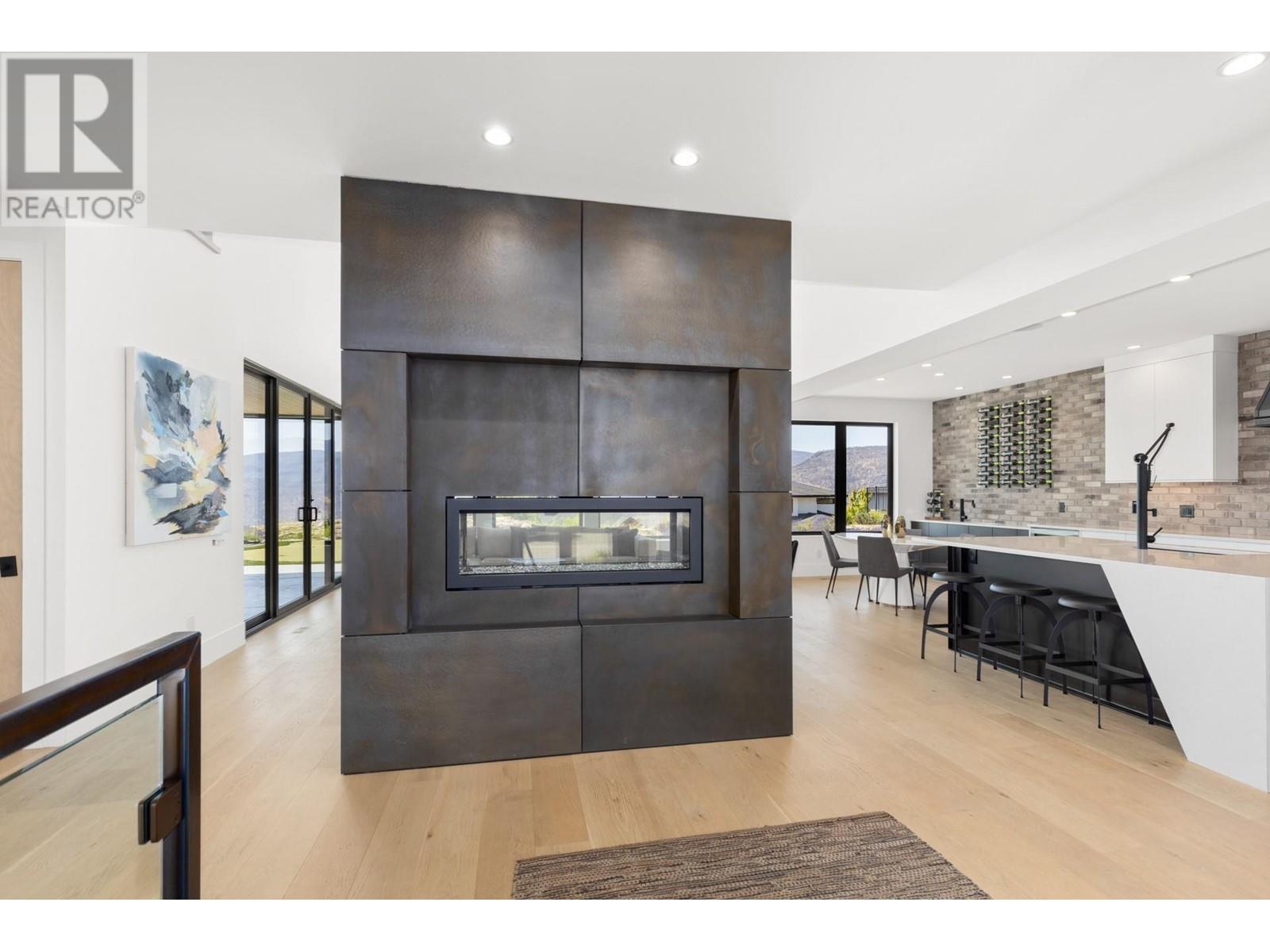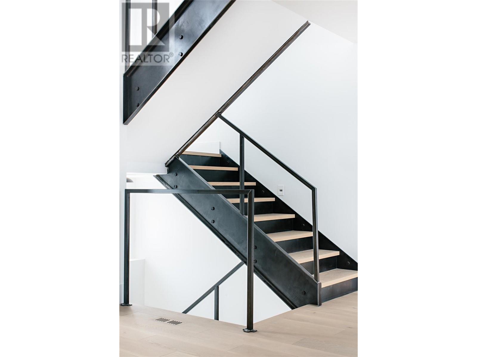 A unique opportunity in the prestigious Wilden neighbourhood, this custom built 2019 show home of the year from award winning builder Fawdry Homes will take your breath away w/sweeping 180 degree views of the Okanagan Lake + mountains.  Truly designed for entertaining, this 4 bedroom + den modern home offers an open main flr plan w/2 stories of great room windows framing the amazing views opening into the covered patio area merging into the meticulously maintained low maintenance rear yard.  Main flor features inc:  a large kitchen w/over-sized Wolf gas range, panel Sub-Zero fridge/freezer, pantry/mudroom w/tons of storage, wet bar w/beverage fridge, 2 storey linear gas fireplace, spacious great room, 3 piece bath + office/future bedroom. Upper flr offers a lg primary suite w/built-in custom bed, his/her walk-in closet, a spacious ensuite w/lg soaker tub + curbless tiled shower, left style TV area, wet bar, 1/2 bath + the lg covered deck to soak in the sweeping views.  Bsmt offers 2 full bedrooms, a 3 piece bathroom, wet bar/kitchen area however with the open design + lg windows, the potential for additional bedrooms.  Basement also offers a separate grade to basement level entrance which would all for a possible suite.  Other features include a 3 car garage, advanced heating/cooling system, underground sprinklers, solar panel system, full central vacuum w/hidden hose attachments + full security/camera system.  Full New Home Warranty inlcuded.  Potential for a pool. (id:48970)