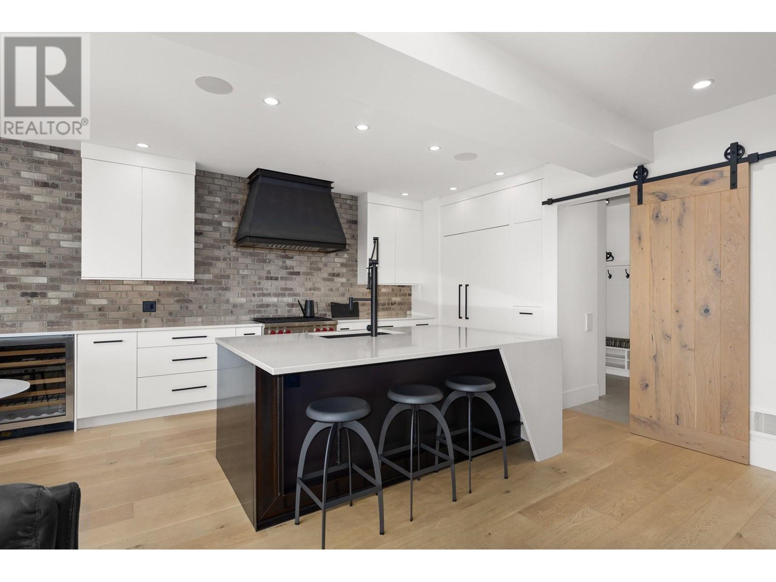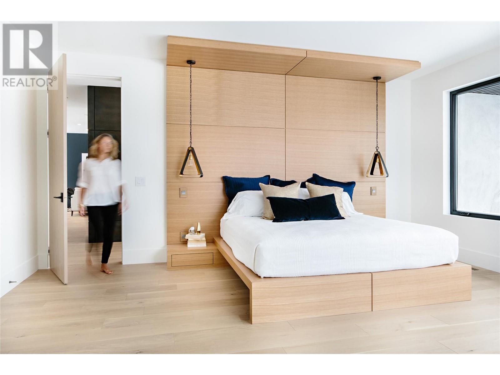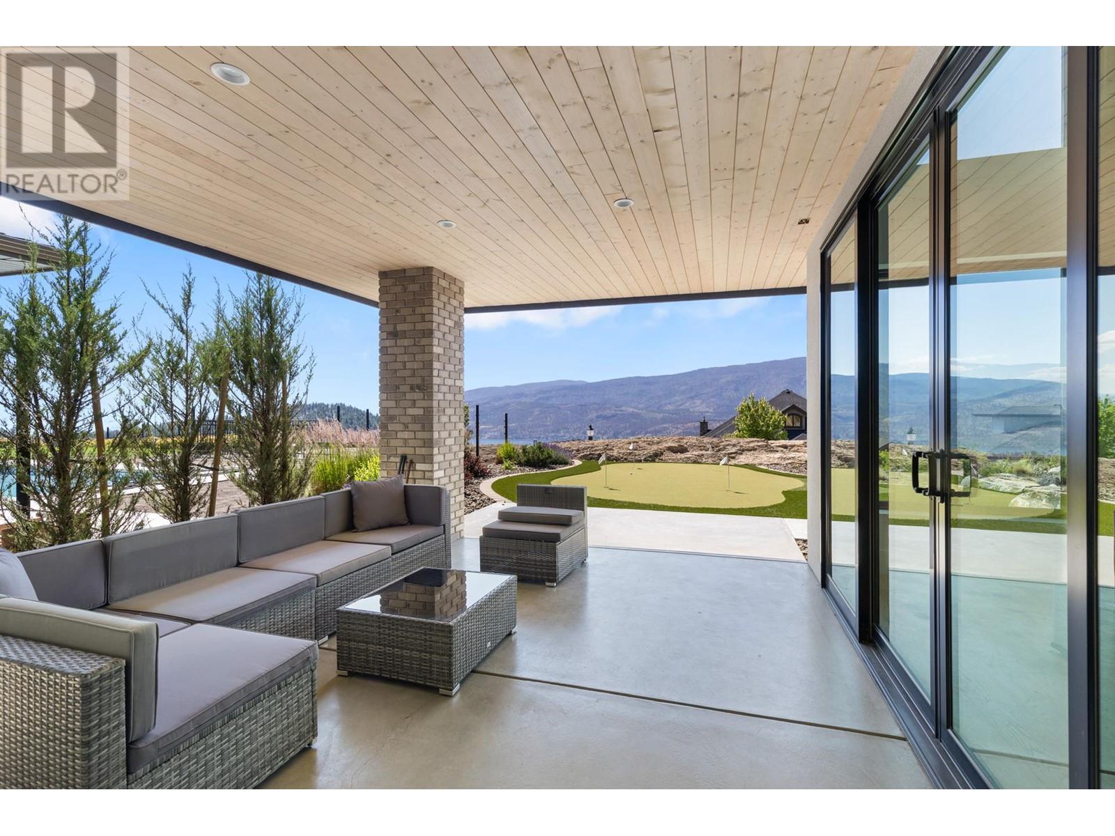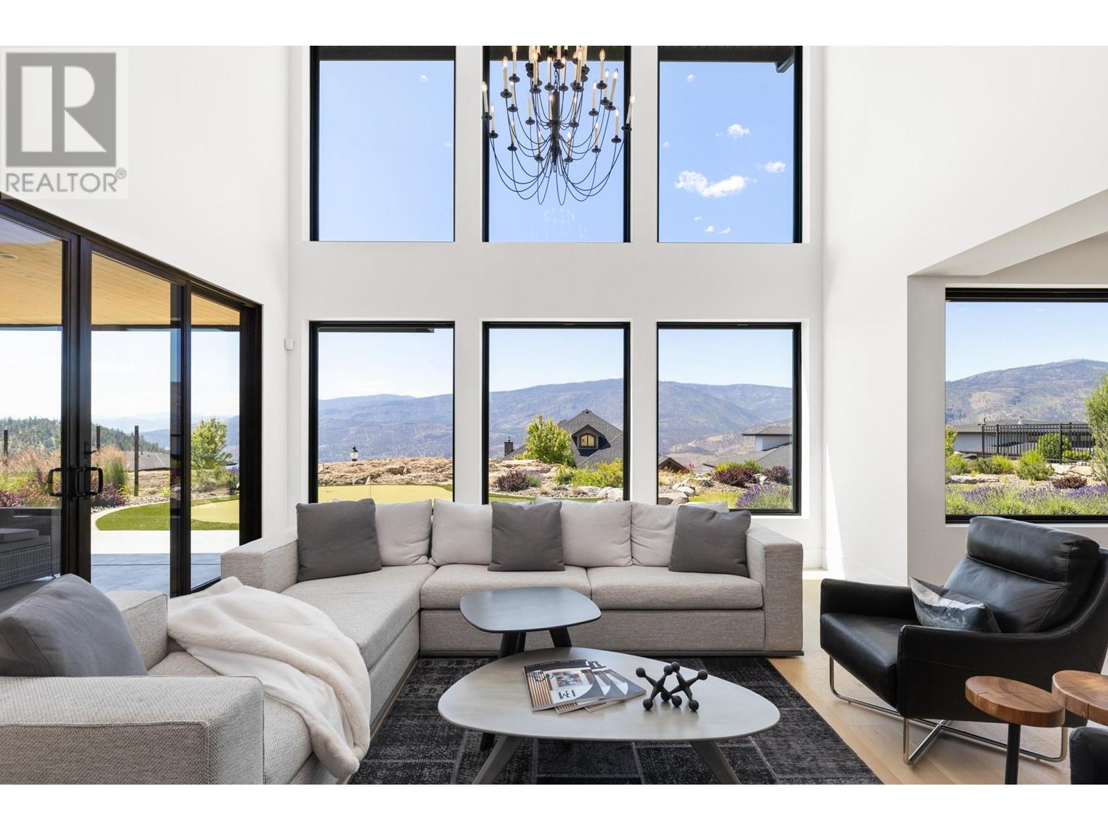 A unique opportunity in the prestigious Wilden neighbourhood, this custom built 2019 show home of the year from award winning builder Fawdry Homes will take your breath away w/sweeping 180 degree views of the Okanagan Lake + mountains.  Truly designed for entertaining, this 4 bedroom + den modern home offers an open main flr plan w/2 stories of great room windows framing the amazing views opening into the covered patio area merging into the meticulously maintained low maintenance rear yard.  Main flor features inc:  a large kitchen w/over-sized Wolf gas range, panel Sub-Zero fridge/freezer, pantry/mudroom w/tons of storage, wet bar w/beverage fridge, 2 storey linear gas fireplace, spacious great room, 3 piece bath + office/future bedroom. Upper flr offers a lg primary suite w/built-in custom bed, his/her walk-in closet, a spacious ensuite w/lg soaker tub + curbless tiled shower, left style TV area, wet bar, 1/2 bath + the lg covered deck to soak in the sweeping views.  Bsmt offers 2 full bedrooms, a 3 piece bathroom, wet bar/kitchen area however with the open design + lg windows, the potential for additional bedrooms.  Basement also offers a separate grade to basement level entrance which would all for a possible suite.  Other features include a 3 car garage, advanced heating/cooling system, underground sprinklers, solar panel system, full central vacuum w/hidden hose attachments + full security/camera system.  Full New Home Warranty inlcuded.  Potential for a pool. (id:48970)