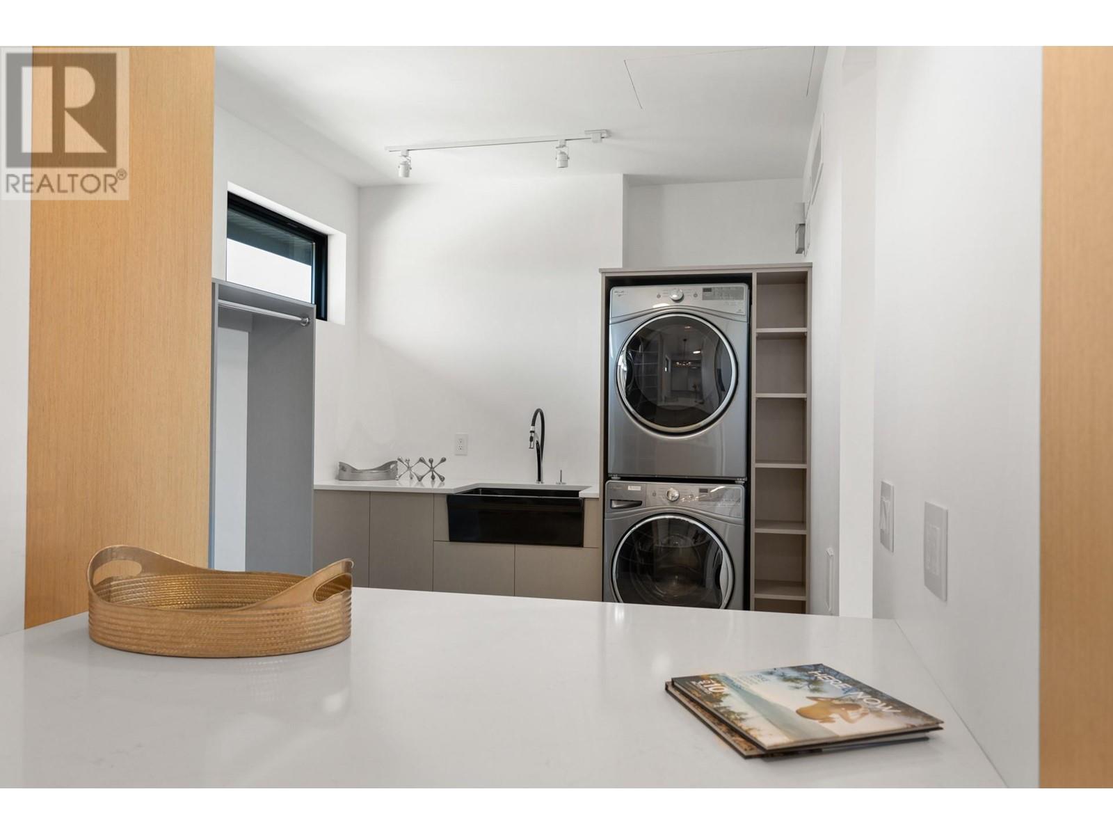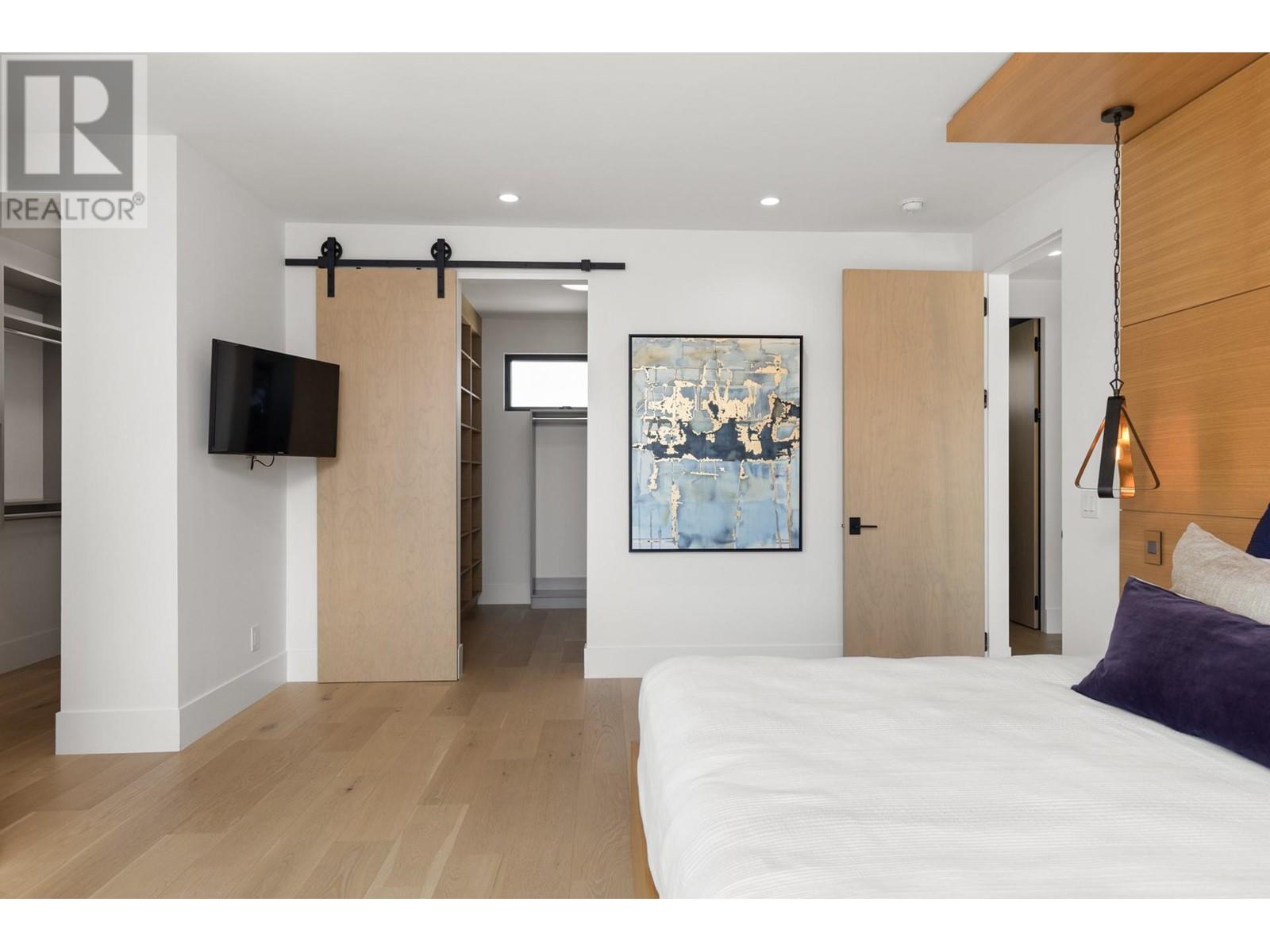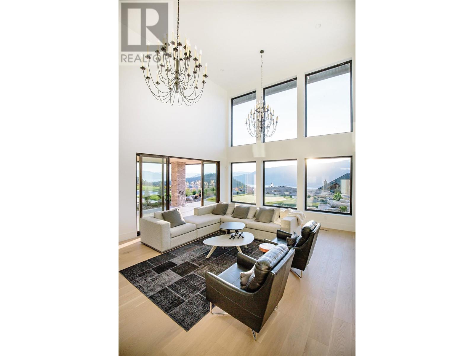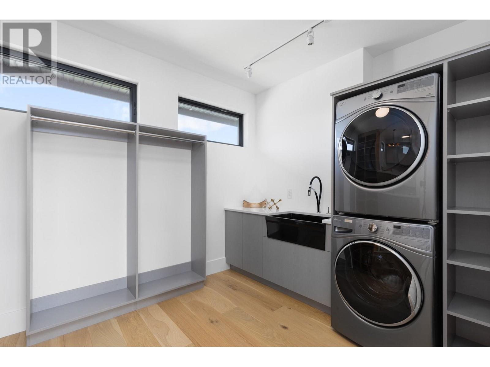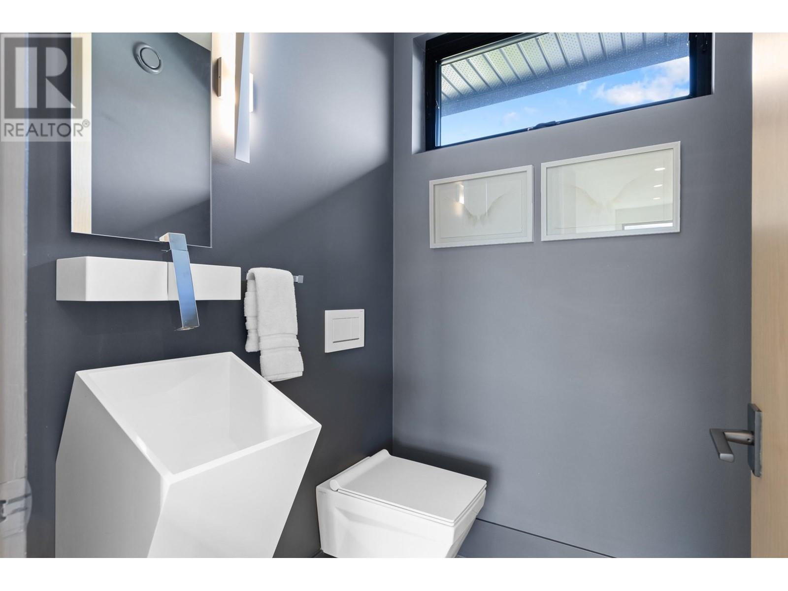 A unique opportunity in the prestigious Wilden neighbourhood, this custom built 2019 show home of the year from award winning builder Fawdry Homes will take your breath away w/sweeping 180 degree views of the Okanagan Lake + mountains.  Truly designed for entertaining, this 4 bedroom + den modern home offers an open main flr plan w/2 stories of great room windows framing the amazing views opening into the covered patio area merging into the meticulously maintained low maintenance rear yard.  Main flor features inc:  a large kitchen w/over-sized Wolf gas range, panel Sub-Zero fridge/freezer, pantry/mudroom w/tons of storage, wet bar w/beverage fridge, 2 storey linear gas fireplace, spacious great room, 3 piece bath + office/future bedroom. Upper flr offers a lg primary suite w/built-in custom bed, his/her walk-in closet, a spacious ensuite w/lg soaker tub + curbless tiled shower, left style TV area, wet bar, 1/2 bath + the lg covered deck to soak in the sweeping views.  Bsmt offers 2 full bedrooms, a 3 piece bathroom, wet bar/kitchen area however with the open design + lg windows, the potential for additional bedrooms.  Basement also offers a separate grade to basement level entrance which would all for a possible suite.  Other features include a 3 car garage, advanced heating/cooling system, underground sprinklers, solar panel system, full central vacuum w/hidden hose attachments + full security/camera system.  Full New Home Warranty inlcuded.  Potential for a pool. (id:48970)