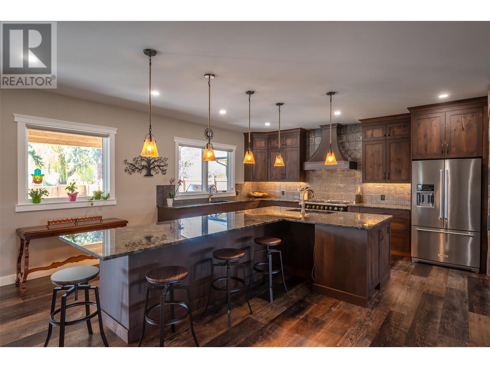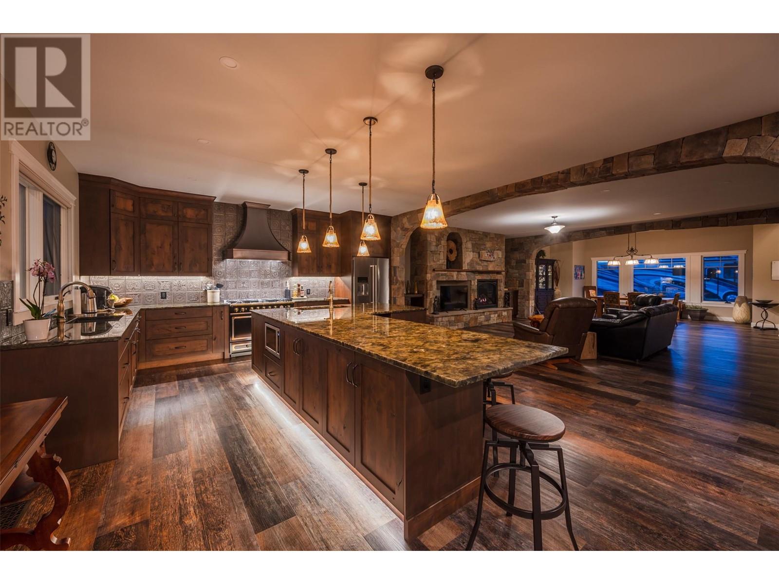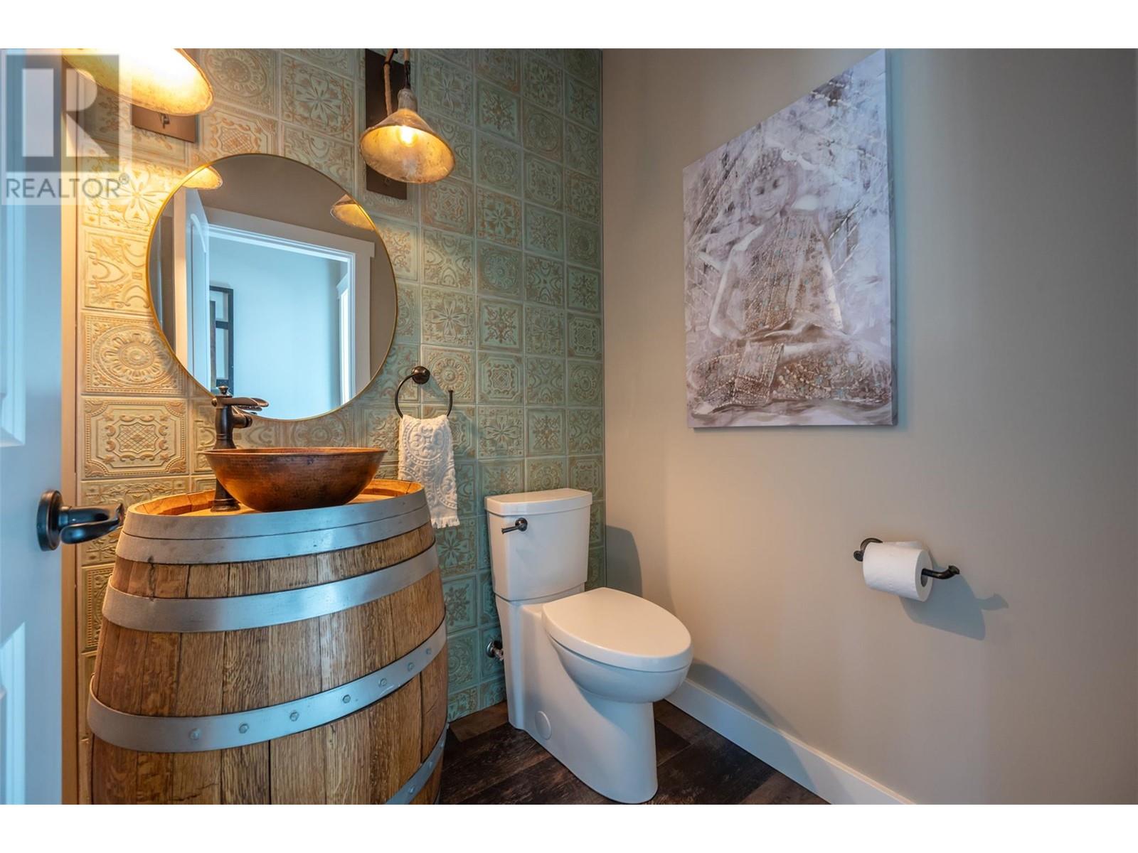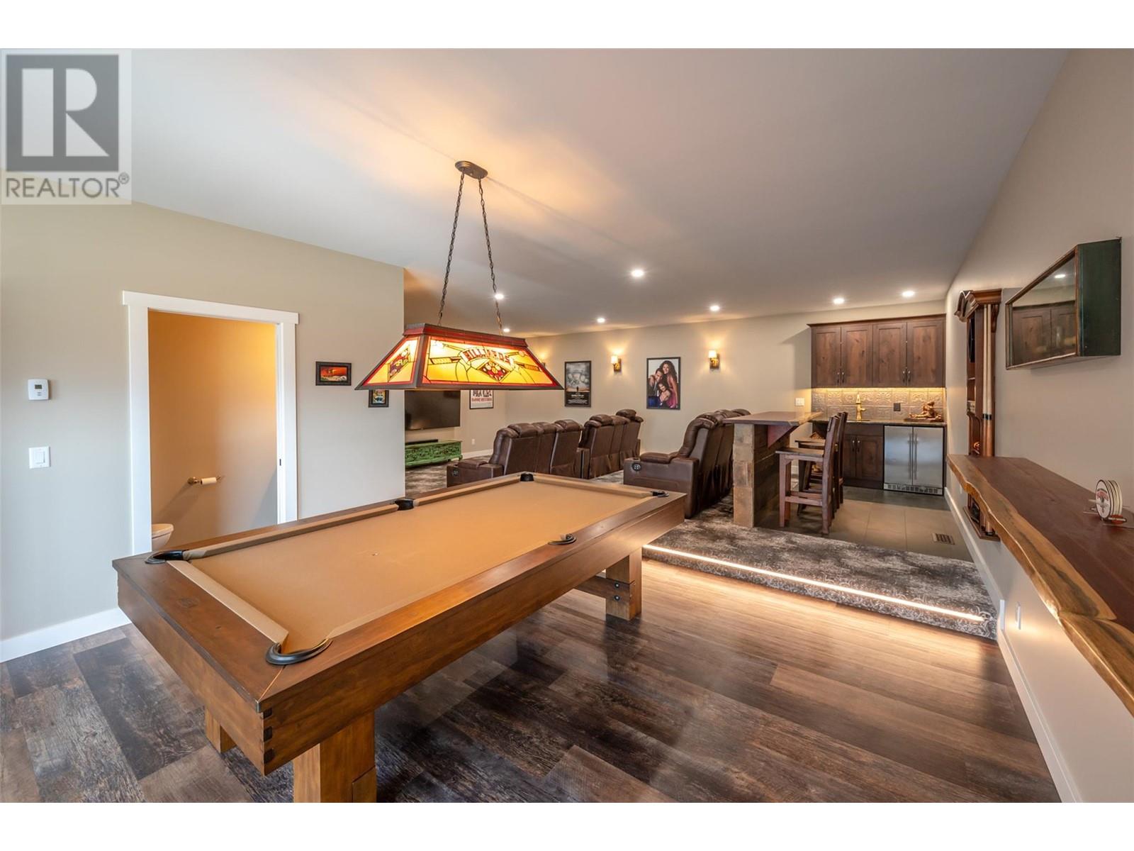 The complete package, welcome to luxury living at its finest in Trout Creek, Summerland. Built in 2021, this one-of-a-kind home is a dream come true for a car enthusiasts & those who appreciate exquisite craftsmanship. The main floor welcomes you to the dining & living rooms, featuring a gas fireplace w/walnut mantle & stone wall. Prepare to be amazed by the spacious chef's kitchen, equipped w/ custom alder solid wood cabinets, azul granite counters & oversized island. La Comue 110 dual fuel oven is a chef's delight. Custom stone wine room w/solid walnut door & temperature-controlled chilling for your wine collection. Den & 2 piece bath w/wine barrel cabinet & copper sink. Radiant in-floor heating ensures comfort throughout the entire home. Upstairs primary bedroom, complete w/ ensuite w/a custom tile shower, dual sinks & spacious walk-in closet w/stacking washer/dryer. Two additional bedrooms each w/ walk-in closets & full ensuites. Rec room is an entertainment hub, home theatre w/ stepped seating, wet bar, pool table & flex space & 2- piece bath. Step outside to your back patio w/ a full outdoor kitchen, perfect for entertaining. Hot tub completes the package. Multiple parking options w/ an oversized double garage & 3-bay shop. Above the shop is a legal 1-bed, 1 bath carriage house. This home must be experienced in person to be fully appreciated. Book your showing today. (id:48970)