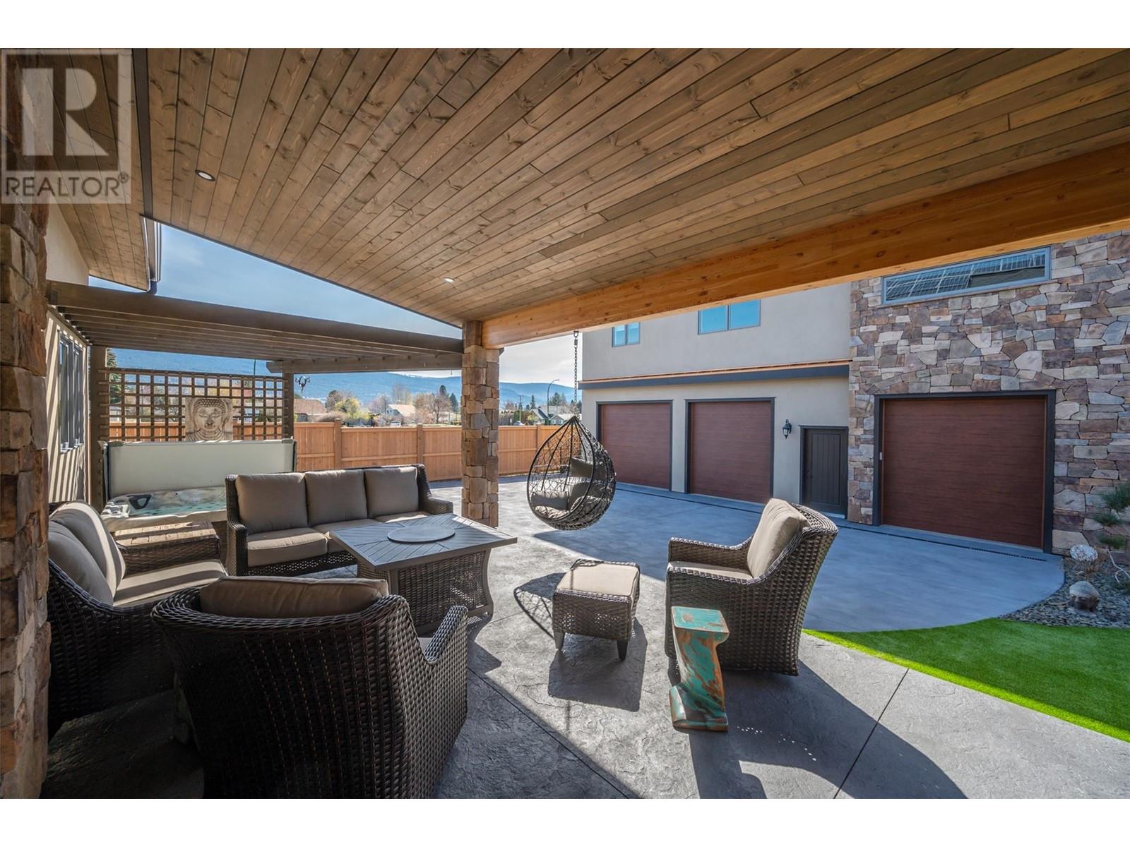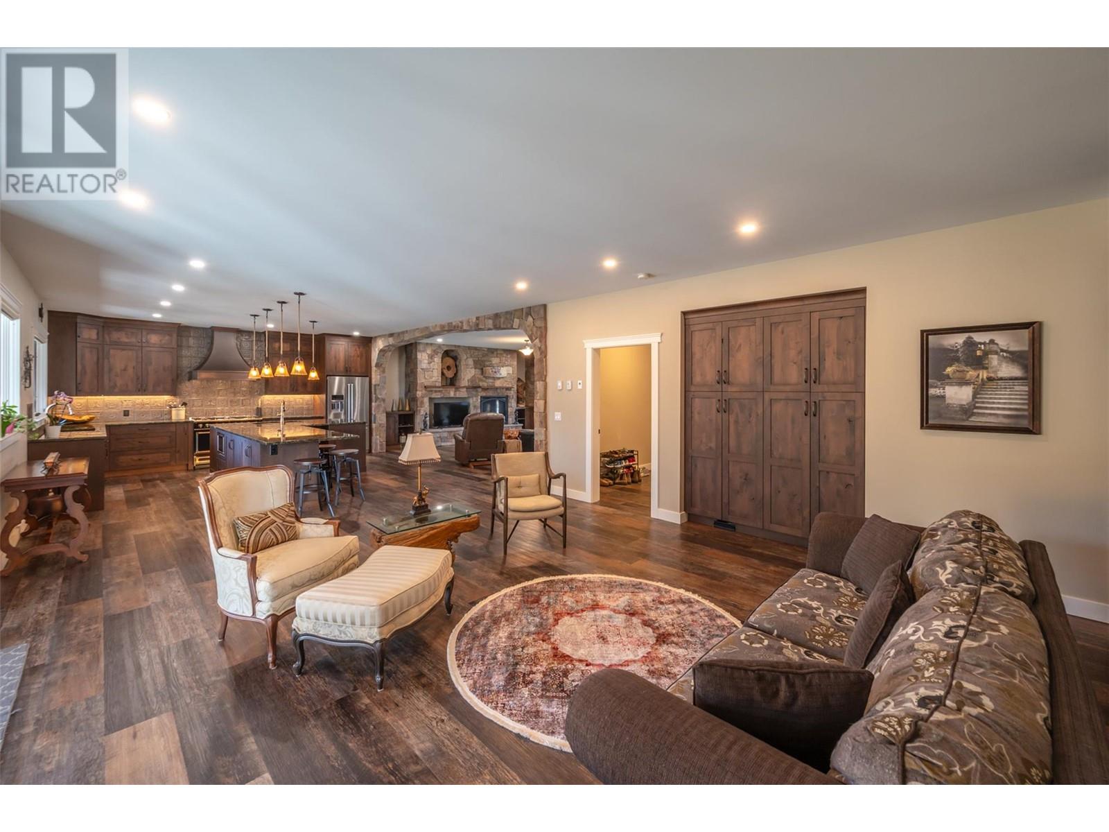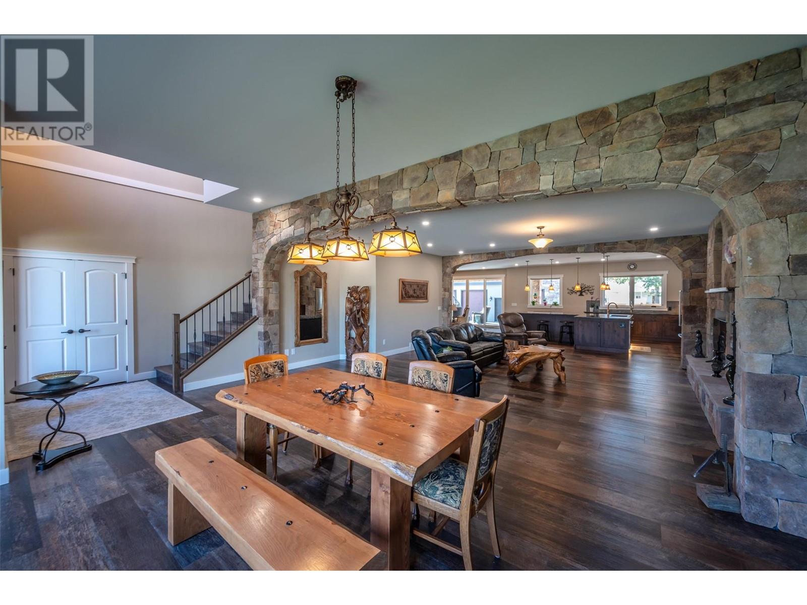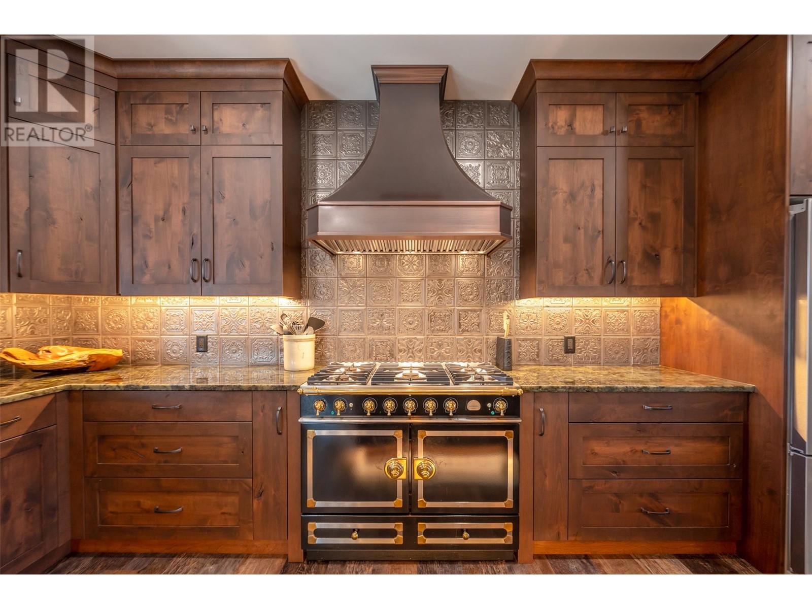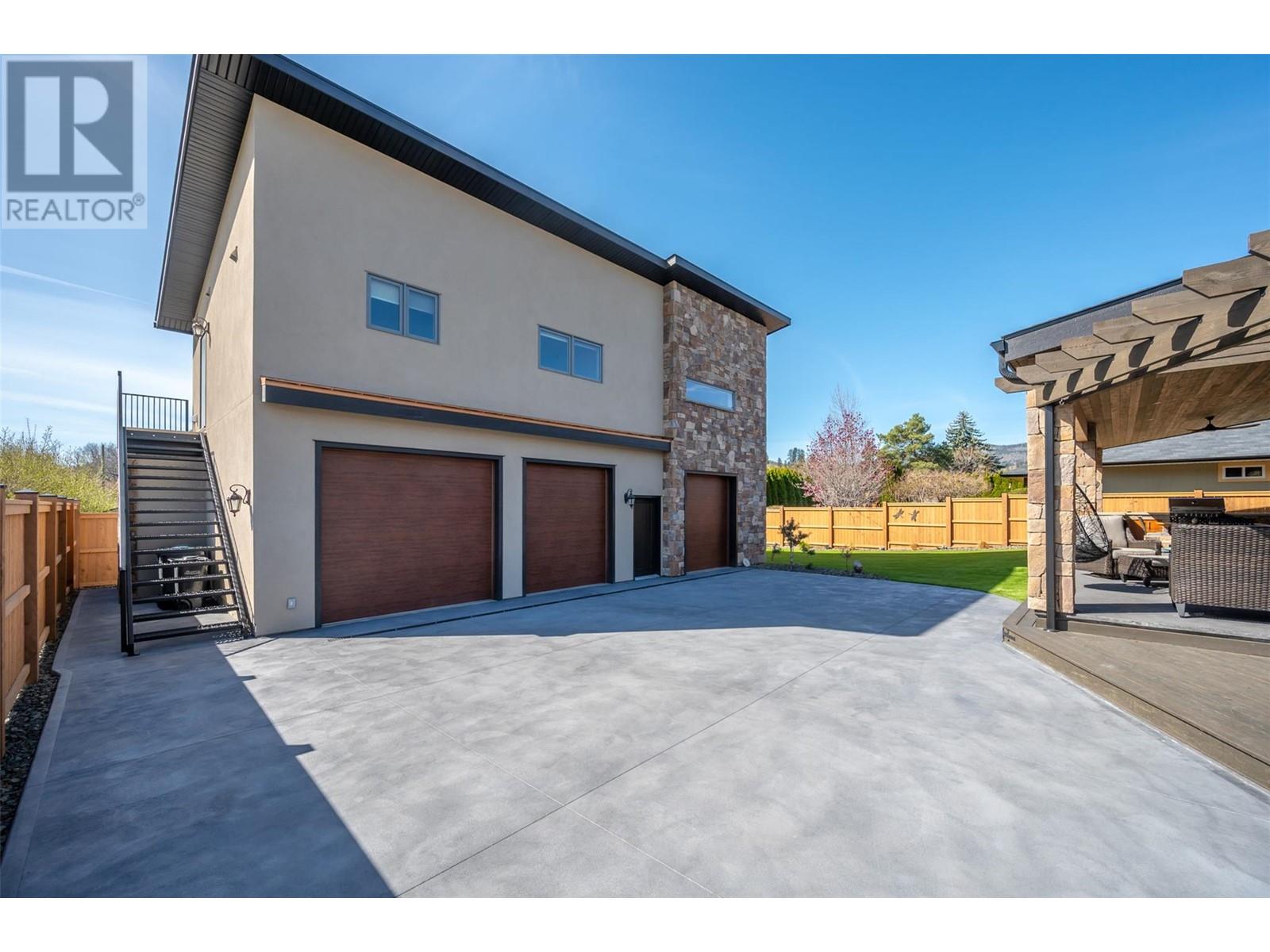 The complete package, welcome to luxury living at its finest in Trout Creek, Summerland. Built in 2021, this one-of-a-kind home is a dream come true for a car enthusiasts & those who appreciate exquisite craftsmanship. The main floor welcomes you to the dining & living rooms, featuring a gas fireplace w/walnut mantle & stone wall. Prepare to be amazed by the spacious chef's kitchen, equipped w/ custom alder solid wood cabinets, azul granite counters & oversized island. La Comue 110 dual fuel oven is a chef's delight. Custom stone wine room w/solid walnut door & temperature-controlled chilling for your wine collection. Den & 2 piece bath w/wine barrel cabinet & copper sink. Radiant in-floor heating ensures comfort throughout the entire home. Upstairs primary bedroom, complete w/ ensuite w/a custom tile shower, dual sinks & spacious walk-in closet w/stacking washer/dryer. Two additional bedrooms each w/ walk-in closets & full ensuites. Rec room is an entertainment hub, home theatre w/ stepped seating, wet bar, pool table & flex space & 2- piece bath. Step outside to your back patio w/ a full outdoor kitchen, perfect for entertaining. Hot tub completes the package. Multiple parking options w/ an oversized double garage & 3-bay shop. Above the shop is a legal 1-bed, 1 bath carriage house. This home must be experienced in person to be fully appreciated. Book your showing today. (id:48970)