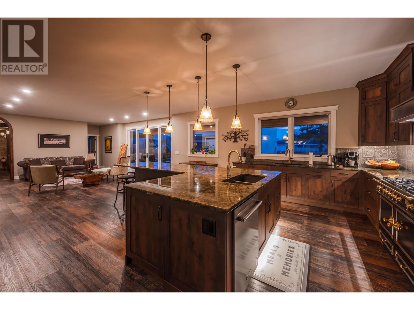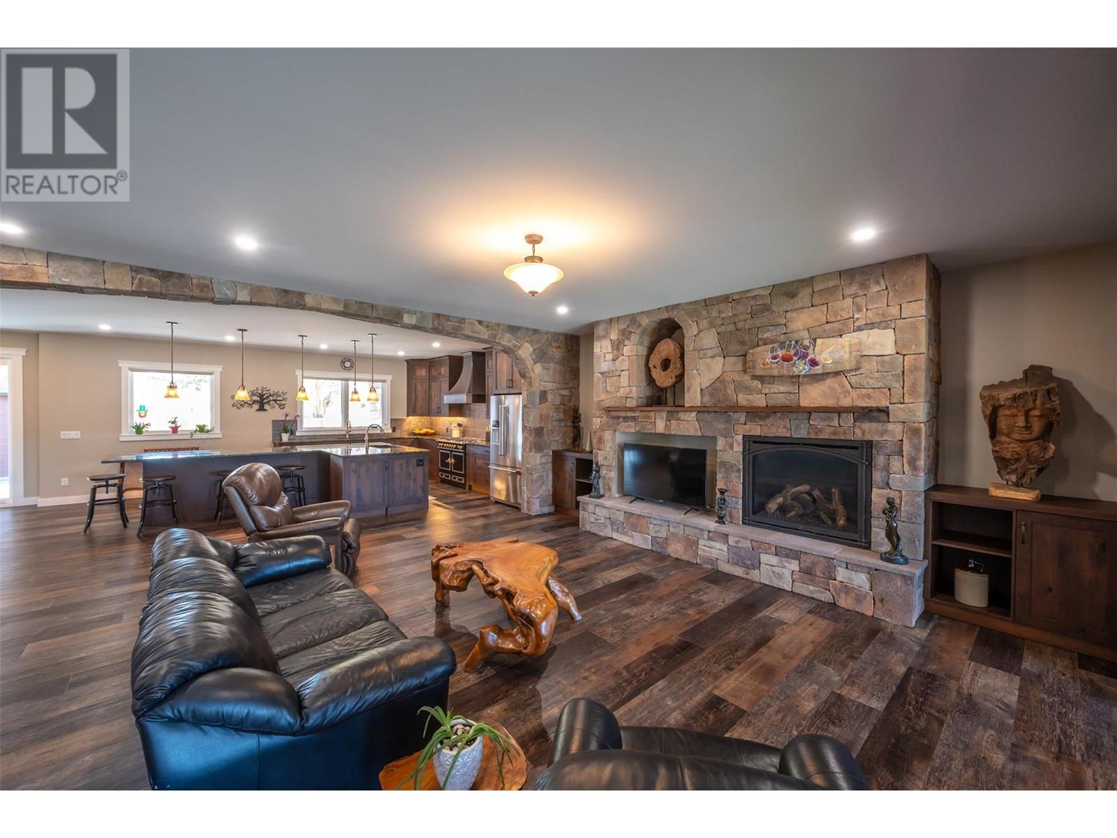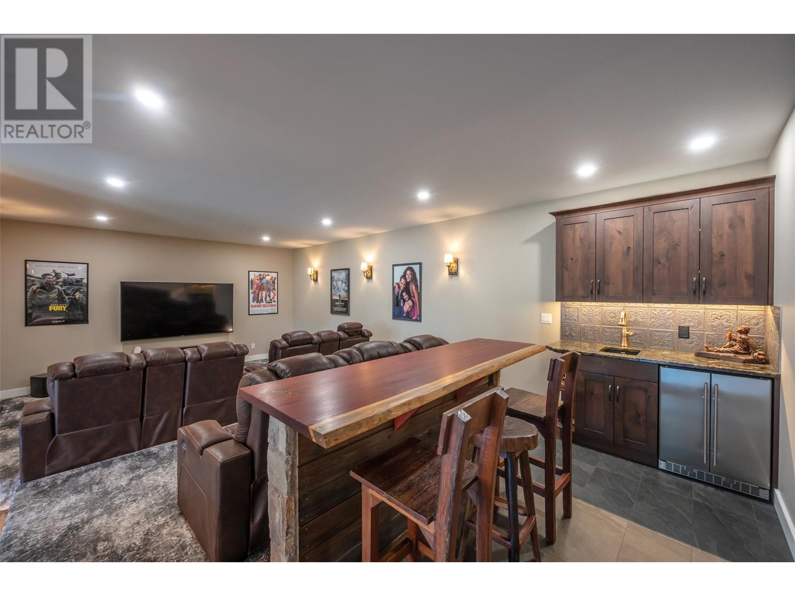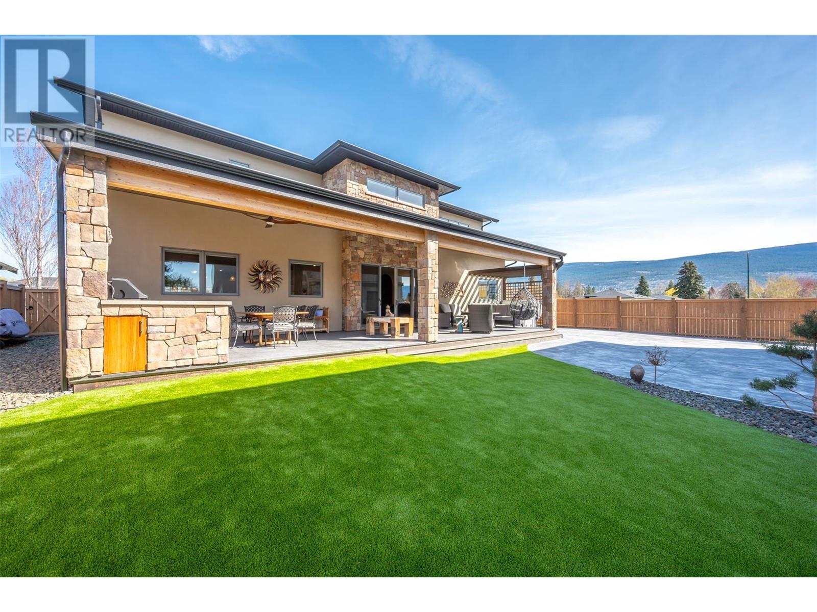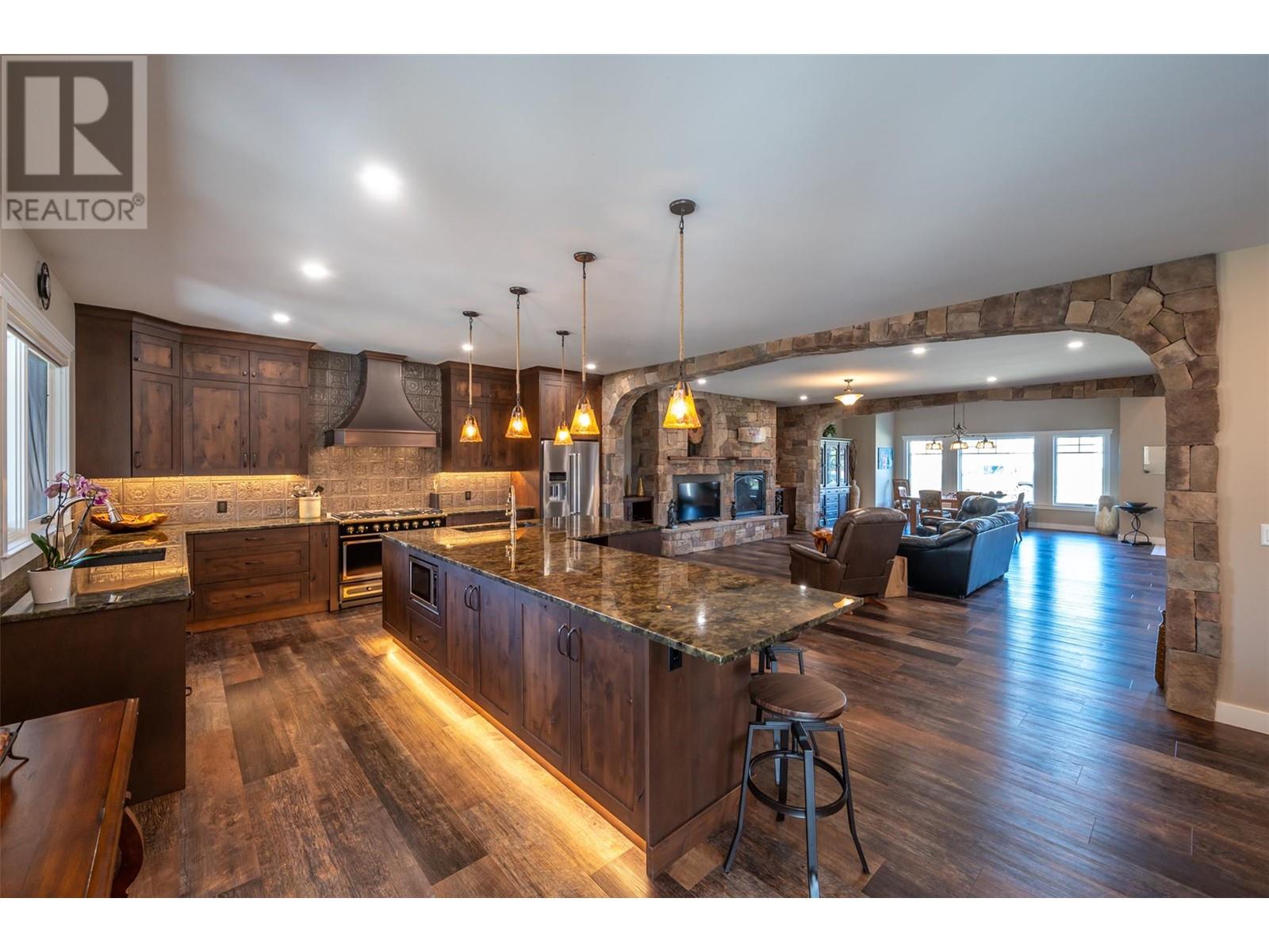 The complete package, welcome to luxury living at its finest in Trout Creek, Summerland. Built in 2021, this one-of-a-kind home is a dream come true for a car enthusiasts & those who appreciate exquisite craftsmanship. The main floor welcomes you to the dining & living rooms, featuring a gas fireplace w/walnut mantle & stone wall. Prepare to be amazed by the spacious chef's kitchen, equipped w/ custom alder solid wood cabinets, azul granite counters & oversized island. La Comue 110 dual fuel oven is a chef's delight. Custom stone wine room w/solid walnut door & temperature-controlled chilling for your wine collection. Den & 2 piece bath w/wine barrel cabinet & copper sink. Radiant in-floor heating ensures comfort throughout the entire home. Upstairs primary bedroom, complete w/ ensuite w/a custom tile shower, dual sinks & spacious walk-in closet w/stacking washer/dryer. Two additional bedrooms each w/ walk-in closets & full ensuites. Rec room is an entertainment hub, home theatre w/ stepped seating, wet bar, pool table & flex space & 2- piece bath. Step outside to your back patio w/ a full outdoor kitchen, perfect for entertaining. Hot tub completes the package. Multiple parking options w/ an oversized double garage & 3-bay shop. Above the shop is a legal 1-bed, 1 bath carriage house. This home must be experienced in person to be fully appreciated. Book your showing today. (id:48970)