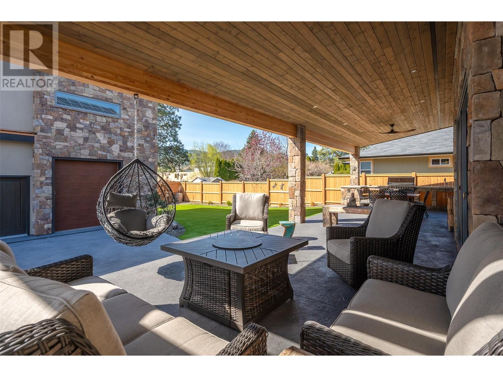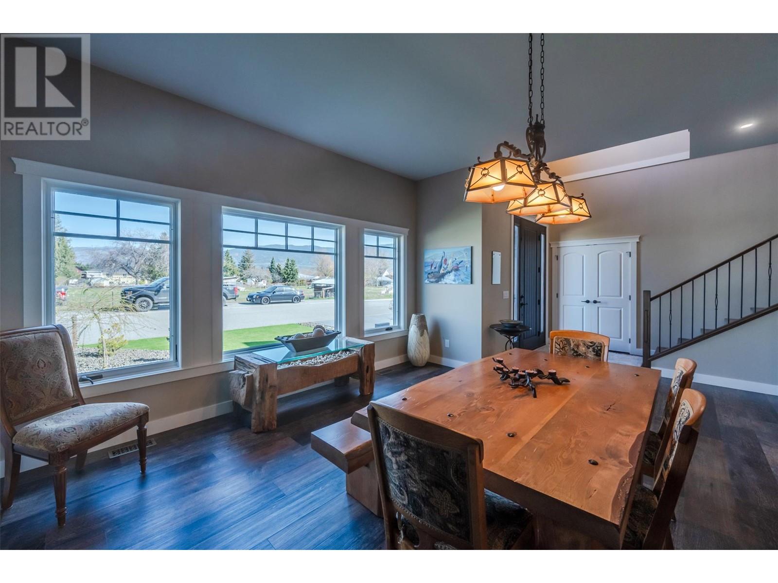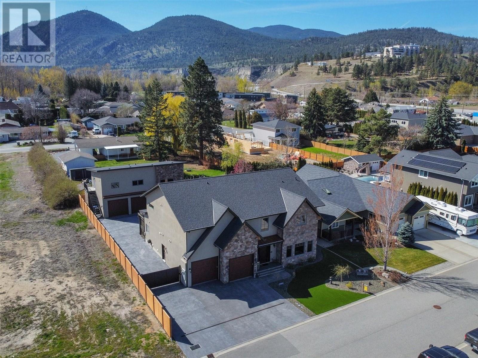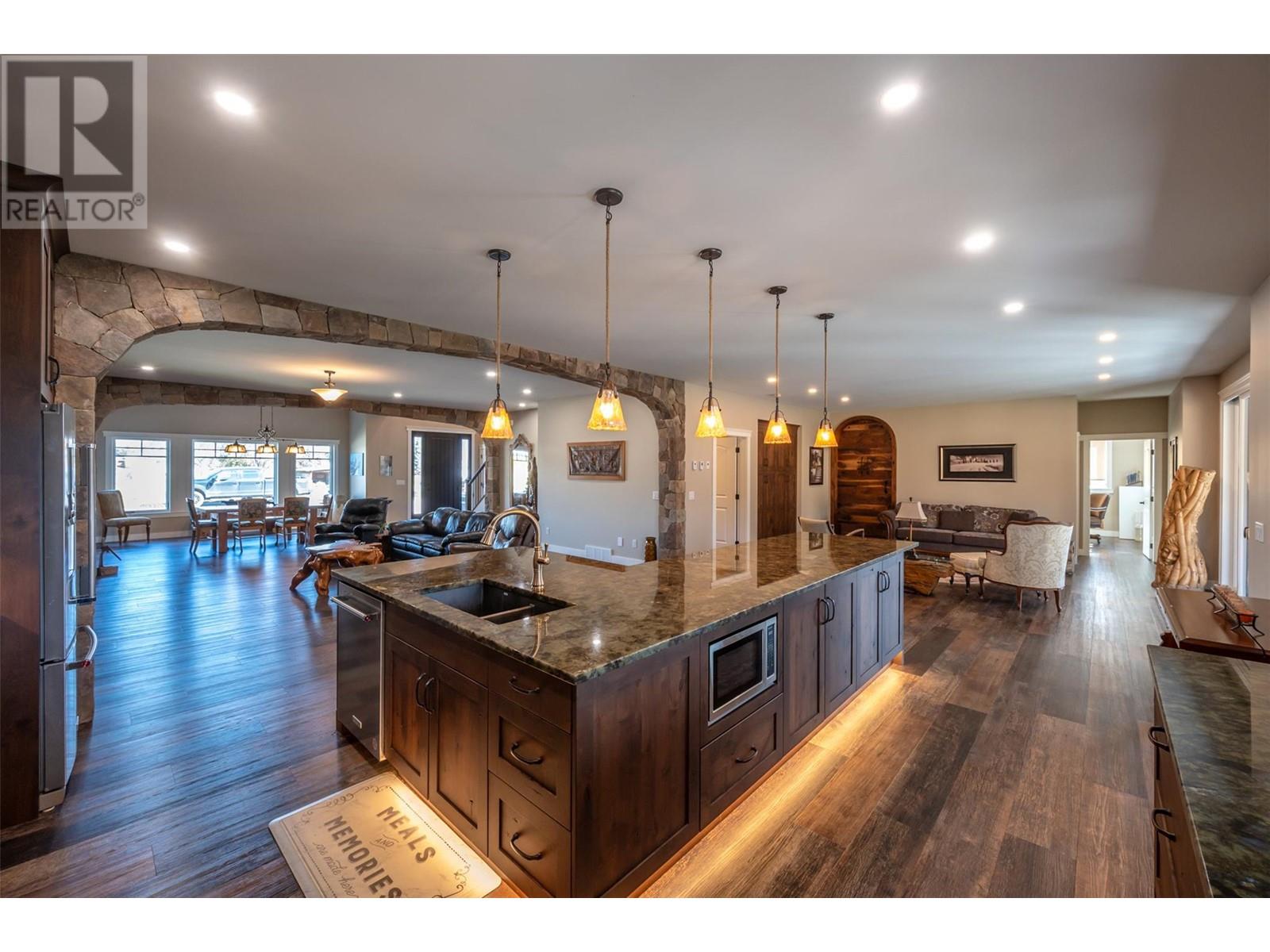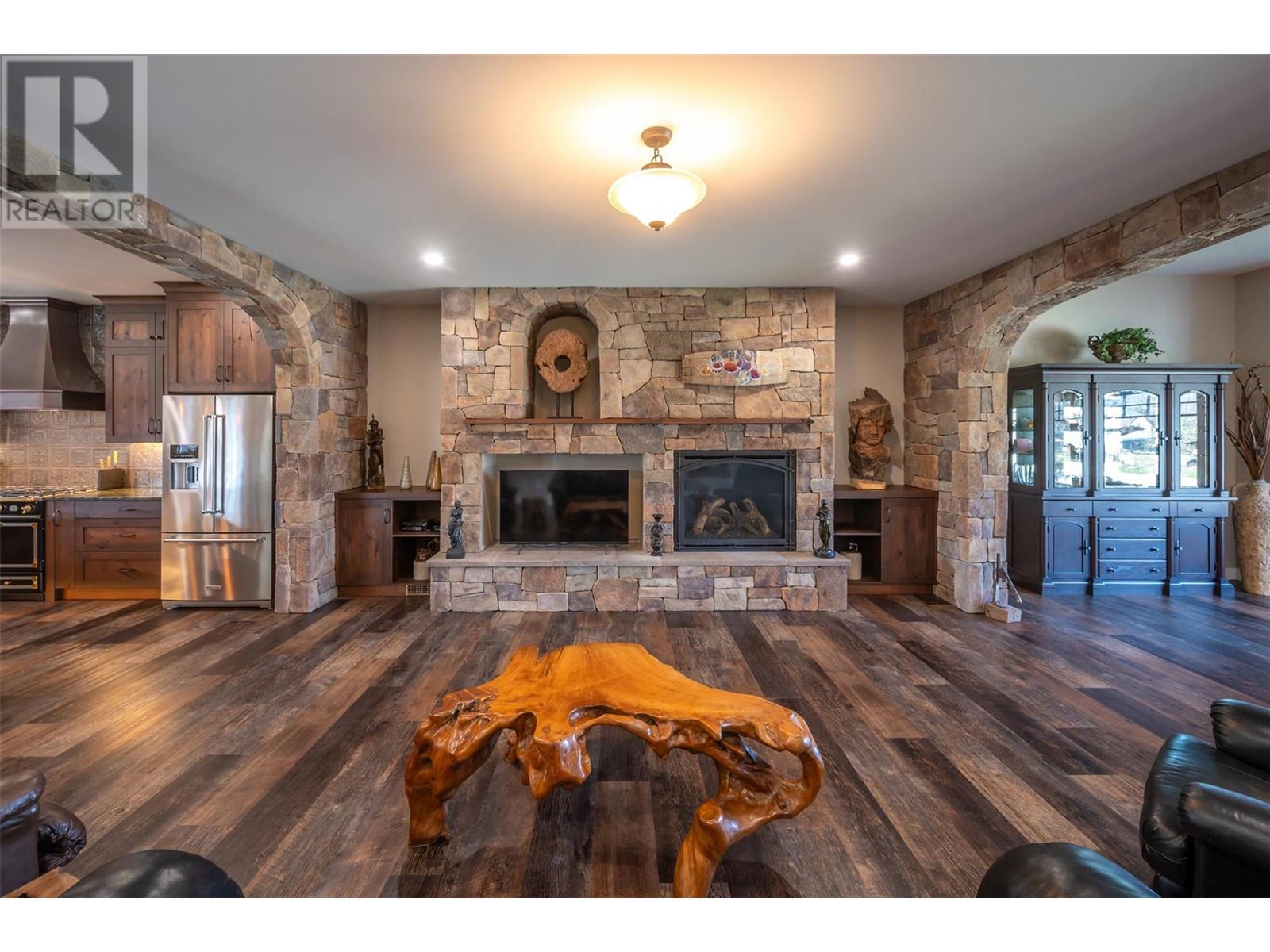 The complete package, welcome to luxury living at its finest in Trout Creek, Summerland. Built in 2021, this one-of-a-kind home is a dream come true for a car enthusiasts & those who appreciate exquisite craftsmanship. The main floor welcomes you to the dining & living rooms, featuring a gas fireplace w/walnut mantle & stone wall. Prepare to be amazed by the spacious chef's kitchen, equipped w/ custom alder solid wood cabinets, azul granite counters & oversized island. La Comue 110 dual fuel oven is a chef's delight. Custom stone wine room w/solid walnut door & temperature-controlled chilling for your wine collection. Den & 2 piece bath w/wine barrel cabinet & copper sink. Radiant in-floor heating ensures comfort throughout the entire home. Upstairs primary bedroom, complete w/ ensuite w/a custom tile shower, dual sinks & spacious walk-in closet w/stacking washer/dryer. Two additional bedrooms each w/ walk-in closets & full ensuites. Rec room is an entertainment hub, home theatre w/ stepped seating, wet bar, pool table & flex space & 2- piece bath. Step outside to your back patio w/ a full outdoor kitchen, perfect for entertaining. Hot tub completes the package. Multiple parking options w/ an oversized double garage & 3-bay shop. Above the shop is a legal 1-bed, 1 bath carriage house. This home must be experienced in person to be fully appreciated. Book your showing today. (id:48970)