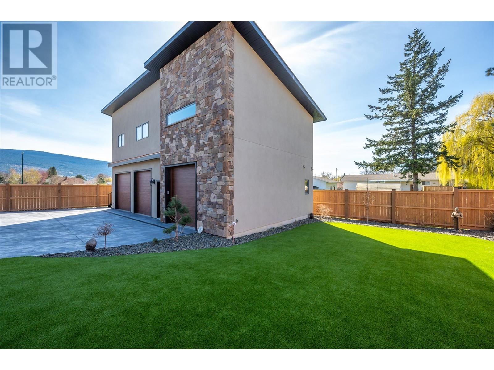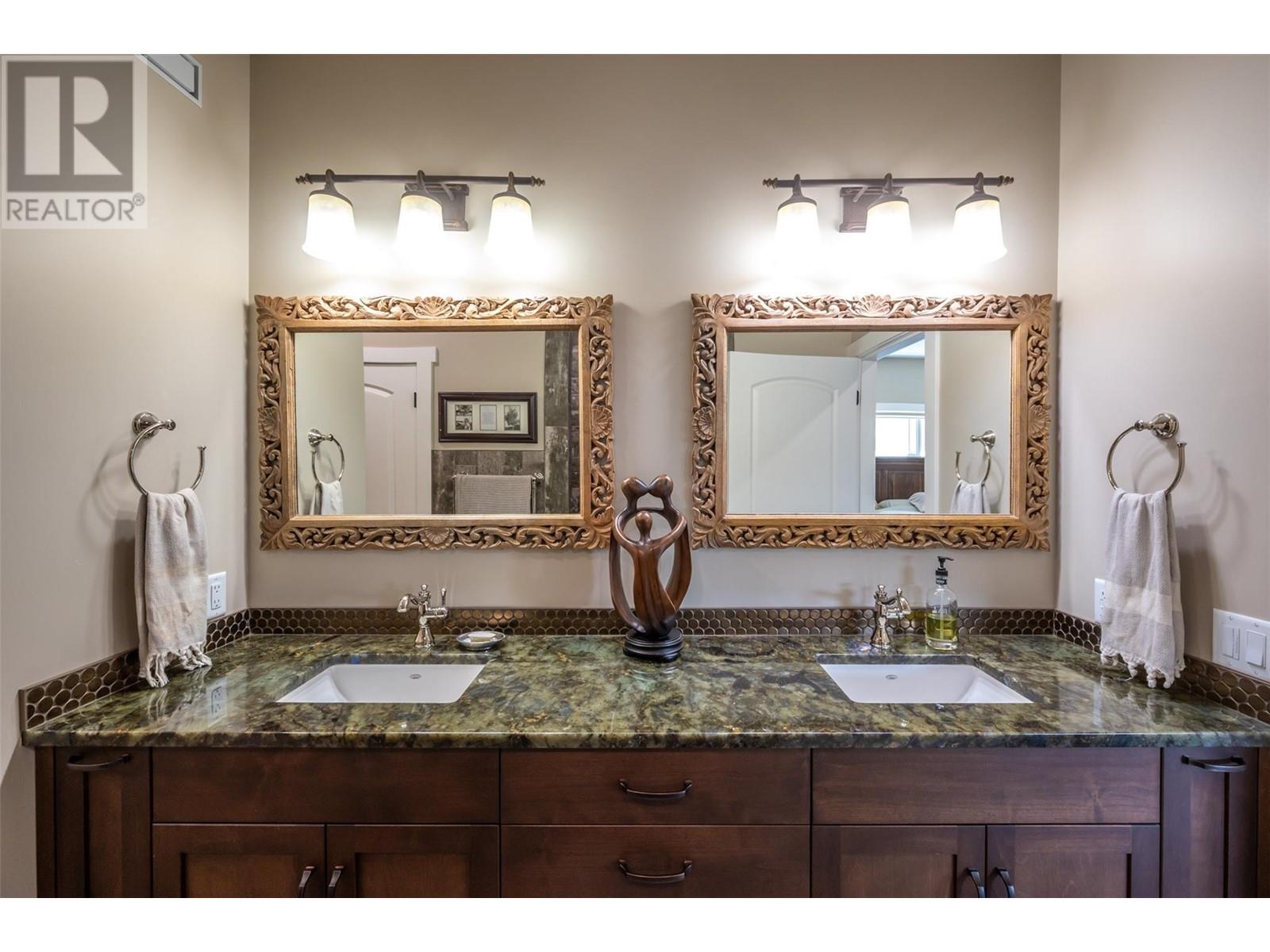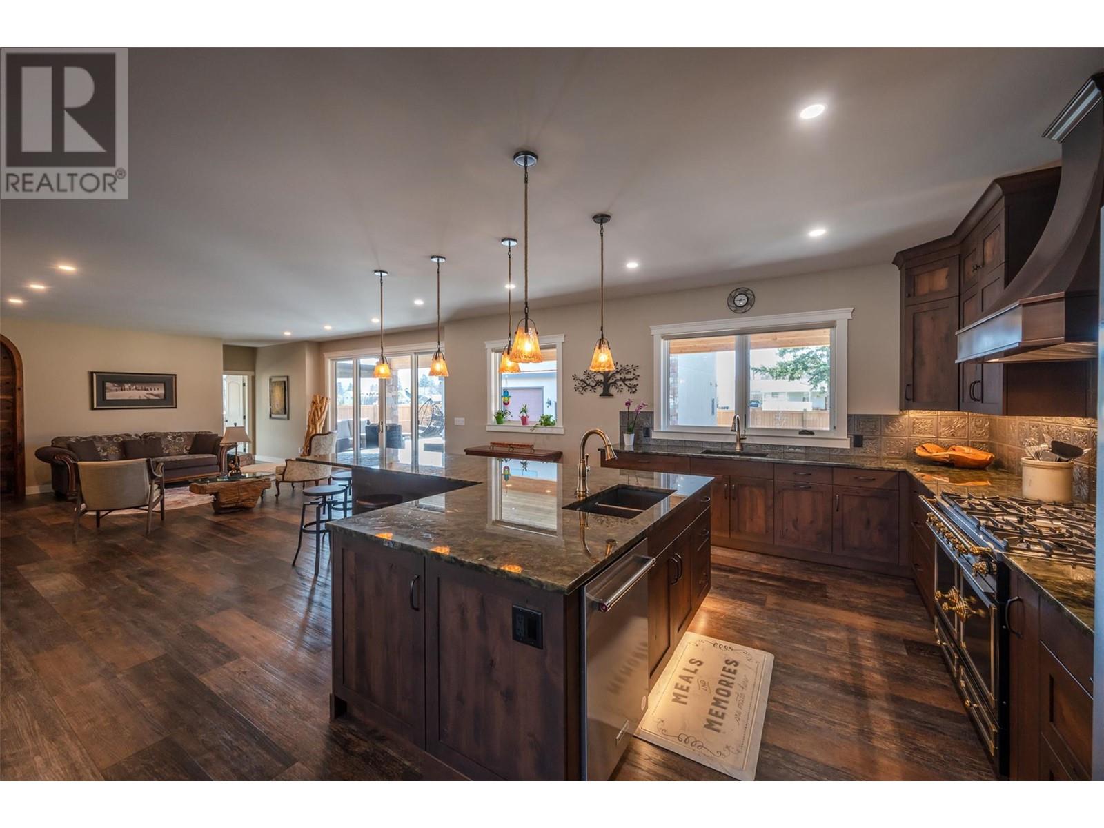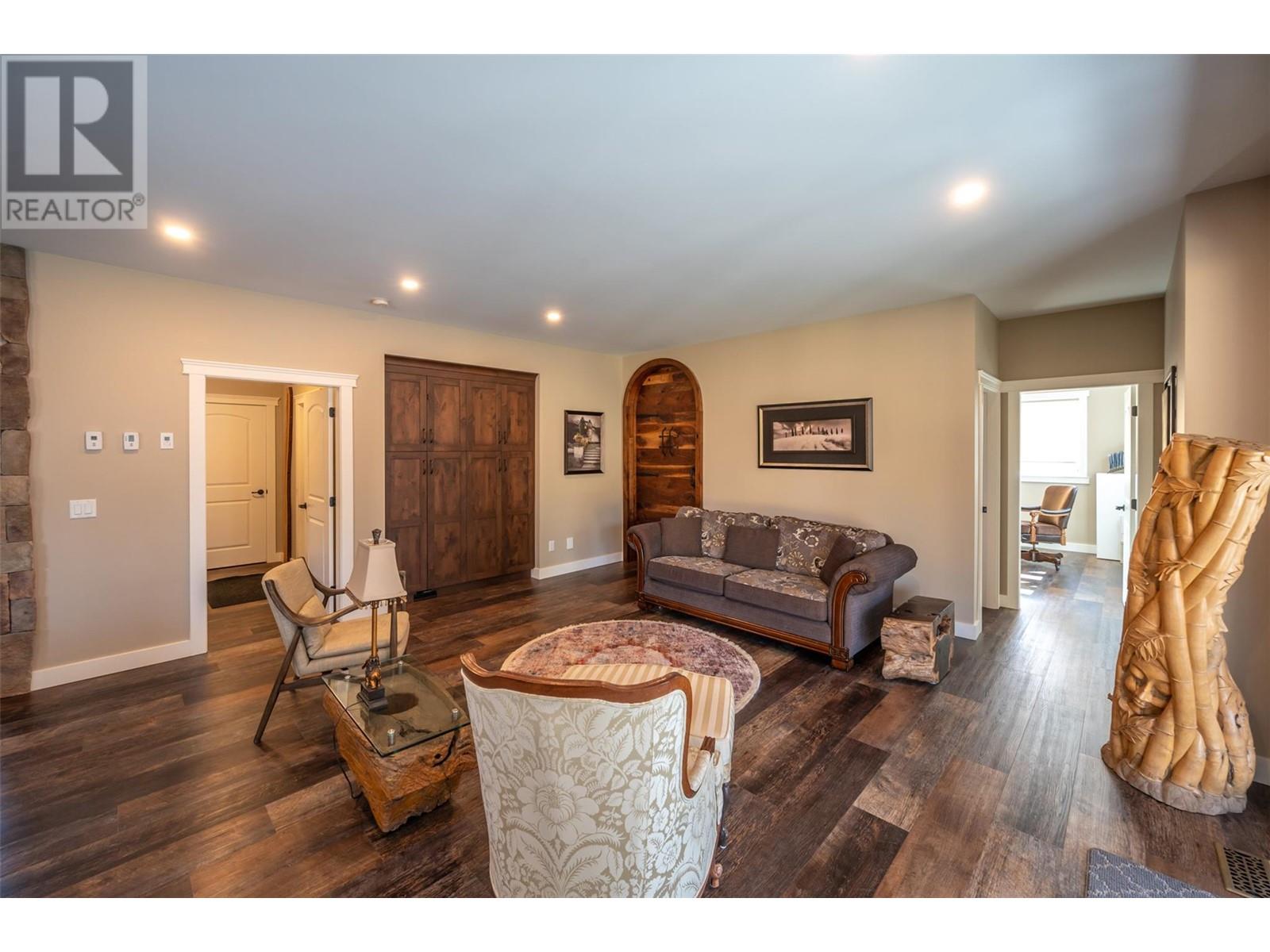 The complete package, welcome to luxury living at its finest in Trout Creek, Summerland. Built in 2021, this one-of-a-kind home is a dream come true for a car enthusiasts & those who appreciate exquisite craftsmanship. The main floor welcomes you to the dining & living rooms, featuring a gas fireplace w/walnut mantle & stone wall. Prepare to be amazed by the spacious chef's kitchen, equipped w/ custom alder solid wood cabinets, azul granite counters & oversized island. La Comue 110 dual fuel oven is a chef's delight. Custom stone wine room w/solid walnut door & temperature-controlled chilling for your wine collection. Den & 2 piece bath w/wine barrel cabinet & copper sink. Radiant in-floor heating ensures comfort throughout the entire home. Upstairs primary bedroom, complete w/ ensuite w/a custom tile shower, dual sinks & spacious walk-in closet w/stacking washer/dryer. Two additional bedrooms each w/ walk-in closets & full ensuites. Rec room is an entertainment hub, home theatre w/ stepped seating, wet bar, pool table & flex space & 2- piece bath. Step outside to your back patio w/ a full outdoor kitchen, perfect for entertaining. Hot tub completes the package. Multiple parking options w/ an oversized double garage & 3-bay shop. Above the shop is a legal 1-bed, 1 bath carriage house. This home must be experienced in person to be fully appreciated. Book your showing today. (id:48970)