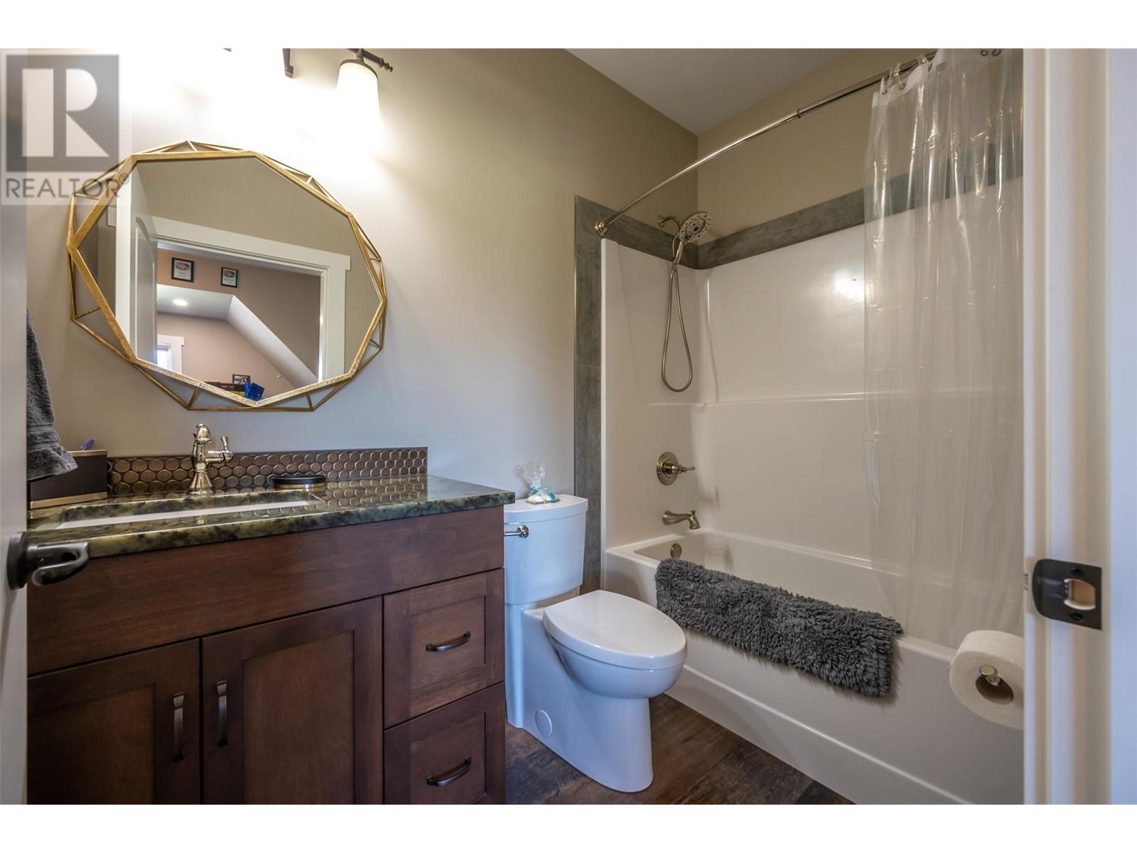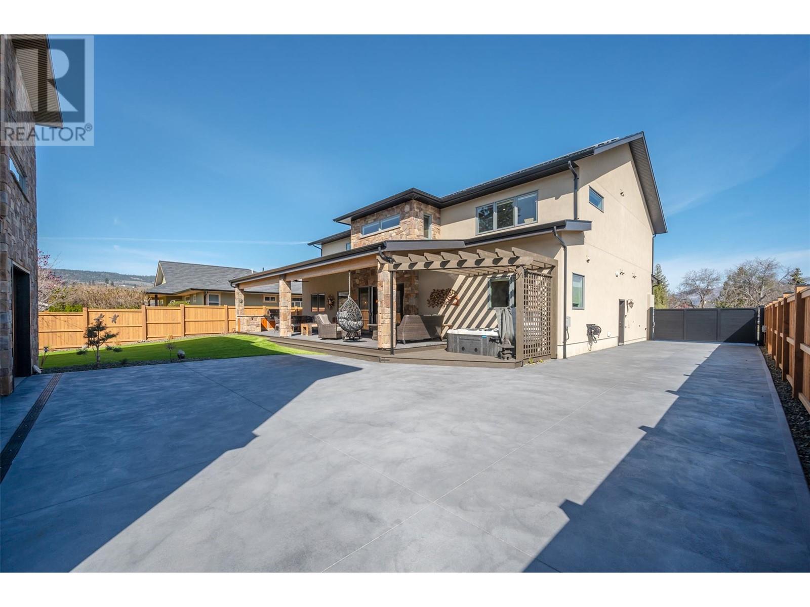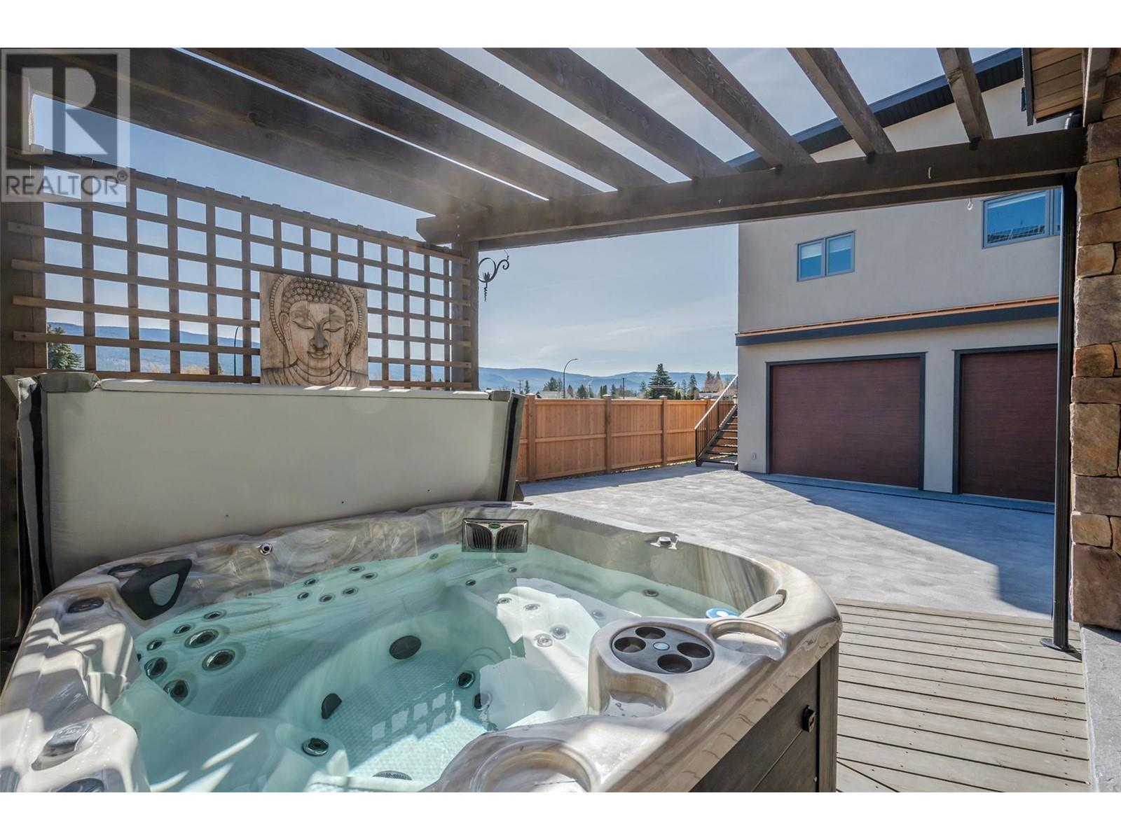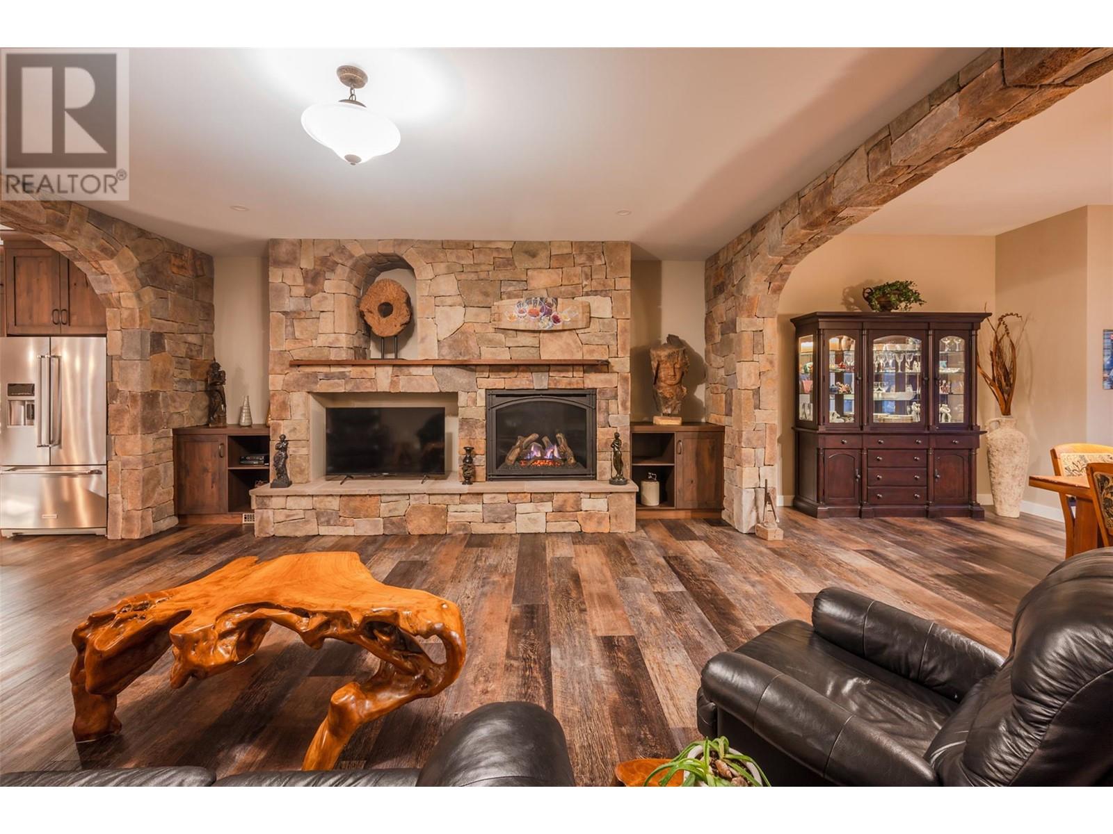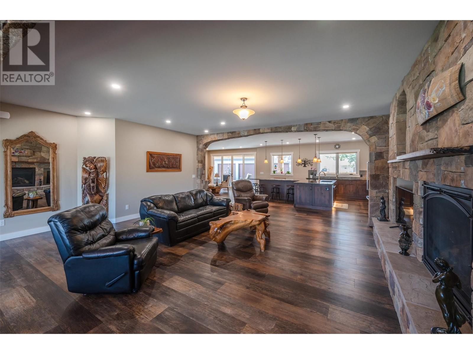 The complete package, welcome to luxury living at its finest in Trout Creek, Summerland. Built in 2021, this one-of-a-kind home is a dream come true for a car enthusiasts & those who appreciate exquisite craftsmanship. The main floor welcomes you to the dining & living rooms, featuring a gas fireplace w/walnut mantle & stone wall. Prepare to be amazed by the spacious chef's kitchen, equipped w/ custom alder solid wood cabinets, azul granite counters & oversized island. La Comue 110 dual fuel oven is a chef's delight. Custom stone wine room w/solid walnut door & temperature-controlled chilling for your wine collection. Den & 2 piece bath w/wine barrel cabinet & copper sink. Radiant in-floor heating ensures comfort throughout the entire home. Upstairs primary bedroom, complete w/ ensuite w/a custom tile shower, dual sinks & spacious walk-in closet w/stacking washer/dryer. Two additional bedrooms each w/ walk-in closets & full ensuites. Rec room is an entertainment hub, home theatre w/ stepped seating, wet bar, pool table & flex space & 2- piece bath. Step outside to your back patio w/ a full outdoor kitchen, perfect for entertaining. Hot tub completes the package. Multiple parking options w/ an oversized double garage & 3-bay shop. Above the shop is a legal 1-bed, 1 bath carriage house. This home must be experienced in person to be fully appreciated. Book your showing today. (id:48970)