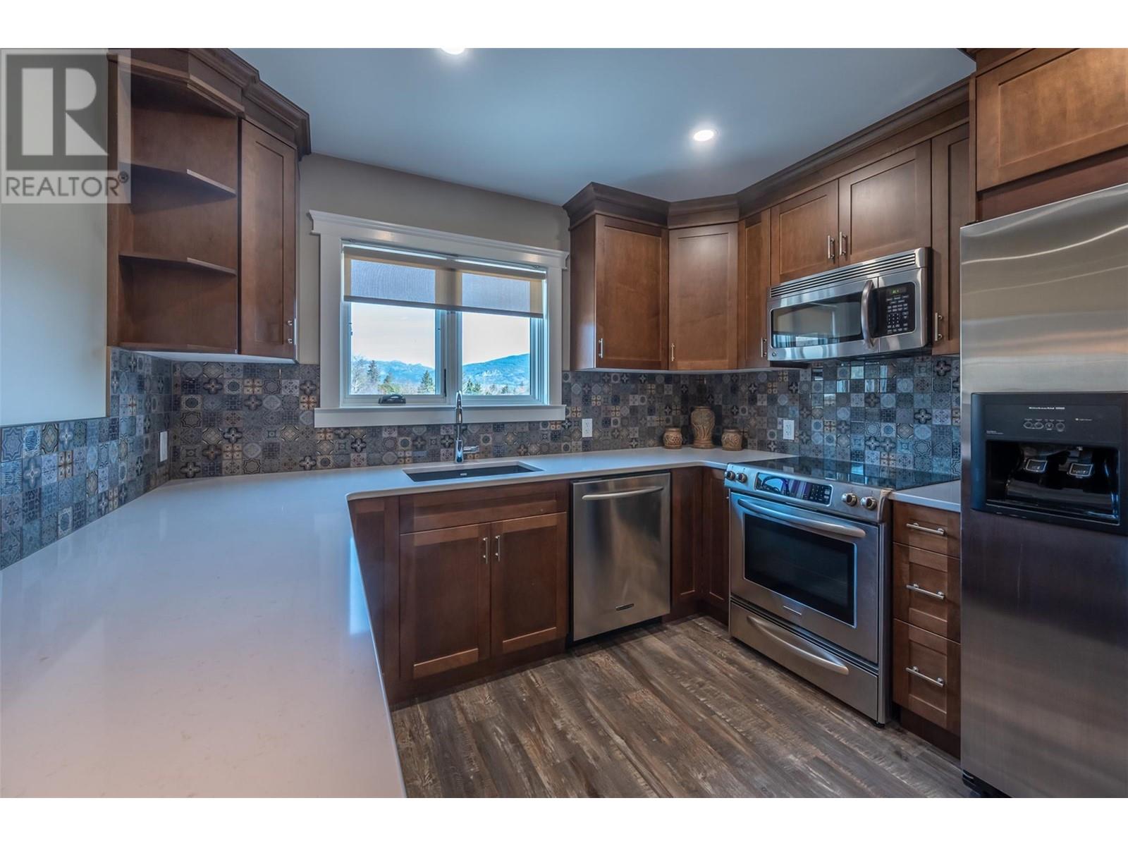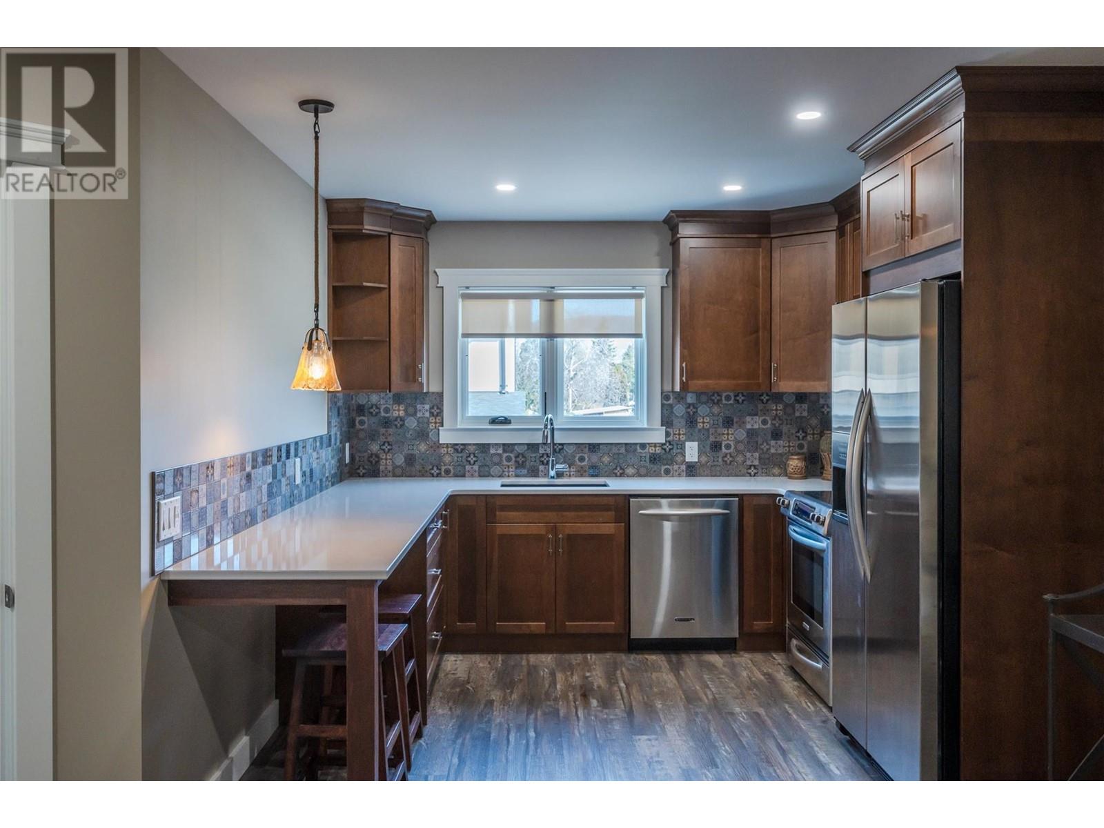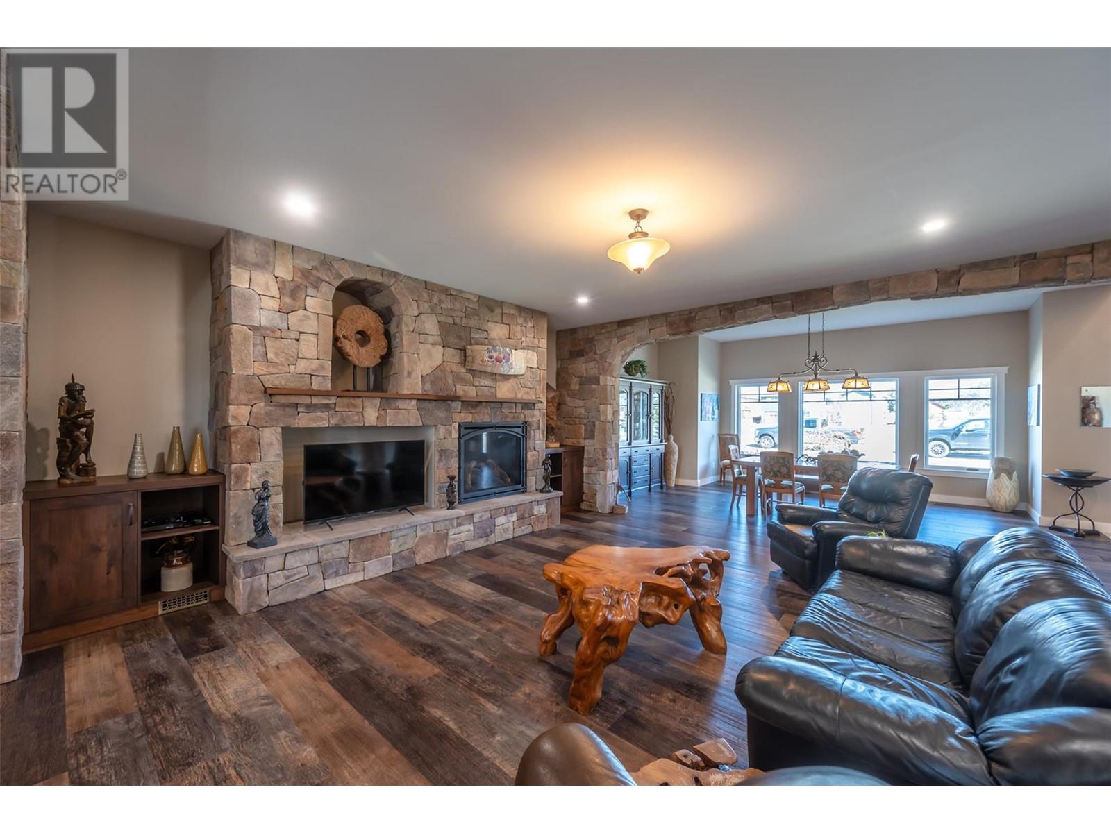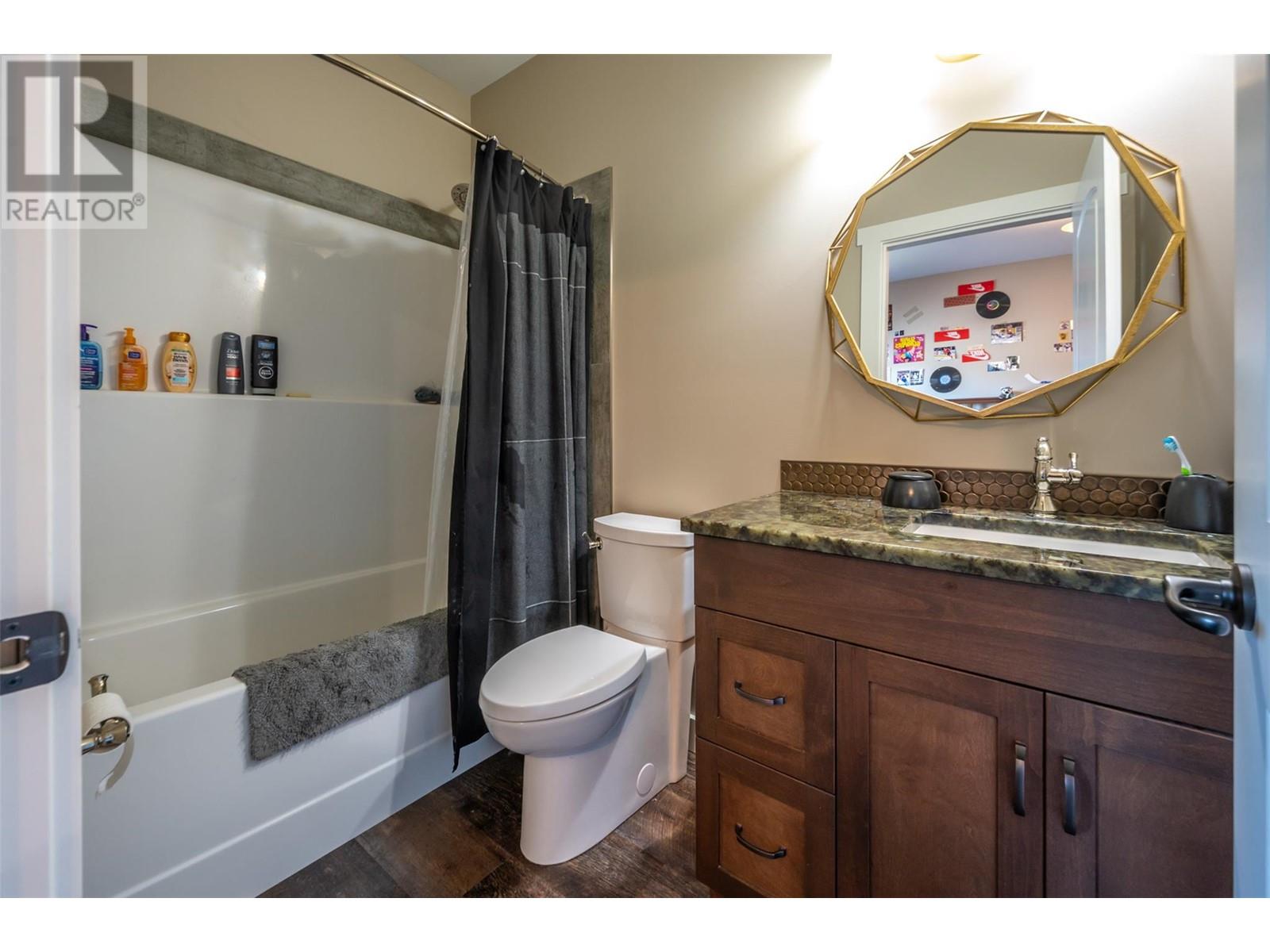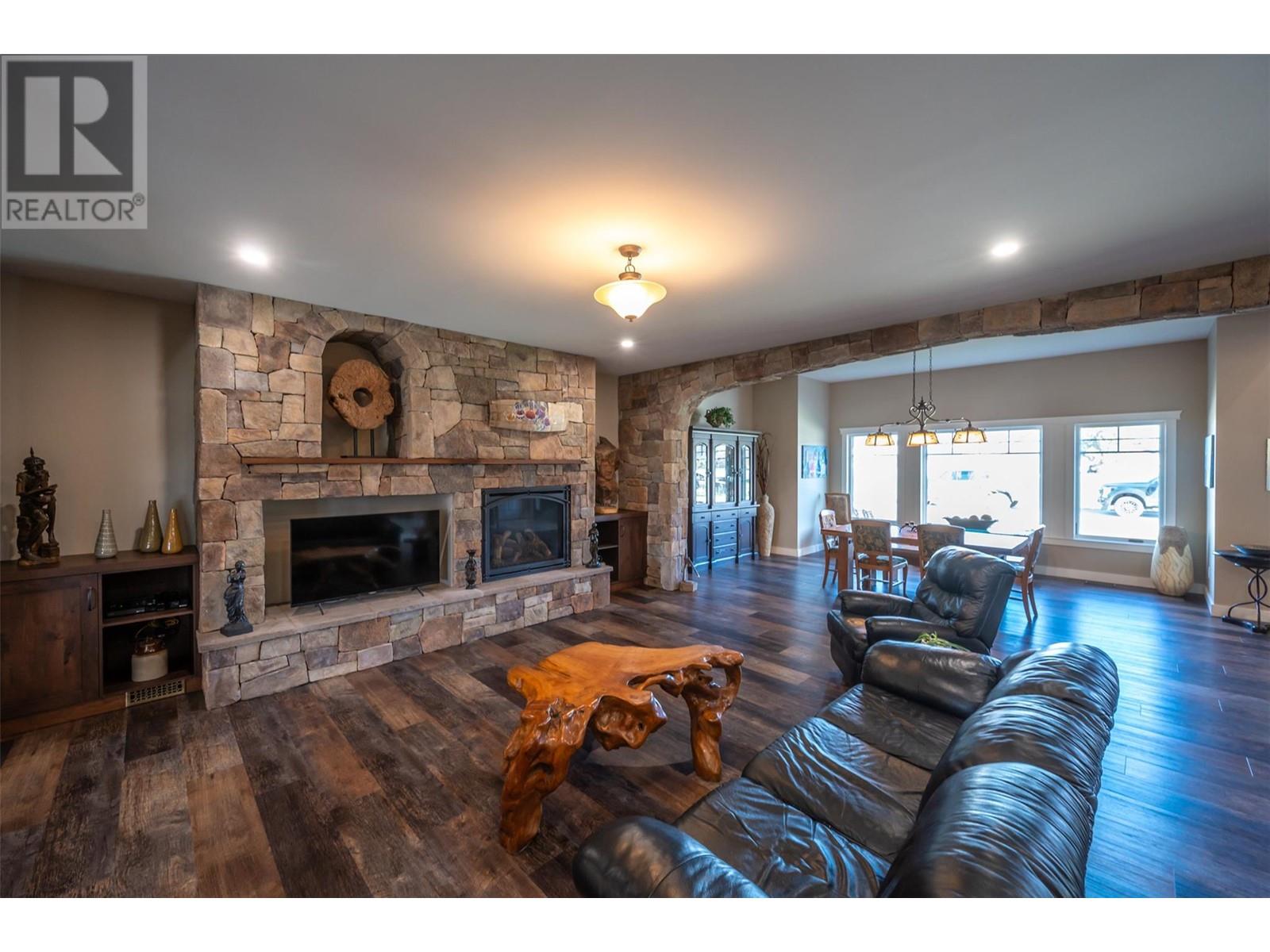 The complete package, welcome to luxury living at its finest in Trout Creek, Summerland. Built in 2021, this one-of-a-kind home is a dream come true for a car enthusiasts & those who appreciate exquisite craftsmanship. The main floor welcomes you to the dining & living rooms, featuring a gas fireplace w/walnut mantle & stone wall. Prepare to be amazed by the spacious chef's kitchen, equipped w/ custom alder solid wood cabinets, azul granite counters & oversized island. La Comue 110 dual fuel oven is a chef's delight. Custom stone wine room w/solid walnut door & temperature-controlled chilling for your wine collection. Den & 2 piece bath w/wine barrel cabinet & copper sink. Radiant in-floor heating ensures comfort throughout the entire home. Upstairs primary bedroom, complete w/ ensuite w/a custom tile shower, dual sinks & spacious walk-in closet w/stacking washer/dryer. Two additional bedrooms each w/ walk-in closets & full ensuites. Rec room is an entertainment hub, home theatre w/ stepped seating, wet bar, pool table & flex space & 2- piece bath. Step outside to your back patio w/ a full outdoor kitchen, perfect for entertaining. Hot tub completes the package. Multiple parking options w/ an oversized double garage & 3-bay shop. Above the shop is a legal 1-bed, 1 bath carriage house. This home must be experienced in person to be fully appreciated. Book your showing today. (id:48970)