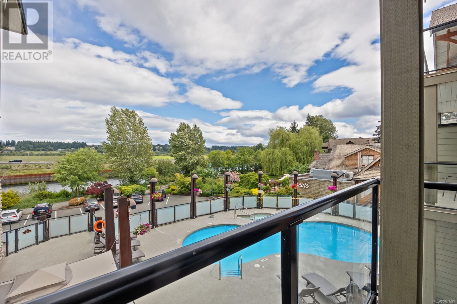 Don't miss this opportunity to own a full share luxurious double hotel room. This unit accommodates up to 4 guests with pool and river views. Own all four quarter shares with 100% ownership and your choice of dates to visit up to a maximum of three out of every four weeks per month. Fully furnished with upscale finishes, electric fireplace, and a balcony with stunning views. Enjoy 2 double sized beds, large shower and separate bathtub and access to amenities like Oh Spa, Locals Restaurant, outdoor pool, hot tub, fitness room, and meeting facilities. Experience upscale living with air conditioning, elevator, and secured entry. Own this exquisite condo retreat near golf courses, lakes, rivers, mountains, and all Vancouver Island offers. Just 15 mins to Comox airport, 4 mins to Driftwood Mall, and close to many restaurants. Strata fees for all four quarters $809.52 per month and $584.80 management fee. Plus GST. (id:48970)