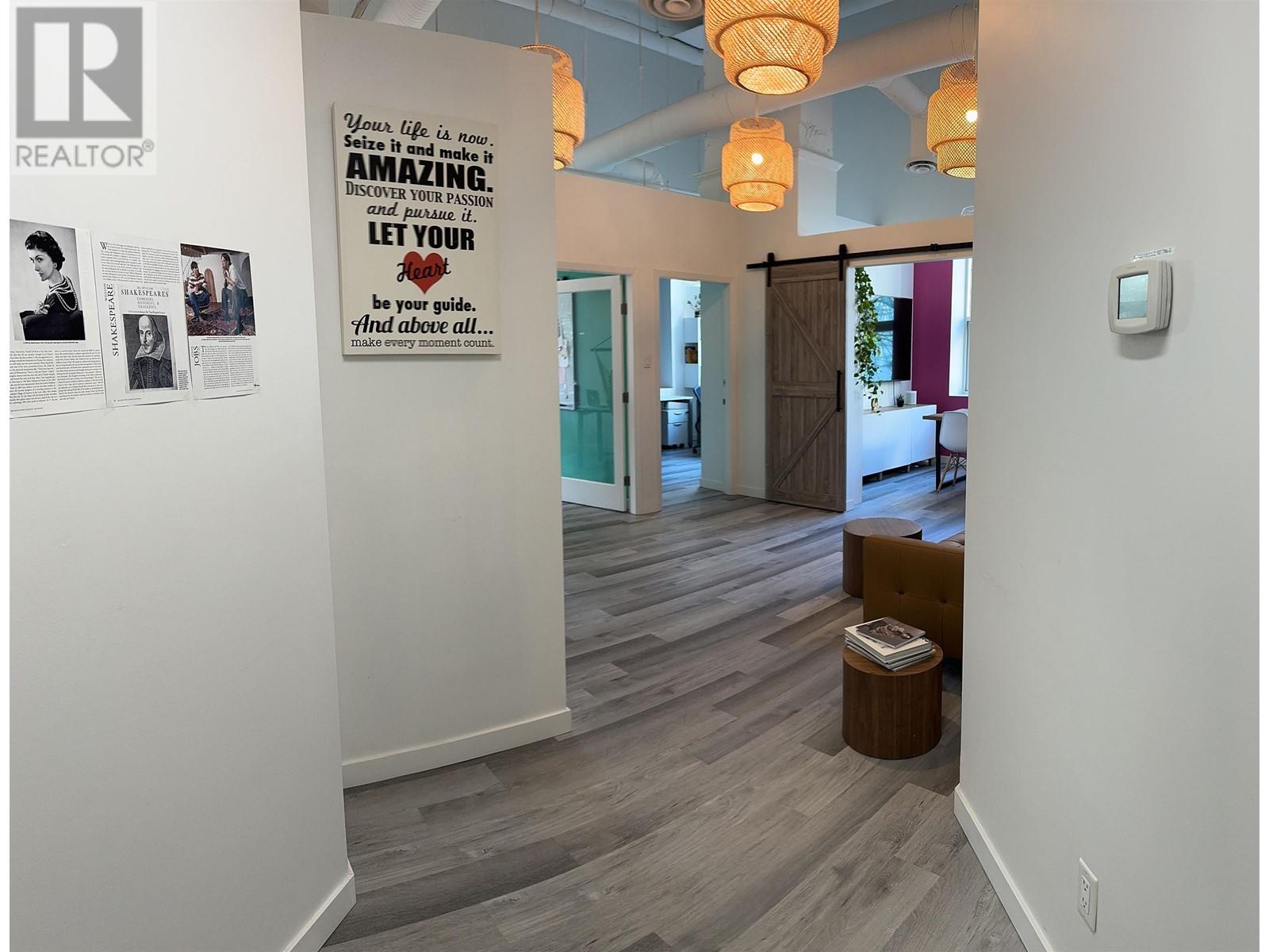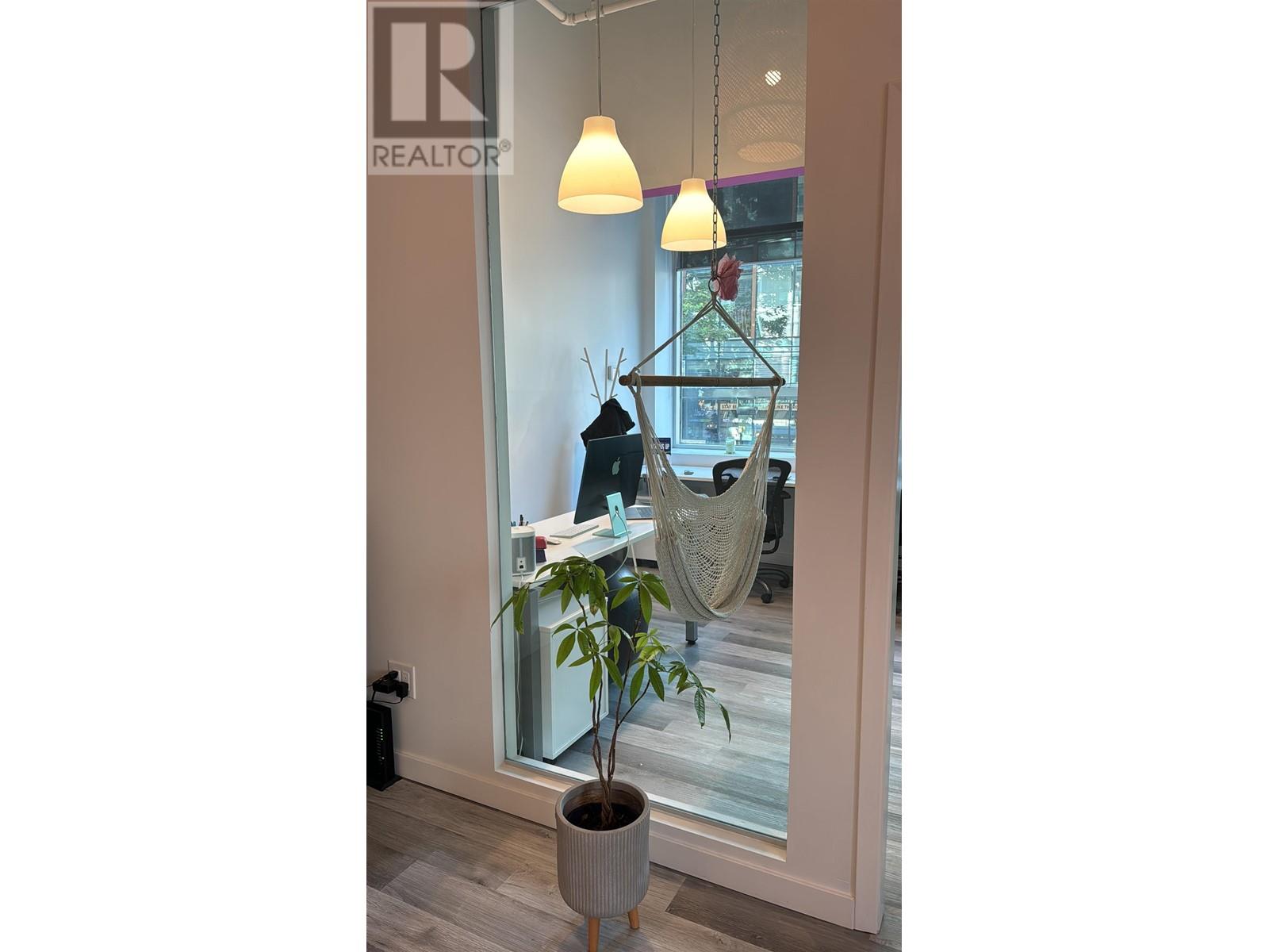 This modern, bright, and creative 735 square foot office space can be yours today! This unit is located within the highly rated professional office CONFERENCE PLAZA commercial strata on West Pender and Richards. Perfect location: just one block from Waterfront Station, Canada Place, and the Vancouver Financial and Business Center. Just a short walk to Pacific Center, public transit and restaurants. Comes fully furnished with wall mounted 72 in TV in the boardroom, boardroom table and chairs, custom built desks, chairs, etc. The current occupant is a marketing company, and they fully renovated the office with new contemporary vinyl plank flooring, paint, etc only a few years ago. The huge windows let in plenty of light, and the high ceilings make it feel like much larger than 735 square feet! Looking for a minimum one year lease. Heat, electricity, and internet included in the lease. Comes with one secure, underground parking stall. (id:48970)