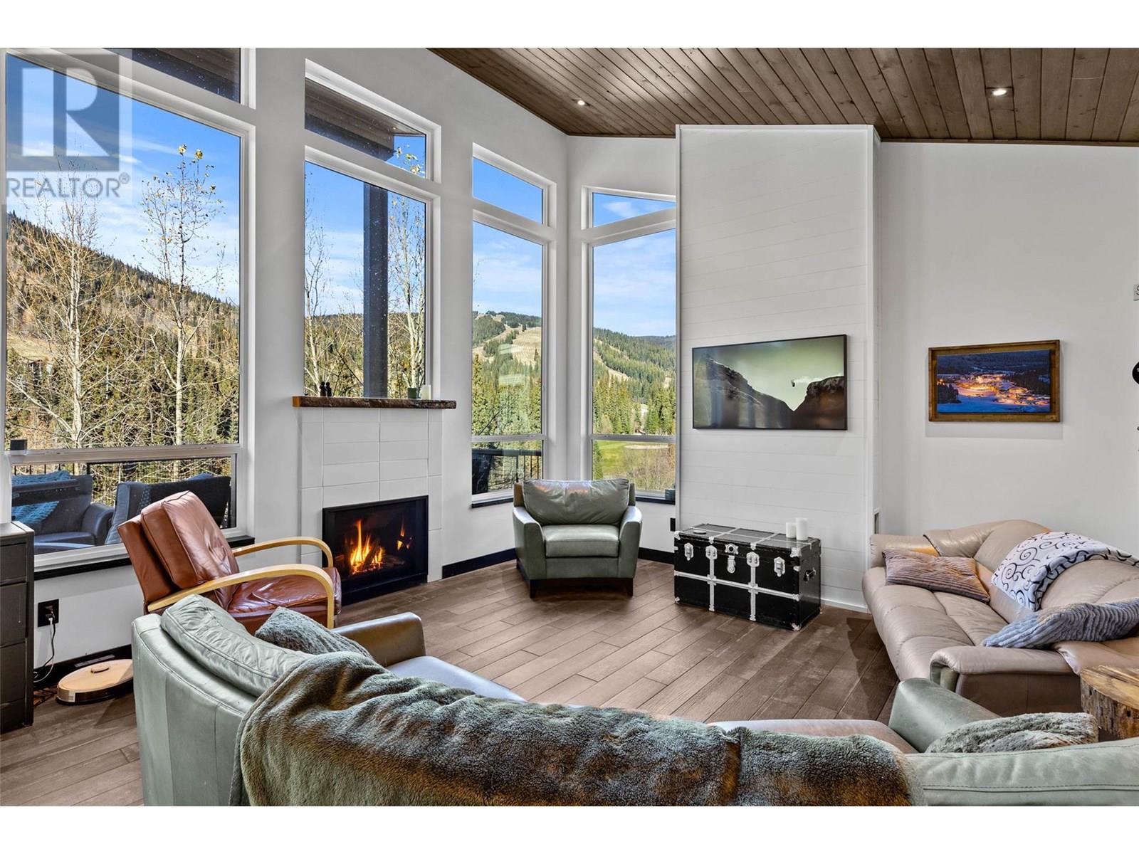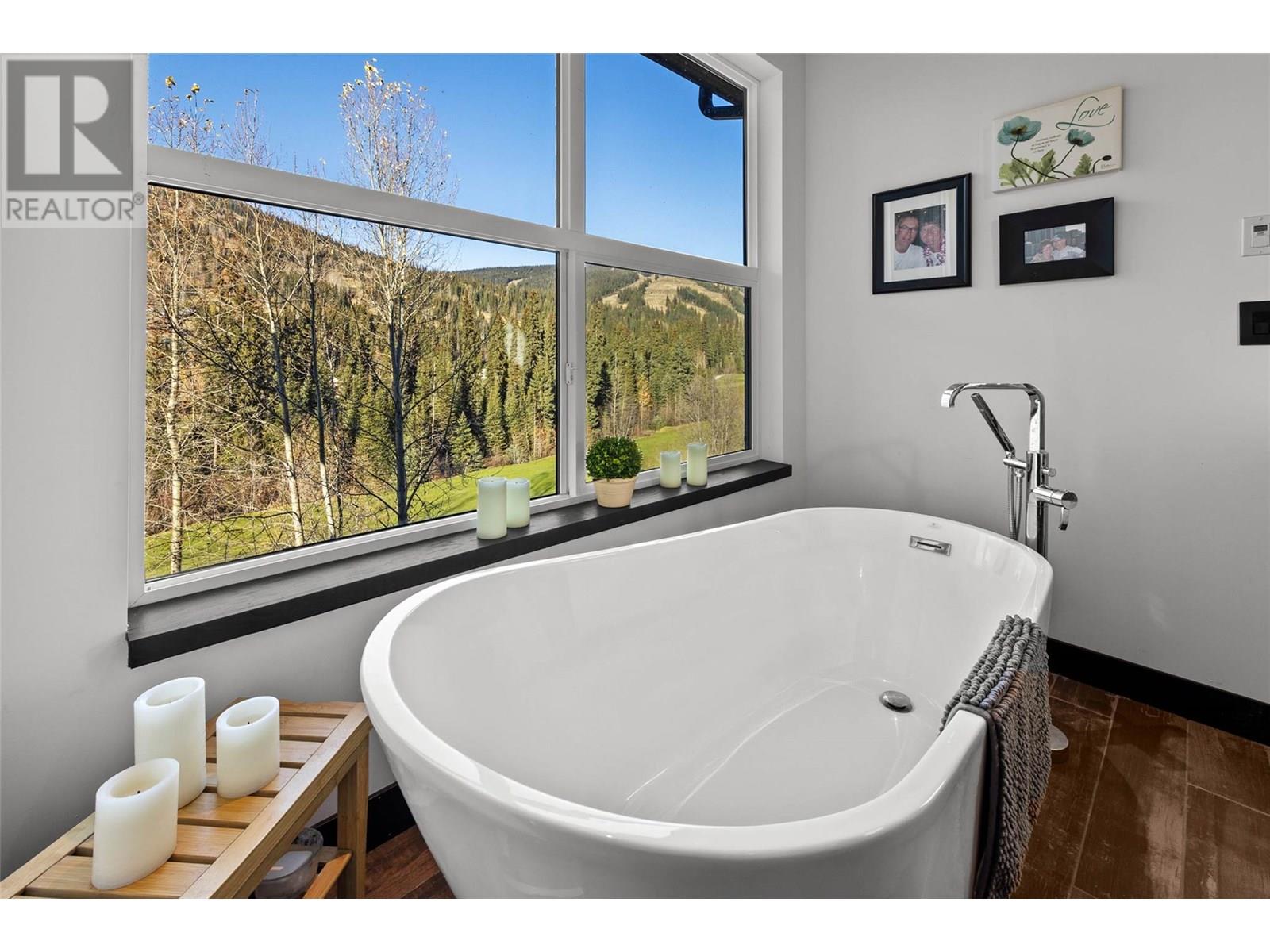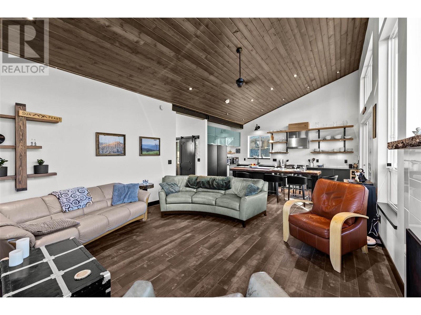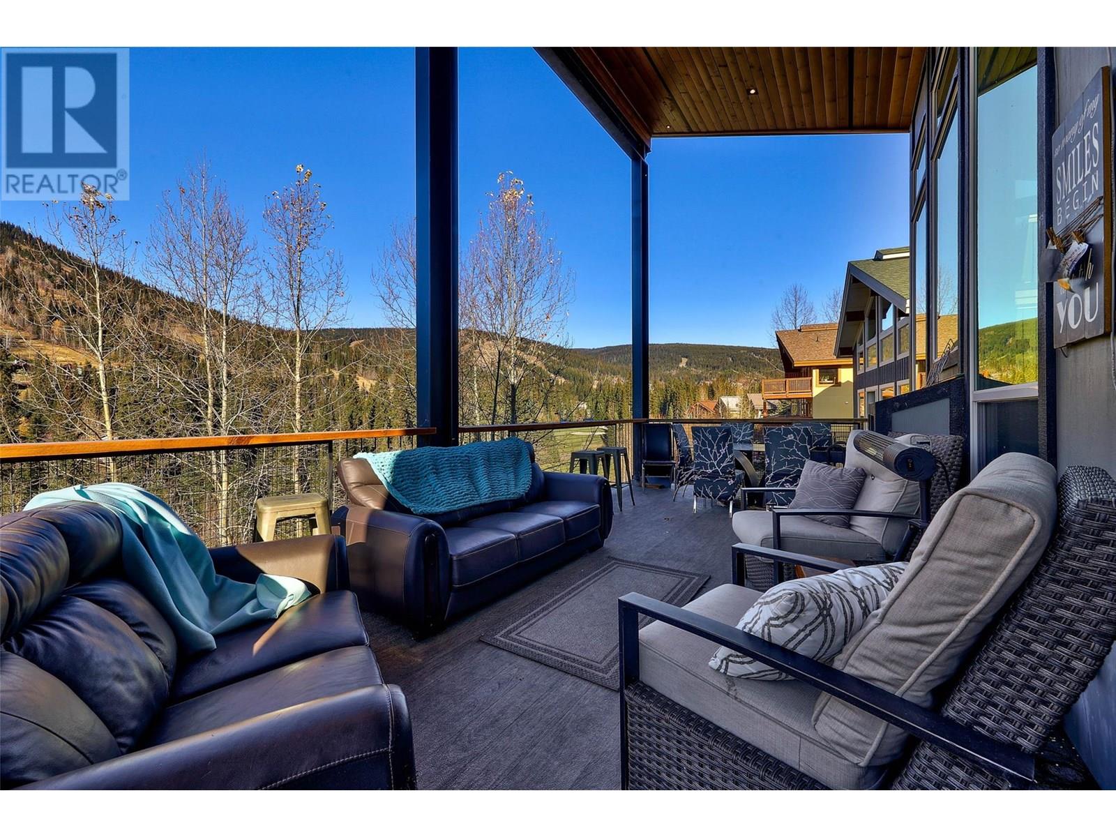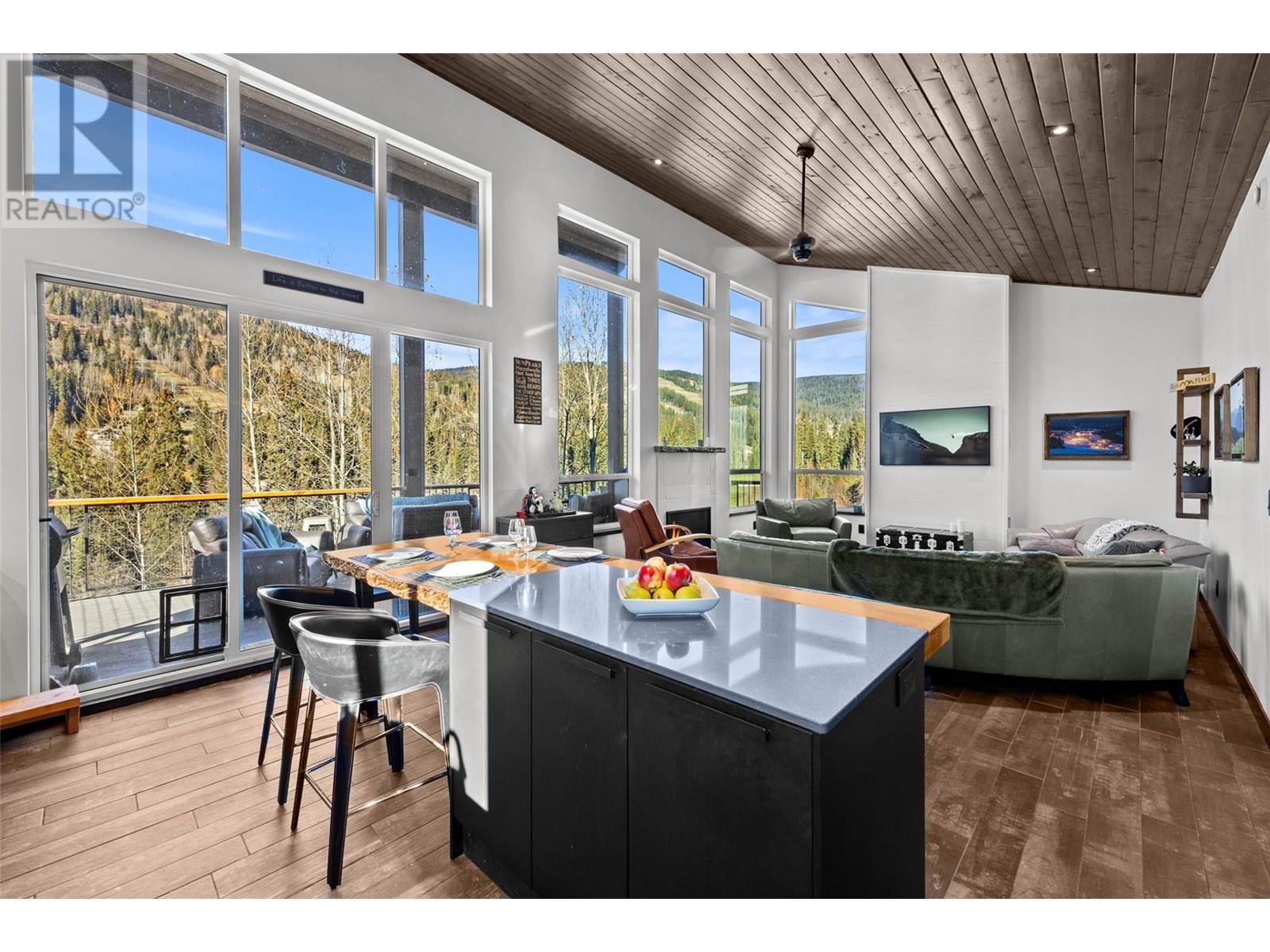This carefully designed 2019 custom 5 bedroom, 5 bathroom home with level entry, overlooking the 8th fairway of the 'Graham Cooke' designed golf course is a must see! Be immediately impressed by the spaciousness of vaulted ceilings & captivating mountain views from walls of windows in the living room & kitchen. The kitchen is a chef's dream featuring 6 burner gas range, double oven, side x side industrial fridge/freezer, plenty of quartz counter space & a gorgeous live edge island table to intimately gather with your guests. Glass sliding doors lead from the kitchen to the spacious covered deck, perfect for outdoor entertaining on warm summer days. Enjoy the comfort of a main floor primary bedroom & luxurious ensuite bathroom highlighting a steam shower & freestanding tub with outstanding mountain views. Lower level features 12' ceilings, 2 large bedrooms with lofts, full bath & spacious rec room with bar, perfect for entertaining. Glass doors lead to large deck & private hot tub. 2 bed legal suite. 1,000 sqft workshop. 2 car garage. Furnished. See listing for video and 3D tours. (id:48970)