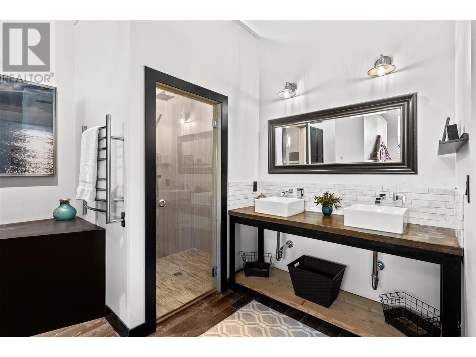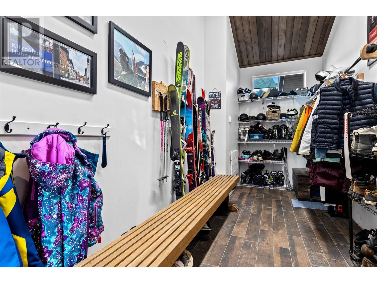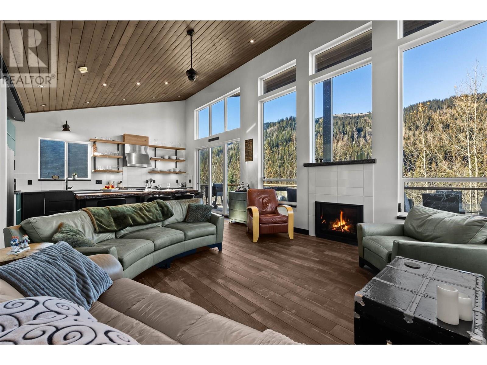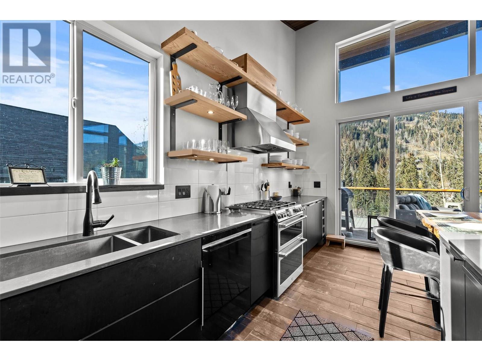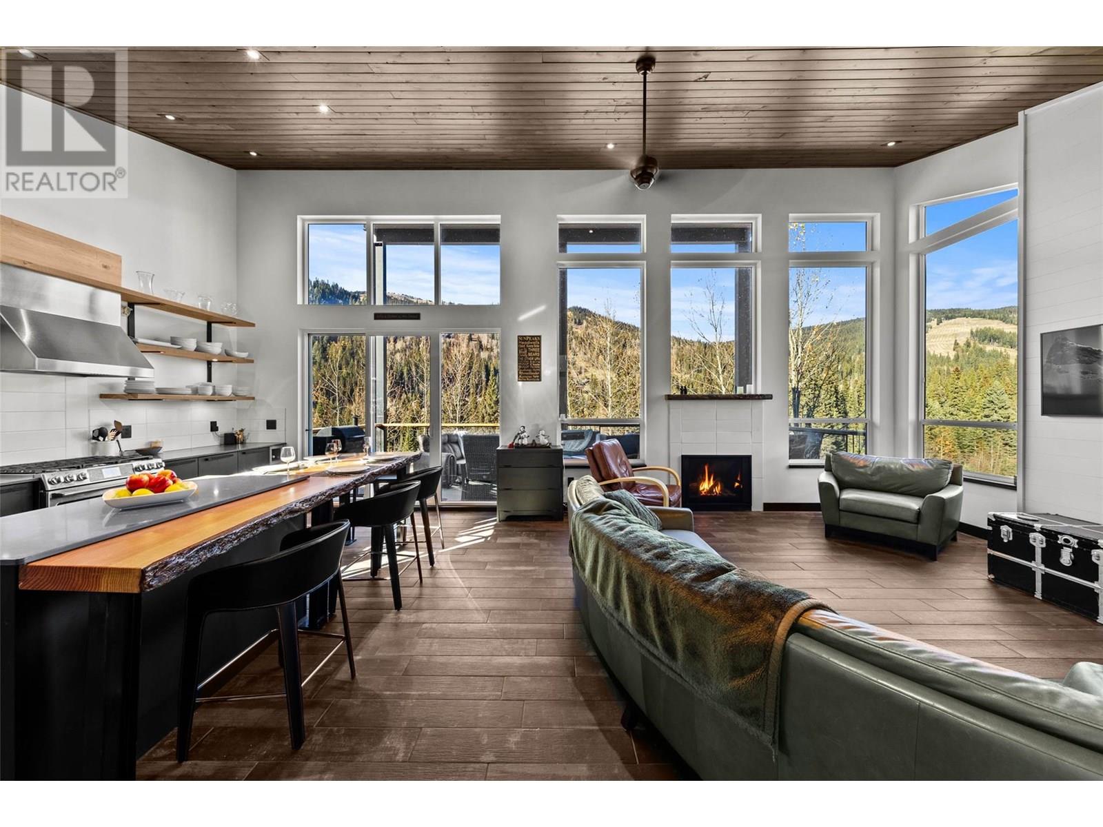 This carefully designed 2019 custom 5 bedroom, 5 bathroom home with level entry, overlooking the 8th fairway of the 'Graham Cooke' designed golf course is a must see! Be immediately impressed by the spaciousness of vaulted ceilings & captivating mountain views from walls of windows in the living room & kitchen. The kitchen is a chef's dream featuring 6 burner gas range, double oven, side x side industrial fridge/freezer, plenty of quartz counter space & a gorgeous live edge island table to intimately gather with your guests. Glass sliding doors lead from the kitchen to the spacious covered deck, perfect for outdoor entertaining on warm summer days. Enjoy the comfort of a main floor primary bedroom & luxurious ensuite bathroom highlighting a steam shower & freestanding tub with outstanding mountain views. Lower level features 12' ceilings, 2 large bedrooms with lofts, full bath & spacious rec room with bar, perfect for entertaining. Glass doors lead to large deck & private hot tub. 2 bed legal suite. 1,000 sqft workshop. 2 car garage. Furnished. See listing for video and 3D tours. (id:48970)