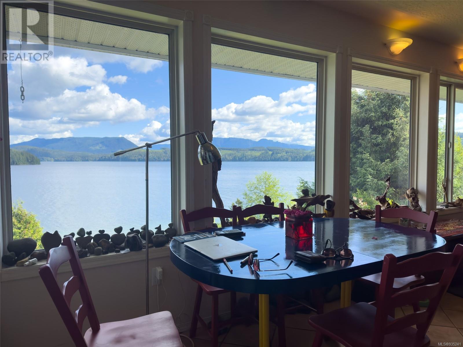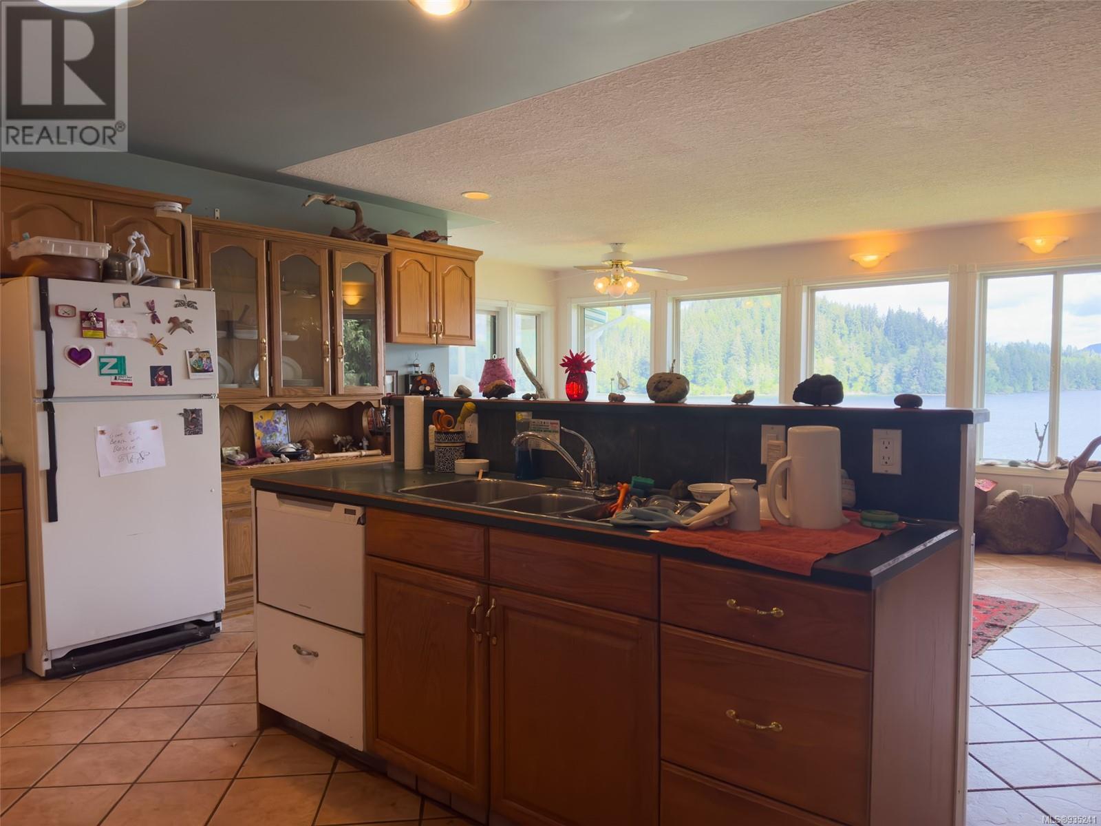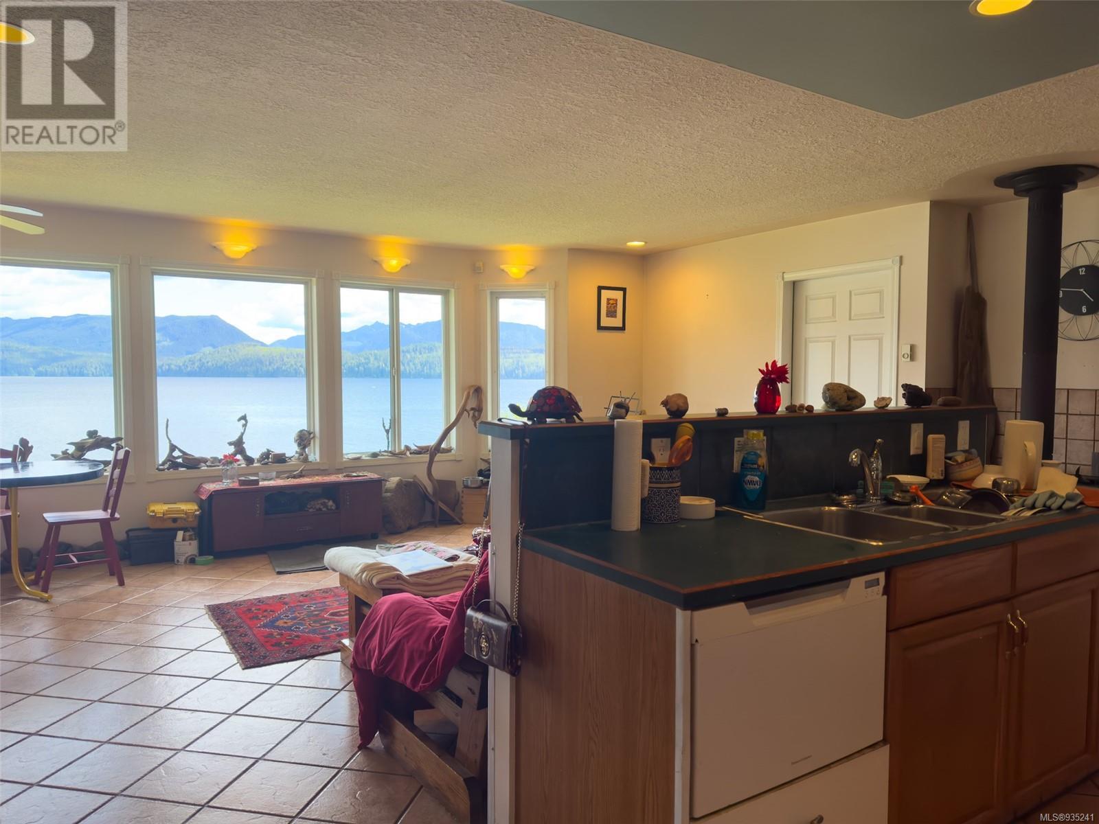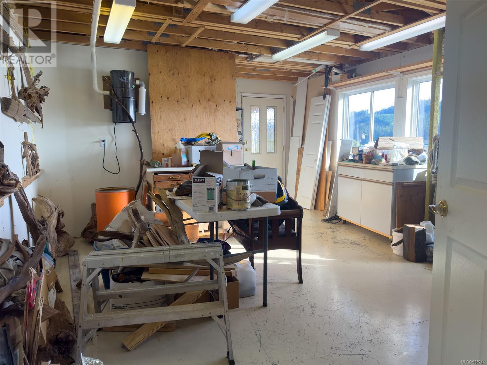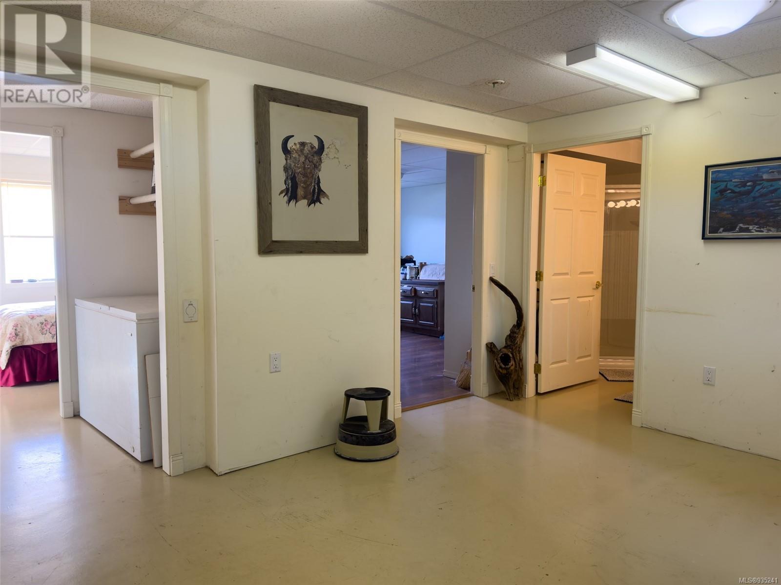 WALK ON WATER FRONT! This 1999 home is located in Coal Harbour just 15 minutes from Port Hardy. This entry level property offers an open concept living area with large windows showing off the stunning views. Main level features 2 bedrooms + office and 2 full bathrooms, including the primary ensuite that is wheel chair accessible. Off the living room is a covered deck space with hot tub to enjoy no matter what the weather. The main floor is wheel chair accessible throughout with larger door frames and ramps to make certain areas accessible. Downstairs is partially finished with walk out access and 2 bedrooms (one with no flooring), 3 PC bath, kitchenette area, spacious workshop space & loads of storage options. Outside you'll marvel in the lush gardens and tiered walk way leading down to the beach. A double attached garage, large driveway and sizeable shed at the bottom of the property give you loads of room for all your outdoor toys and equipment. (id:48970)