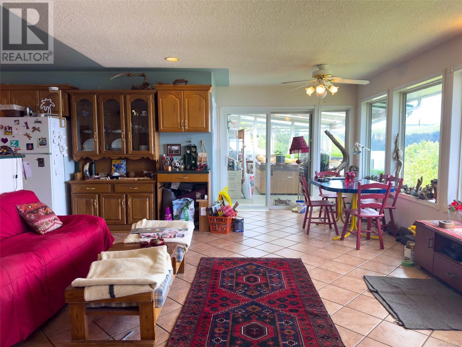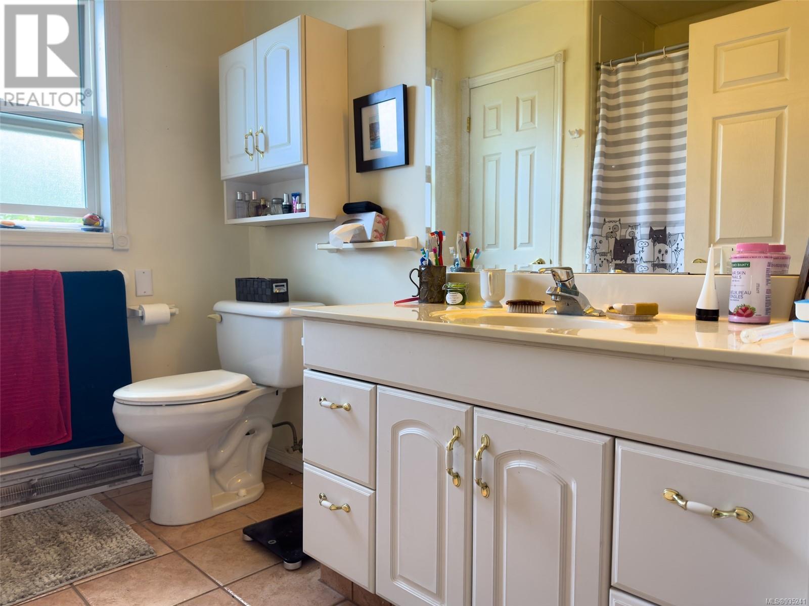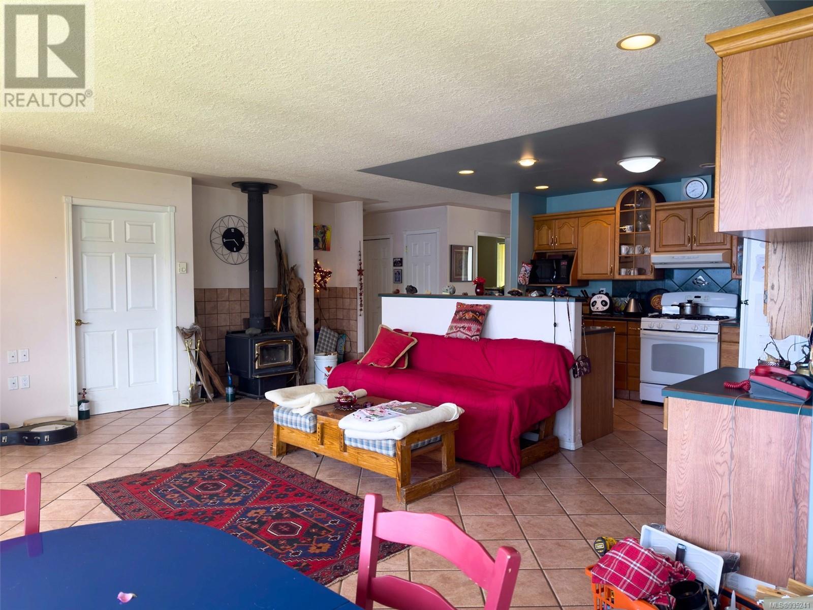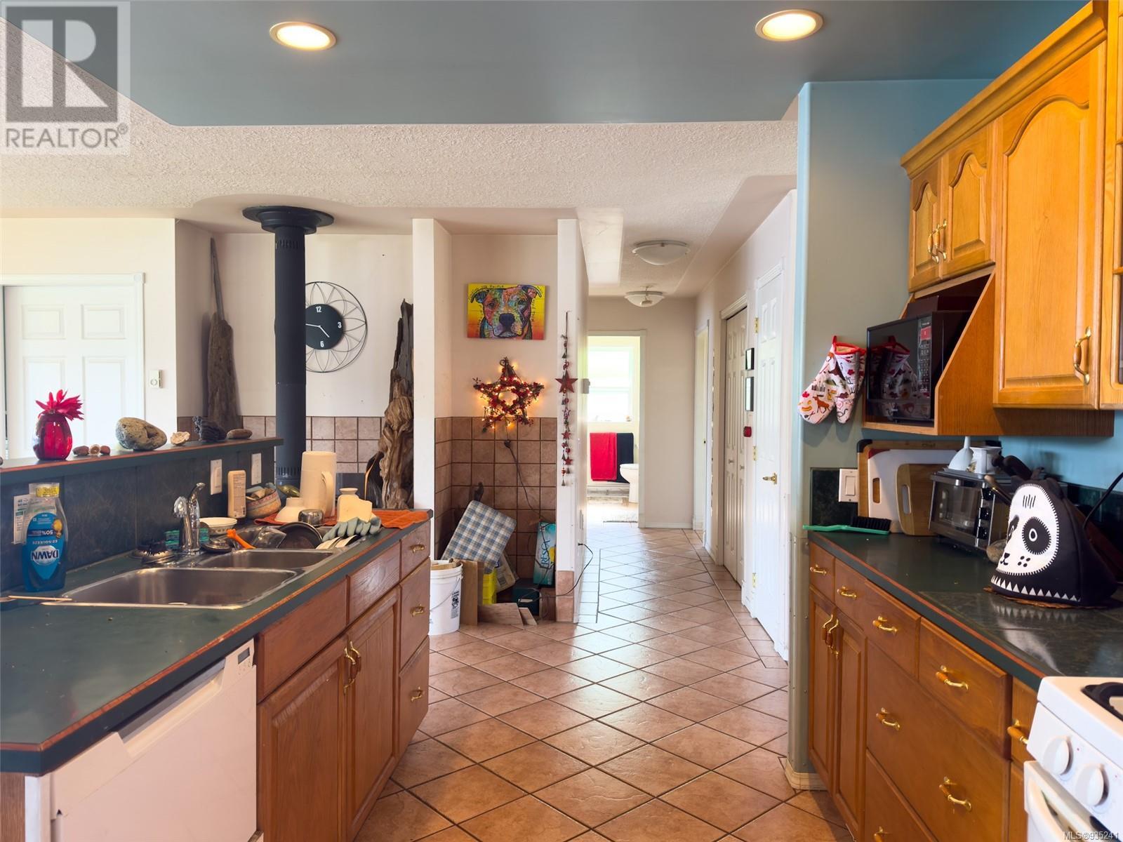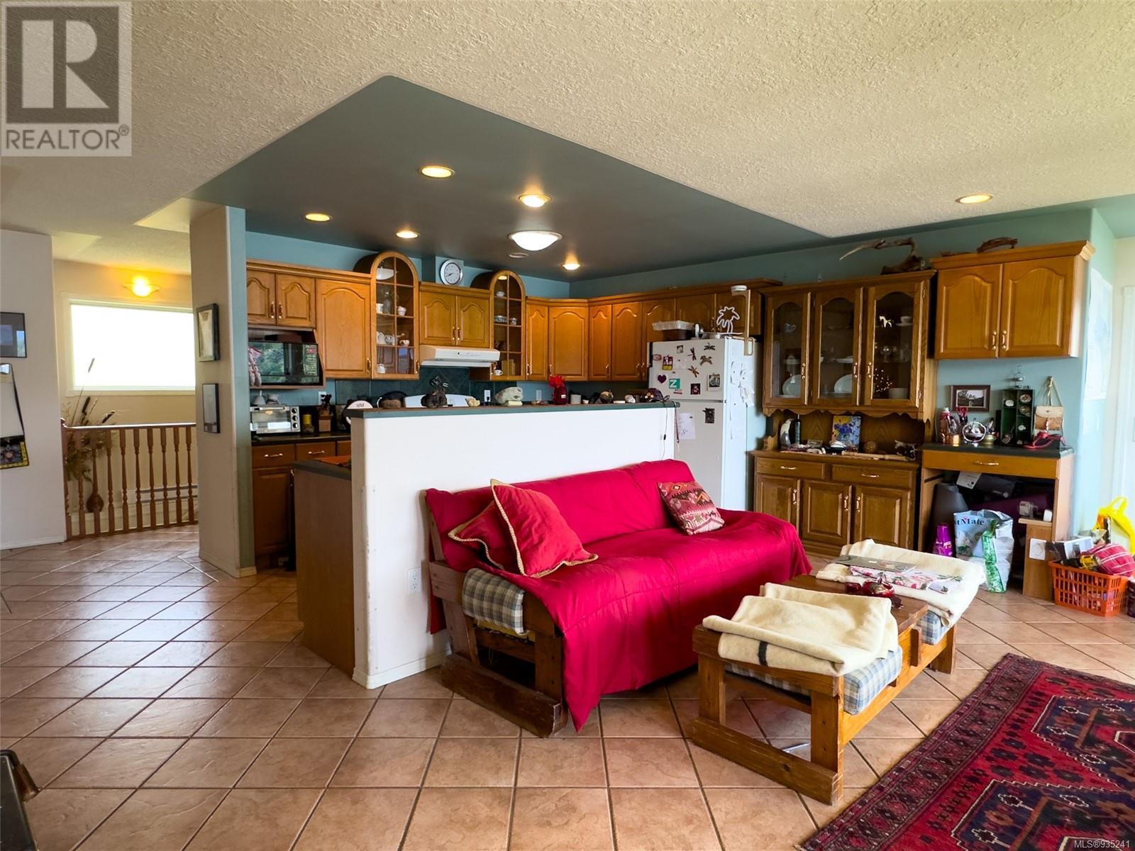 WALK ON WATER FRONT! This 1999 home is located in Coal Harbour just 15 minutes from Port Hardy. This entry level property offers an open concept living area with large windows showing off the stunning views. Main level features 2 bedrooms + office and 2 full bathrooms, including the primary ensuite that is wheel chair accessible. Off the living room is a covered deck space with hot tub to enjoy no matter what the weather. The main floor is wheel chair accessible throughout with larger door frames and ramps to make certain areas accessible. Downstairs is partially finished with walk out access and 2 bedrooms (one with no flooring), 3 PC bath, kitchenette area, spacious workshop space & loads of storage options. Outside you'll marvel in the lush gardens and tiered walk way leading down to the beach. A double attached garage, large driveway and sizeable shed at the bottom of the property give you loads of room for all your outdoor toys and equipment. (id:48970)