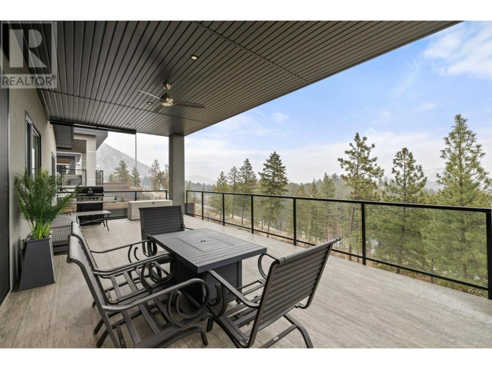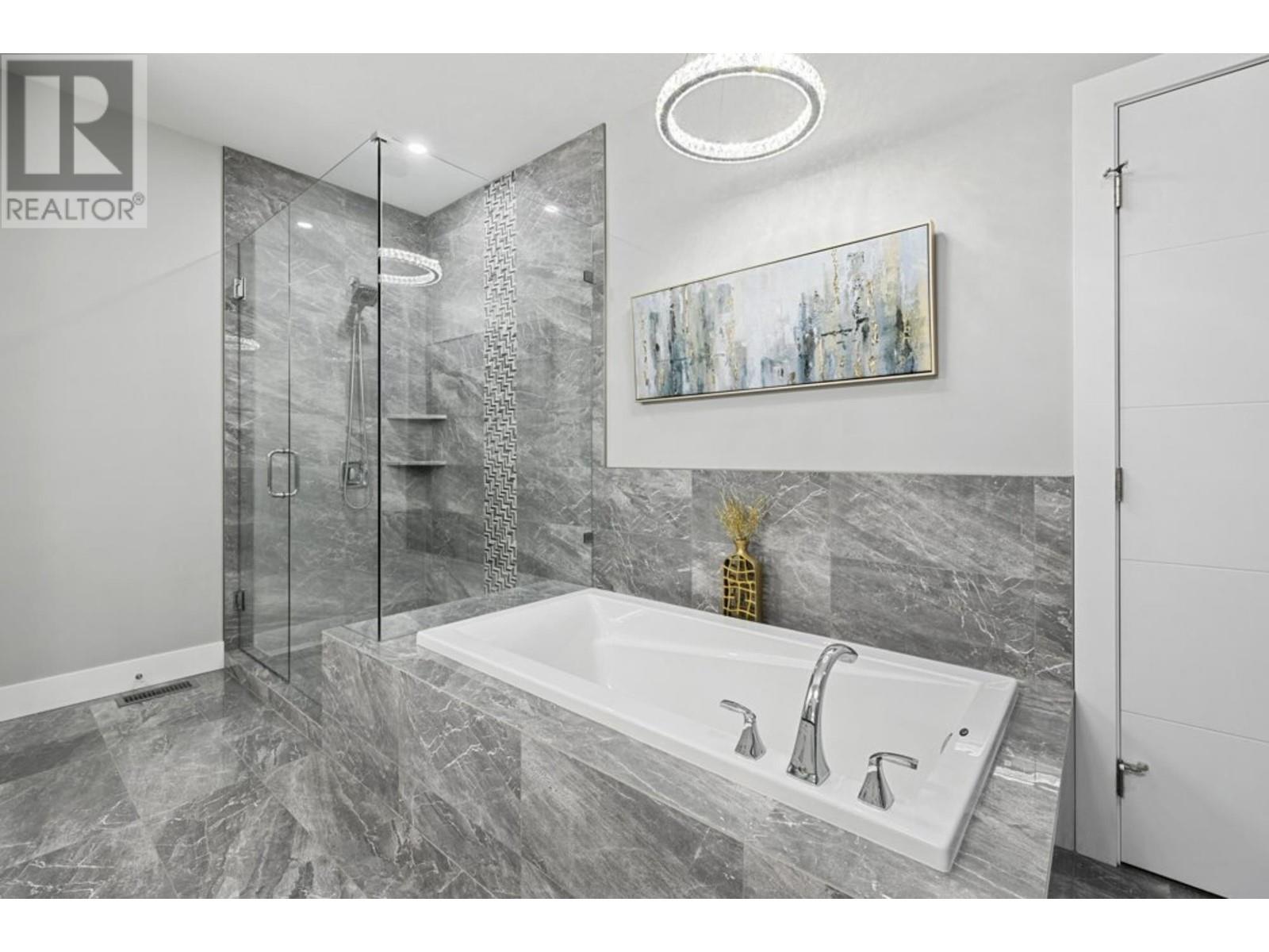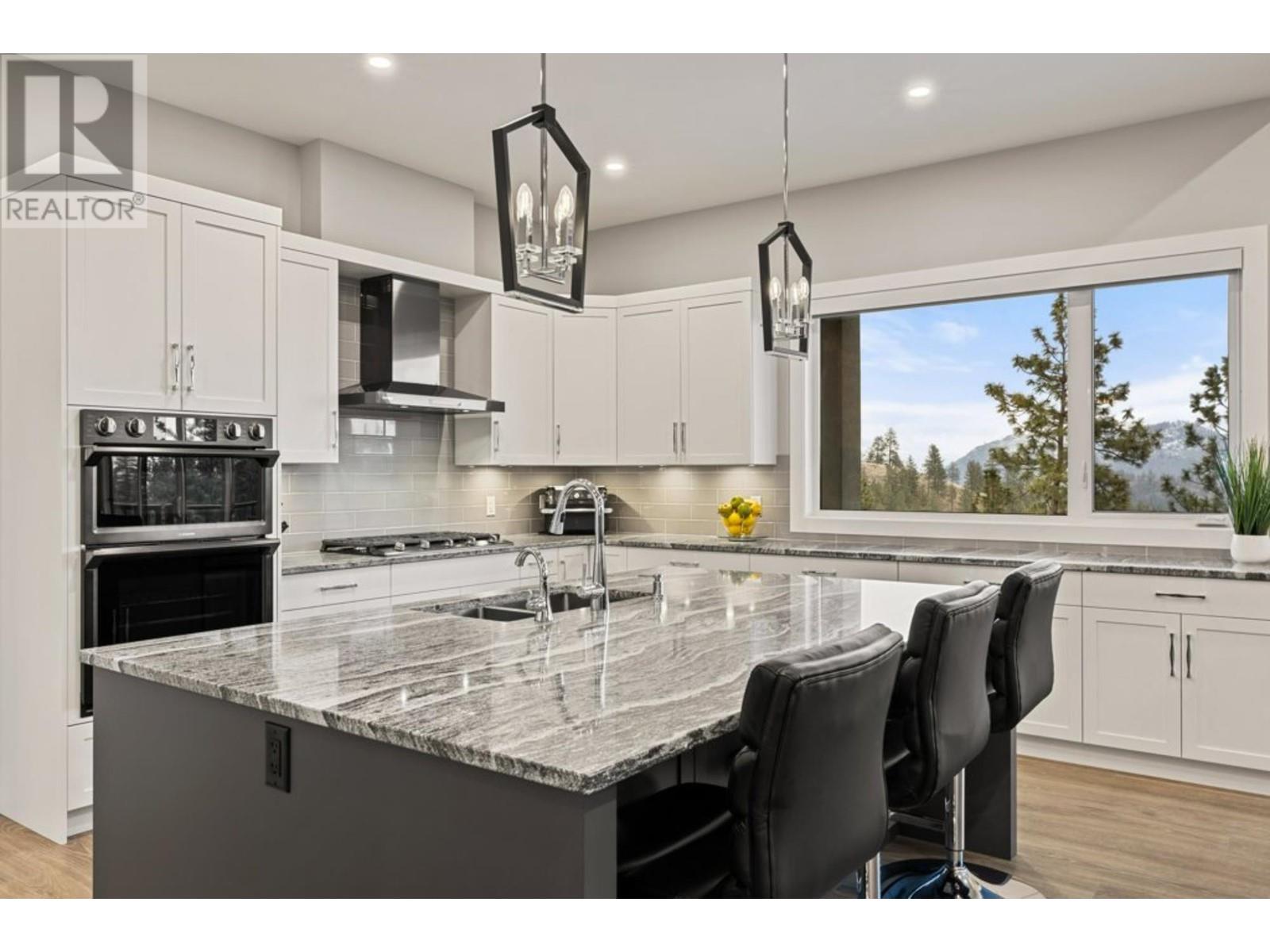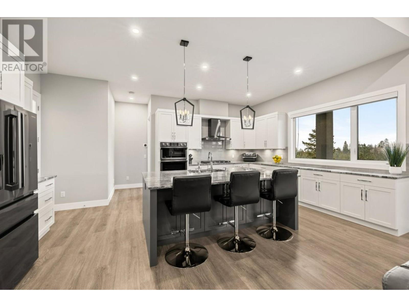 Custom built home by multiple award winning Operon Homes. This spacious 5-bedroom, 5-bathroom home seamlessly blends luxury & functionality. Featuring an elevator, 900 sq. ft. heated garage & versatile 600 sq. ft. heated flex room with 220V—perfect for a workshop. A 1 bedroom legal suite with laundry hookups & private entry adds value. The main level impresses with 12 ft ceilings, 8 ft doors & an open concept. The great room is highlighted by a floor-to-ceiling gas fireplace with TV recess. The chef’s kitchen boasts a gas cooktop, 5x8 ft. island with cabinetry & butler’s pantry. The home is equipped with a whole-home water filtration/softener system, reverse osmosis kitchen faucet & built-in vacuum. The spacious primary bedroom features a luxurious ensuite with heated floors, a separate water closet & expansive walk-in closet with direct access to the laundry. A 2nd bedroom & guest bathroom with a tiled shower are also on the main floor. The lower level includes the suite, the flex room, 2 additional bedrooms (one with walk-in closet & ensuite), a full bathroom, a large family room, storage & private patio with hot tub. The garage accommodates 3+ cars with a 12-ft ceiling, 220V outlet, hot/cold water & built-in cabinets. The home’s low-maintenance exterior & expansive upper deck overlooks the view & oversized lot, ensuring privacy with no future development behind you. Located in a quiet cul-de-sac, enjoy easy access to shopping, lakes, golf, wineries & numerous trails. (id:48970)