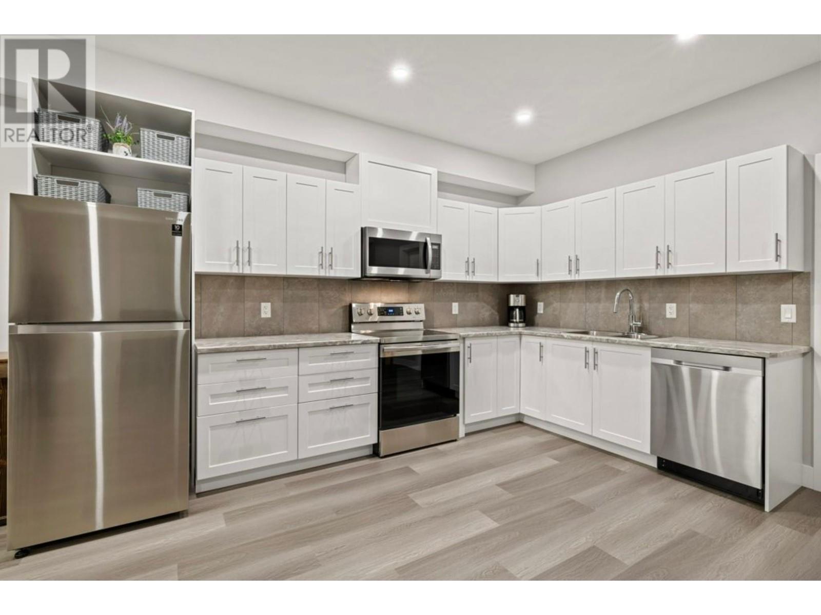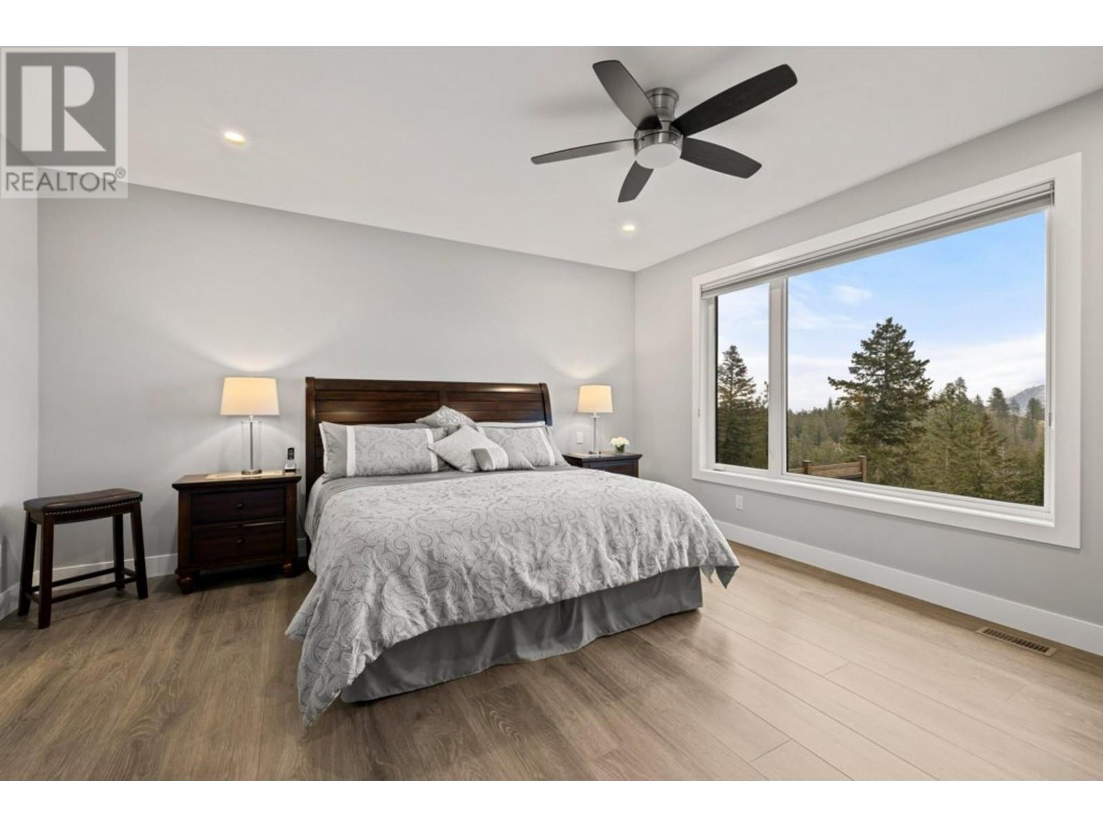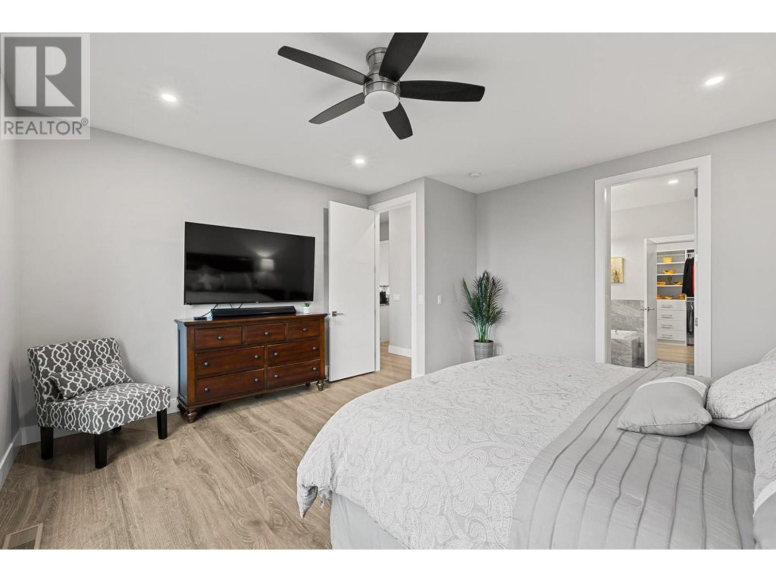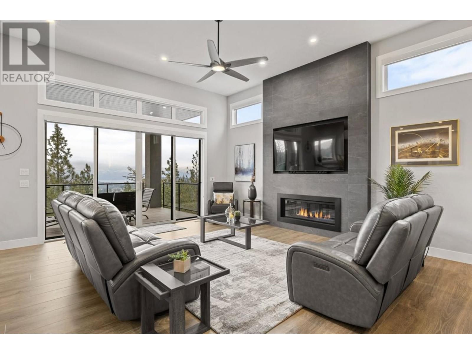 Custom built home by multiple award winning Operon Homes. This spacious 5-bedroom, 5-bathroom home seamlessly blends luxury & functionality. Featuring an elevator, 900 sq. ft. heated garage & versatile 600 sq. ft. heated flex room with 220V—perfect for a workshop. A 1 bedroom legal suite with laundry hookups & private entry adds value. The main level impresses with 12 ft ceilings, 8 ft doors & an open concept. The great room is highlighted by a floor-to-ceiling gas fireplace with TV recess. The chef’s kitchen boasts a gas cooktop, 5x8 ft. island with cabinetry & butler’s pantry. The home is equipped with a whole-home water filtration/softener system, reverse osmosis kitchen faucet & built-in vacuum. The spacious primary bedroom features a luxurious ensuite with heated floors, a separate water closet & expansive walk-in closet with direct access to the laundry. A 2nd bedroom & guest bathroom with a tiled shower are also on the main floor. The lower level includes the suite, the flex room, 2 additional bedrooms (one with walk-in closet & ensuite), a full bathroom, a large family room, storage & private patio with hot tub. The garage accommodates 3+ cars with a 12-ft ceiling, 220V outlet, hot/cold water & built-in cabinets. The home’s low-maintenance exterior & expansive upper deck overlooks the view & oversized lot, ensuring privacy with no future development behind you. Located in a quiet cul-de-sac, enjoy easy access to shopping, lakes, golf, wineries & numerous trails. (id:48970)
