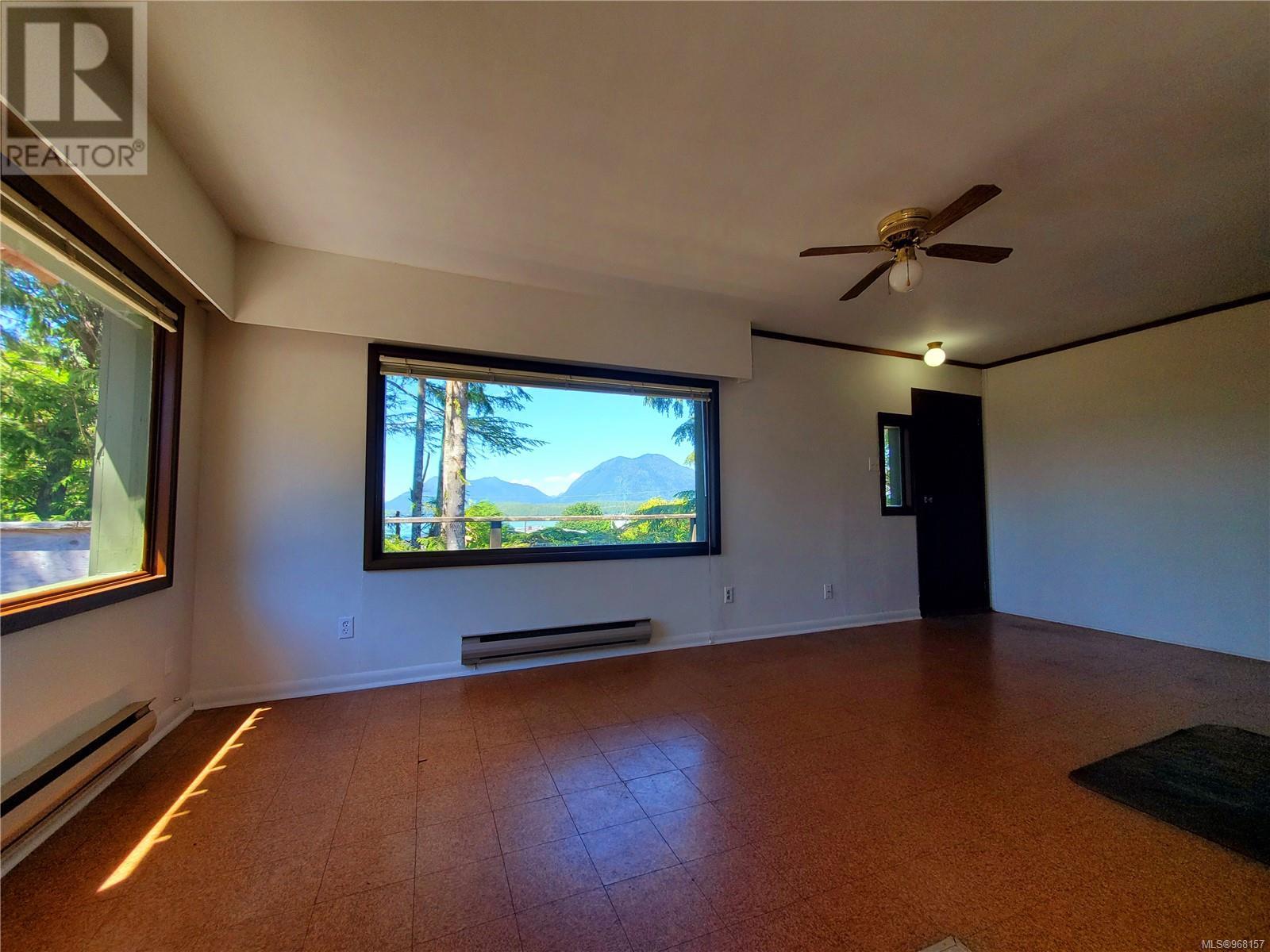 INCREDIBLE VIEW & CENTRALLY LOCATED. This 3-bedr, 1-bath second floor layout w/spare room and half bathroom ground floor is brimming with untapped opportunity. The open-concept fixer-upper single-family home hidden in the heart of Tofino could be improved upon to maximize the full R2 zoning potential. In need of updates, this property offers charm, nostalgia, history and ultimately an opportunity to create your own haven among the tree canopy. The cozy wood stove, inviting open floor plan, expansive picture windows that add warmth & flood the space with natural light, invoke a sense of comfort and security nestled at over 20 meters above sea-level. The wild & natural backyard offers a woodshed, parking, and a bonus 19'x20' detached garage/studio with skylights for dry/secure storage. On Sunny days, the patio and backyard are microclimates of their own. Must be seen to truly appreciate. Main access via the adjacent alley off of First St. Connect directly for a private viewing. (id:48970)