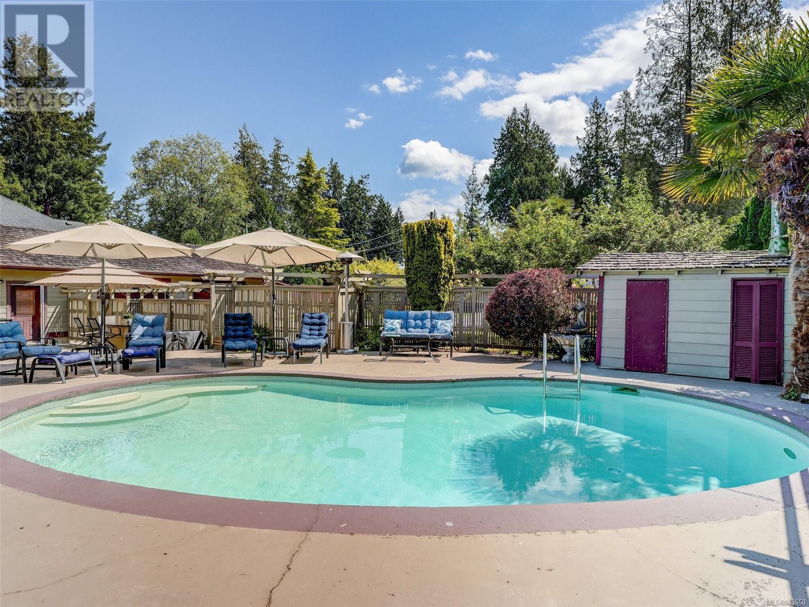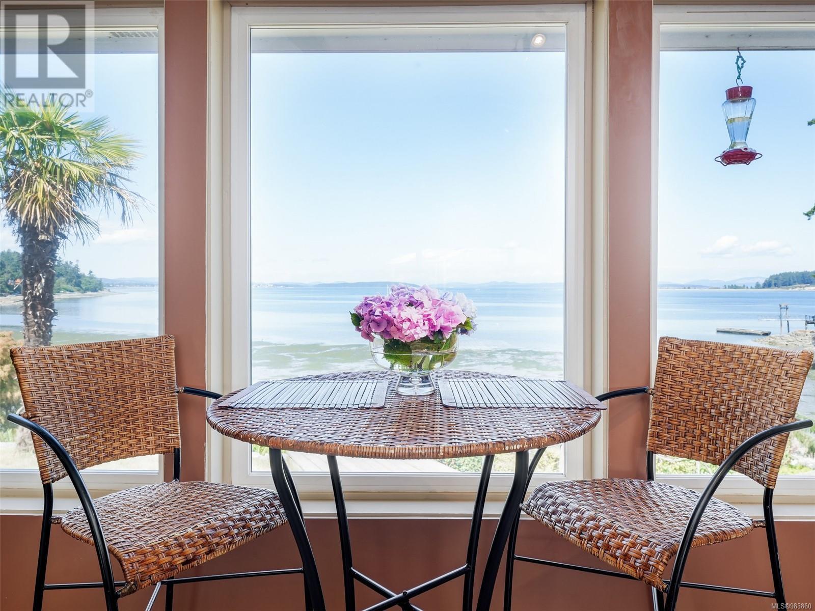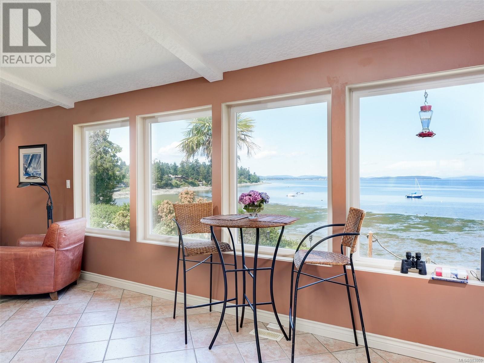 OCEAN FRONT PROPERTY WITH STUNNING PANORAMIC VIEWS. This special home is tucked away on a quiet dead end street, situated on a 20,000+ sqft private lot there's an opportunity for you to build your dream home or update the existing home. A spacious 5 bed, 4 bath home with vaulted ceilings and large picture windows to enjoy the breathtaking 180 deg views. Upper has 3 bedrooms and 2 baths, the primary bedroom that opens to a balcony with a view. Featuring a large kitchen with adjacent dining/living room. Lower level offers a large family room, rec room/studio, plenty of storage space and crawlspace, 2 additional beds and 2 baths. The double garage has a convenient 3 pc bath. Outside you will enjoy countless hours lounging by the pool (heated by the sun) on the sunny patio surrounded by friends and family. Easy access to the sandy and pebble beach down the steps to beach comb until your hearts desire. Fishing, boating or kayaking from your own backyard on beautiful Ferguson Cove with views of James Island and the lights of Sidney. Public dock 100m away for crabbing and pawning. Ample parking for RV, boat, or multiple vehicles. Conveniently located near Sidney for shopping and dining, and just minutes from Saanichton Center. (id:48970)