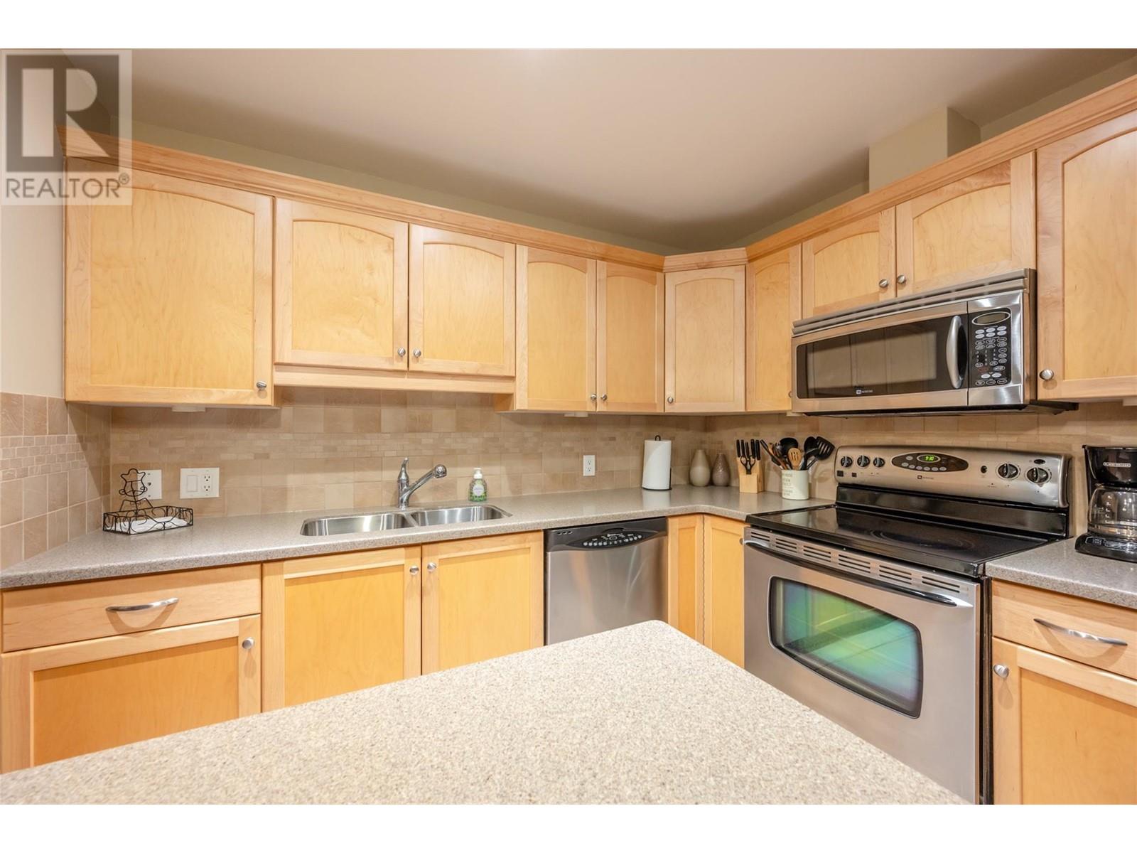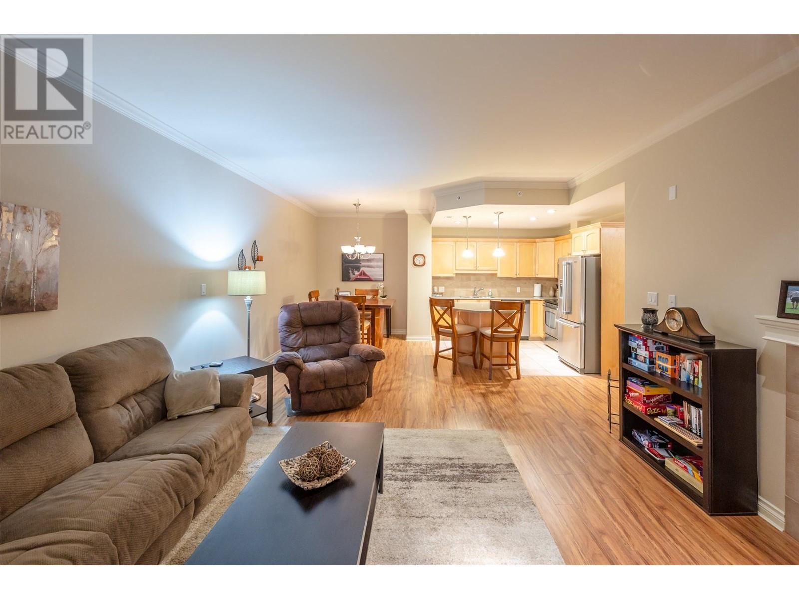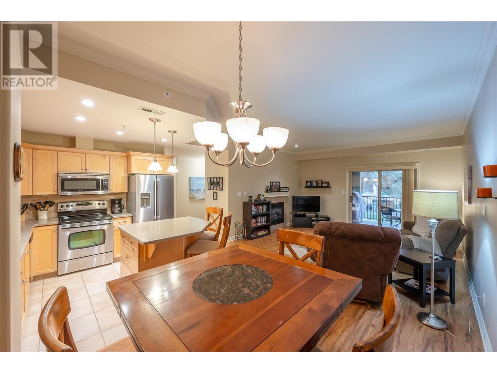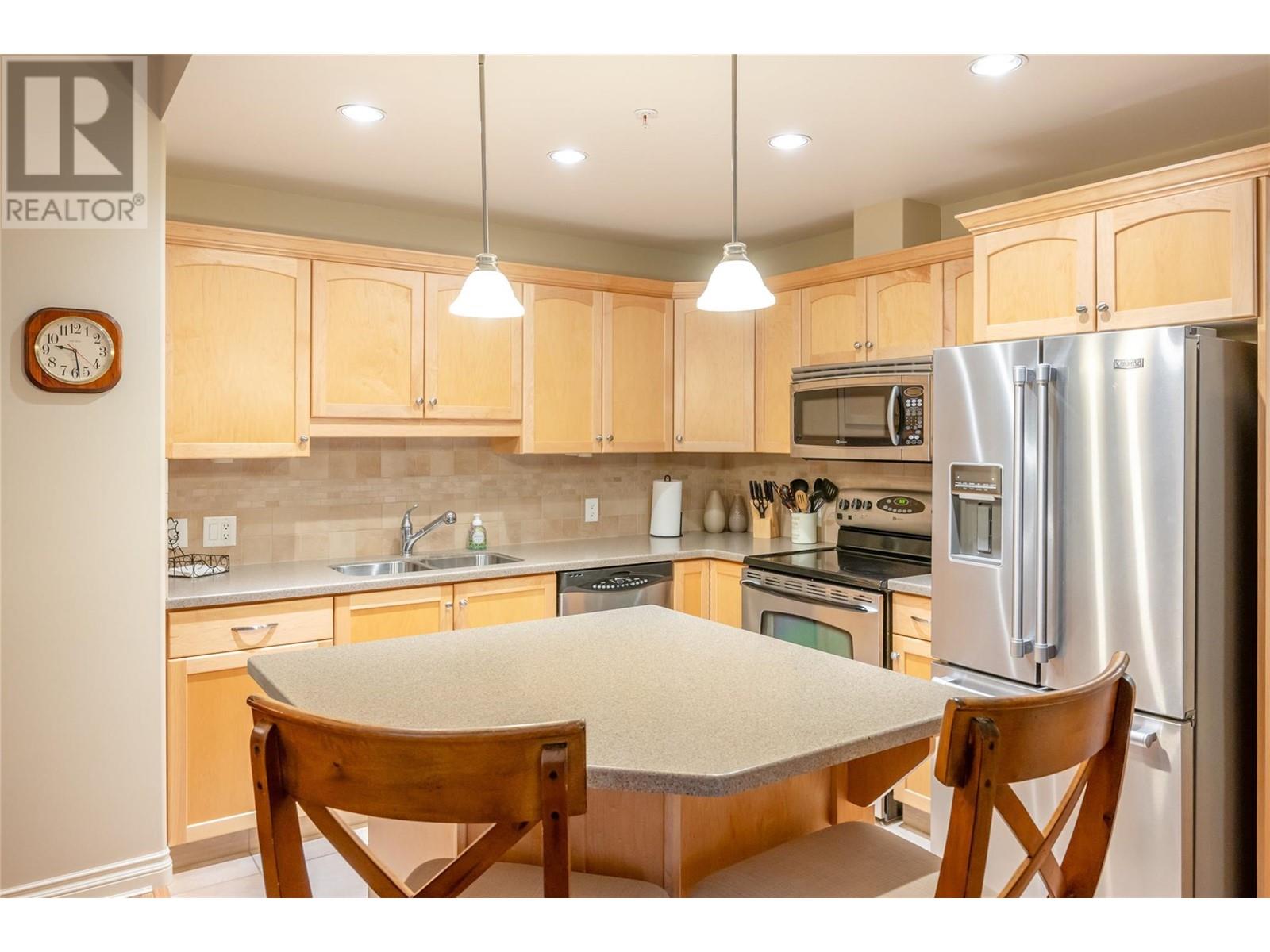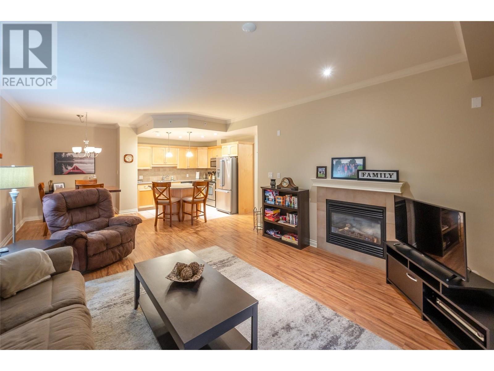 This stunning two bedroom and two-bathroom condo is located at Skaha One only a few minutes stroll to the outstanding Skaha Lake Beach and Park area. Fantastic open layout design with beautiful kitchen, center island, stainless appliances, and adjacent dining and living area with gas fireplace. You will love the spacious primary bedroom with walk-thru closet and four-piece ensuite, a nice second bedroom for guests., and a main four-piece bathroom. Enjoy the covered private deck with gas hook up for your BBQ’s and entertaining. The secure underground parking, bicycle parking, and storage locker on the same floor complete this awesome package. A wonderful place to call home, investment property, or the perfect vacation get-away. This exceptional building welcomes all ages, long-term rentals, and is pet-friendly (cats only). Call the Listing Agent for more details. (id:48970)