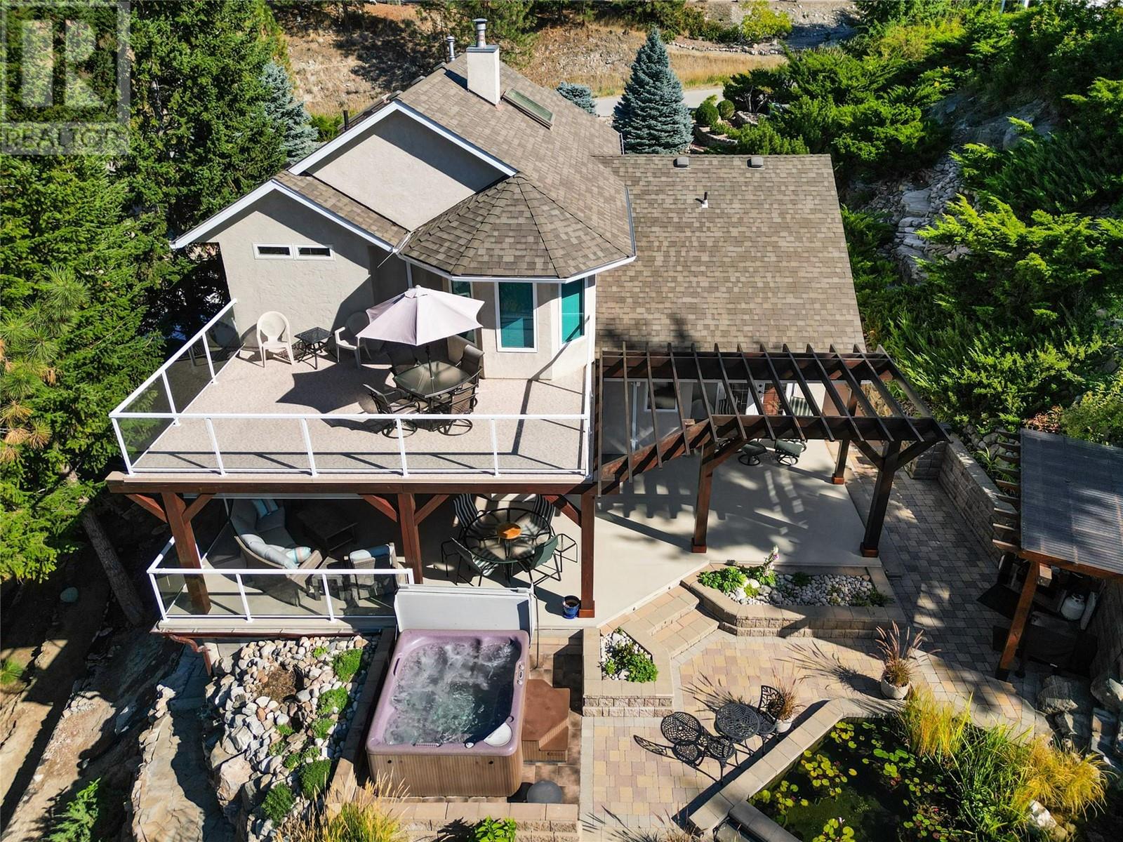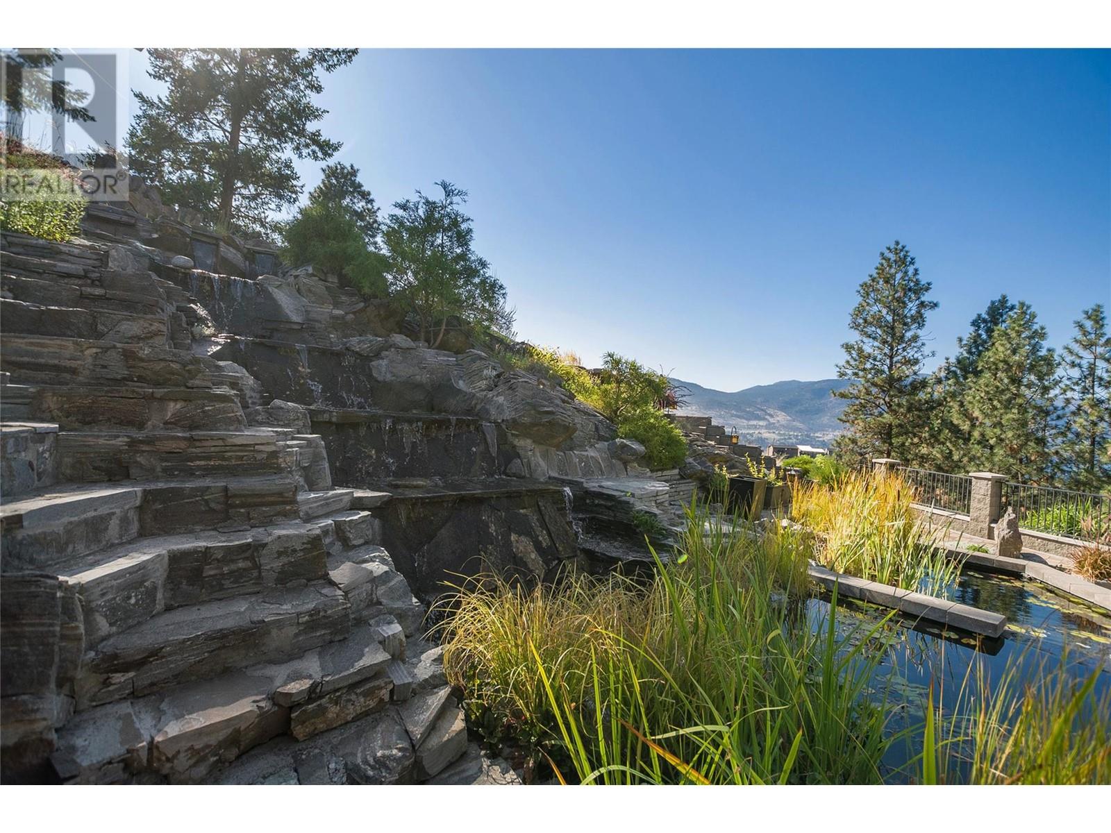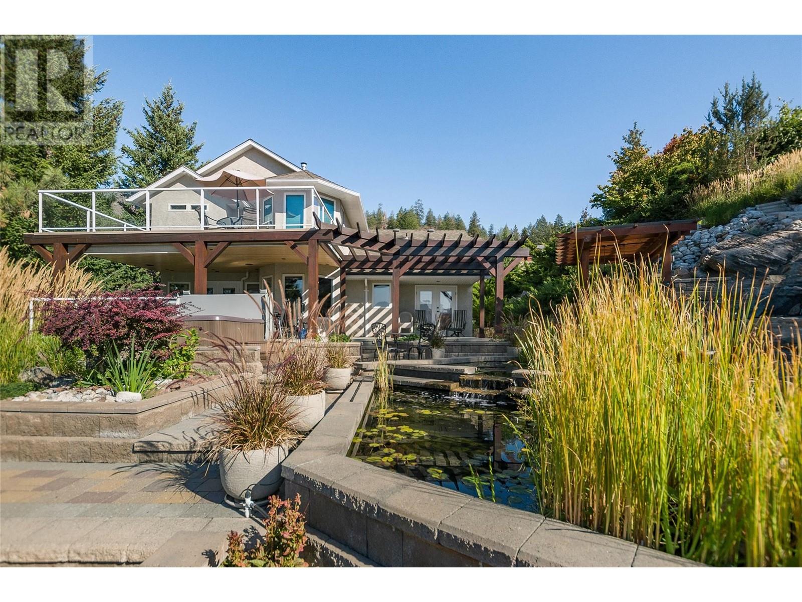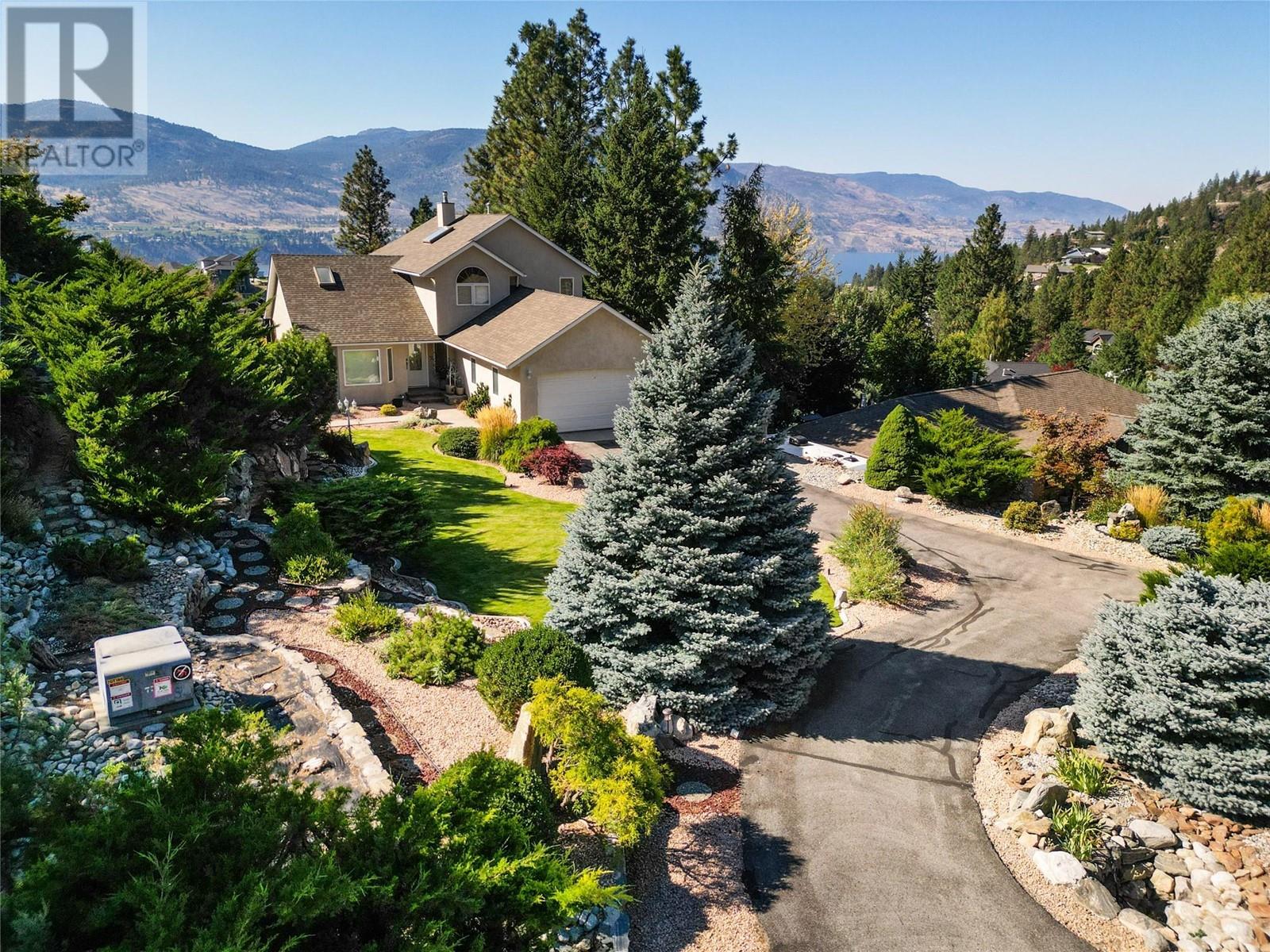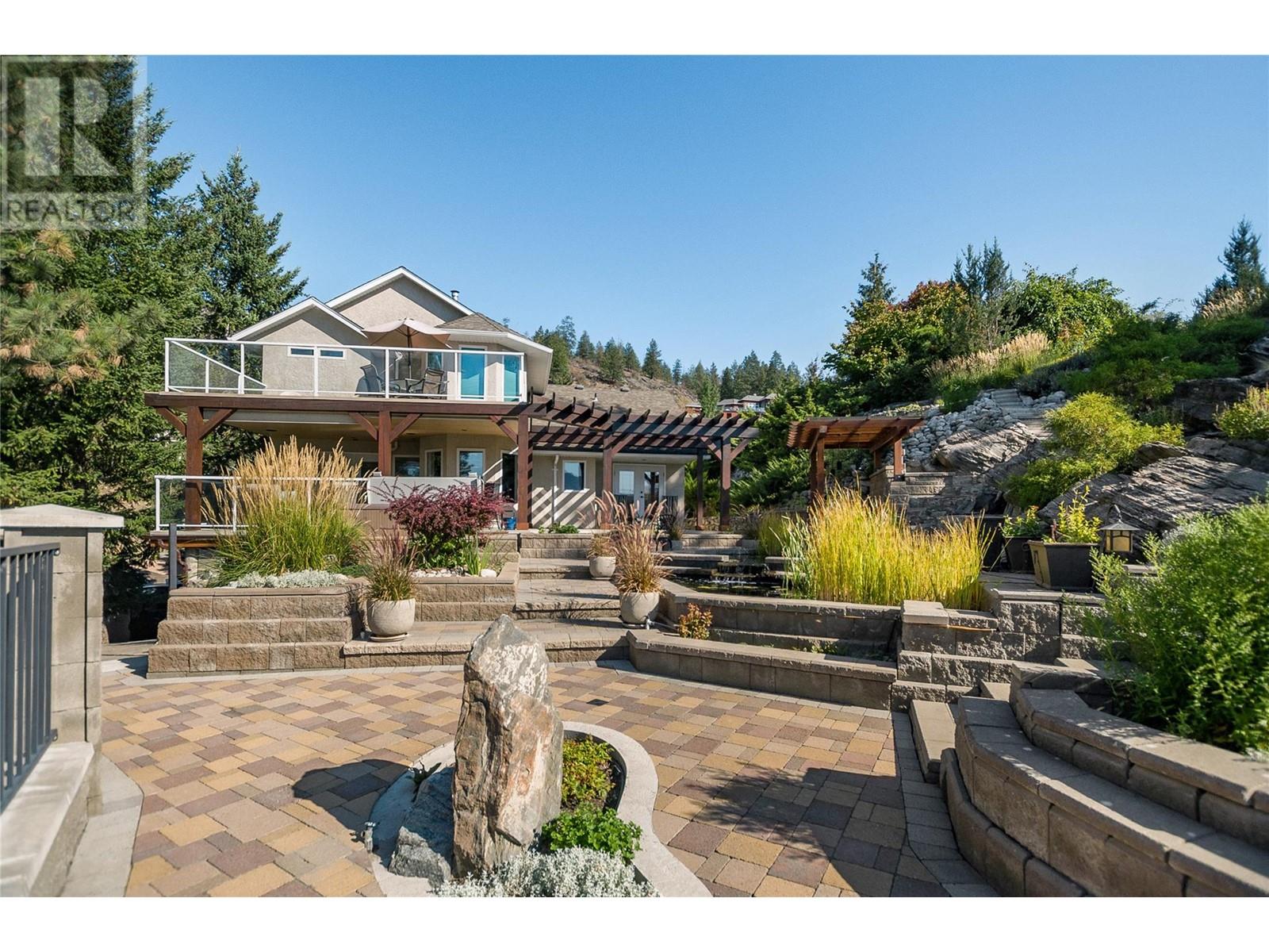 CLICK TO VIEW VIDEO: Welcome to this exquisite 3 bdrm, 3 bthrm estate. This luxury retreat is located in the prestigious Heritage Hills community and a perfect blend of modern elegance & natural tranquility, situated on a private .55-acre lot with spectacular lake & mountain views. The home’s interior exudes sophistication with elegant hardwood floors and a timeless spiral staircase. The recently updated kitchen features two-tone cabinetry, quartz countertops & high-end appliances - perfect for daily use. The spa-like ensuite and other modern upgrades throughout the home, including luxurious tile work and spacious bathrooms, add to its refined charm. Step outside into your own personal oasis - a meticulously planned backyard with a stunning waterfall, lush-low maintenance landscaping that's been lovingly curated. The expansive covered deck offers the ideal spot for dining al fresco while soaking in the lake views, with an integrated BBQ area, hot tub & serene viewpoints perfect for relaxation or entertaining guests. In addition, the primary bedroom opens to a private balcony with panoramic lake views, creating a peaceful escape from everyday life. The double car garage provides ample space for vehicles or recreational gear, making this home ideal for those who love both luxury and the great outdoors. Conveniently located mere minutes from Penticton, yet surrounded by hiking trails & natural beauty, this beautiful home offers the perfect balance of seclusion & accessibility. (id:48970)