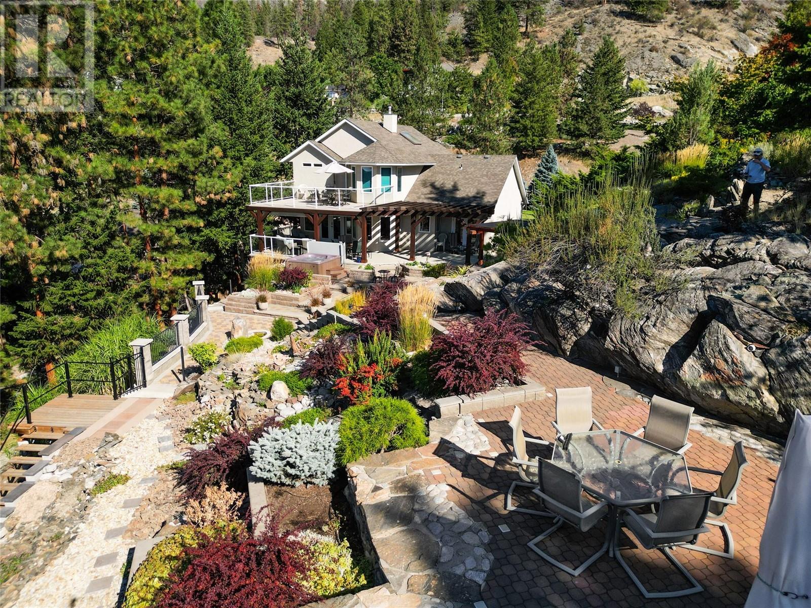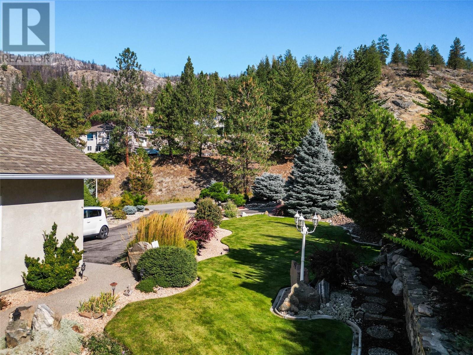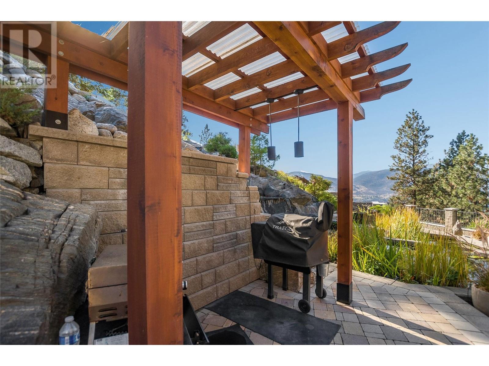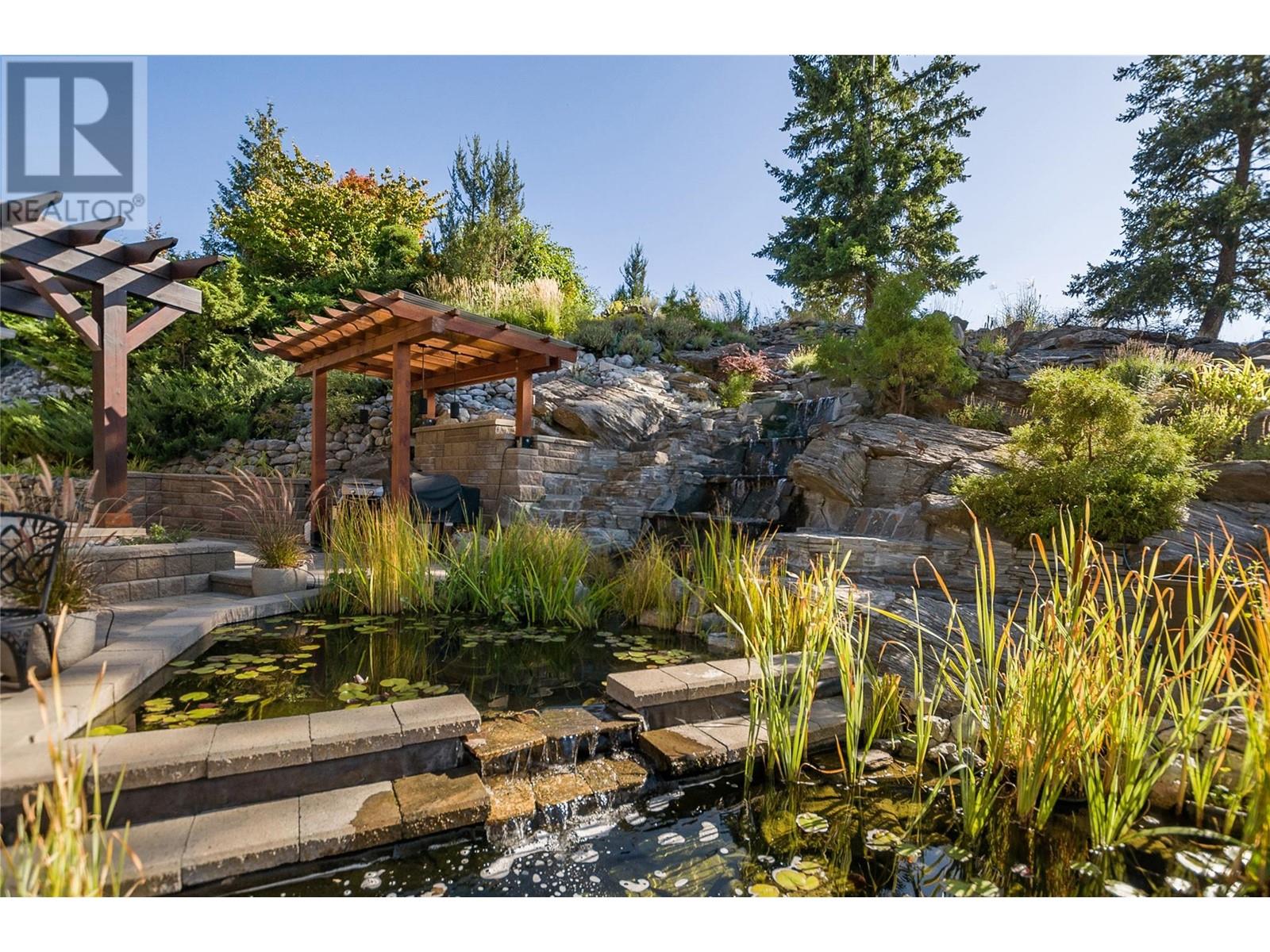 CLICK TO VIEW VIDEO: Welcome to this exquisite 3 bdrm, 3 bthrm estate. This luxury retreat is located in the prestigious Heritage Hills community and a perfect blend of modern elegance & natural tranquility, situated on a private .55-acre lot with spectacular lake & mountain views. The home’s interior exudes sophistication with elegant hardwood floors and a timeless spiral staircase. The recently updated kitchen features two-tone cabinetry, quartz countertops & high-end appliances - perfect for daily use. The spa-like ensuite and other modern upgrades throughout the home, including luxurious tile work and spacious bathrooms, add to its refined charm. Step outside into your own personal oasis - a meticulously planned backyard with a stunning waterfall, lush-low maintenance landscaping that's been lovingly curated. The expansive covered deck offers the ideal spot for dining al fresco while soaking in the lake views, with an integrated BBQ area, hot tub & serene viewpoints perfect for relaxation or entertaining guests. In addition, the primary bedroom opens to a private balcony with panoramic lake views, creating a peaceful escape from everyday life. The double car garage provides ample space for vehicles or recreational gear, making this home ideal for those who love both luxury and the great outdoors. Conveniently located mere minutes from Penticton, yet surrounded by hiking trails & natural beauty, this beautiful home offers the perfect balance of seclusion & accessibility. (id:48970)