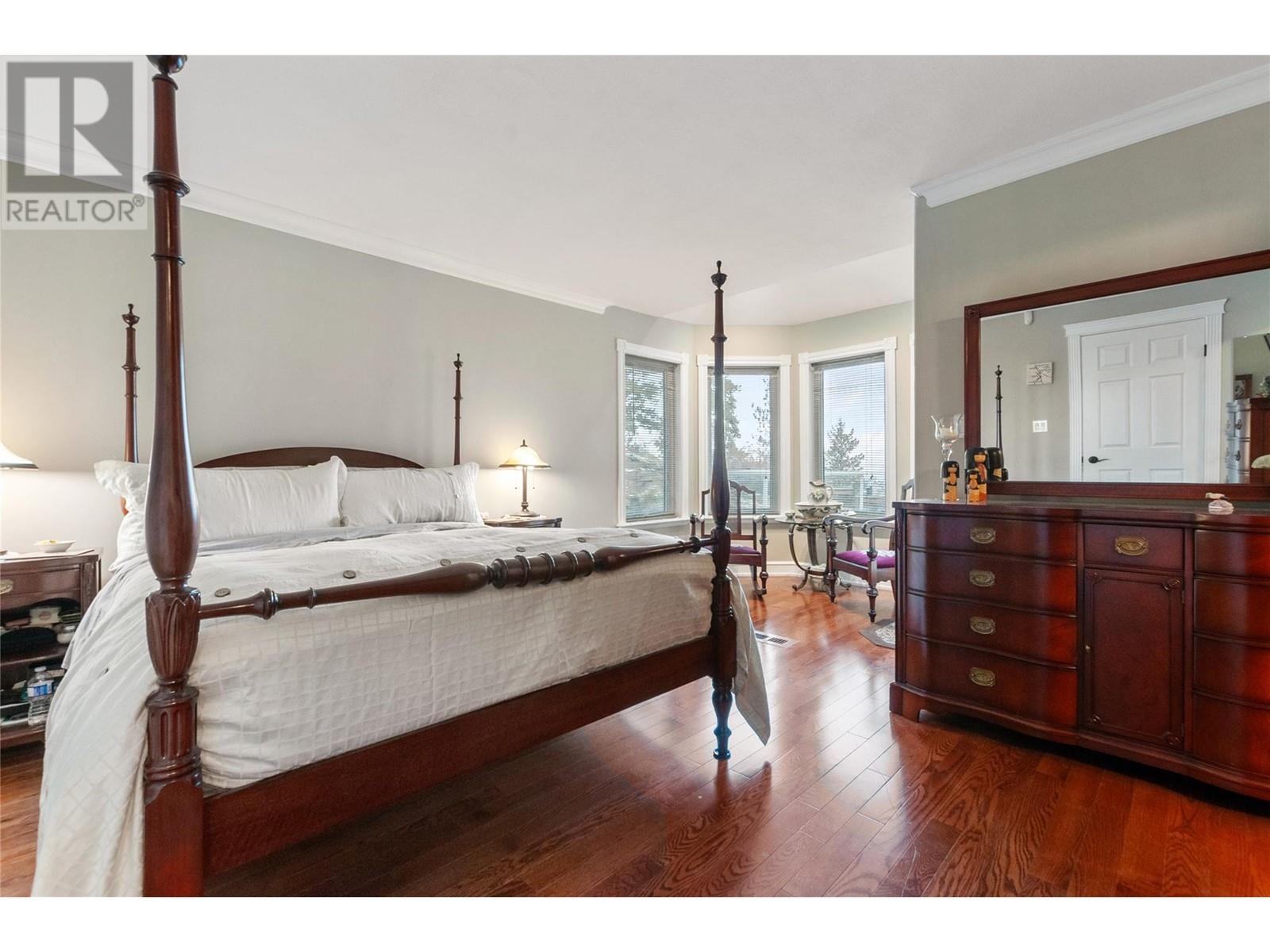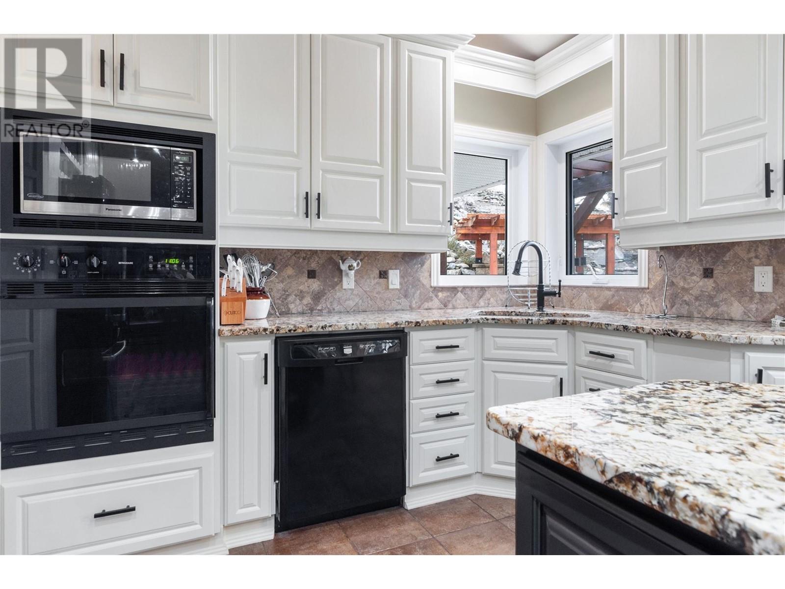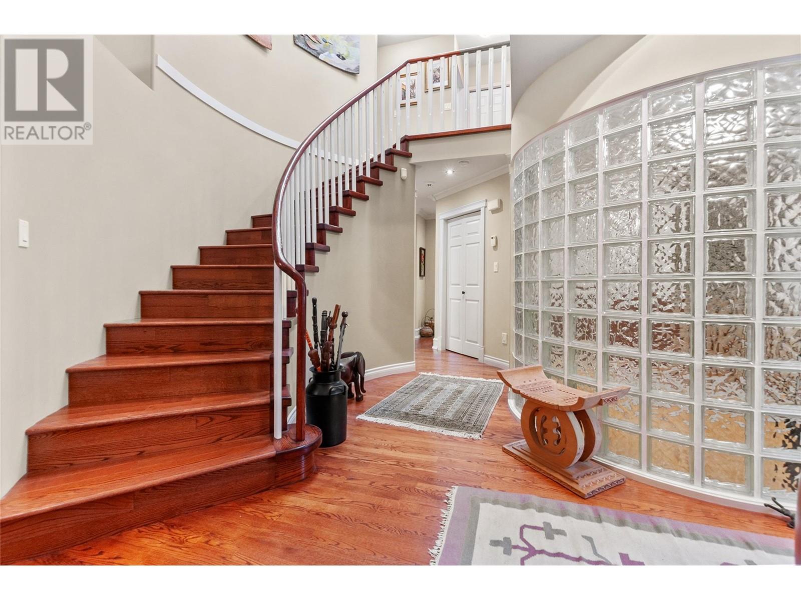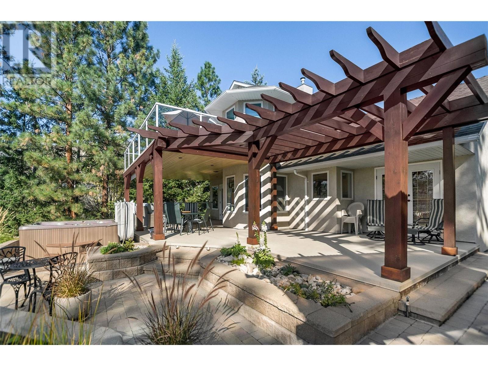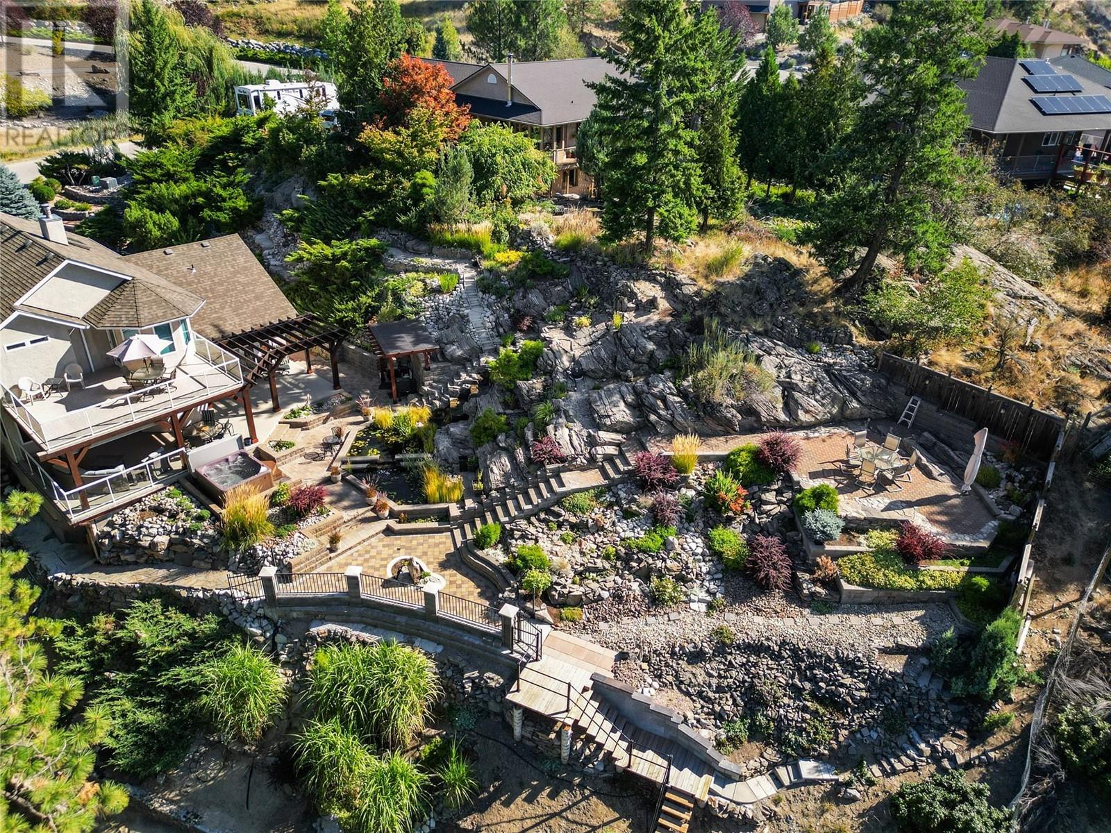 CLICK TO VIEW VIDEO: Welcome to this exquisite 3 bdrm, 3 bthrm estate. This luxury retreat is located in the prestigious Heritage Hills community and a perfect blend of modern elegance & natural tranquility, situated on a private .55-acre lot with spectacular lake & mountain views. The home’s interior exudes sophistication with elegant hardwood floors and a timeless spiral staircase. The recently updated kitchen features two-tone cabinetry, quartz countertops & high-end appliances - perfect for daily use. The spa-like ensuite and other modern upgrades throughout the home, including luxurious tile work and spacious bathrooms, add to its refined charm. Step outside into your own personal oasis - a meticulously planned backyard with a stunning waterfall, lush-low maintenance landscaping that's been lovingly curated. The expansive covered deck offers the ideal spot for dining al fresco while soaking in the lake views, with an integrated BBQ area, hot tub & serene viewpoints perfect for relaxation or entertaining guests. In addition, the primary bedroom opens to a private balcony with panoramic lake views, creating a peaceful escape from everyday life. The double car garage provides ample space for vehicles or recreational gear, making this home ideal for those who love both luxury and the great outdoors. Conveniently located mere minutes from Penticton, yet surrounded by hiking trails & natural beauty, this beautiful home offers the perfect balance of seclusion & accessibility. (id:48970)