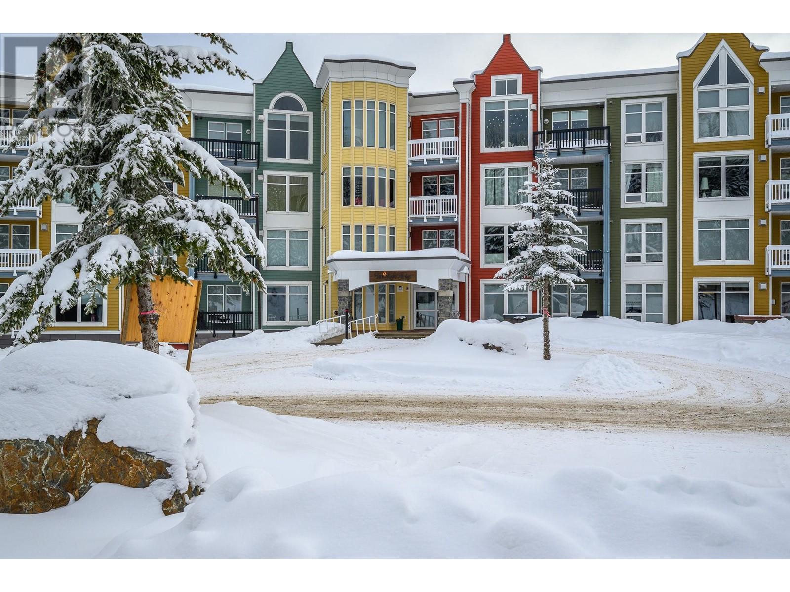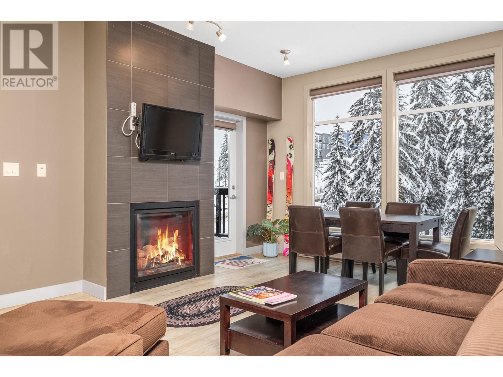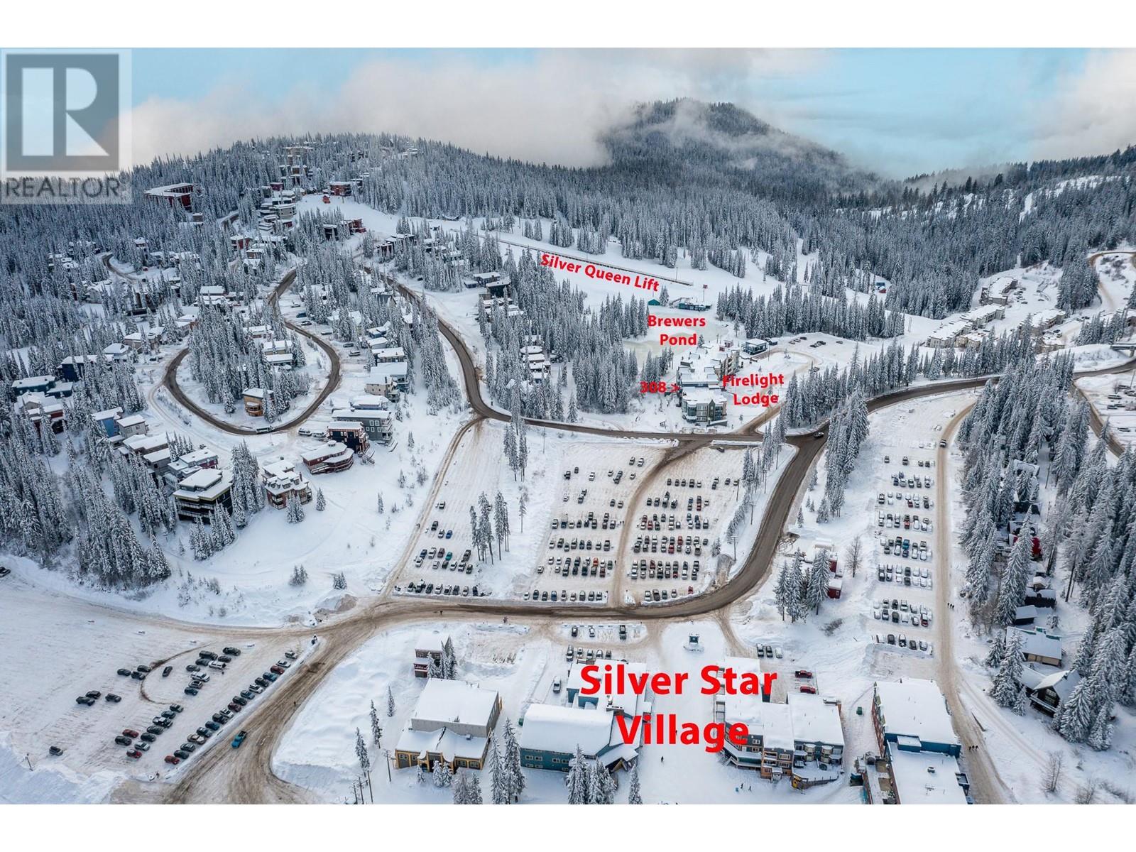 Nestled in the heart of Silver Star, this 2-bedroom, 2-full bathroom Firelight condo offers the perfect combination of comfort, style, and convenience. Located just a short stroll from the Village and only steps from Brewers Pond, Tube Town, and the Silver Queen chairlift, you'll have easy year-round access to all the mountain activities and adventure Silver Star has to offer. As you enter, you'll be greeted by an open-concept living space with high ceilings and expansive south-facing windows that frame stunning views of Silver Star's picturesque trees and flood the home with natural light. A cozy gas fireplace adds warmth and ambiance to the living area, while a private balcony provides the perfect spot to unwind and enjoy the fresh mountain air. The well-equipped kitchen is ideal for preparing meals after a day of outdoor fun. Spacious bedrooms are thoughtfully separated by the living area, offering plenty of privacy for everyone. Additional features include in-suite laundry, underground parking, 2 storage lockers, and access to a shared hot tub. With Silver Star's ski slopes, hiking trails, and amenities right out your door, this condo is the ideal base to embrace everything the mountain has to offer. (id:48970)