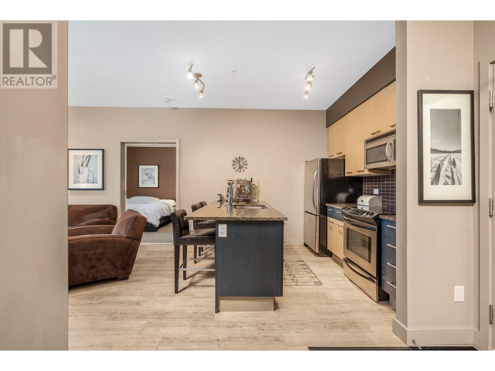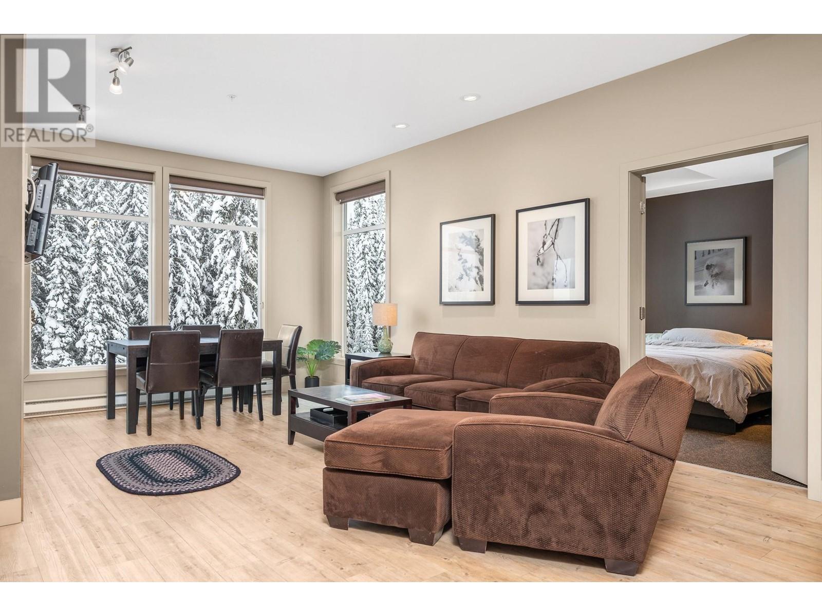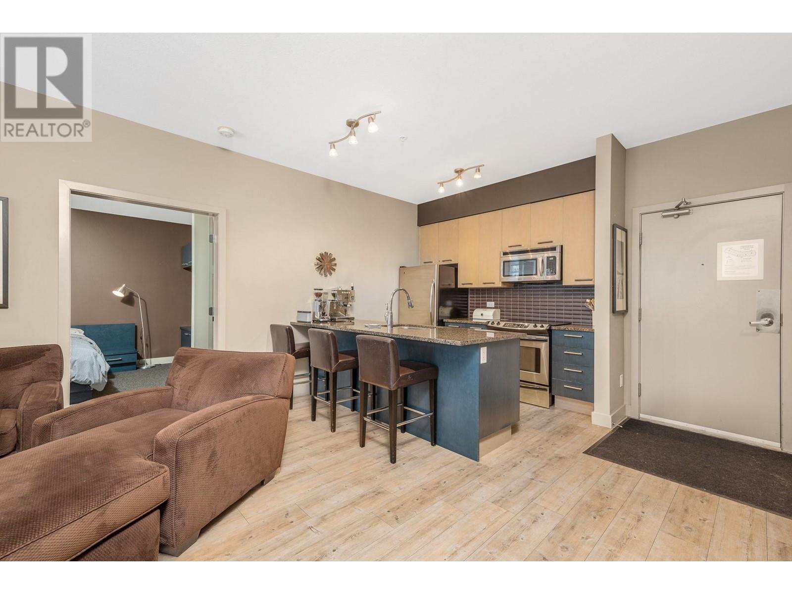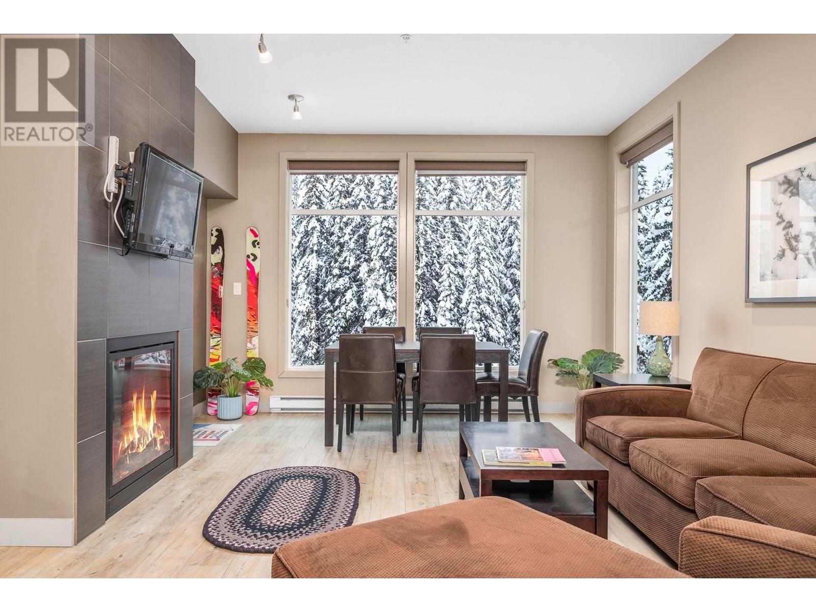 Nestled in the heart of Silver Star, this 2-bedroom, 2-full bathroom Firelight condo offers the perfect combination of comfort, style, and convenience. Located just a short stroll from the Village and only steps from Brewers Pond, Tube Town, and the Silver Queen chairlift, you'll have easy year-round access to all the mountain activities and adventure Silver Star has to offer. As you enter, you'll be greeted by an open-concept living space with high ceilings and expansive south-facing windows that frame stunning views of Silver Star's picturesque trees and flood the home with natural light. A cozy gas fireplace adds warmth and ambiance to the living area, while a private balcony provides the perfect spot to unwind and enjoy the fresh mountain air. The well-equipped kitchen is ideal for preparing meals after a day of outdoor fun. Spacious bedrooms are thoughtfully separated by the living area, offering plenty of privacy for everyone. Additional features include in-suite laundry, underground parking, 2 storage lockers, and access to a shared hot tub. With Silver Star's ski slopes, hiking trails, and amenities right out your door, this condo is the ideal base to embrace everything the mountain has to offer. (id:48970)