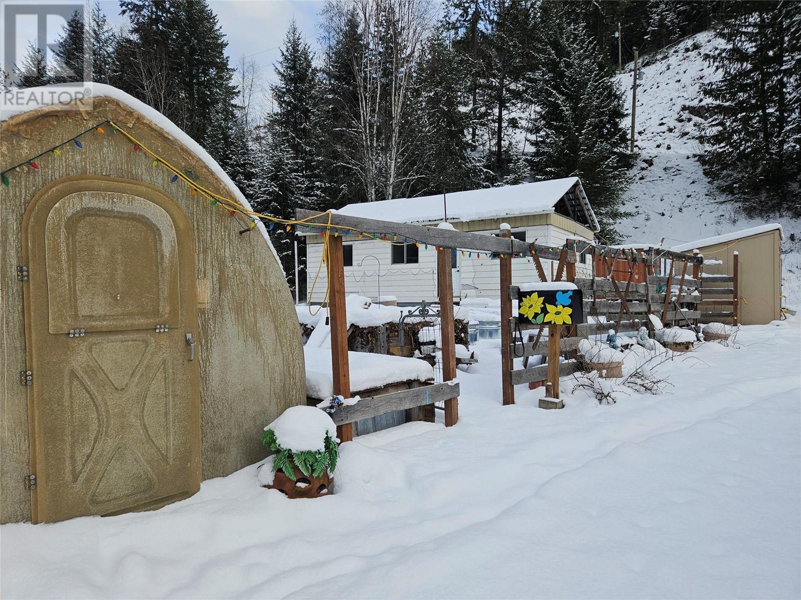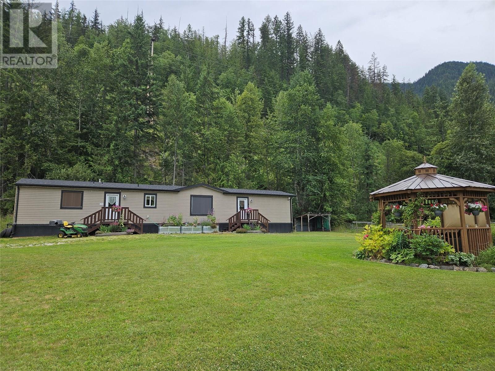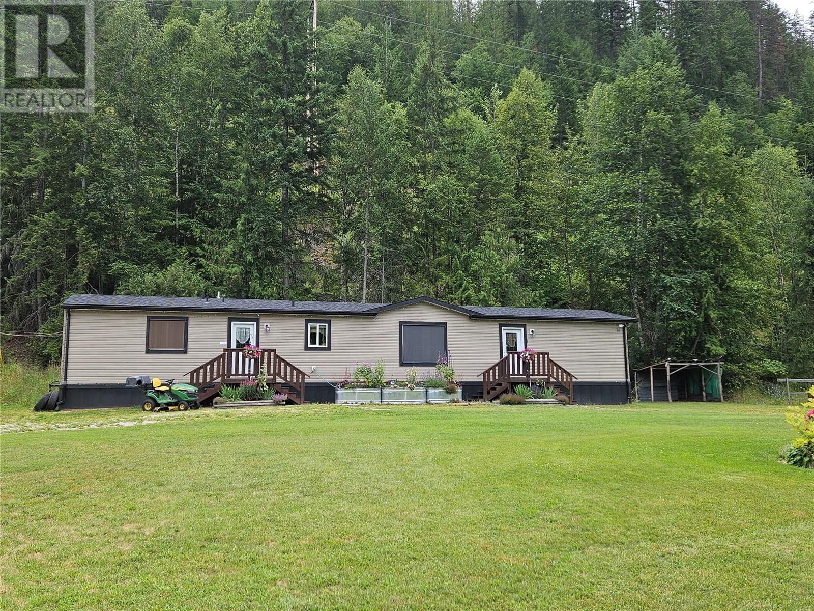 Call it New. 2019 SRI Home Proudly built in Canada. This 16 x 76 home is beautifully laid out with 3 bedrooms all with walk in closets. The master bedroom also has a full ensuit. Cathedral ceiling in Kitchen , Dining and Living room. Sliding doors off dining area to large covered deck with hookup for hot tub that is so private. This home is situated on .88 of an Acre that is level, Landscaped with 12 Fruit bearing trees, grapes, raspberries, goose berries, red currents, Vegetable garden with greenhouse. Perennial flowers of all type and all seasons beautify this place in spring, summer and fall. Large detached workshop/storage. Plenty of room for the large family gatherings to circle the wagons. 2 minutes to McDonald creek provincial park on the Arrow Lakes. 5 minutes to Arrow Park where one can take a short ferry ride to explore endless Forest Service Rds that lead you to lakes and ATV trails and Hiking. Only 15 min to Nakusp. (id:48970)