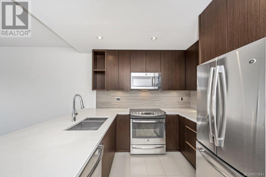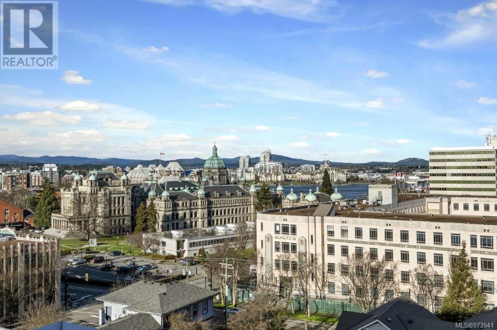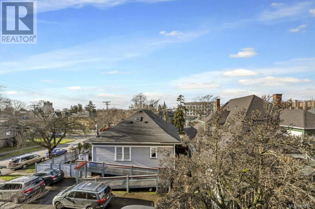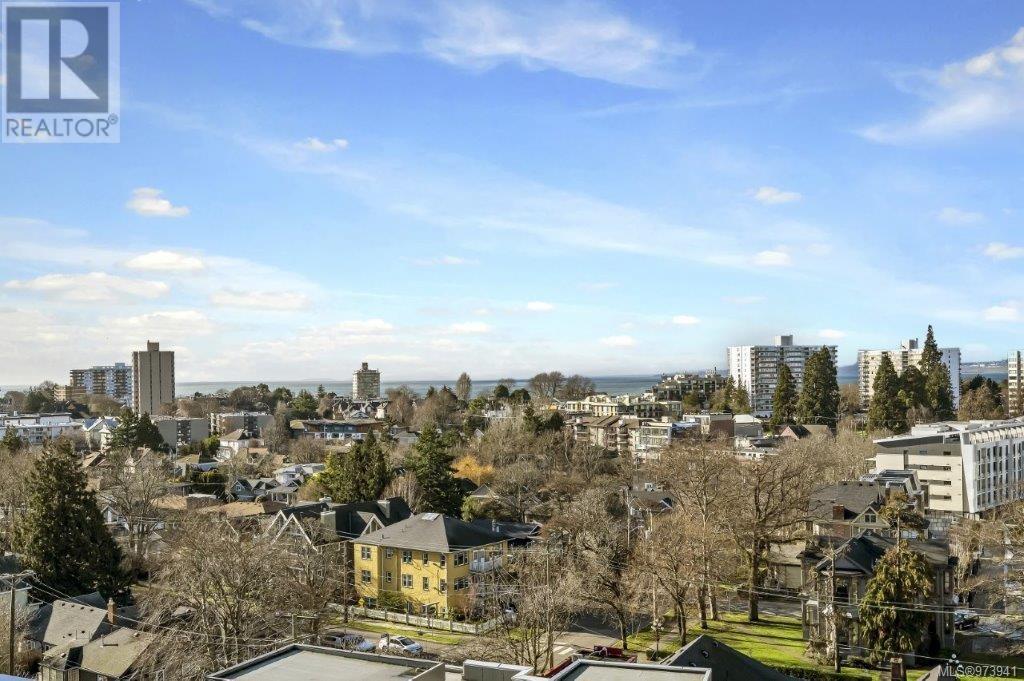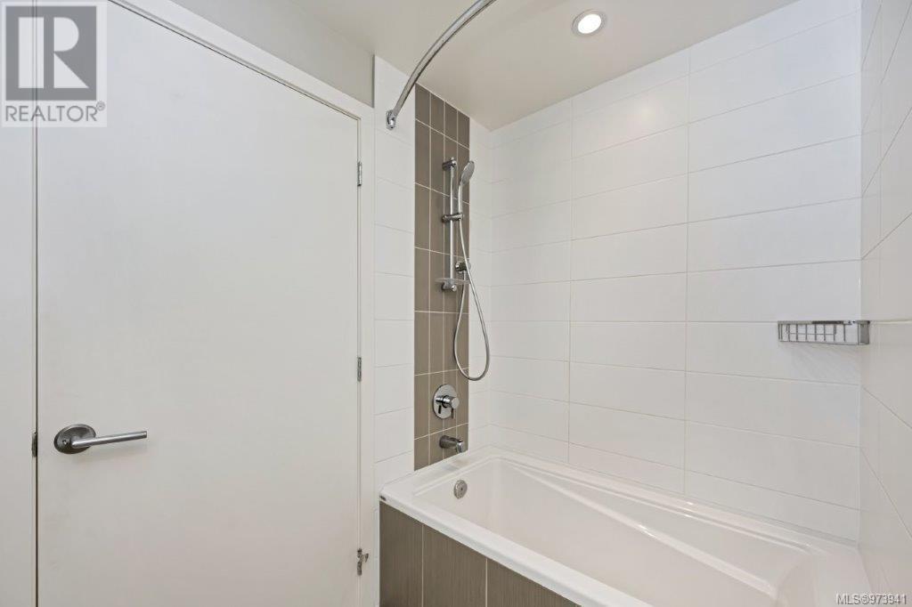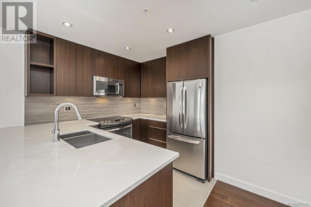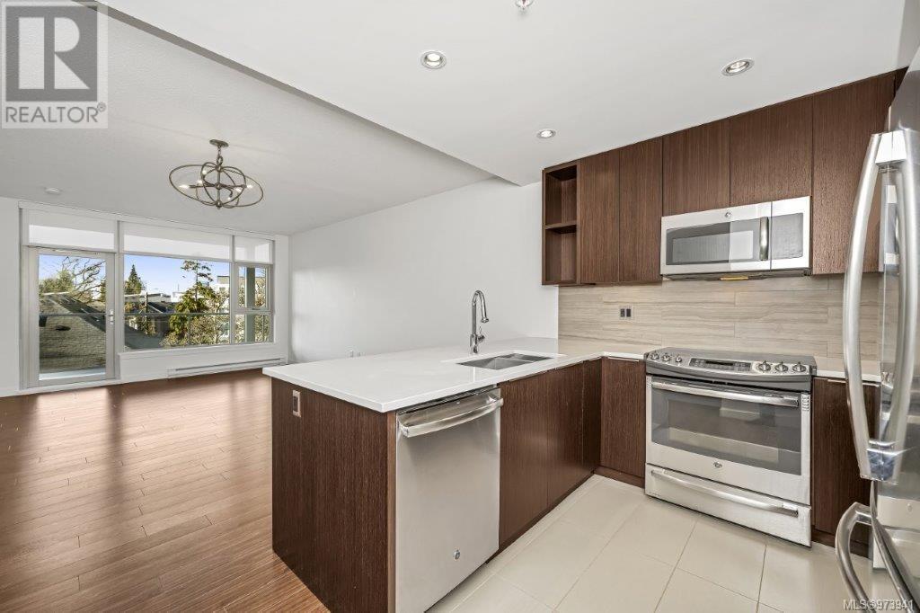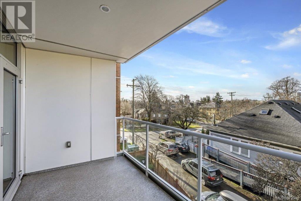 Downtown is your playground at unit 303 in The Duet! An unmatched location in the heart of James Bay, your unit is steps from Beacon Hill Park, the Royal BC Museum, the Inner Harbour and countless retail and restaurant options to explore. This bright 1-bedroom condo boasts a sleek modern kitchen with stainless steel appliances and a peninsula breakfast bar that transitions seamlessly into the open living space. A 4-piece bathroom with soaker tub awaits just past your walk-through closet off the bedroom. Enjoy your morning coffee as you take in the stunning Island sunrise on your West-facing balcony. This like-new unit welcomes your personal touches. In-suite laundry, secure underground parking, bike storage, and additional personal storage locker seal the deal. The Duet is a pet-friendly building that welcomes rentals and boasts a communal rooftop patio with BBQ access and a lovely semi-private courtyard featuring lush Akebono cherry trees. Book your viewing today! (id:48970)