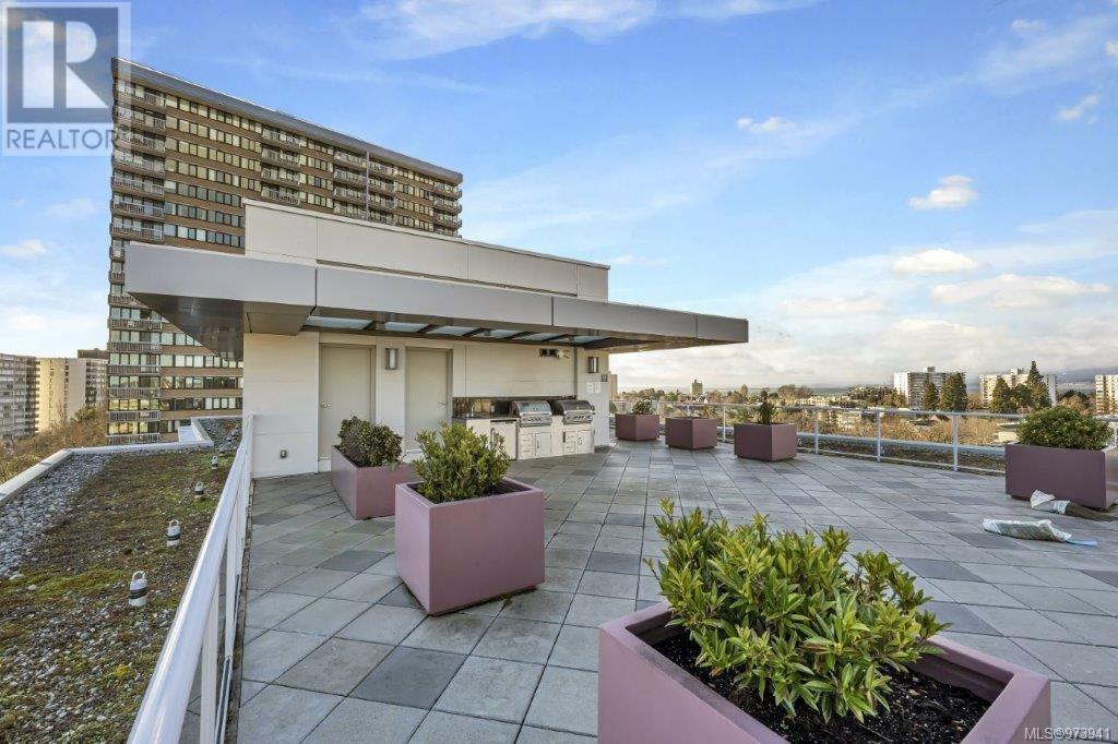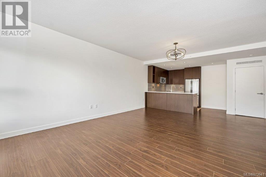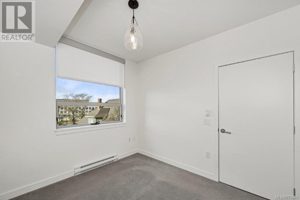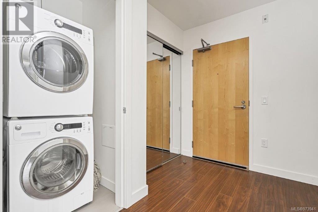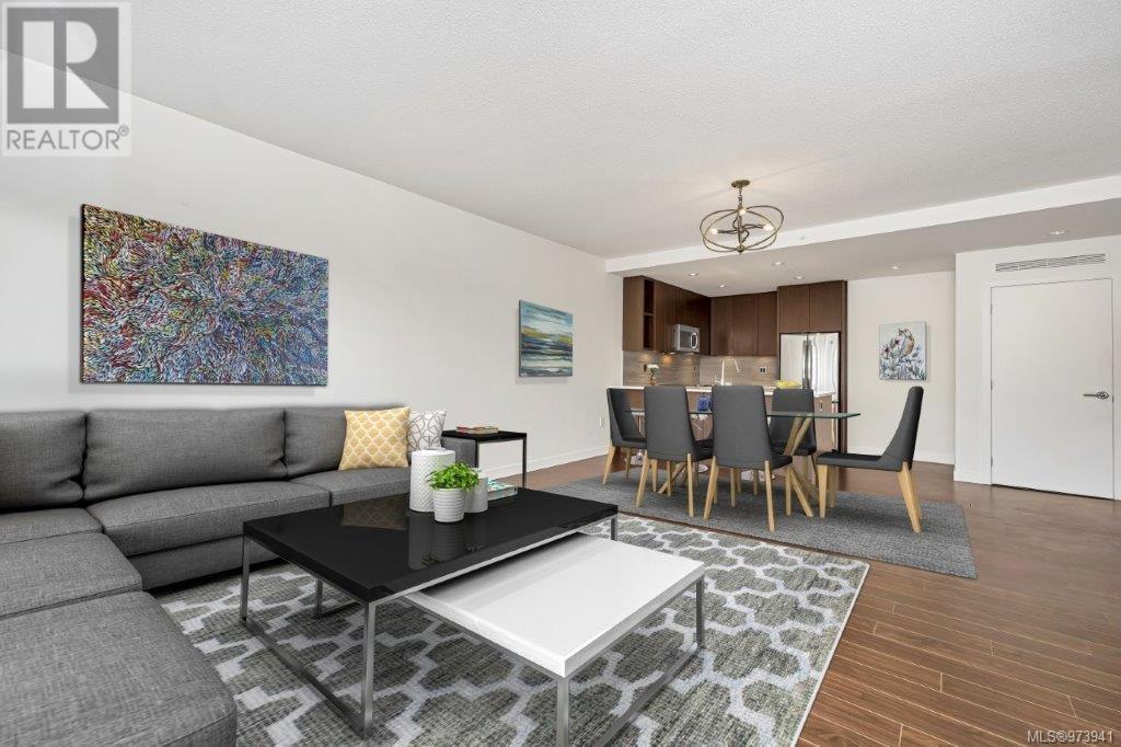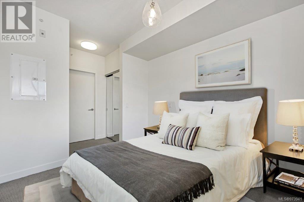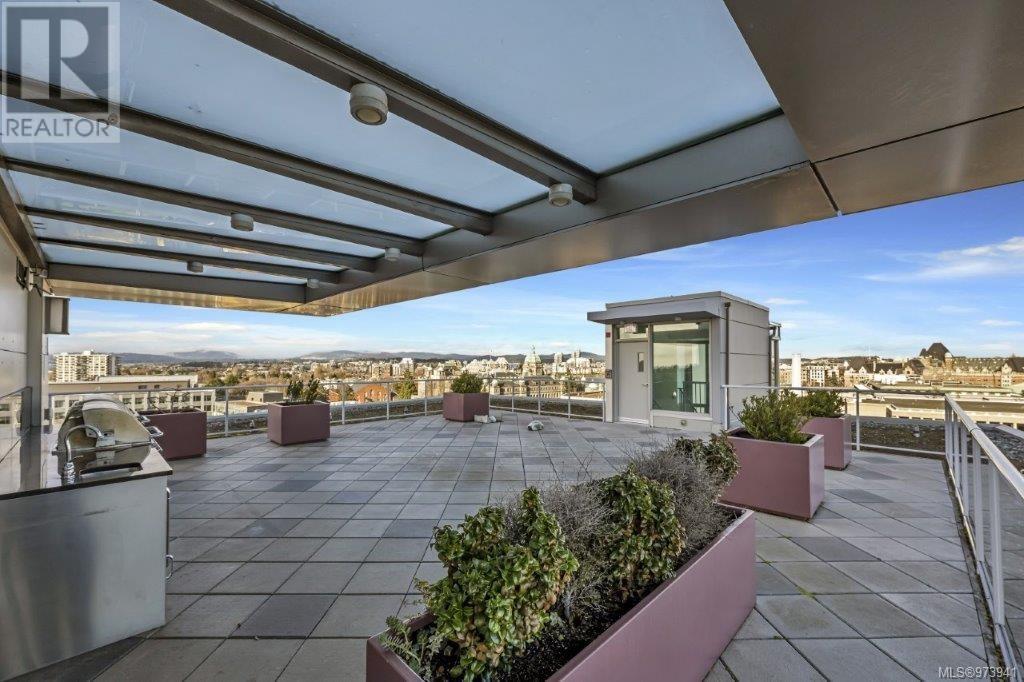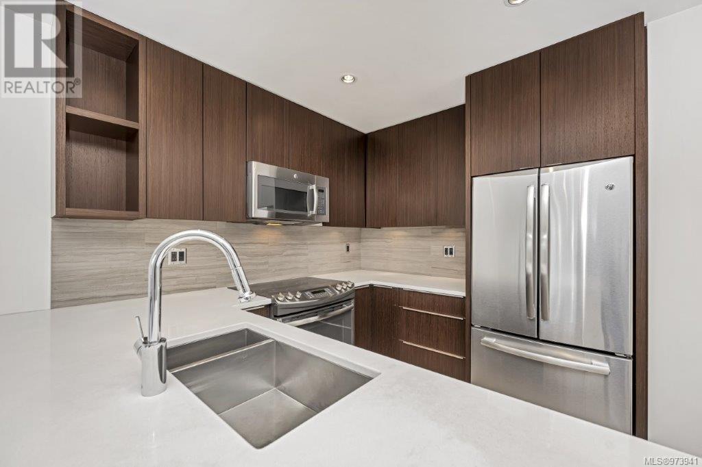 Downtown is your playground at unit 303 in The Duet! An unmatched location in the heart of James Bay, your unit is steps from Beacon Hill Park, the Royal BC Museum, the Inner Harbour and countless retail and restaurant options to explore. This bright 1-bedroom condo boasts a sleek modern kitchen with stainless steel appliances and a peninsula breakfast bar that transitions seamlessly into the open living space. A 4-piece bathroom with soaker tub awaits just past your walk-through closet off the bedroom. Enjoy your morning coffee as you take in the stunning Island sunrise on your West-facing balcony. This like-new unit welcomes your personal touches. In-suite laundry, secure underground parking, bike storage, and additional personal storage locker seal the deal. The Duet is a pet-friendly building that welcomes rentals and boasts a communal rooftop patio with BBQ access and a lovely semi-private courtyard featuring lush Akebono cherry trees. Book your viewing today! (id:48970)