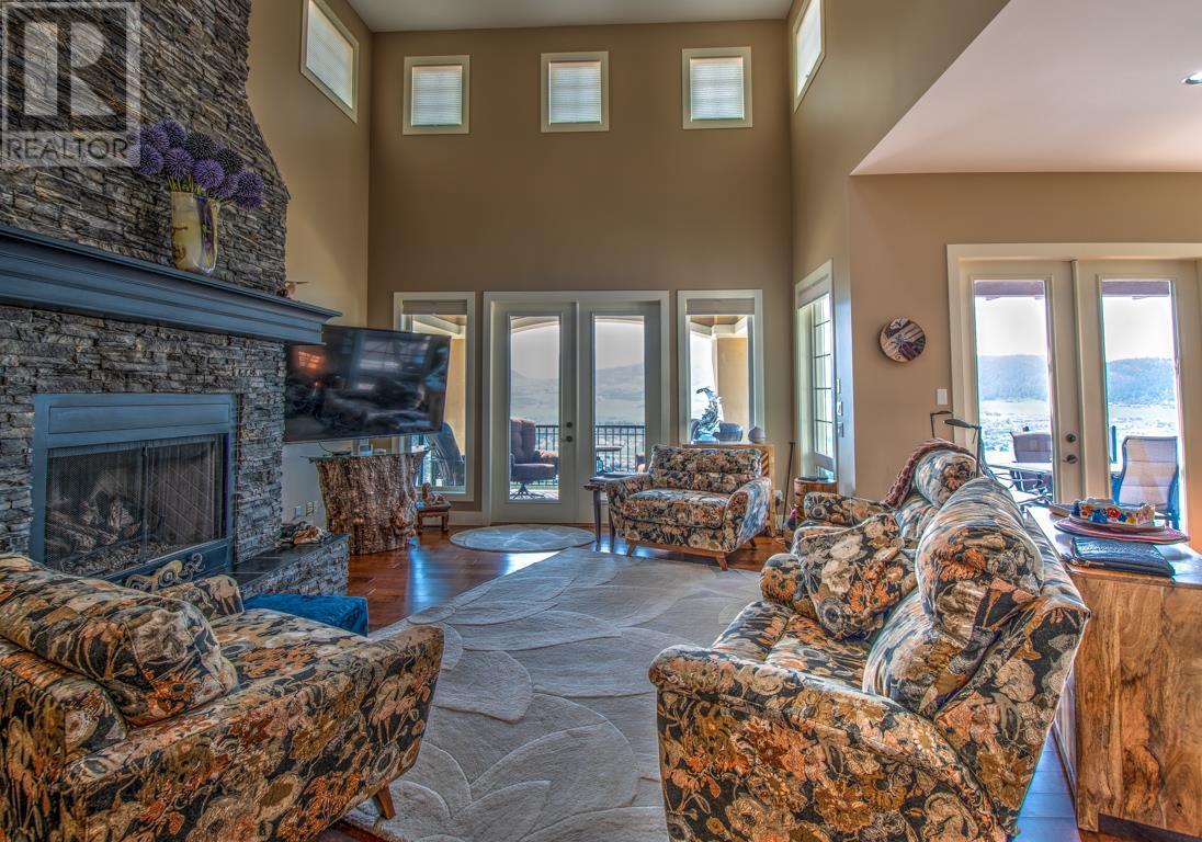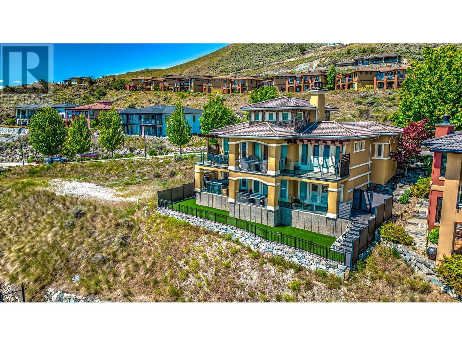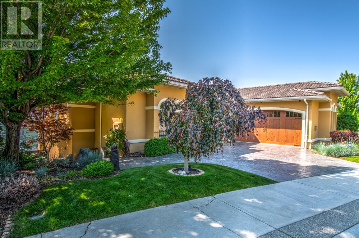 Selling Below Assessed Value!! Beautiful Tuscan-Style Architecture with postcard views of Okanagan Lake and numerous upgrades! This captivating 3 Bedroom + Den (potential 4th Bedroom), 4 bath walkout Rancher features over 3900sq/ft of luxurious geothermal heated and cooled space. Upon entry to the courtyard through the new $10,000 custom doors you have direct access to both the office and the impressive great room. Greeting you on entry is a floor to ceiling stone finished fireplace, 18' ceilings, hardwood floors, and a wall of windows overlooking the lake! This open floor plan includes a gourmet kitchen and scullery with granite counters, pantry and stainless steel appliances. The massive partially covered deck runs the length of the house and is accessed through multiple French Doors off the dining, living, and primary bedroom. Main floor has direct access to the heated garage with poly-aspartic flooring. Moving downstairs we have new carpets throughout that lead to the rec room with stone fireplace and bar, wine room, and the massive newly built media room. Outside the French doors is your new hot tub and newly landscaped no-maintenance yard. The location of this stunning home is ideal, only 4 minutes to the world-class ""The Rise"" golf course & 13 minutes to downtown Vernon. (id:48970)