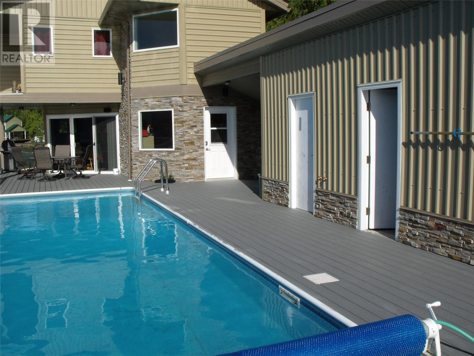 Exquisitely updated waterfront sanctuary boasting an impressive 900 feet of scenic water frontage, with additional acreage located conveniently across the road. Enjoy the tranquility and beauty of the waterfront while also having the flexibility to expand or utilize the land on the other side. This versatile property offers endless possibilities for creating your dream waterfront estate or investment opportunity. Revel in the breathtaking sunsets and sun-drenched days with a new composite deck encircling the solar heated pool, complete with a pool house featuring a 3-piece washroom. A cozy hot tub beckons under the moonlit sky. Discover a self-contained 716 sq.ft cabin with new decking, perfect for guests or rental income. The property includes a spacious dock and 3 buoys for your boating pleasure. This refined abode features fire-smart metal siding, newer metal roofs, and a meticulously landscaped exterior. Inside, relish in the bright ambiance with newer windows, vinyl plank flooring, a gourmet kitchen with quartz countertops, and elegant bathrooms. As well, ALL plumbing has been updated to PEX plumbing. Welcome to your new retreat where cherished memories await. (id:48970)