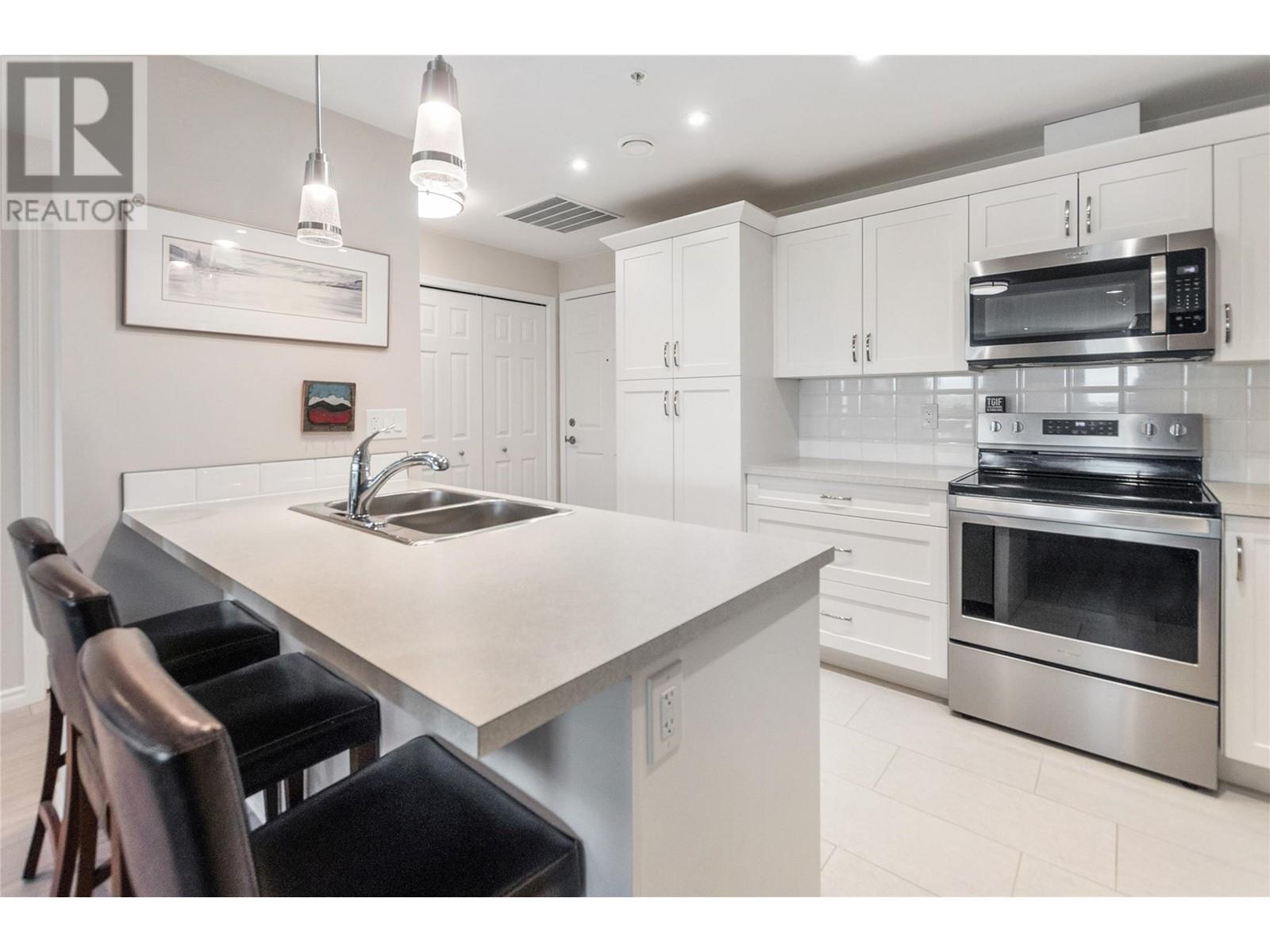 CLICK TO VIEW VIDEO: If you love SUN, SAND, and SPECTACULAR VIEWS at an affordable price point—look no further! This move-in-ready condo offers everything you need for stylish, modern living by the beach. This spacious 2-bedroom + den unit boasts 2 full bathrooms, making it ideal for those looking to embrace a convenient, low-maintenance or lock and go lifestyle. The den provides flexibility as an at-home office, crafting room or yoga retreat. This building ensures one of the quietest, most private experiences on the South end of town. You’ll love unobstructed city and mountain views from not one, but TWO private balconies - perfect for enjoying coffee at sunrise or unwinding with a glass of wine at sunset. The open-concept living area, complete with a fireplace, seamlessly connects to a modern kitchen that boasts a stylish stainless steel appliance package, a modern lighting design, and bright, white finishings. With durable laminate flooring throughout and dual sinks in the spacious ensuite, every detail has been carefully selected for both style and functionality. This unit includes a large storage locker, underground parking, and easy access to the beach, hiking trails, and local amenities. Pet and rental-friendly, with no age restrictions. Embrace near BEACHSIDE convenience combined with breathtaking views and modern design—schedule your viewing today! (id:48970)