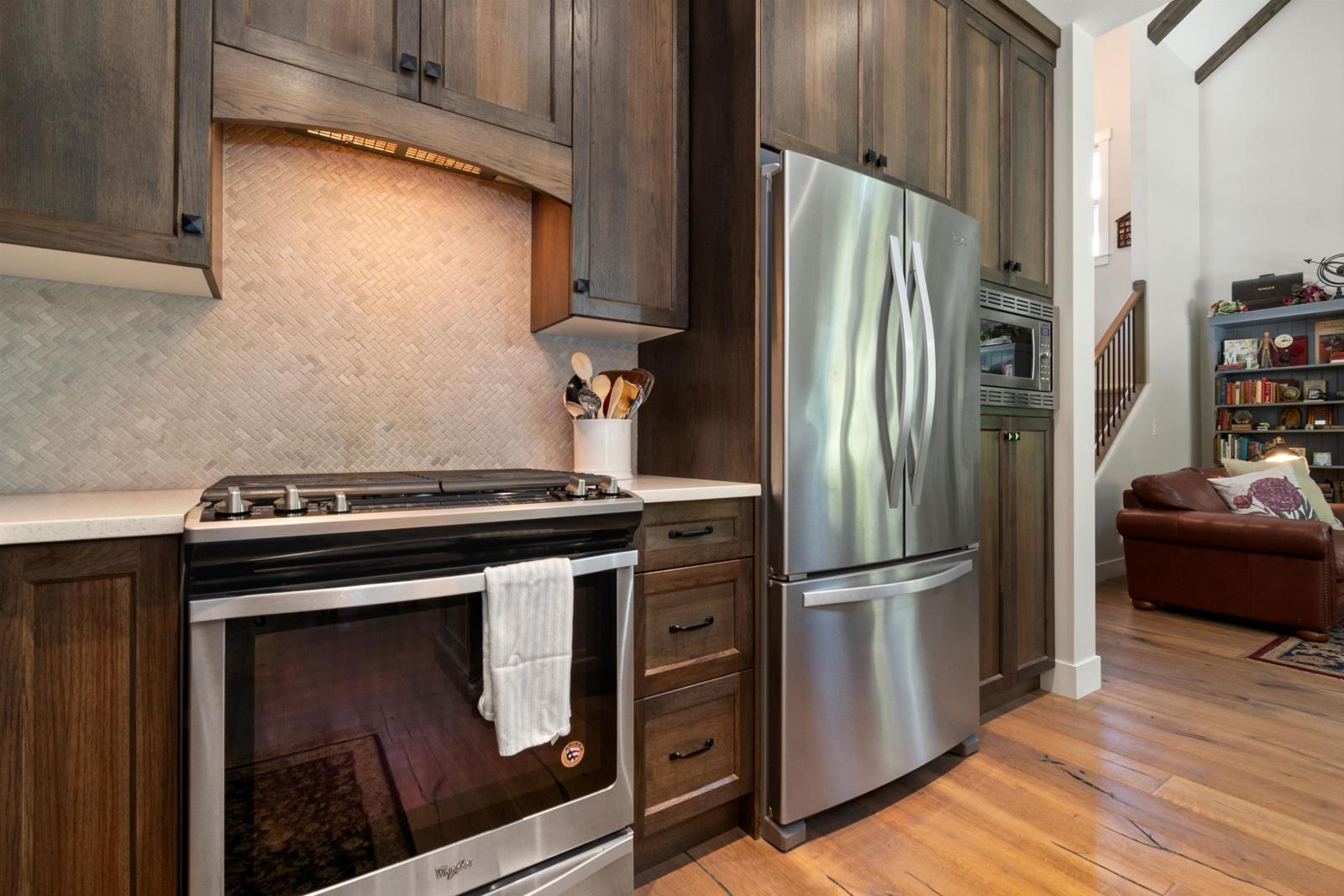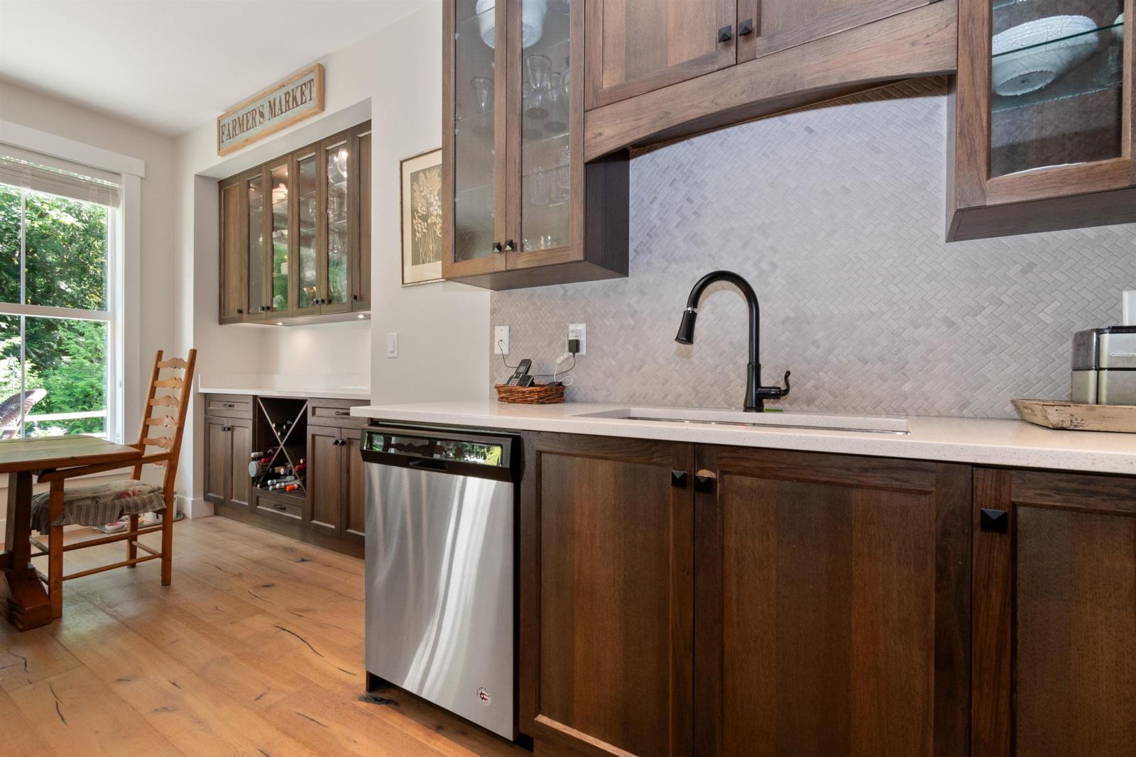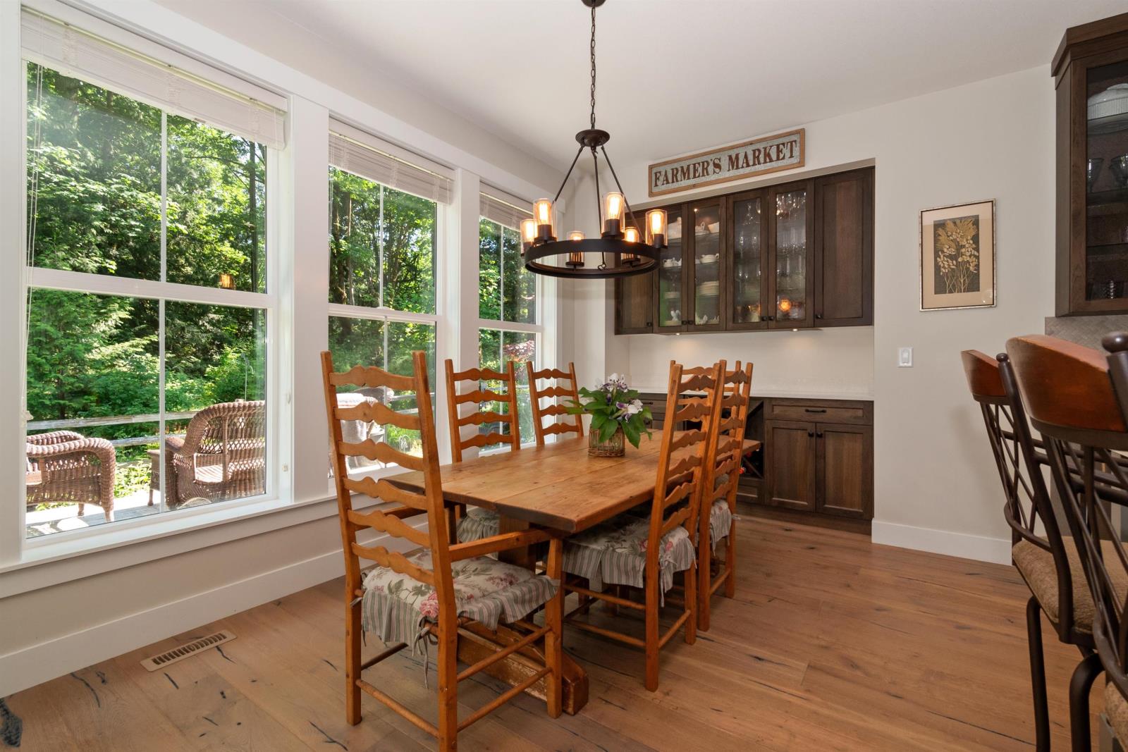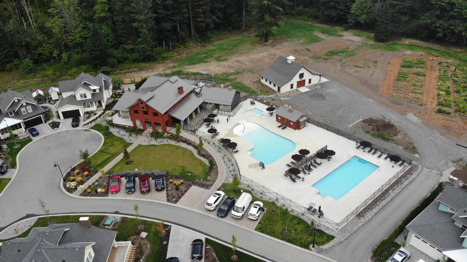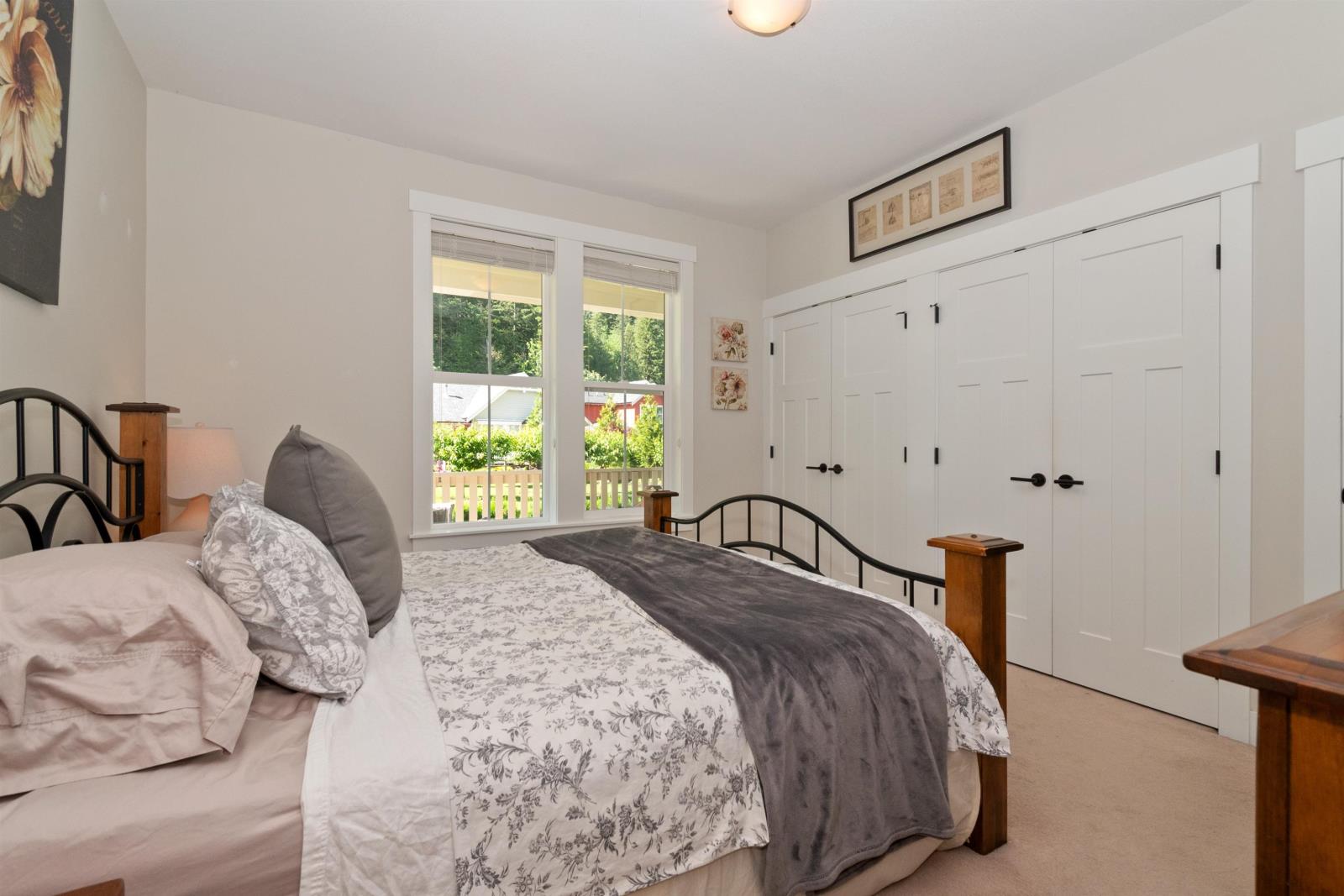 Harvest new friendships and a rich outdoor lifestyle by the lake in this pretty and peaceful home at Creekside Mills. Nestled against a scenic forest backdrop, enjoy unobstructed views of mother nature, and her soothing sounds of songbirds and trickling water. Its 1,705 sq.ft offers a romantic take on farmhouse living. Subtle vintage touches incl. distressed white oak floors, rich toned cabinetry, custom fit hutch, a timeless limestone fireplace and lots of built-in storage. Additional upgrades incl. a water softener, A/C, a 27 ft. extended garage with a 3-car driveway and gutter guards. The main level owner's wing fits a king, has his/her closets and a heated floor en-suite with double sinks. 2 more bedrooms for family/guests/office/hobbies share upstairs with an open loft. Here's your chance to join this active-living community! 10 acres of community gardens, orchards, a clubhouse that hosts year-round events, 2 pools, hot tub, gym, sports court, walking trails, dog park, playgrounds and friendly neighbours! (id:48970)