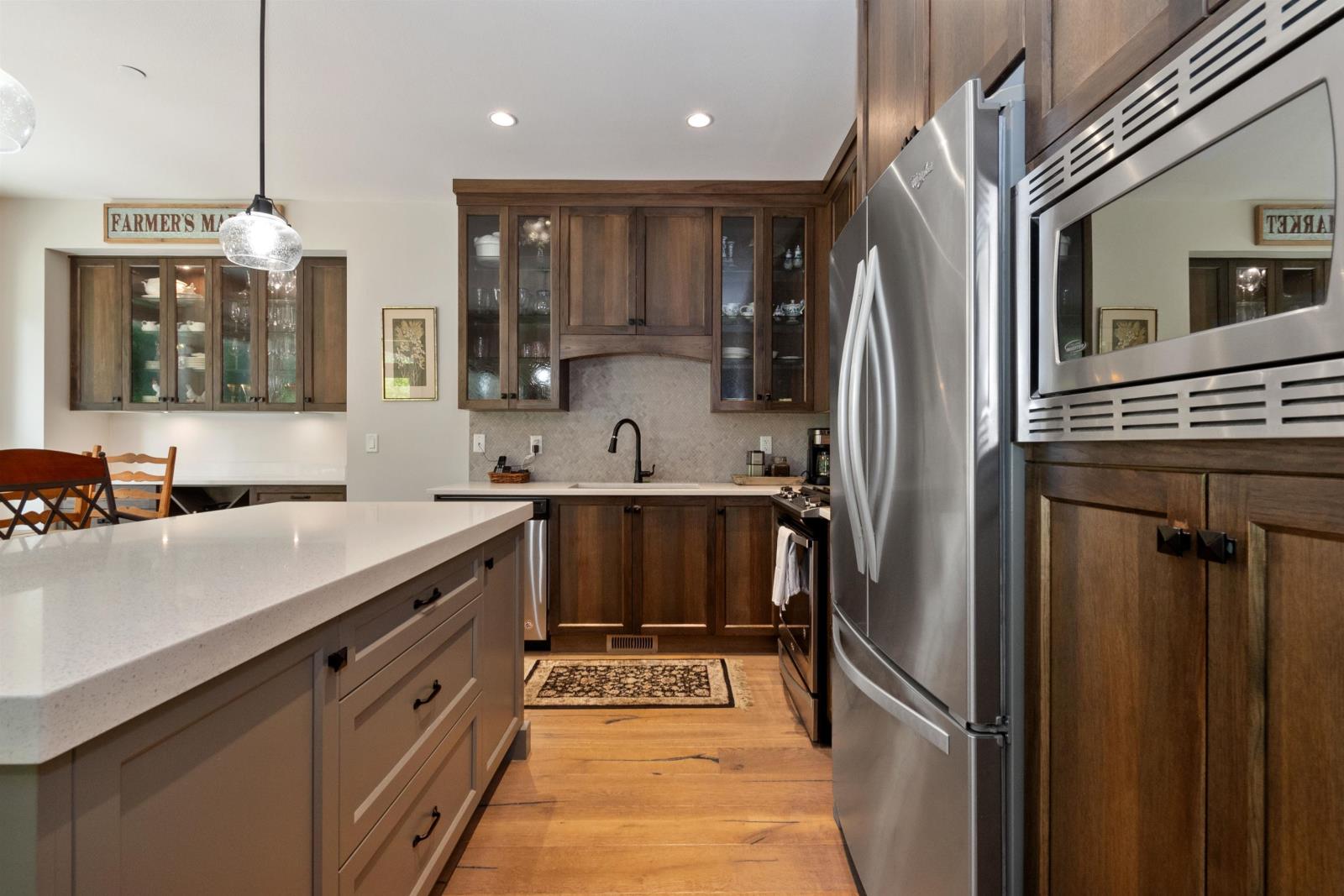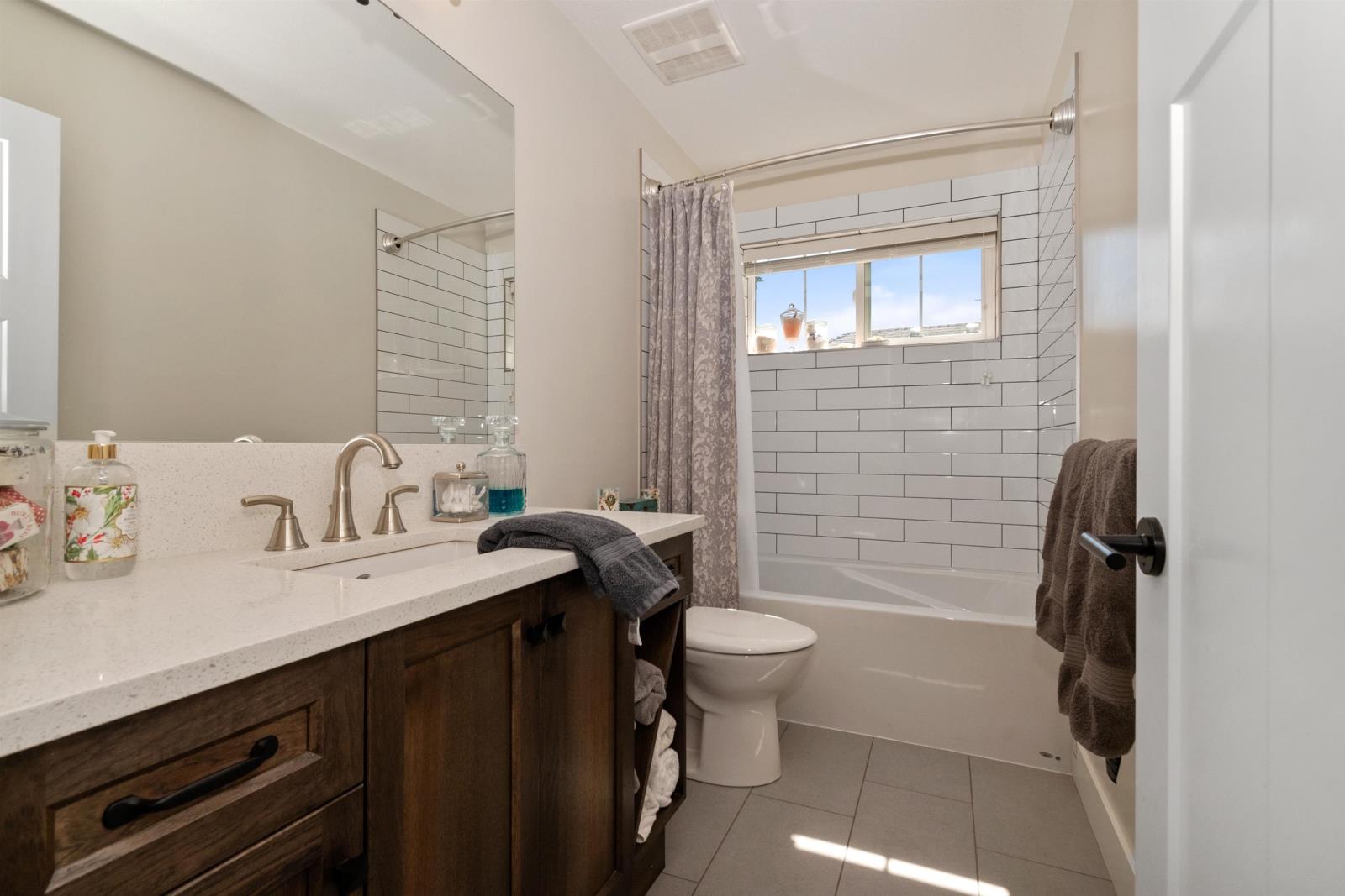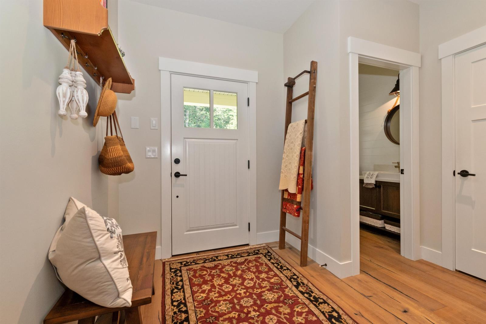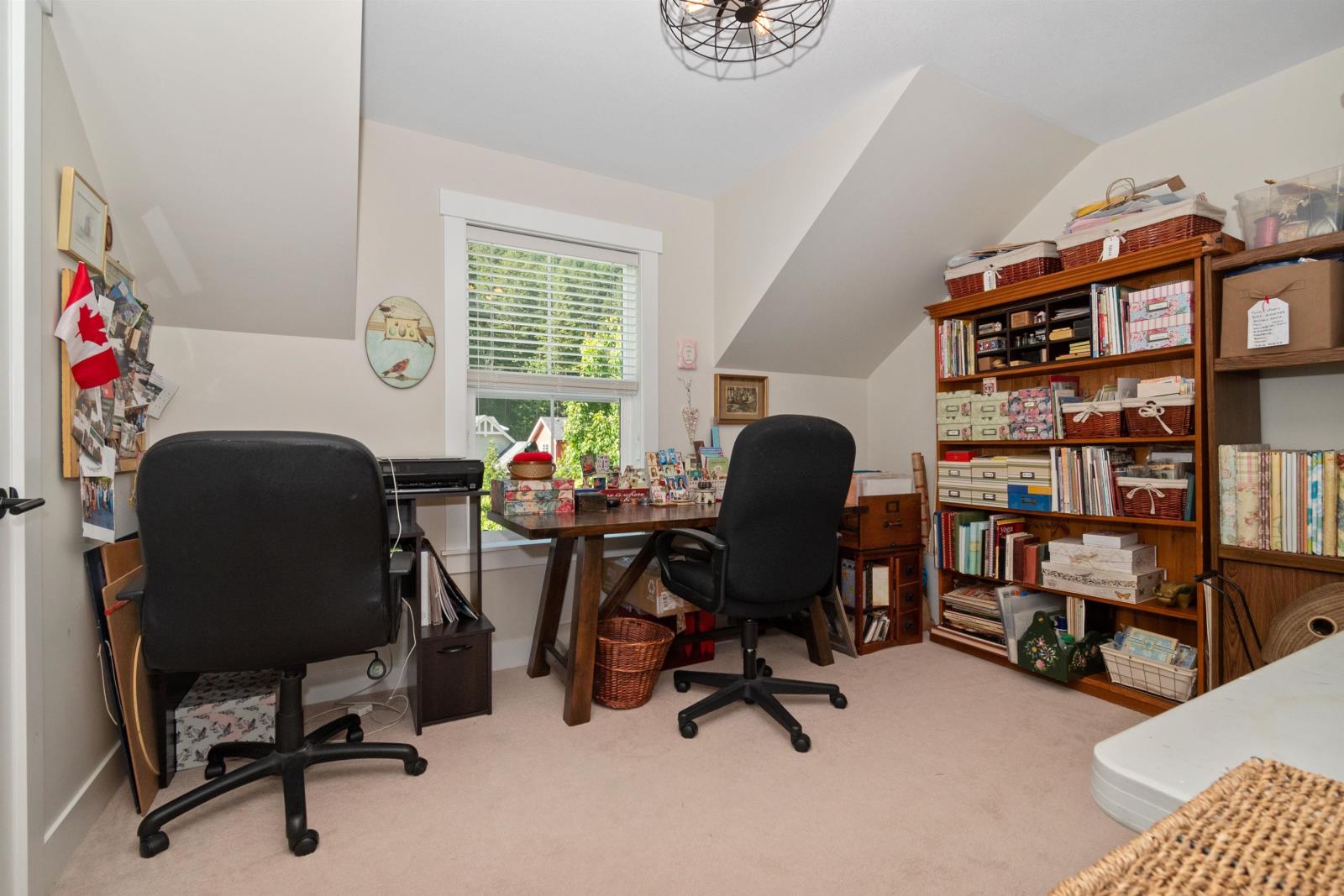 Harvest new friendships and a rich outdoor lifestyle by the lake in this pretty and peaceful home at Creekside Mills. Nestled against a scenic forest backdrop, enjoy unobstructed views of mother nature, and her soothing sounds of songbirds and trickling water. Its 1,705 sq.ft offers a romantic take on farmhouse living. Subtle vintage touches incl. distressed white oak floors, rich toned cabinetry, custom fit hutch, a timeless limestone fireplace and lots of built-in storage. Additional upgrades incl. a water softener, A/C, a 27 ft. extended garage with a 3-car driveway and gutter guards. The main level owner's wing fits a king, has his/her closets and a heated floor en-suite with double sinks. 2 more bedrooms for family/guests/office/hobbies share upstairs with an open loft. Here's your chance to join this active-living community! 10 acres of community gardens, orchards, a clubhouse that hosts year-round events, 2 pools, hot tub, gym, sports court, walking trails, dog park, playgrounds and friendly neighbours! (id:48970)