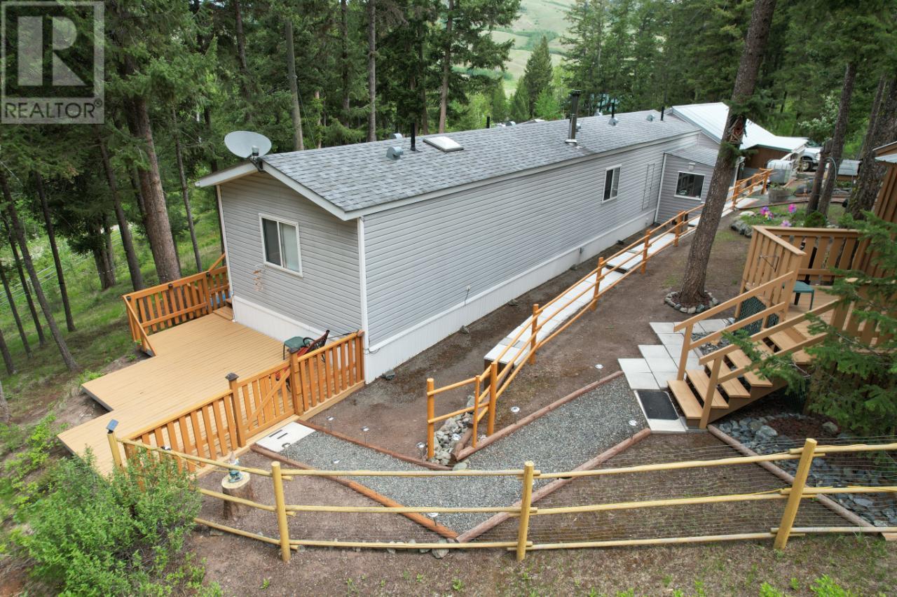 Looking for your slice of paradise a short distance from town? This charming 2-bedroom, 2-bathroom mobile home is nestled on 1.49 acres along scenic Iron Mountain Road just a 10-minute drive south of Merritt. Surrounded by nature and close to lakes and endless recreational opportunities, this property is perfect for outdoor enthusiasts. Guests can enjoy their own private space in the cozy guest cabin, and you'll love the added perks of a chicken coop, greenhouse, and garden area ideal for sustainable living. The detached single-car garage features a workshop with a pellet stove, making it a comfortable year-round workspace. The spacious yard is fully fenced with Paige wire, offering peace of mind for both kids and pets. Plus, with a generous supply of firewood already stacked and ready, you’ll be well prepared for winter. Contact the listing agent today for more details or to schedule your private showing! (id:48970)