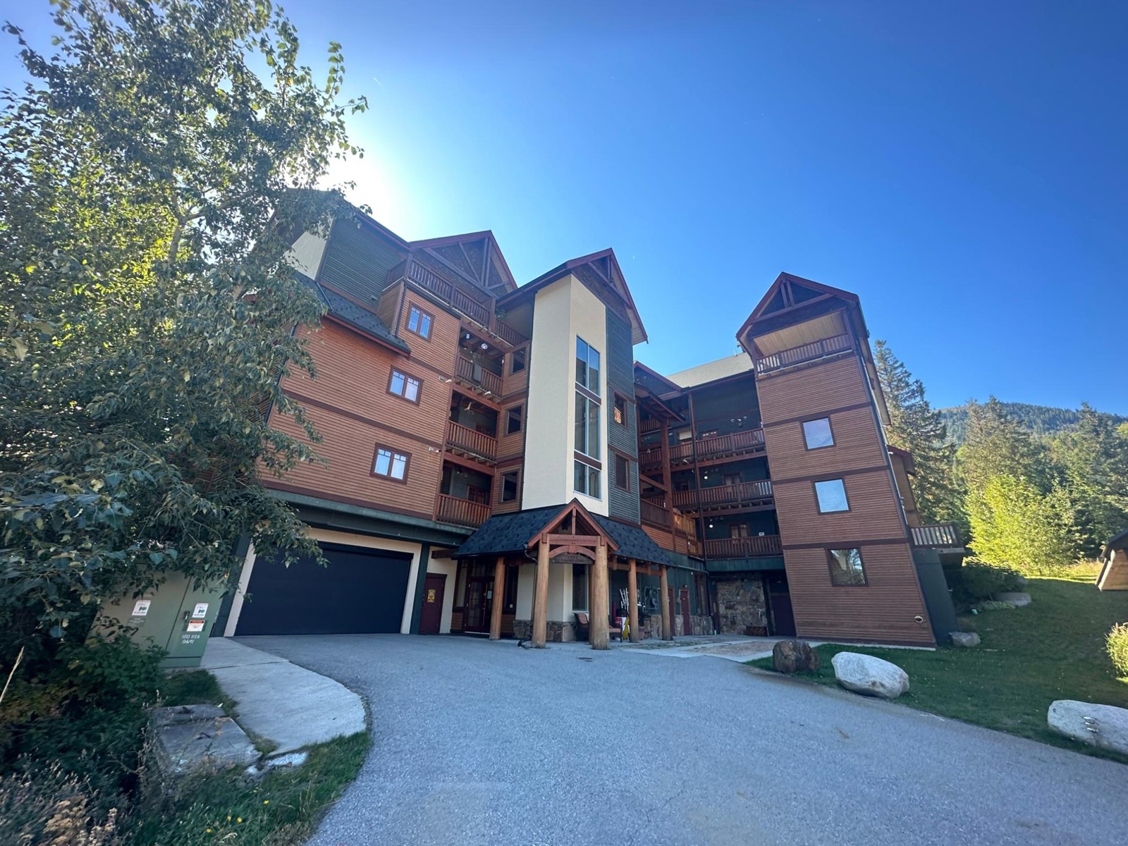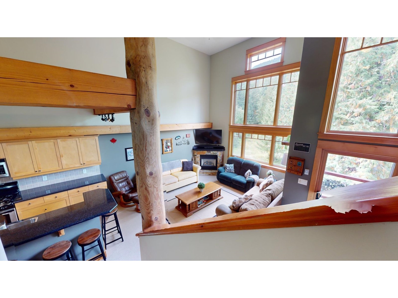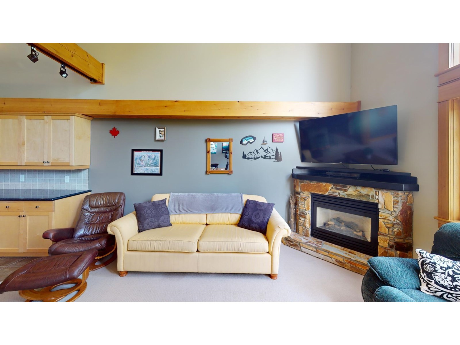 Experience the ultimate mountain retreat in this top-floor condo located at the base of Red Mountain, just minutes from the chairlifts. After a day on the slopes, ski right to your back door and relax in this stunning 3-bedroom, 2-bathroom unit. The entry has lots of space for your boots and coats. The open-concept living space is bathed in natural light, thanks to floor-to-ceiling windows offering great views of the surrounding forest and mountain. Timber accents with post and beam style add rustic charm throughout. The kitchen, open to the rest of the main floor with an island, is perfect for entertaining. Cozy up by the gas fireplace in the living room, or step out onto the balcony off the dining area, where you'll find a BBQ hookup. The loft bedroom features its own private balcony, a large space for a potential walk in closet, and a large full bathroom, offering a serene escape. With plenty of storage inside and a separate large storage locker, you'll have room for all of your gear. Building amenities include a relaxing outdoor hot tub, an elevator, and a heated parking garage. World class skiing, hiking and biking right out your back door. Call your REALTOR(R) to view today! (id:48970)