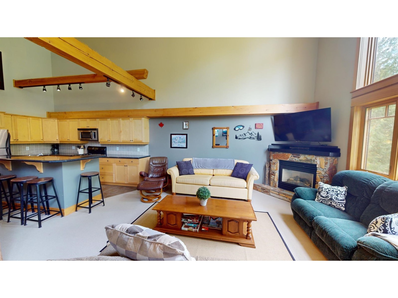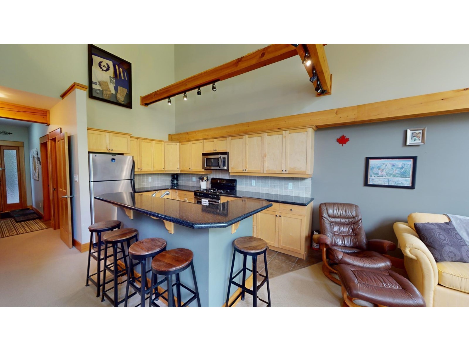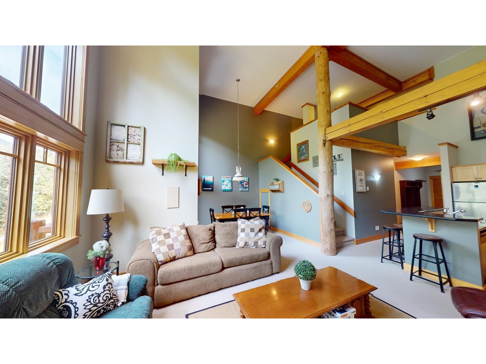 Experience the ultimate mountain retreat in this top-floor condo located at the base of Red Mountain, just minutes from the chairlifts. After a day on the slopes, ski right to your back door and relax in this stunning 3-bedroom, 2-bathroom unit. The entry has lots of space for your boots and coats. The open-concept living space is bathed in natural light, thanks to floor-to-ceiling windows offering great views of the surrounding forest and mountain. Timber accents with post and beam style add rustic charm throughout. The kitchen, open to the rest of the main floor with an island, is perfect for entertaining. Cozy up by the gas fireplace in the living room, or step out onto the balcony off the dining area, where you'll find a BBQ hookup. The loft bedroom features its own private balcony, a large space for a potential walk in closet, and a large full bathroom, offering a serene escape. With plenty of storage inside and a separate large storage locker, you'll have room for all of your gear. Building amenities include a relaxing outdoor hot tub, an elevator, and a heated parking garage. World class skiing, hiking and biking right out your back door. Call your REALTOR(R) to view today! (id:48970)