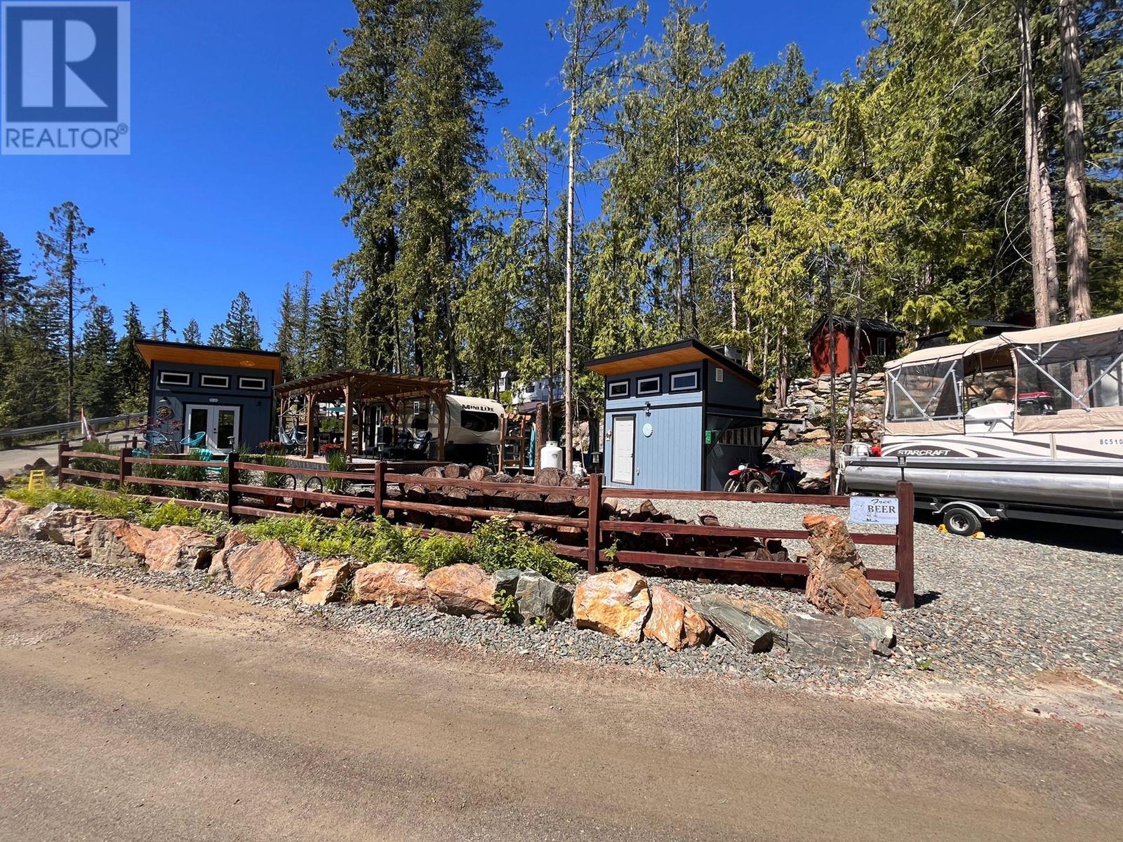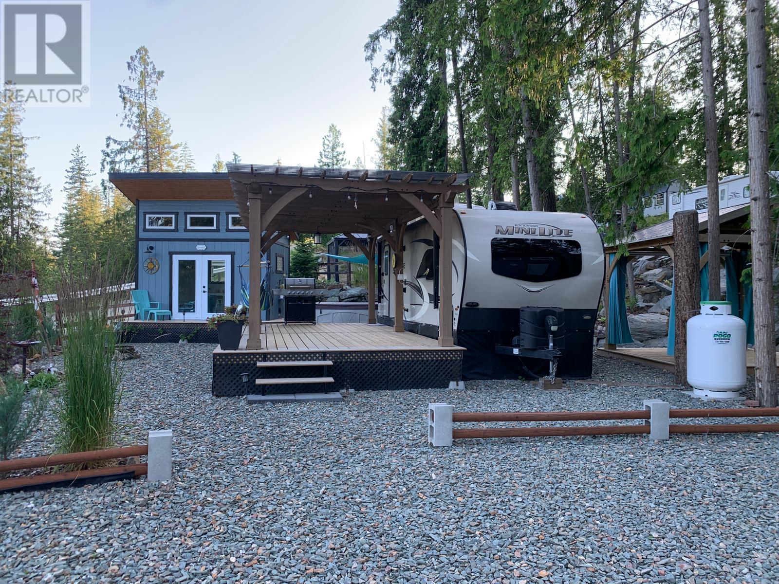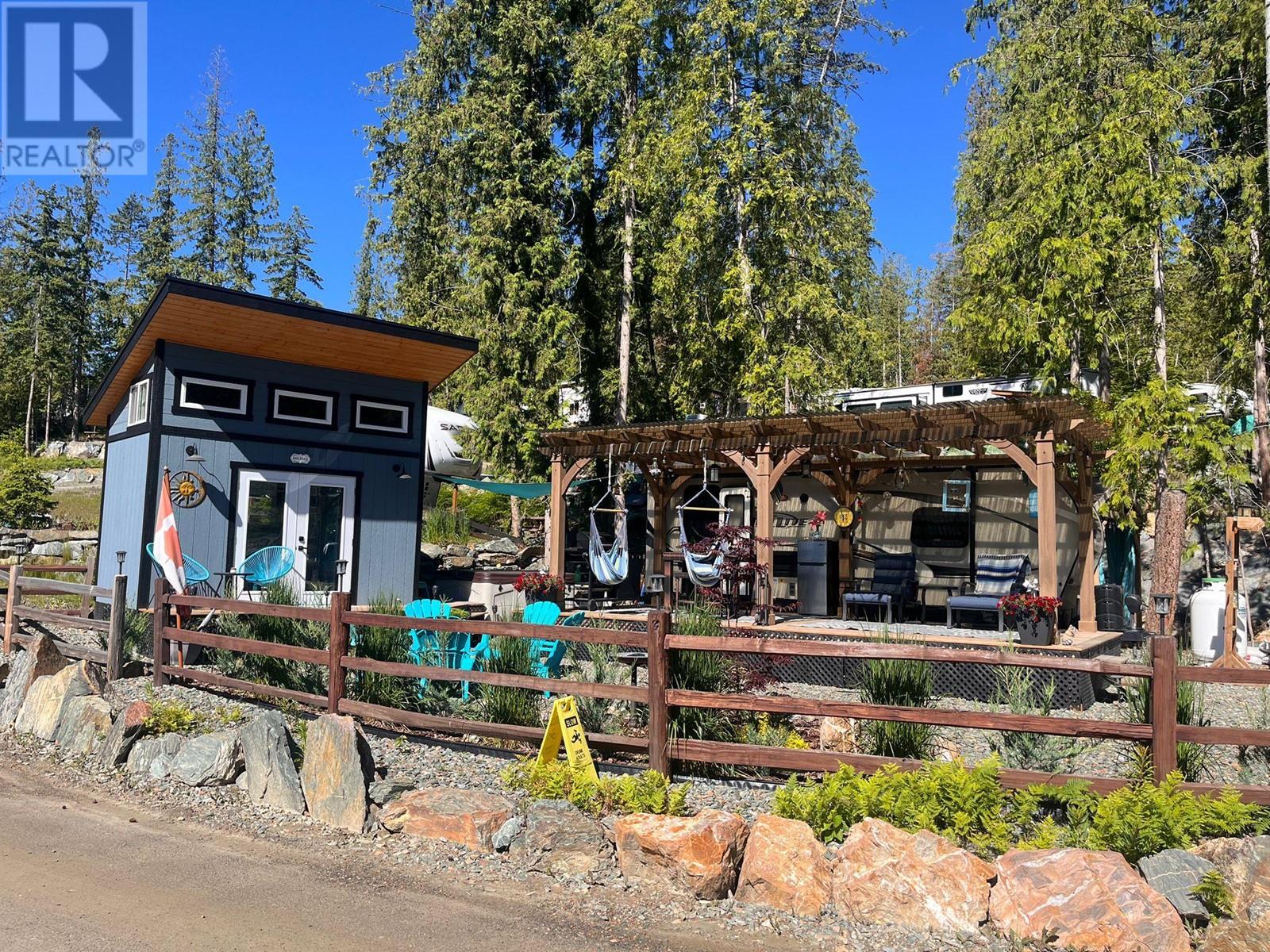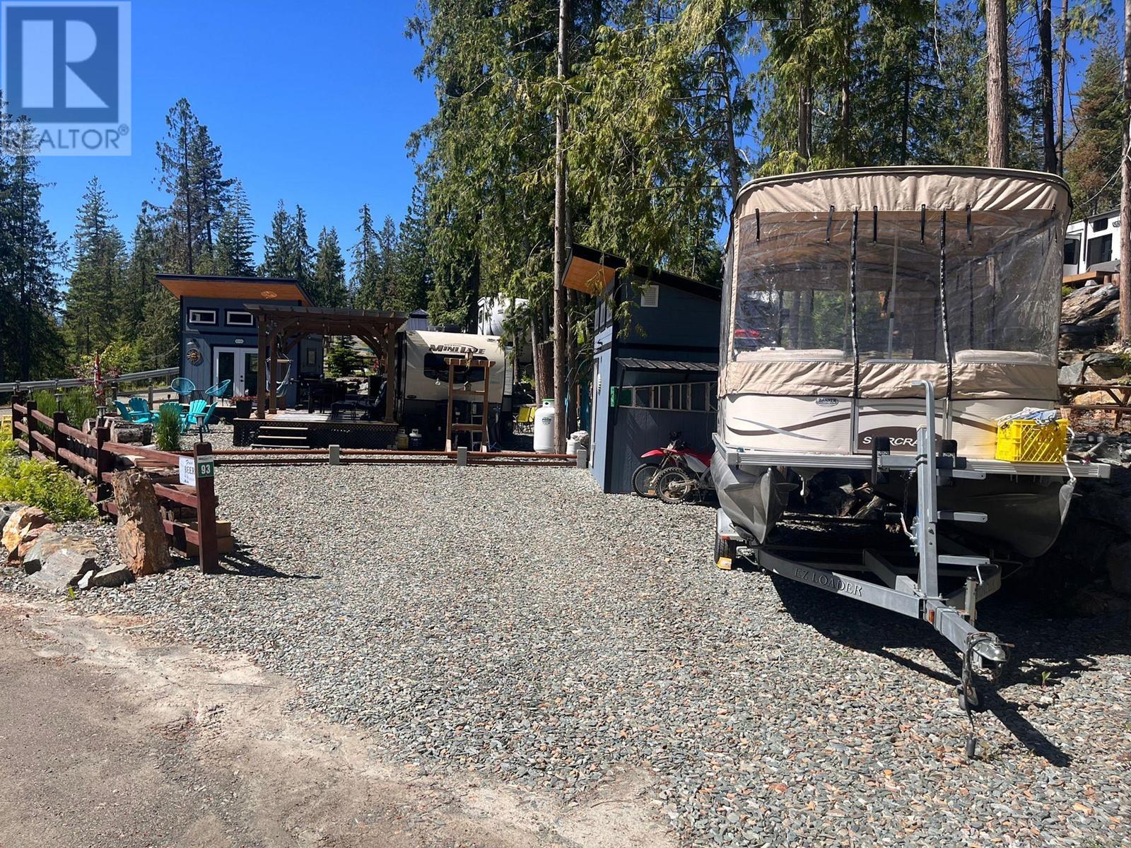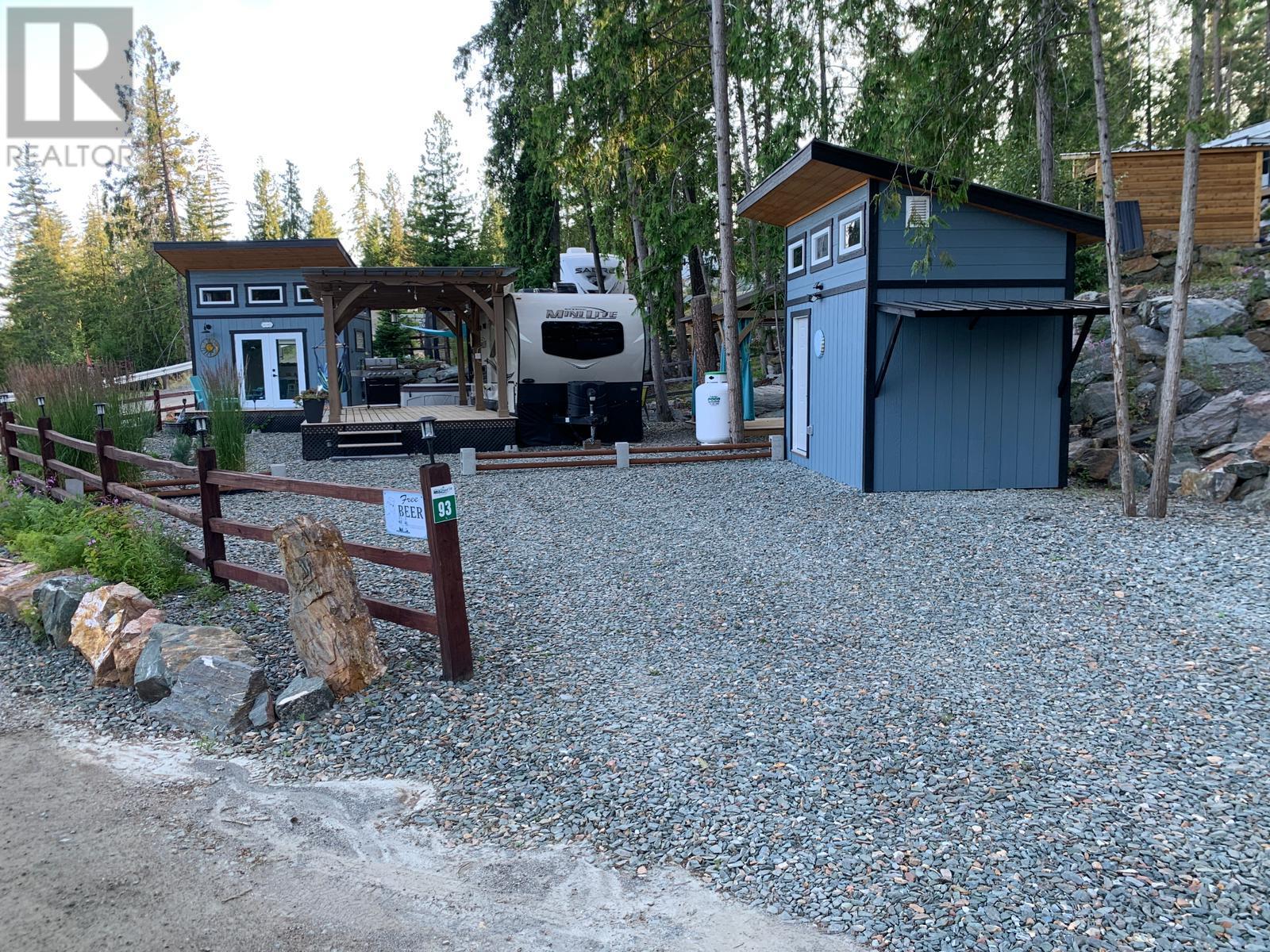Lot 93 is very large, approx. 4500 sq ft, flat and completely landscaped with rock work, trees and plants with lake views. It faces looking over the forest. It is very low maintenance and peaceful ( no road noise). There is a 9x11, cedar Yardistry gazebo on a deck in the back yard for a shady place to relax, a 12x24, cedar Yardistry pergola with Suntuf polycarbonate smoked panels for protection from the weather covering a 12x24 deck, and a deck for the she shed (bunkie). It comes with two sheds, both with power, one storage shed and one bunkie which is insulated and comes with an electric fireplace, TV, queen bed and two chairs that fold into beds, plus more. Patio furniture is negotiable. Shuswap Lake RV Resort is a 4 season resort located on the sunny north shore of the Shuswap in Celista. Laundry/washroom/shower facilities available 24 hrs, playground & private beach access with dock & swim platform for lot owners use. Celista store, min. away has gas/groceries/hardware and liquor. The Hub, Fun Park, and the provincial park located in Scotch Creek. Maint., fees are $200.00 and include sewer, water, garbage, wifi, common hydro costs, management fees and property taxes. All lots have 50amp service and individually metered for personal hydro use. Full Time Resort Manager, year round resident caretaker/maintenance personnel. RV not included. Seller will consider selling it separately. (id:48970)