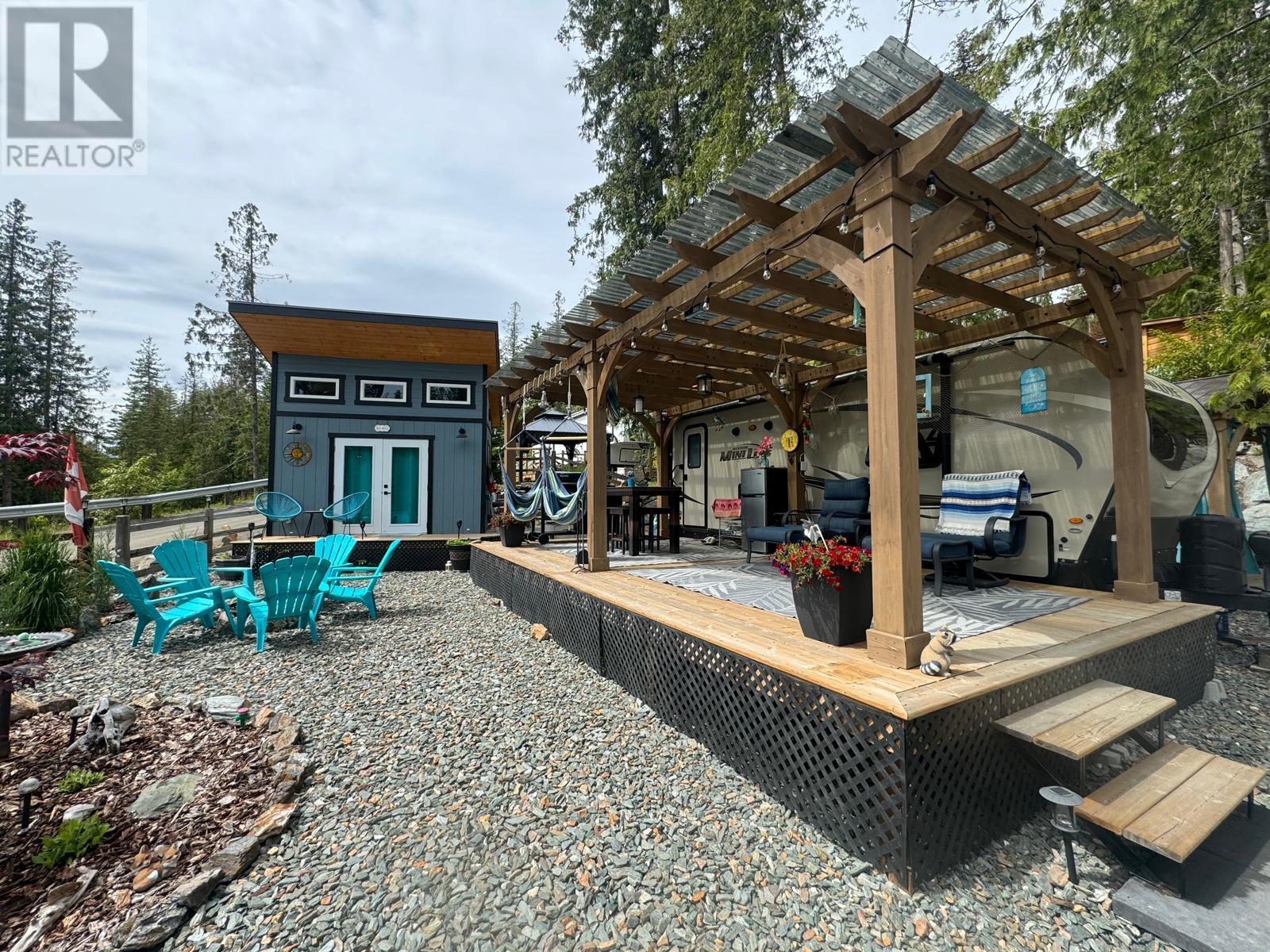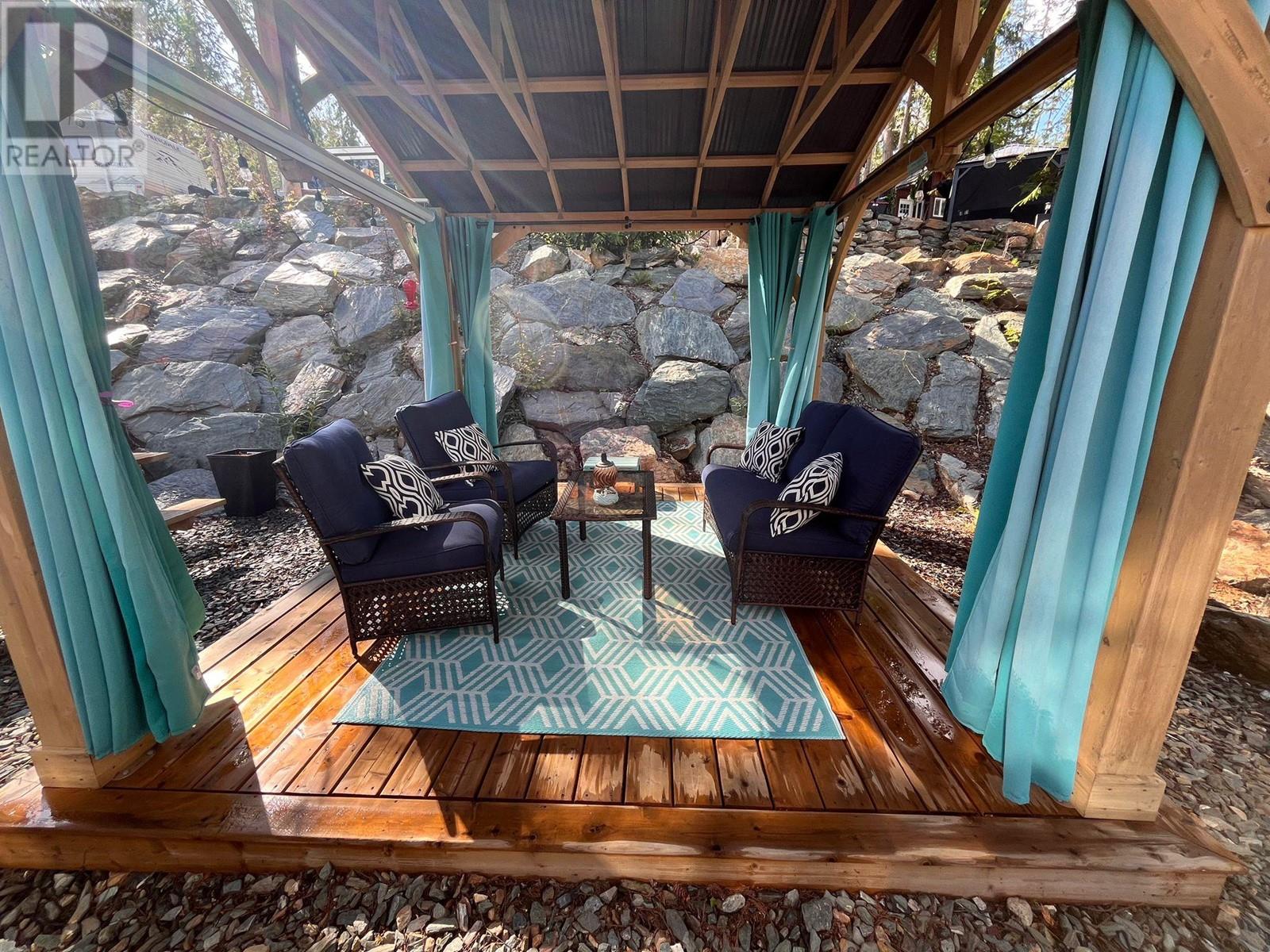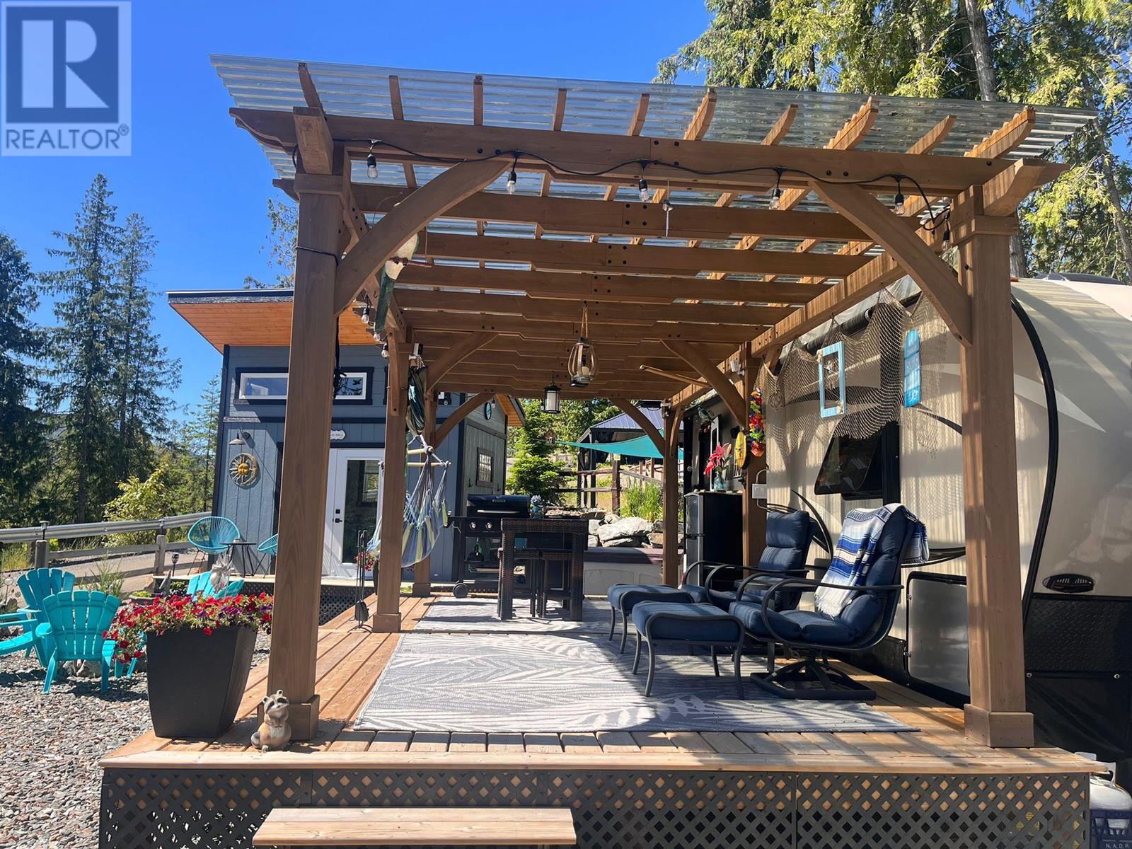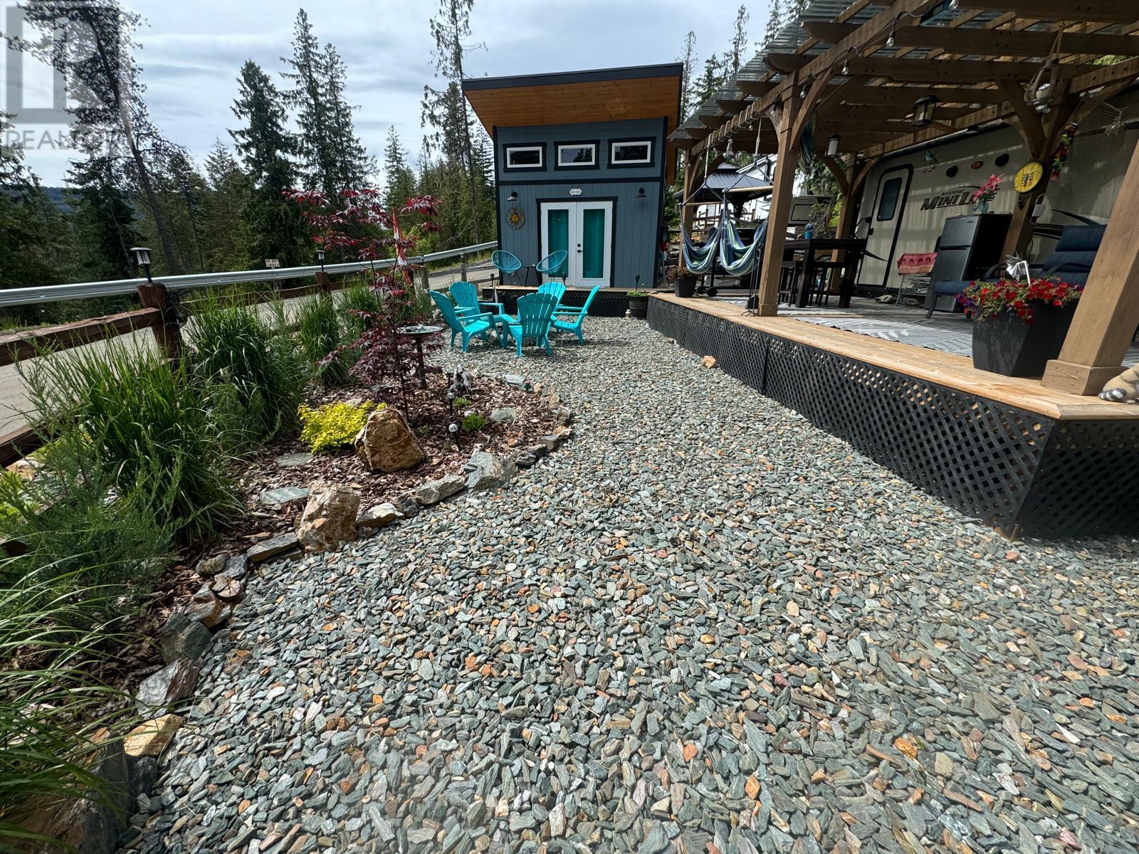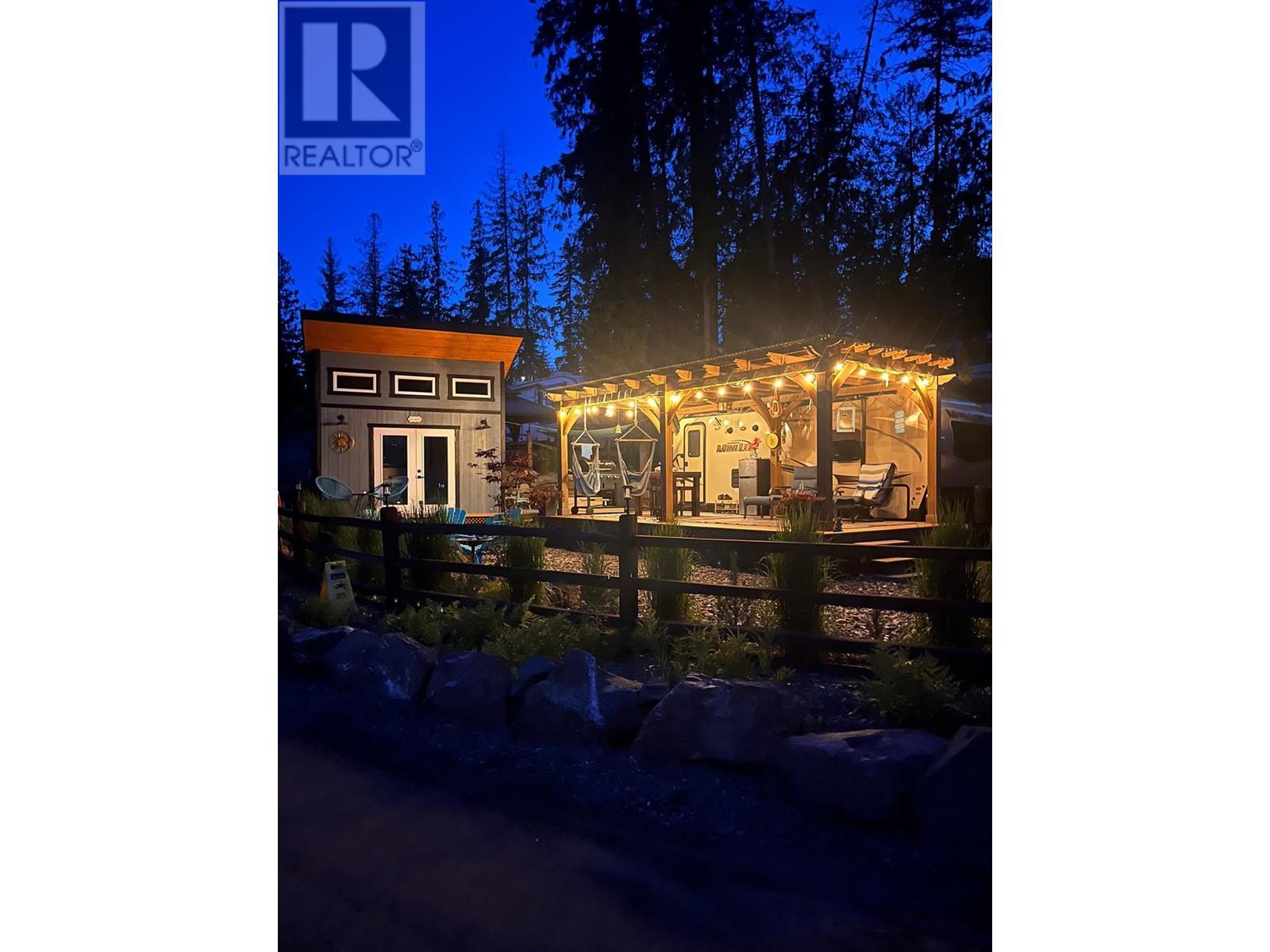 Lot 93 is very large, approx. 4500 sq ft, flat and completely landscaped with rock work, trees and plants with lake views. It faces looking over the forest. It is very low maintenance and peaceful ( no road noise). There is a 9x11, cedar Yardistry gazebo on a deck in the back yard for a shady place to relax, a 12x24, cedar Yardistry pergola with Suntuf polycarbonate smoked panels for protection from the weather covering a 12x24 deck, and a deck for the she shed (bunkie). It comes with two sheds, both with power, one storage shed and one bunkie which is insulated and comes with an electric fireplace, TV, queen bed and two chairs that fold into beds, plus more. Patio furniture is negotiable. Shuswap Lake RV Resort is a 4 season resort located on the sunny north shore of the Shuswap in Celista. Laundry/washroom/shower facilities available 24 hrs, playground & private beach access with dock & swim platform for lot owners use. Celista store, min. away has gas/groceries/hardware and liquor. The Hub, Fun Park, and the provincial park located in Scotch Creek. Maint., fees are $200.00 and include sewer, water, garbage, wifi, common hydro costs, management fees and property taxes. All lots have 50amp service and individually metered for personal hydro use. Full Time Resort Manager, year round resident caretaker/maintenance personnel. RV not included. Seller will consider selling it separately. (id:48970)
