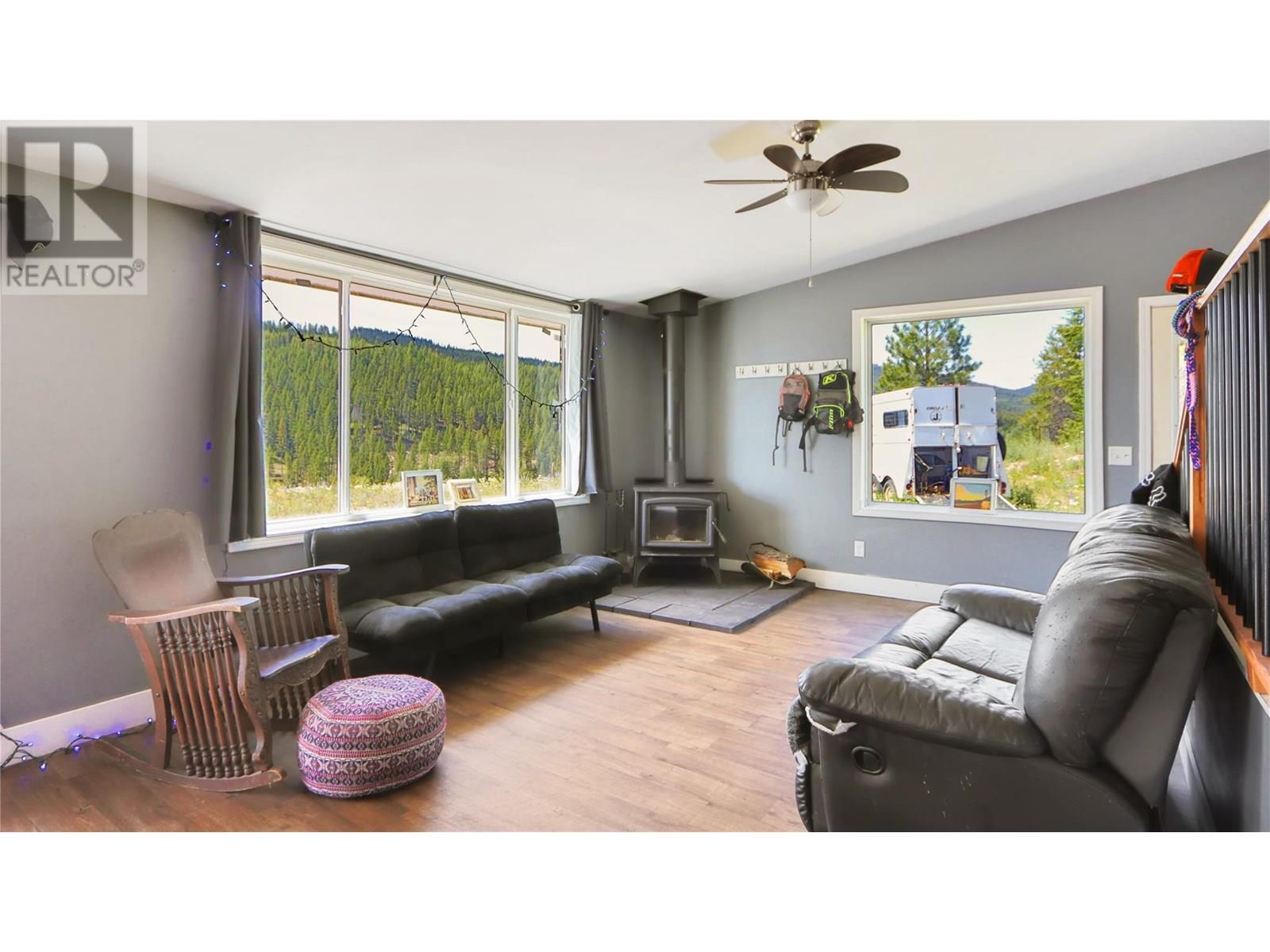 Southern valley views from this 5+ acre property on a dead end road in the Bridesville area, approx 30 mins east of Osoyoos. Property sits beside Crown Land and at the bottom of the valley is a year round creek that you can hear and see and hike down to enjoy if wanted. The property is mostly flat and has a good amount of trees, privacy, parking / building areas and lots of sunshine. Sitting near the south portion of the land with incredible views, is a 2019 manufactured home with 2 bedrooms, 2 baths, vaulted ceiling in the living room / kitchen area and a large well appointed kitchen with breakfast bar. Plus there is a huge addition that is a rec room / gym / entertainment / family area with a cozy wood stove and a wall of windows. Super large south facing deck off the addition for summer time enjoyment. Septic, well house / pump, and UV filter all installed 2019. Underground power across parking lot area to modular. There is a drinking post and yard hydrant for livestock and an area for a horse or two. Lots of room to expand into a nice little hobby farm. Want to go adventuring, Mt Baldy and tons of Crown Land trails just a little ways away. 24 hour notice please as owner has dogs. Extra bonus, 40 foot shipping container is included. (id:48970)