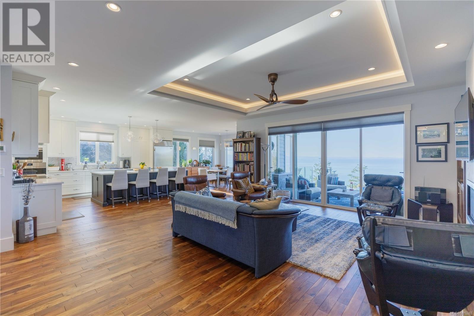 Embrace the coast at this stunning five-bed, three-bath home in scenic Sooke. Built in 2018, this west-facing residence showcases breathtaking ocean views, sunsets, and frequent visits from local wildlife from most rooms, as well as multiple balconies and patios. Inside, the open-concept layout features sleek finishes, large windows that flood the home with natural light, and a kitchen equipped with stainless steel appliances and ample cabinet and pantry storage. The primary bedroom offers a private retreat with ocean views, an ensuite bathroom, and walk-in closet. Four additional bedrooms, all located below along with an expansive covered walkout patio, provide comfort and flexibility for family or guests. Outside, protected by privacy fencing and mature growth, a stone path meanders from the double-attached garage and kitchen-side BBQ enclave, past the picturesque fenced garden, to the spectacular ocean-view hot tub. Contact us today to book your private viewing. (id:48970)